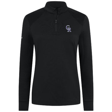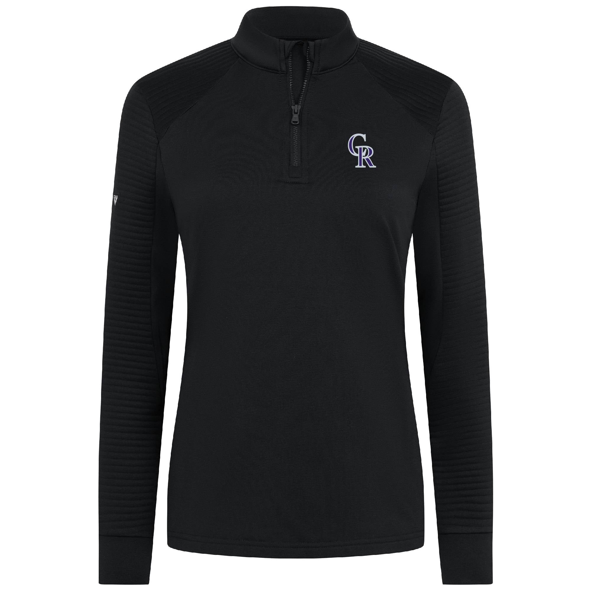 The women's Power midlayer is specifically designed to enhance your golf experience, ensuring you stay focused and unhindered throughout your game. This top is equipped with advanced moisture-wicking technology to efficiently remove sweat, keeping you dry as you play. Additionally, it features anti-static and anti-pilling properties to maintain its polished look over time. The quarter-zip with a stand-up collar allows for easy ventilation adjustment, while the contrast textured stripes on the shoulder panels and upper sleeve panels add a dynamic visual element. The high-low hem detail provides extra coverage in the back, perfect for maintaining discretion during your swings. Ideal for cooler days on the course, this midlayer merges subtle style upgrades with high-performance features to keep you at the top of your game.