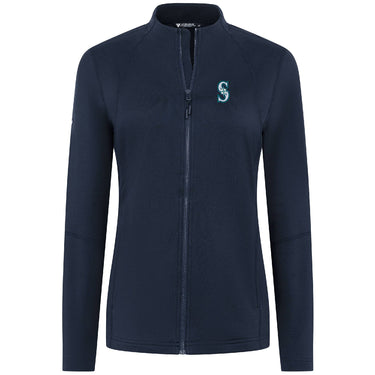 The women's Mesa midlayer is an excellent addition to any golfer's wardrobe, made to enhance performance on the course with thoughtful design and advanced fabric technology. This midlayer is made from 91% recycled polyester and 9% spandex, which not only offers a sustainable choice but also provides ample stretch for unrestricted movement. Featuring moisture-wicking properties, it efficiently manages sweat to keep you dry and comfortable throughout your game. The anti-static and anti-pilling treatments ensure the garment remains smooth and neat, even after multiple wears. Designed with a full front zip and stand-up collar for adjustable coverage, the Mesa also includes stylized wrap over side panels for a distinctive look. Zippered front pockets with mesh pocket bags add practical storage for small essentials, making this midlayer both functional and stylish for any golf enthusiast.