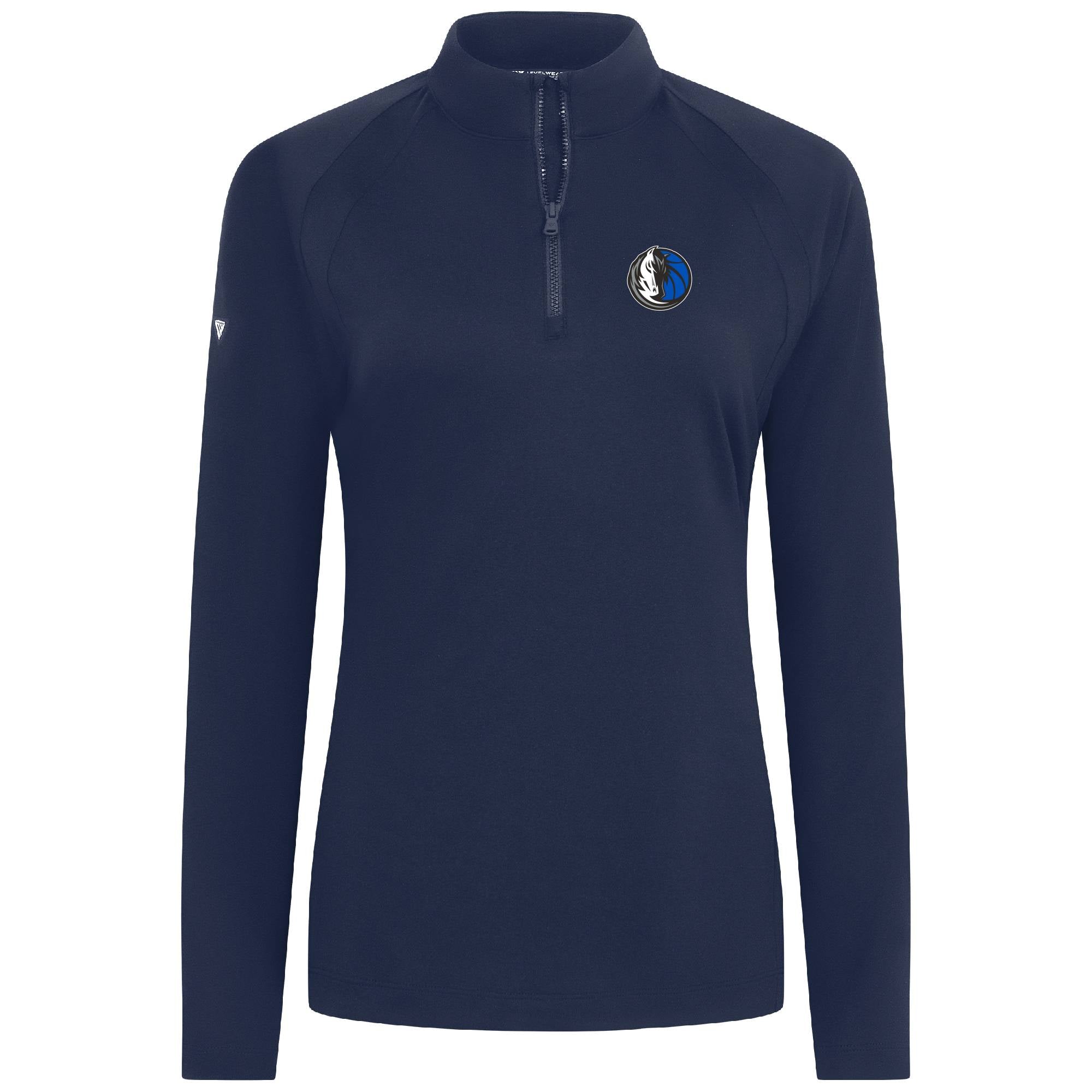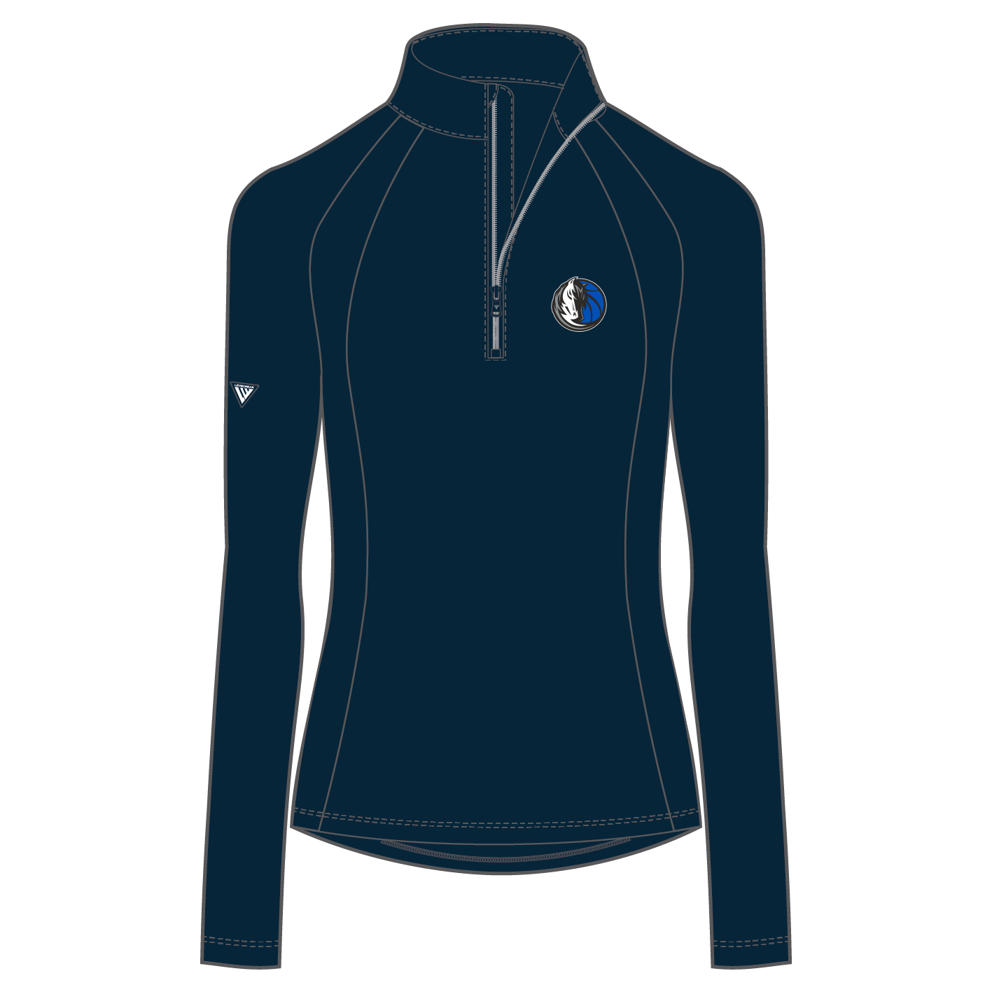 - Quarter-zip with contrast stand-up collar