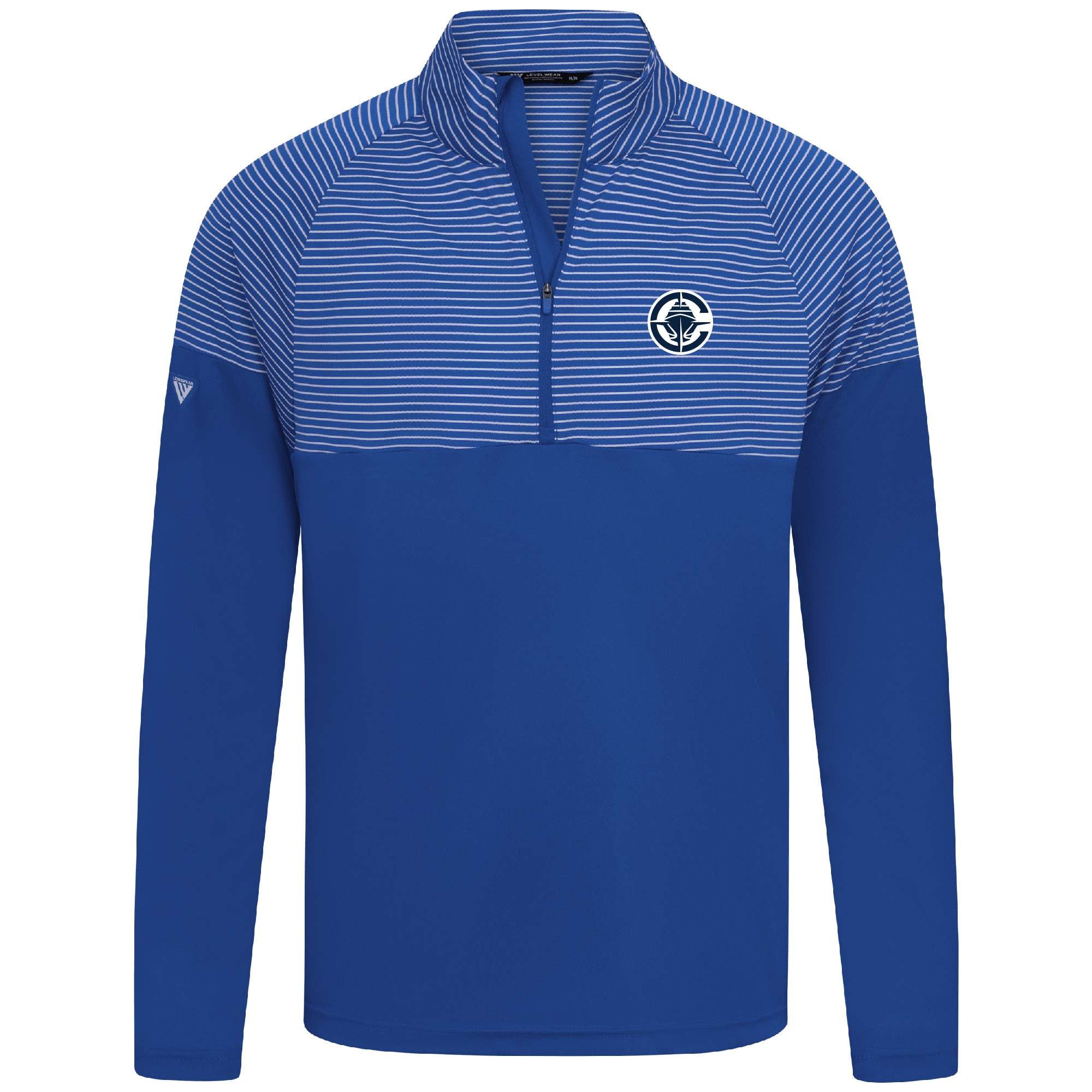 Designed for the golf course the Classic Stripes midlayer is a versatile addition to any wardrobe. This midlayer is constructed from 100% polyester, ensuring durability and ease of maintenance. It features moisture-wicking technology to keep you dry and comfortable during physical activity, while its anti-static properties help reduce fabric cling and discomfort. The quarter-zip design with a stand-up collar allows for easy adjustment to changing weather conditions, enhancing both warmth and airflow as needed. Raglan sleeves promote an unrestricted range of motion, ideal for perfecting your golf swing or engaging in other sports. The contrast upper body with a stripe pattern adds a visually appealing, sporty element, making this midlayer a stylish yet functional choice for any setting.