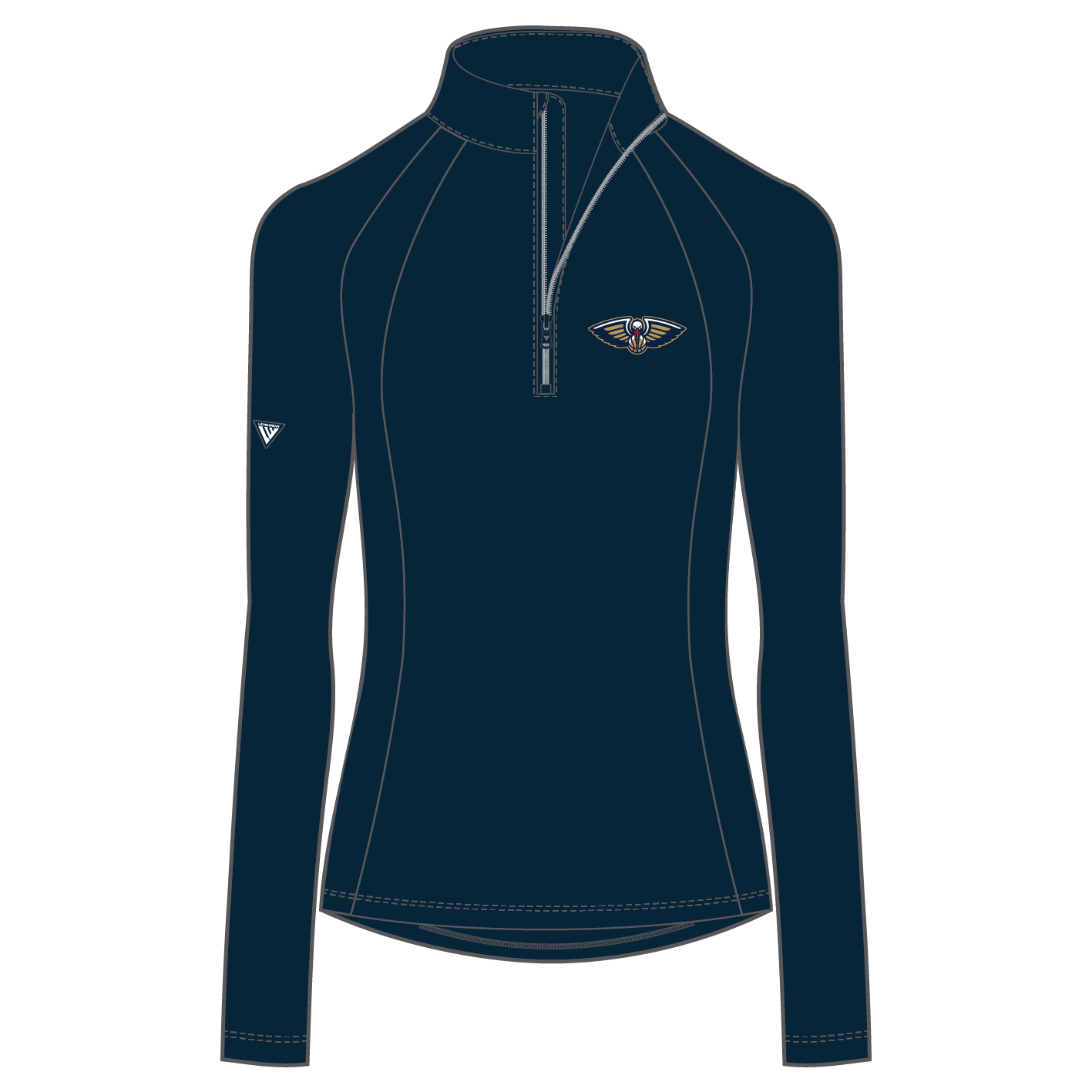 - Quarter-zip with contrast stand-up collar
