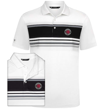 Elevate your game with the Onward men's polo, designed for avid golfers. This shirt features UPF50+ protection and moisture-wicking technology to keep you dry and shielded on sunny days. Its anti-bacterial properties ensure lasting freshness during play. The stylish stripe print across the front chest and a neat self-fabric collar with a built-in collar stay enhance its sophisticated and classic appearance. Tailored with a high-low hem and side slits for greater mobility, this polo is made from 92% recycled polyester and 8% spandex, blending eco-conscious fashion with functional design.