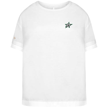 The Tulip top features a drop shoulder flowy silhouette that drapes gracefully, offering a flattering and comfortable fit for all body types. The open pleat design at the center back introduces an element of refined detail, adding visual interest and enhancing the top's airy feel. Contrasting semi-dull woven trim at the sleeve openings and body hem frames the piece with a subtle yet distinct touch, complementing the overall design. Made from a blend of 65% polyester and 35% cotton, the Tulip is soft to the touch and durable, perfect for both relaxed days and evenings out.