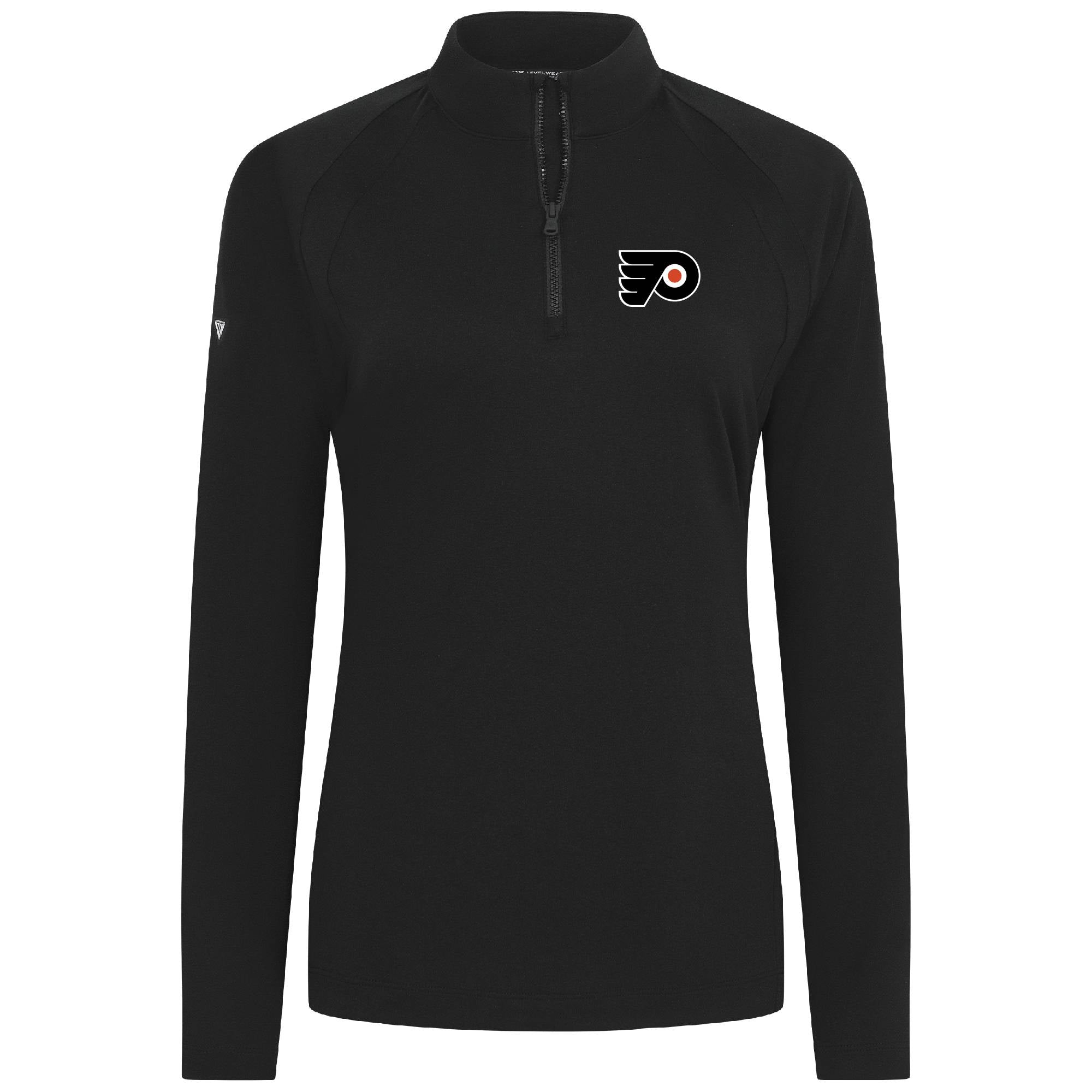 The women's Flex midlayer combines technical functionality with contemporary design, ideal for the active woman on the go. This midlayer is engineered with moisture-wicking technology to keep you dry and comfortable during vigorous activities, whether you're hitting the gym or exploring the outdoors. It features a quarter-zip closure with a contrast stand-up collar that allows for easy temperature regulation and adds a modern touch. The stylized front yoke and back yoke enhance the garment's structure, while mesh venting under the back yoke ensures optimal breathability and cooling. Finished with a high-low hem detail, this piece provides additional coverage and a flattering silhouette.