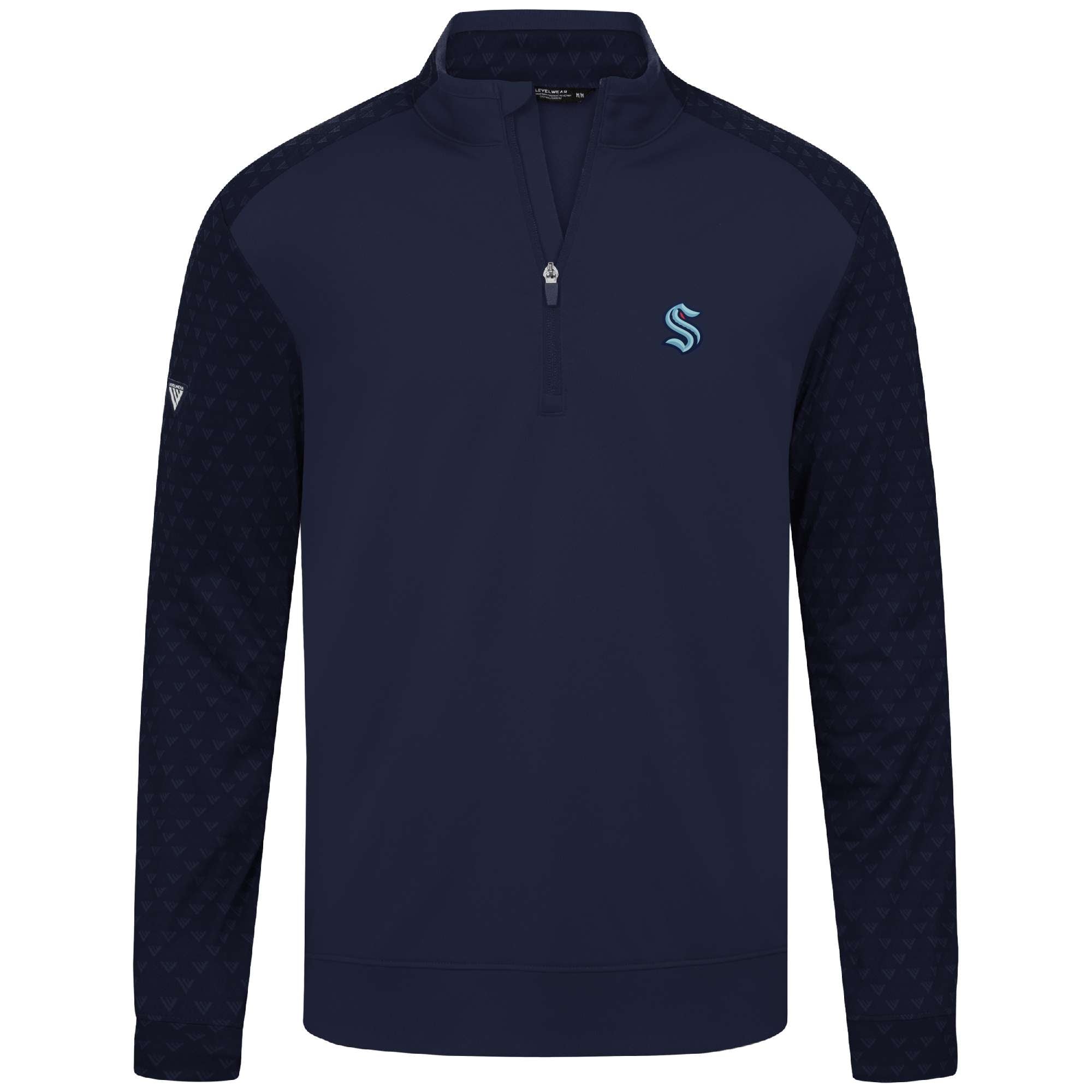 The Aztec midlayer is made from 100% polyester, featuring moisture-wicking technology to keep you dry throughout your activities. This midlayer includes a zippered front for easy wear and temperature control. It showcases a distinctive two-tone contrast along with a ribbed collar detail that adds a touch of sophistication. Signature monogram prints adorn the sleeves, shoulder yoke, and collar, elevating the visual appeal of the garment. Ideal for active pursuits, the Aztec midlayer ensures performance and durability in any setting.