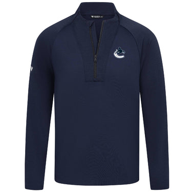 - Quarter-zip with stand-up collar