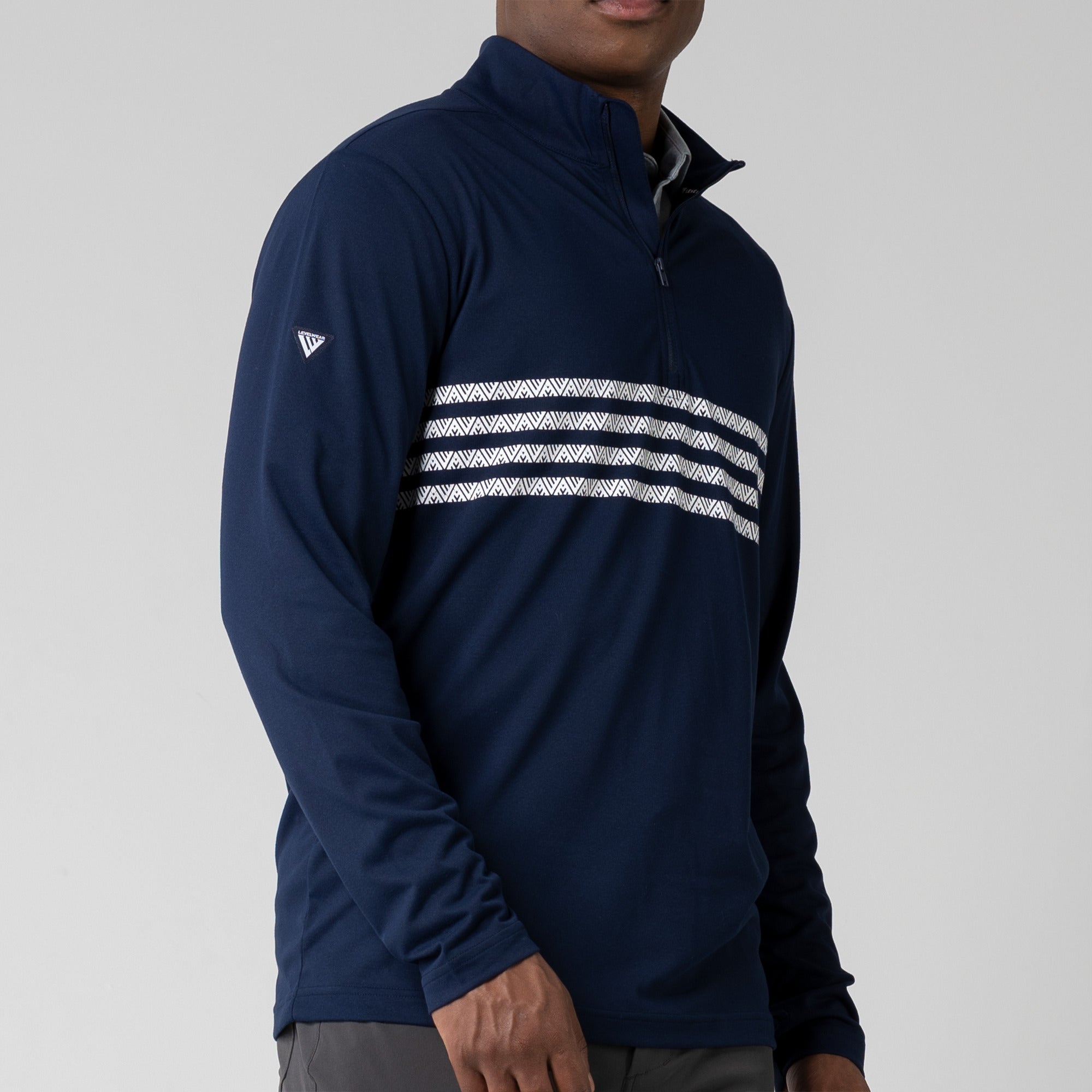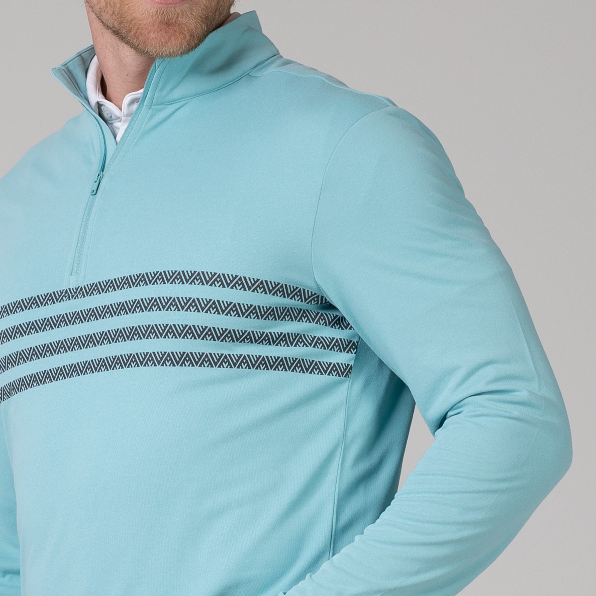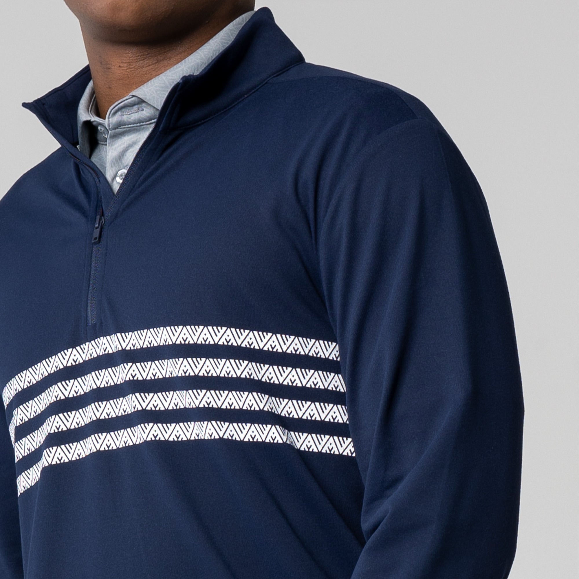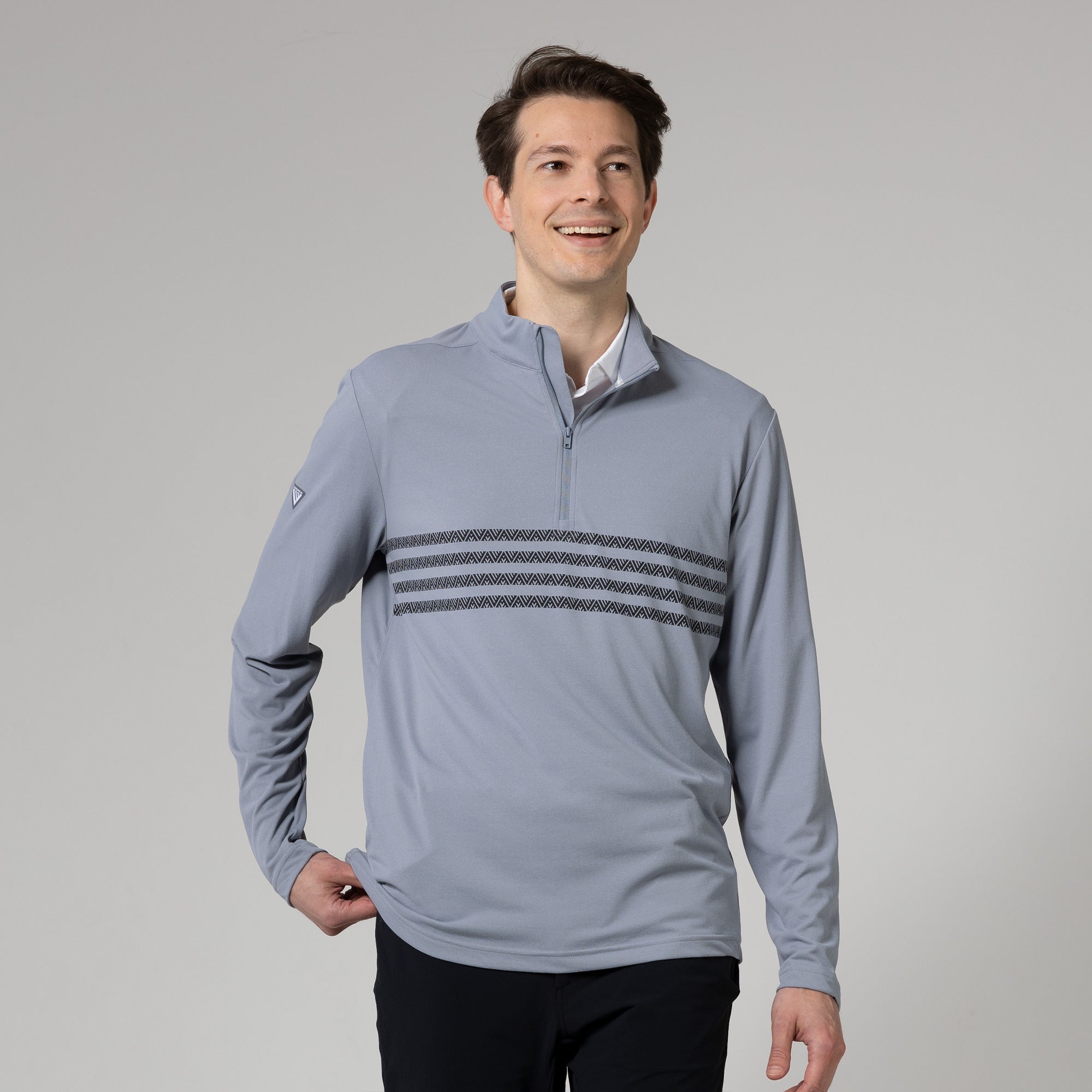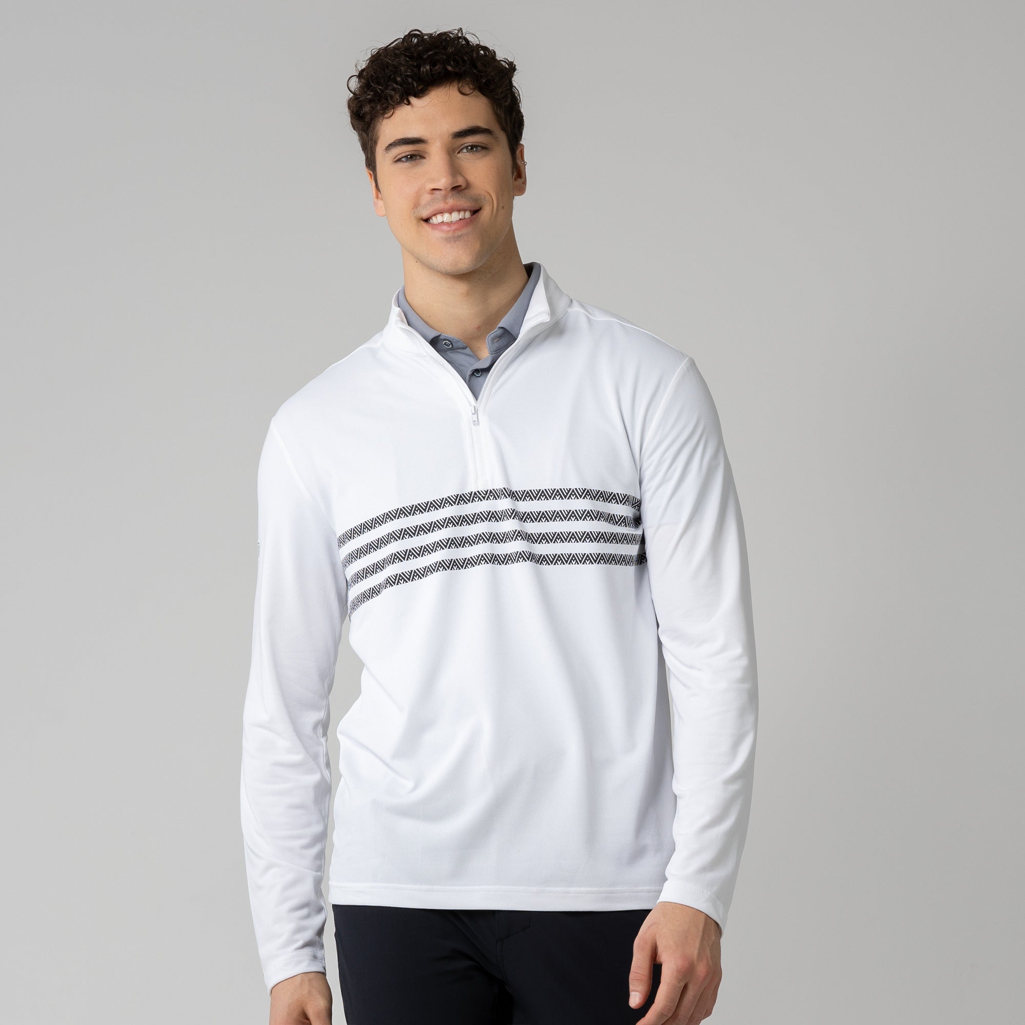 Line up your swings without restriction in the Asher Pullover. Lightweight, moisture wicking fabric ensures you move through your game in confidence and comfort. A geometric design on the chest elevates this classic pullover silhouette that can easily be paired with your favourite polo.