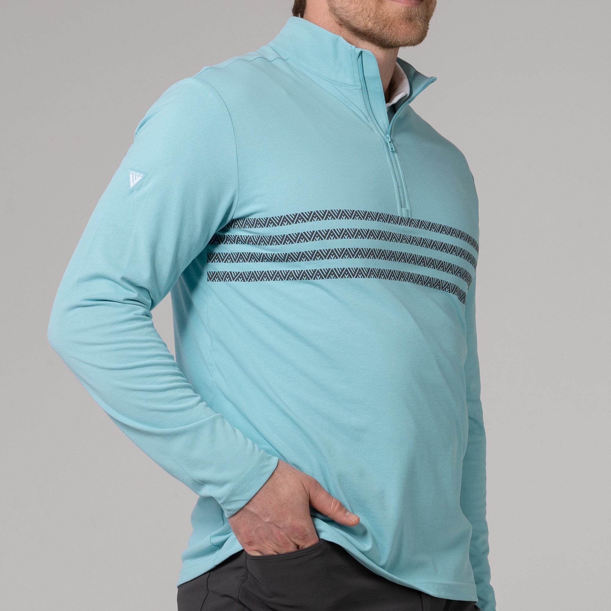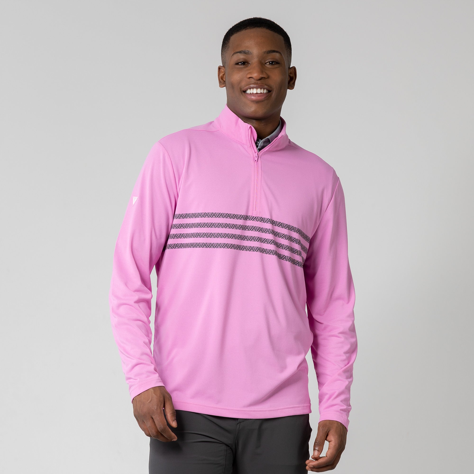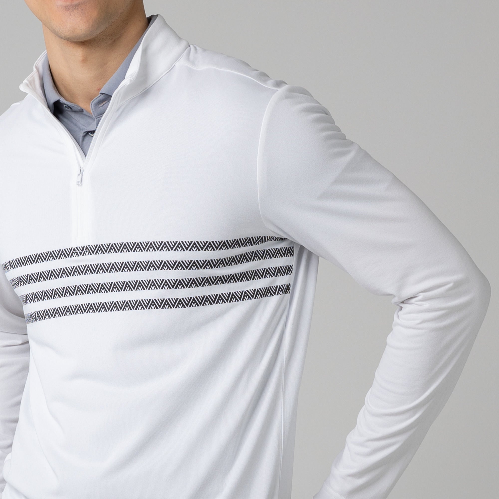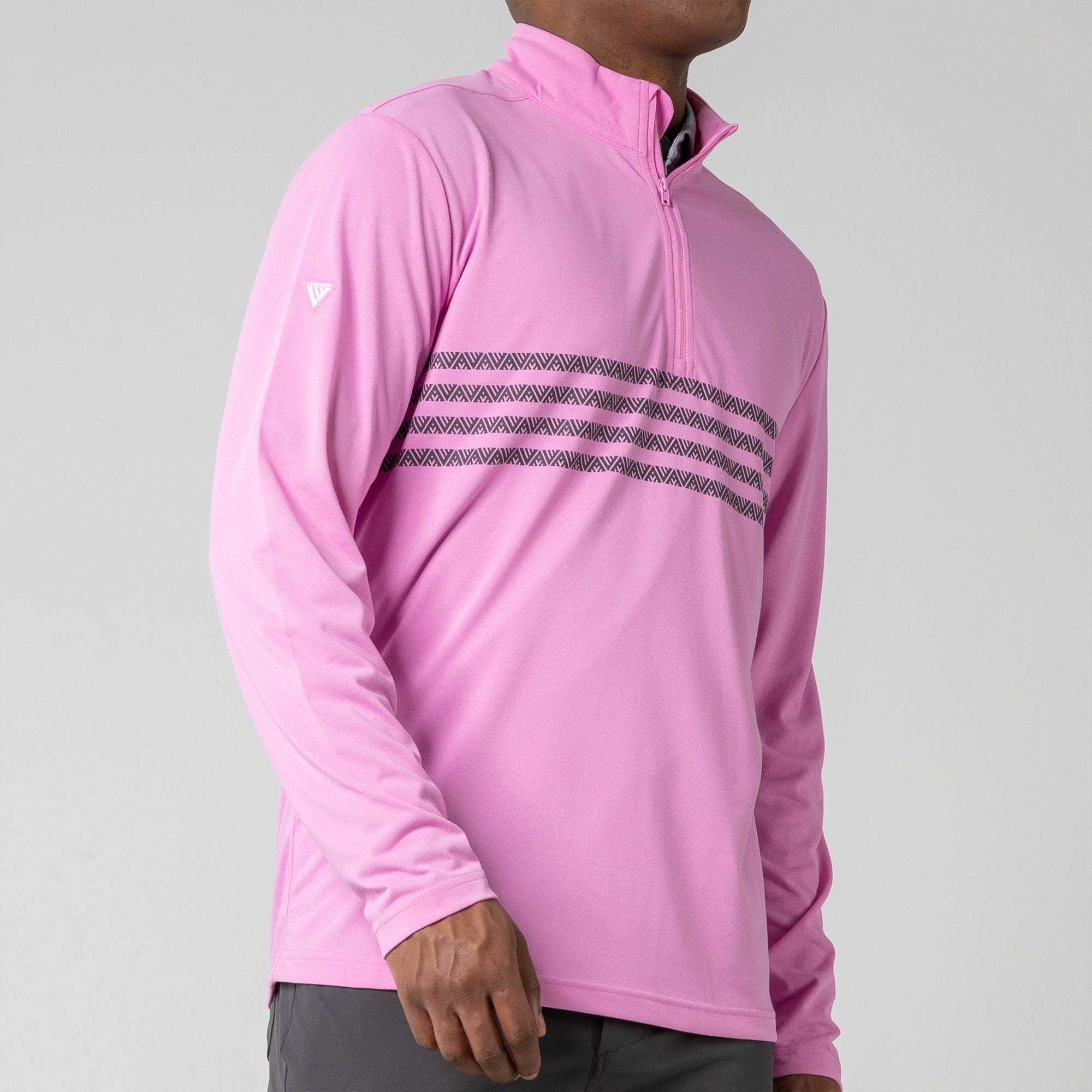 Line up your swings without restriction in the Asher Pullover. Lightweight, moisture wicking fabric ensures you move through your game in confidence and comfort. A geometric design on the chest elevates this classic pullover silhouette that can easily be paired with your favourite polo.