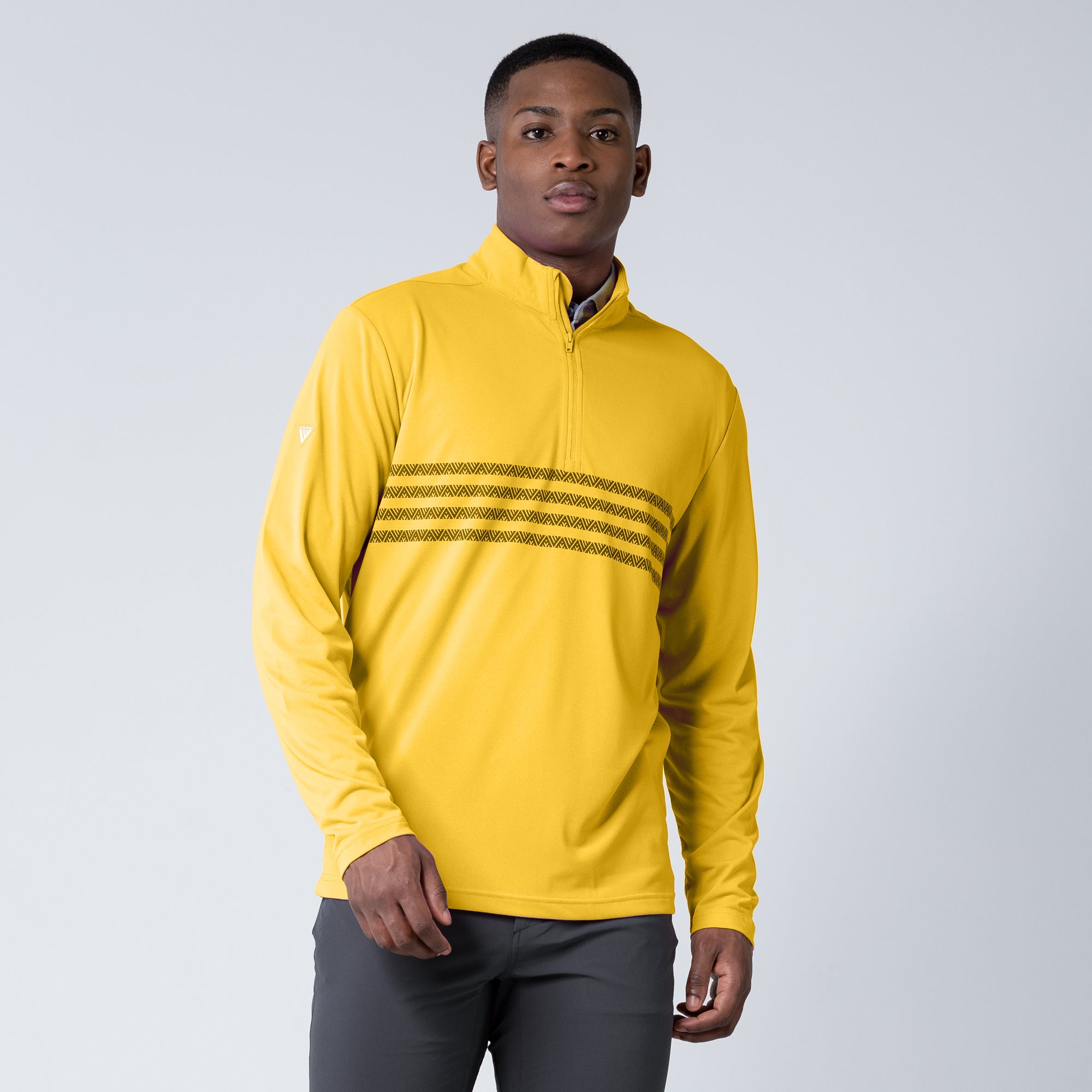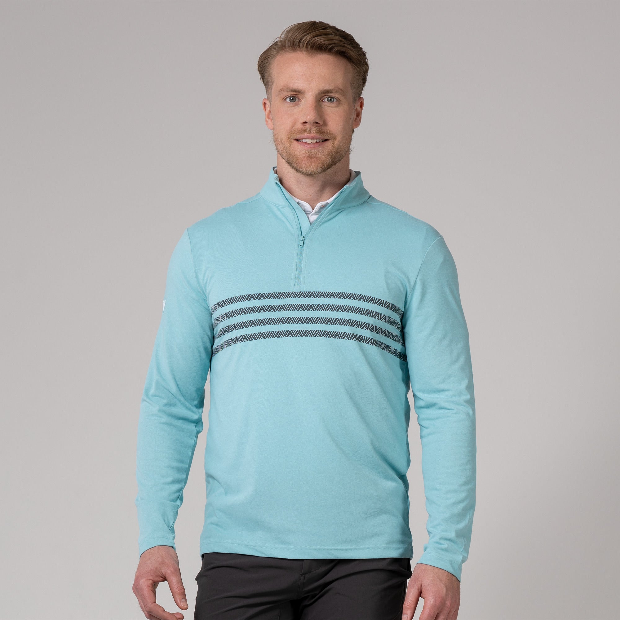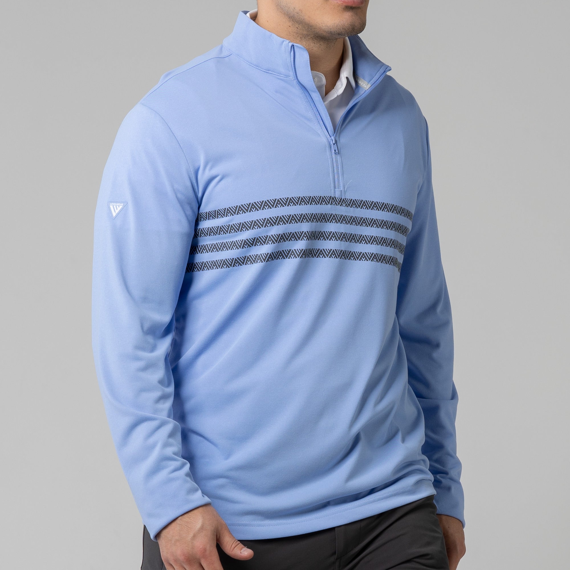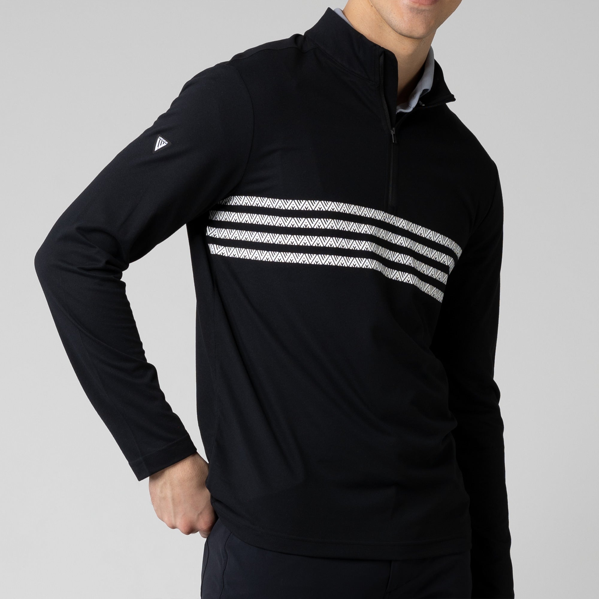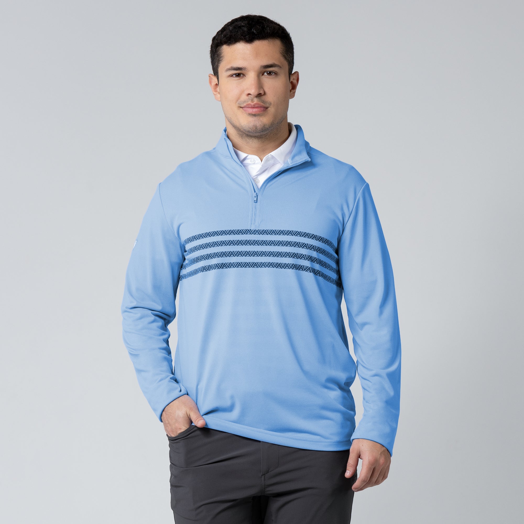 Line up your swings without restriction in the Asher Pullover. Lightweight, moisture wicking fabric ensures you move through your game in confidence and comfort. A geometric design on the chest elevates this classic pullover silhouette that can easily be paired with your favourite polo.