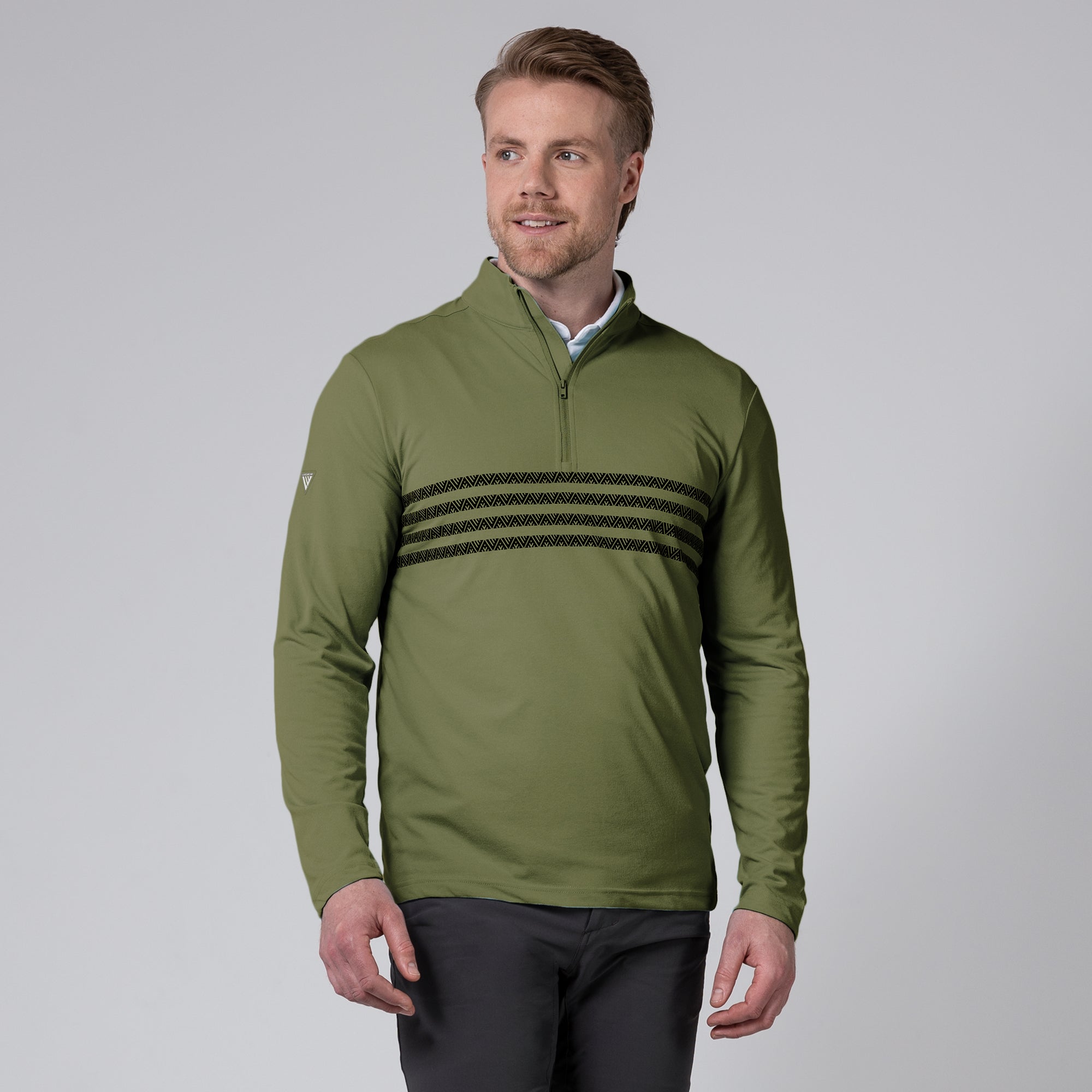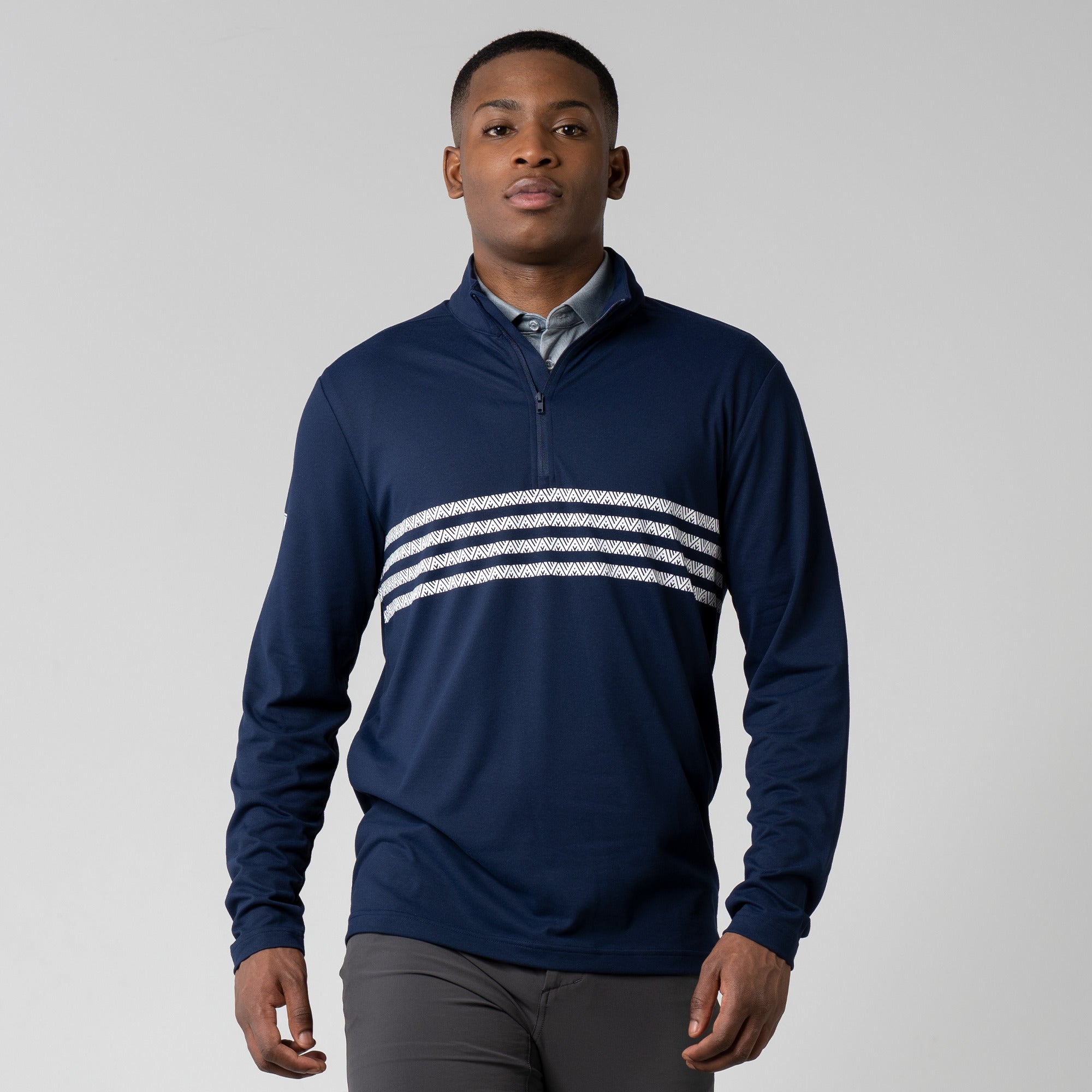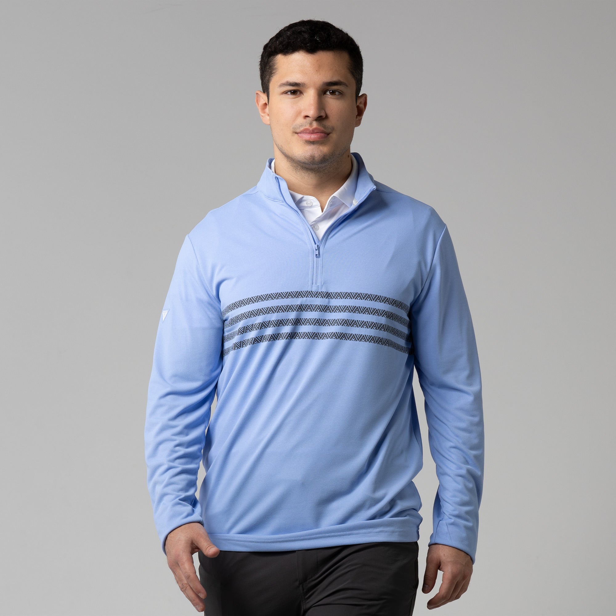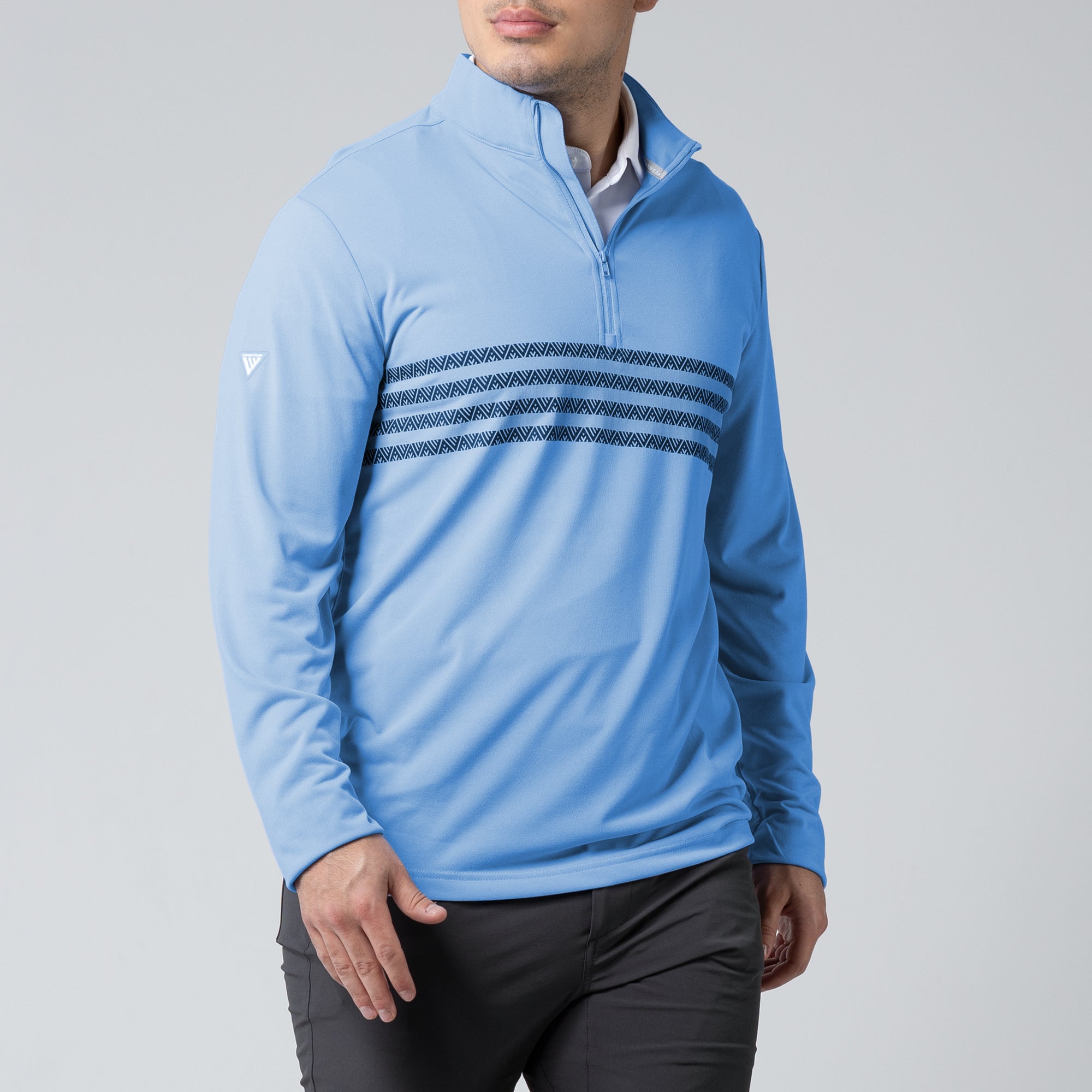 Line up your swings without restriction in the Asher Pullover. Lightweight, moisture wicking fabric ensures you move through your game in confidence and comfort. A geometric design on the chest elevates this classic pullover silhouette that can easily be paired with your favourite polo.