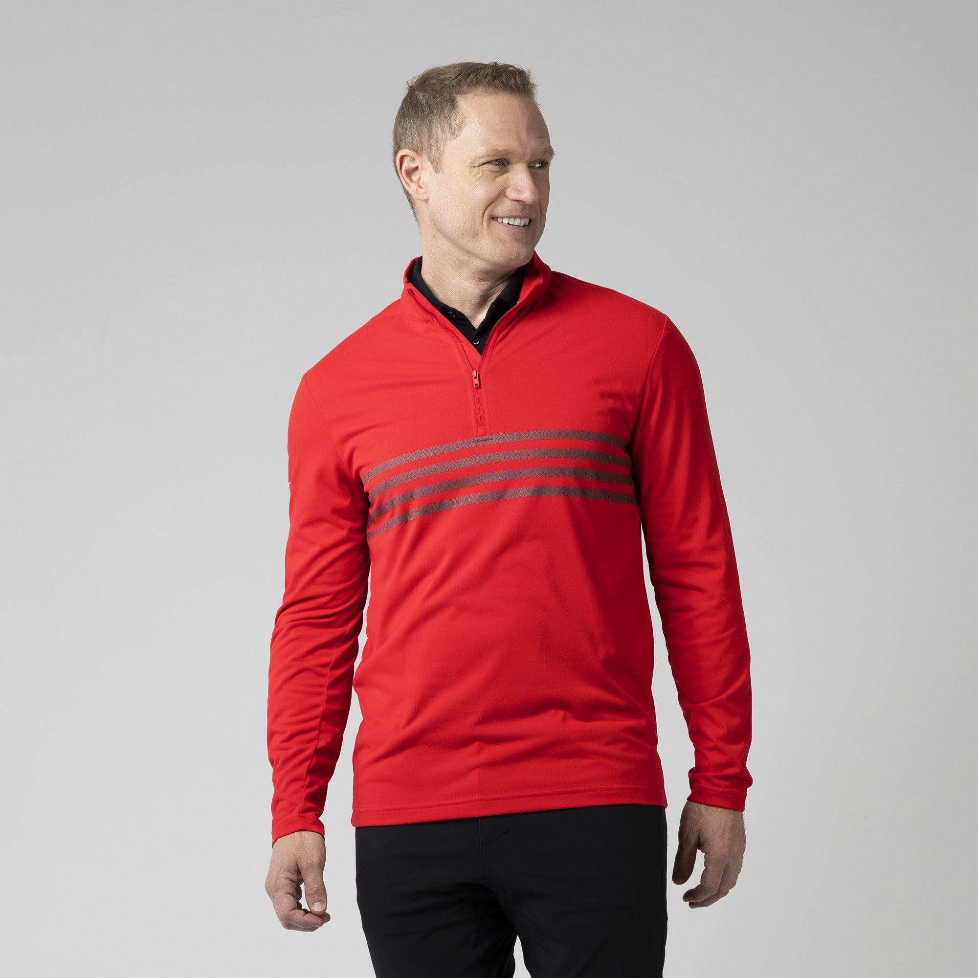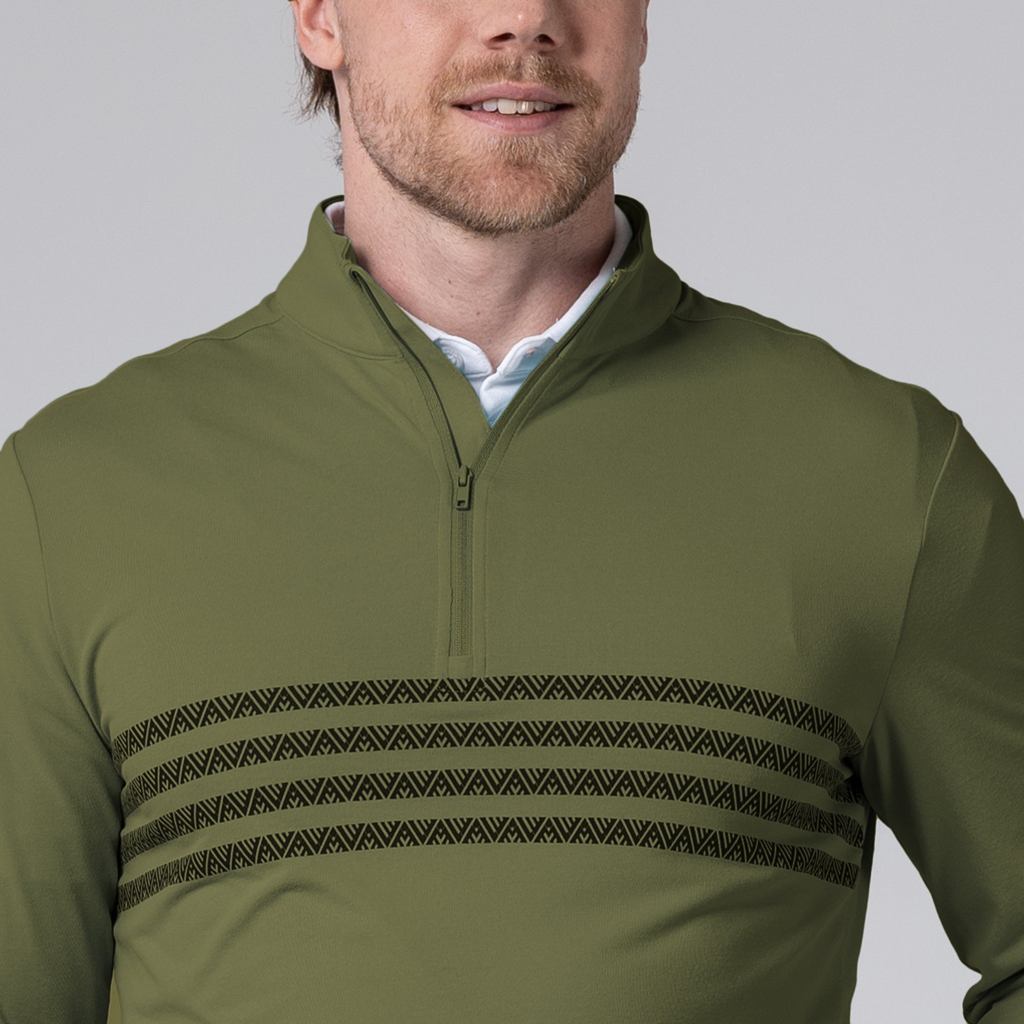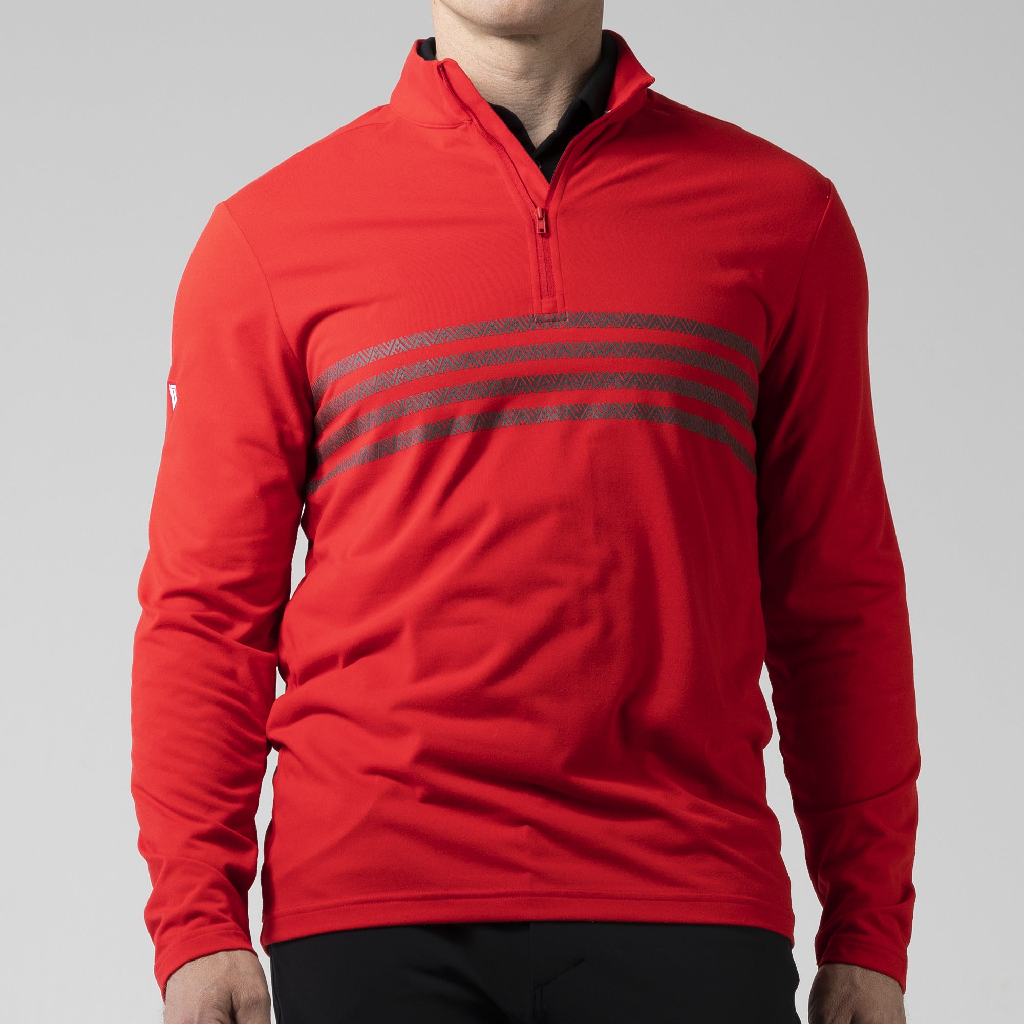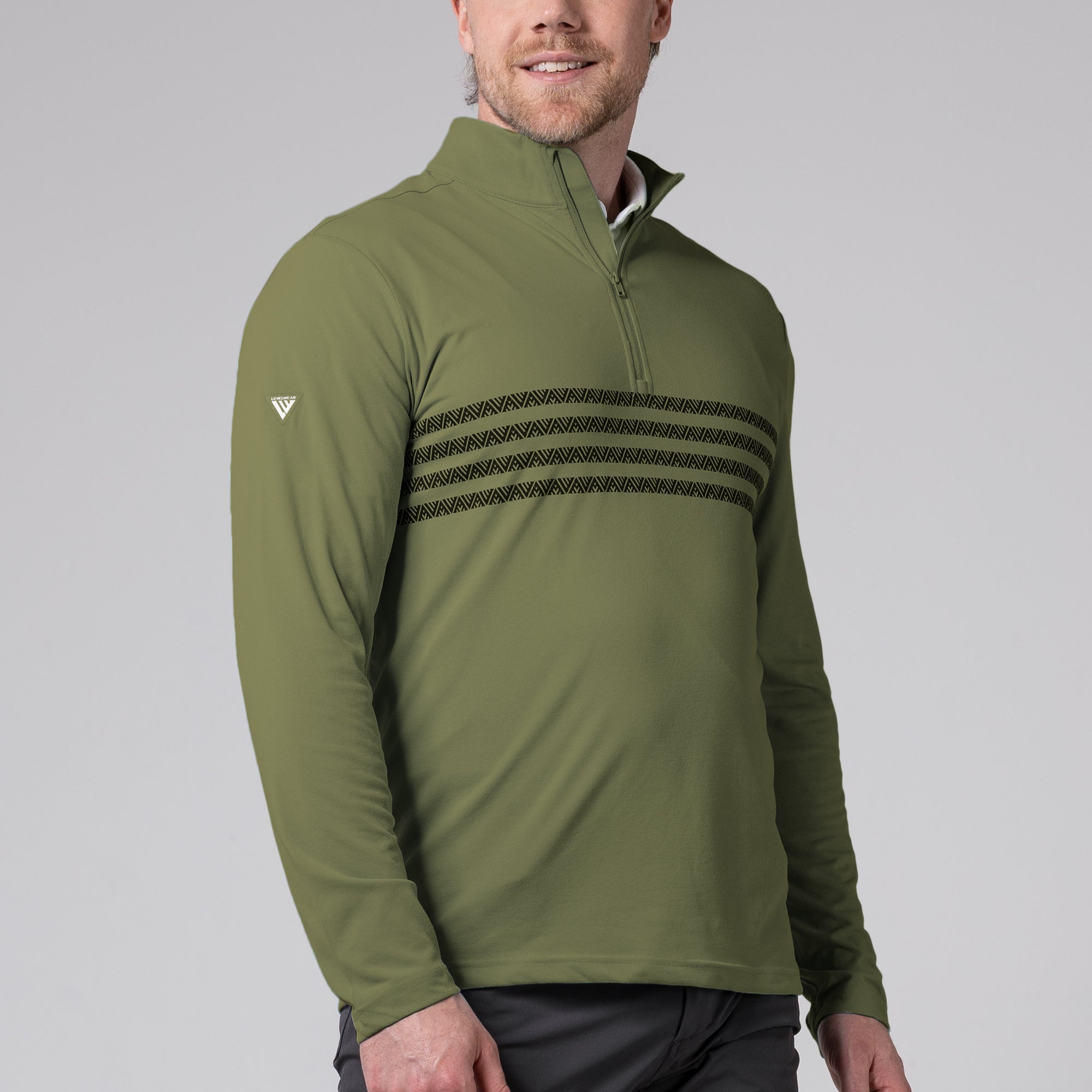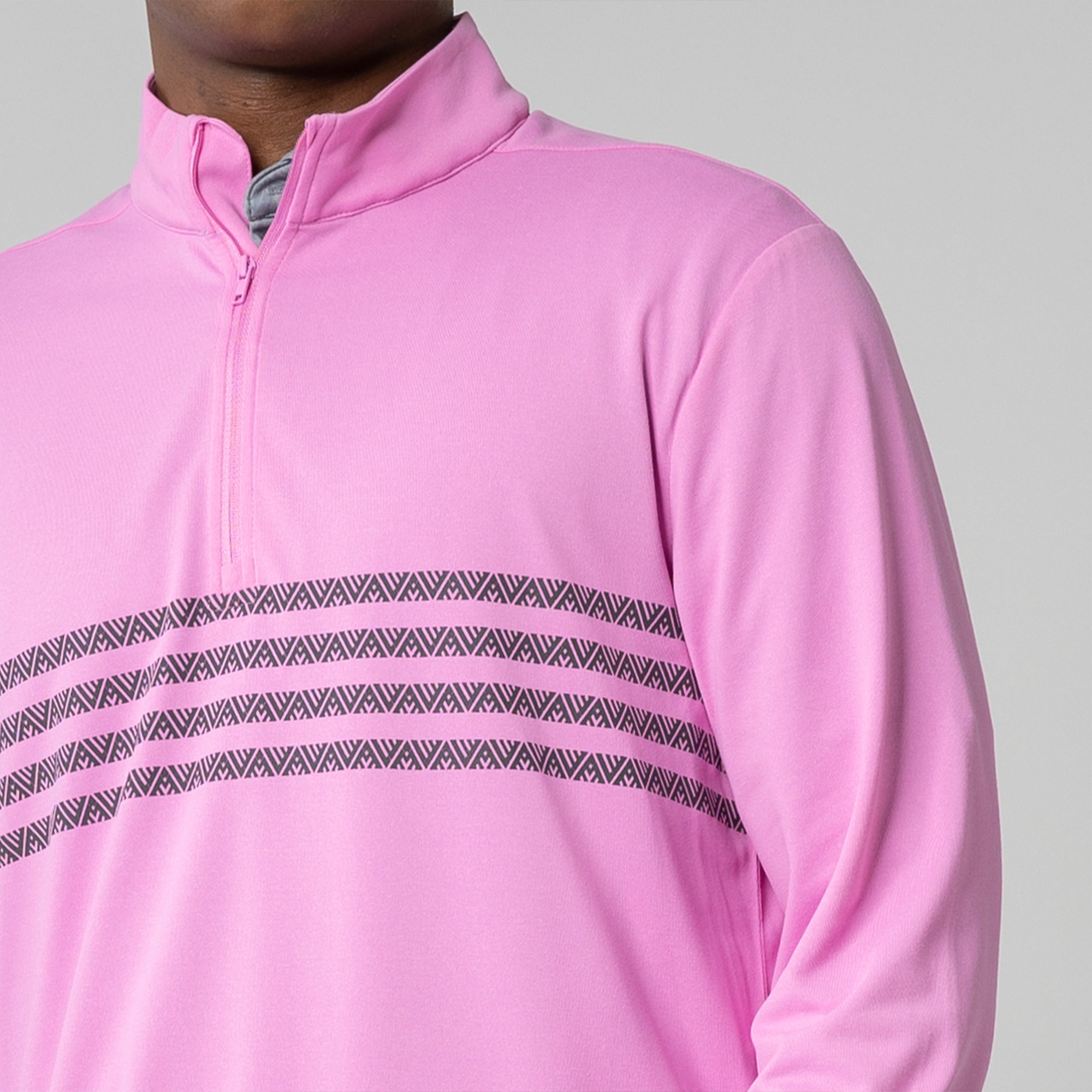 Line up your swings without restriction in the Asher Pullover. Lightweight, moisture wicking fabric ensures you move through your game in confidence and comfort. A geometric design on the chest elevates this classic pullover silhouette that can easily be paired with your favourite polo.