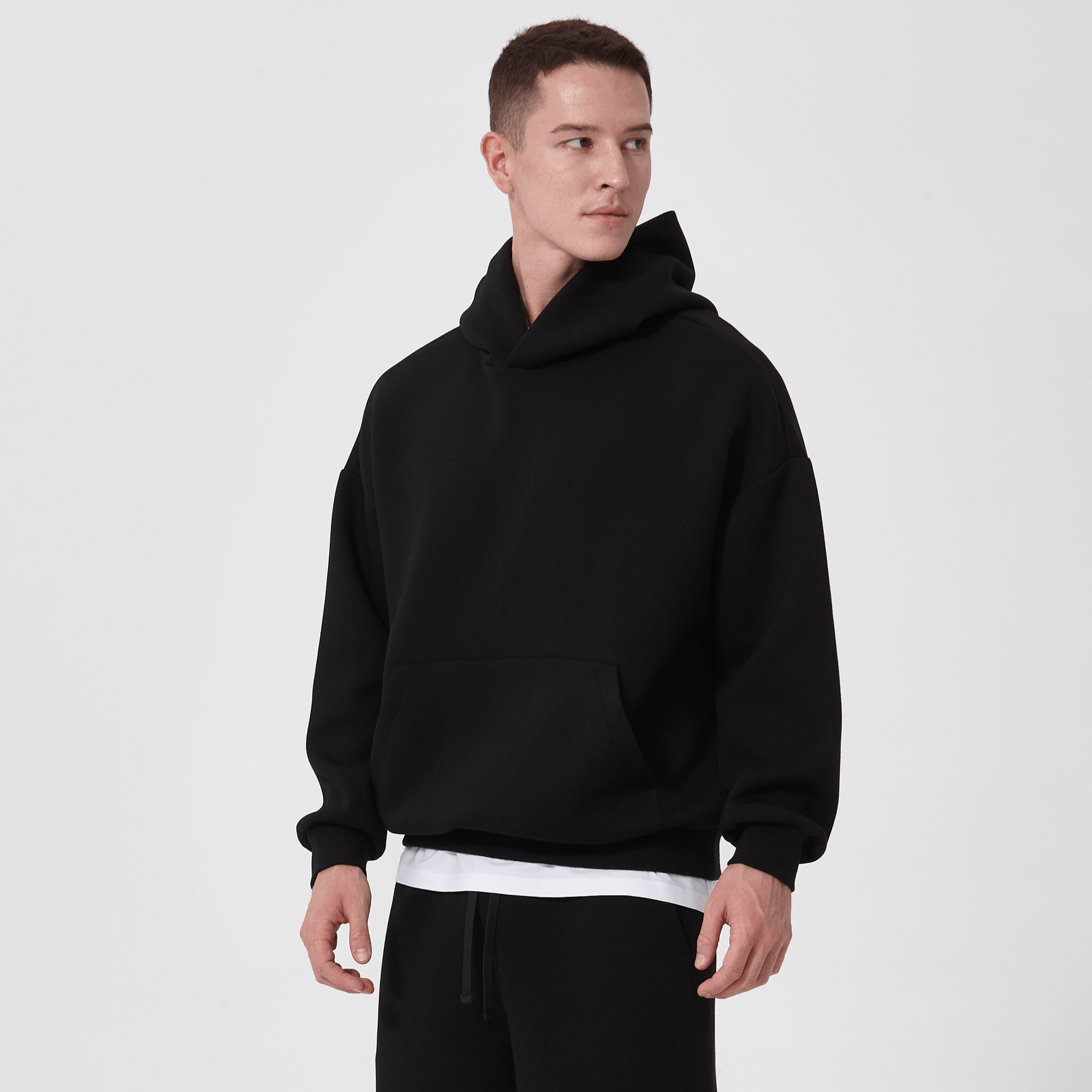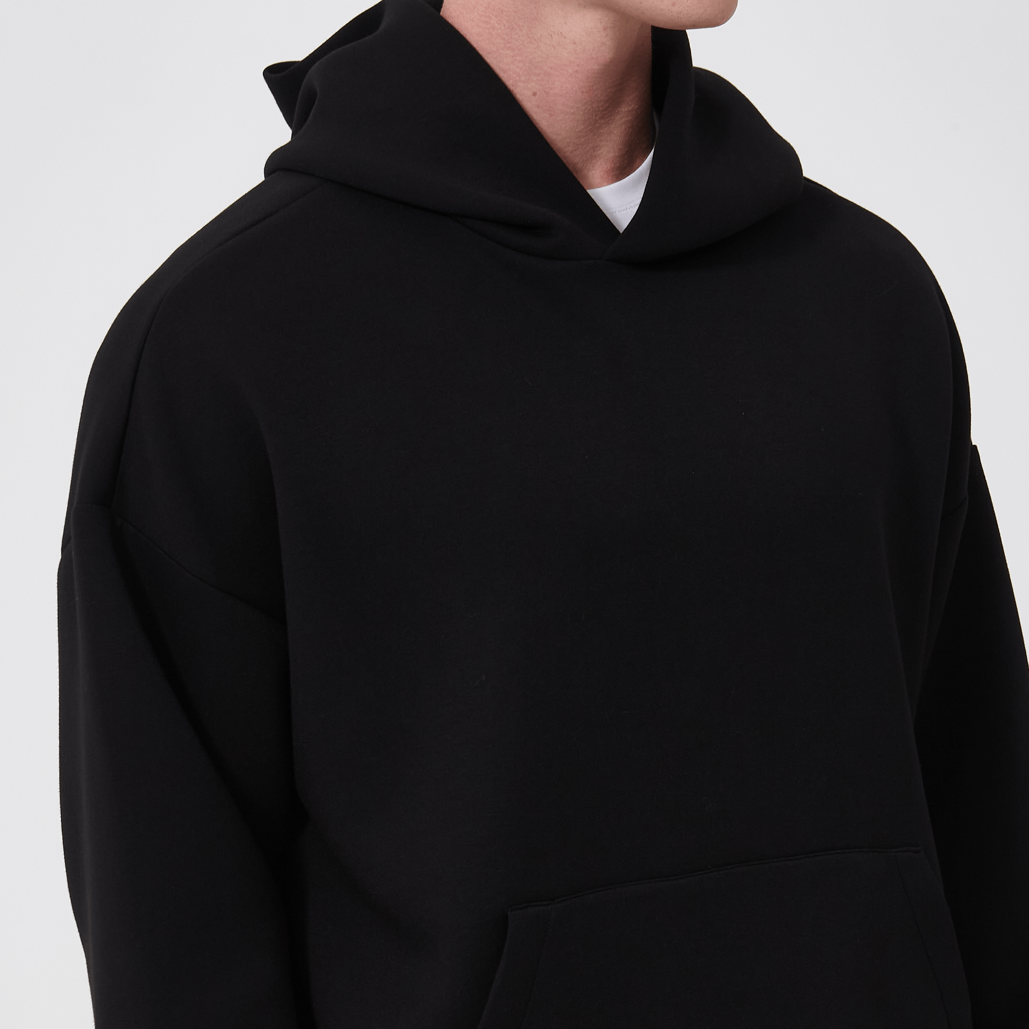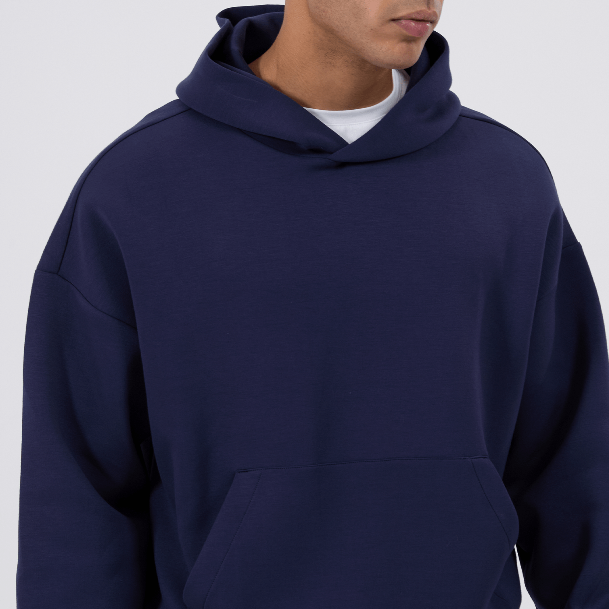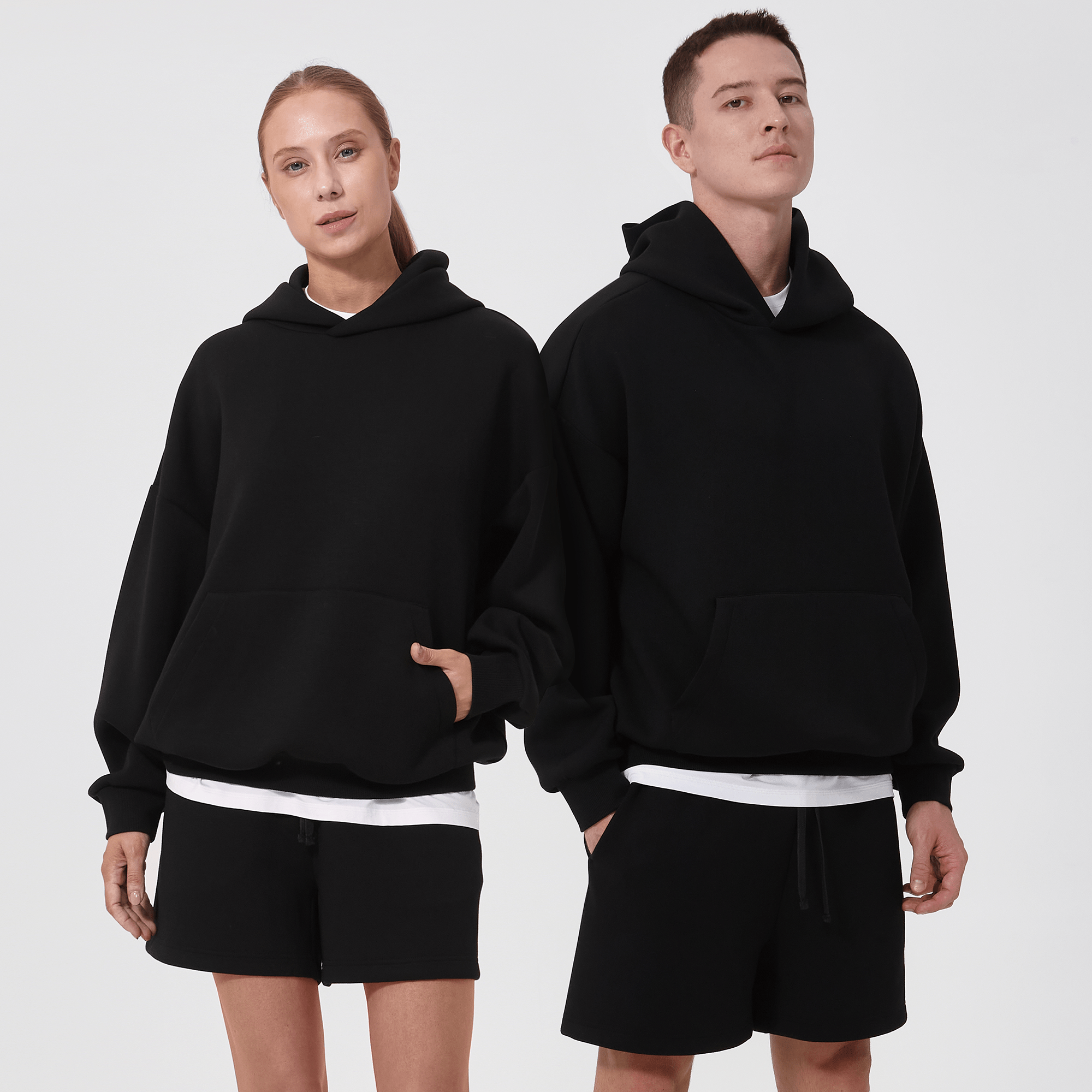 The Luxe Signature Hoodie redefines casual comfort with its unisex sizing and eco-friendly materials, making it a perfect choice for anyone looking to elevate their casual wear. Constructed from a sustainable blend of 50% recycled polyester, 43% viscose, and 7% spandex, this hoodie is designed for durability and comfort with a touch of stretch. It features an oversized drop shoulder silhouette that provides a relaxed, contemporary fit suitable for diverse body types. The classic kangaroo pocket adds practicality and warmth, while the ribbed body band and sleeve cuffs ensure a snug fit that retains its shape. Ideal for layering or wearing on its own, the Luxe Signature Hoodie combines effortless style with conscious manufacturing, offering a versatile and cozy addition to your wardrobe.