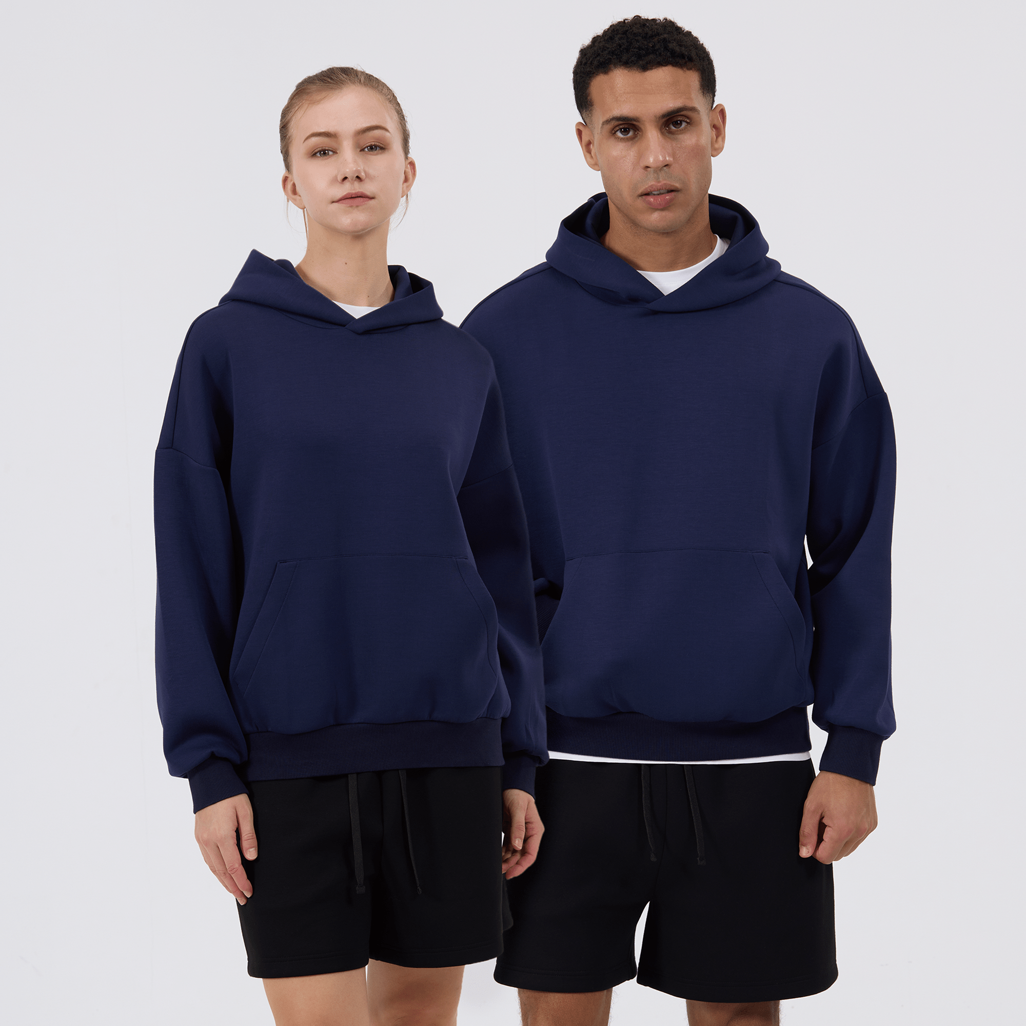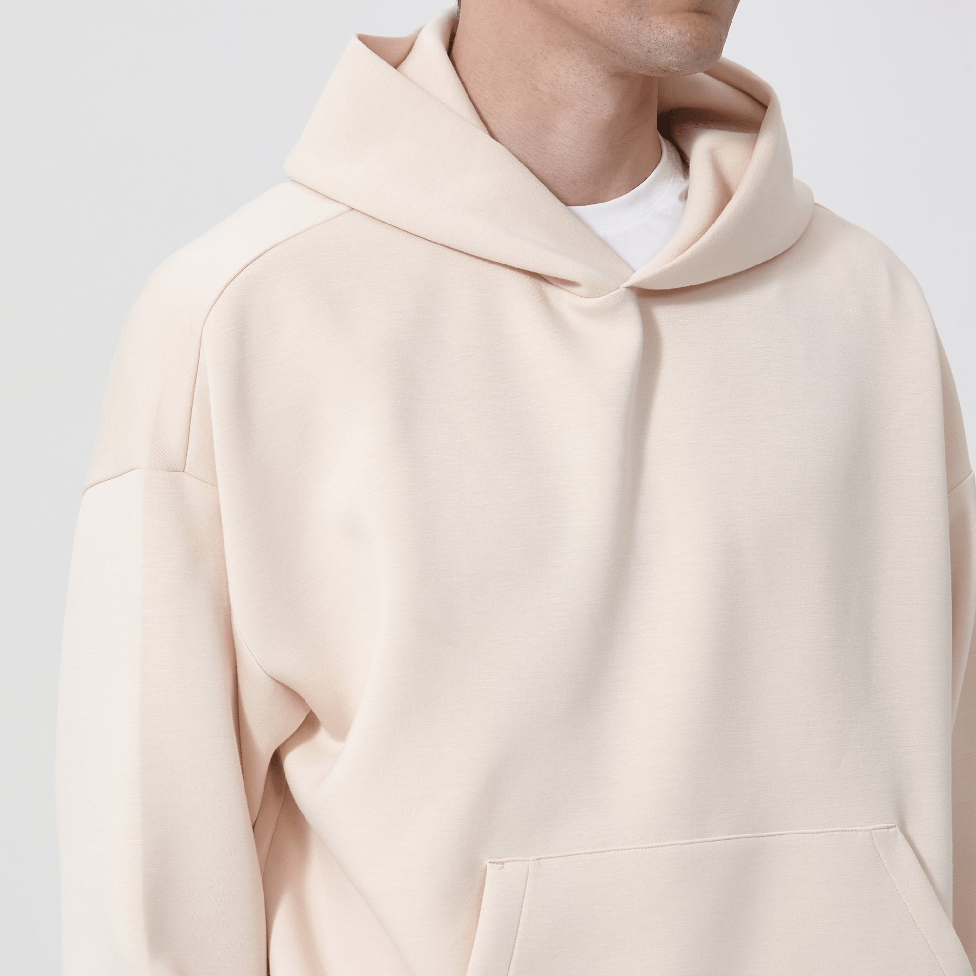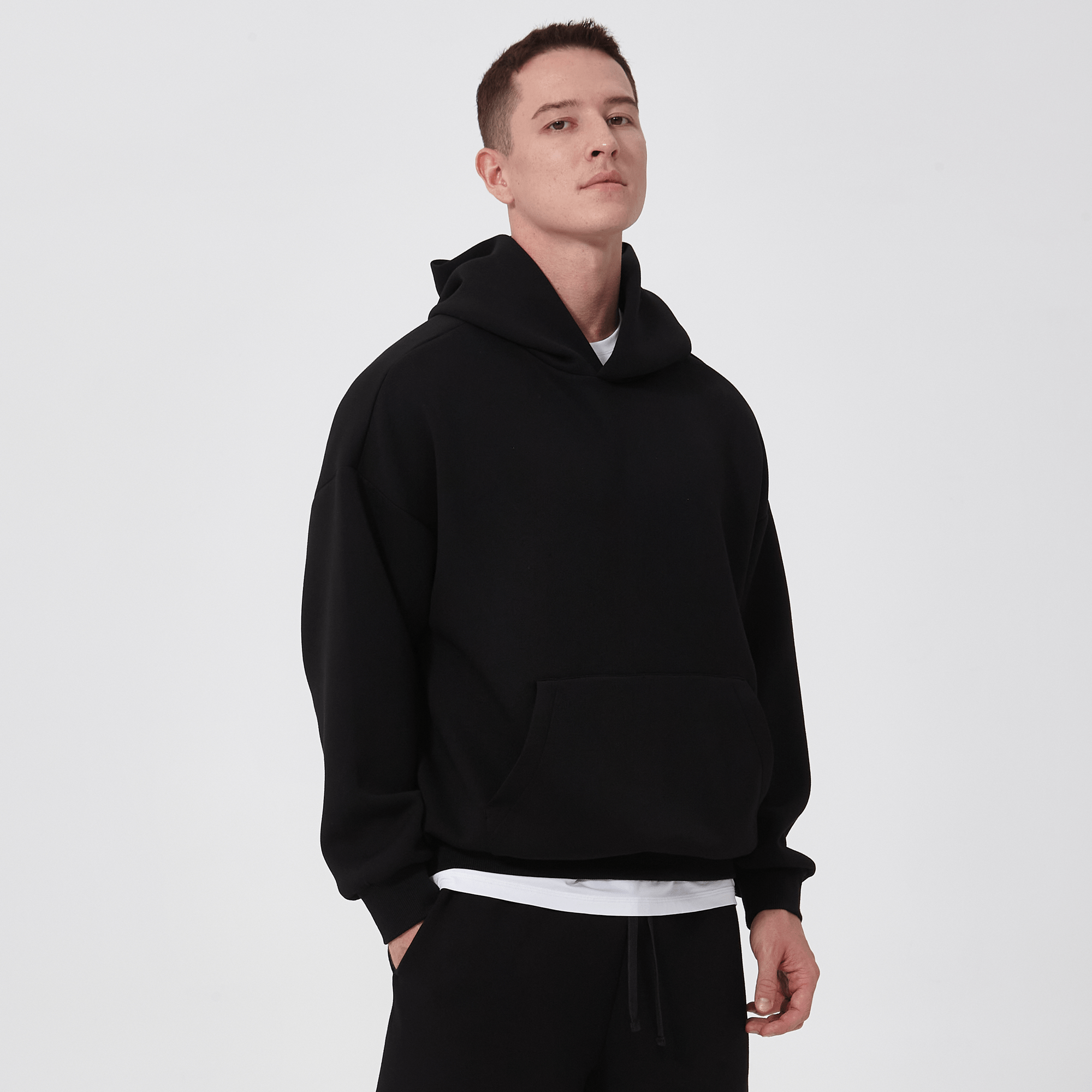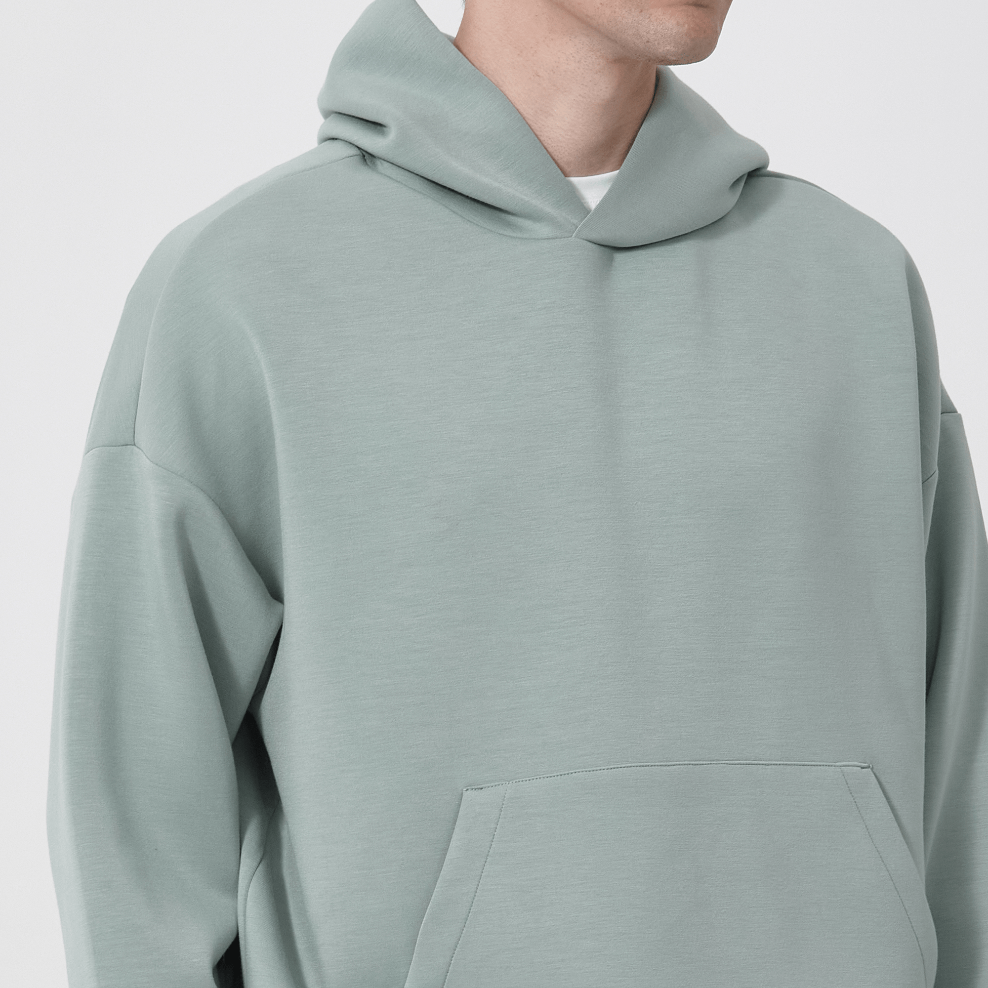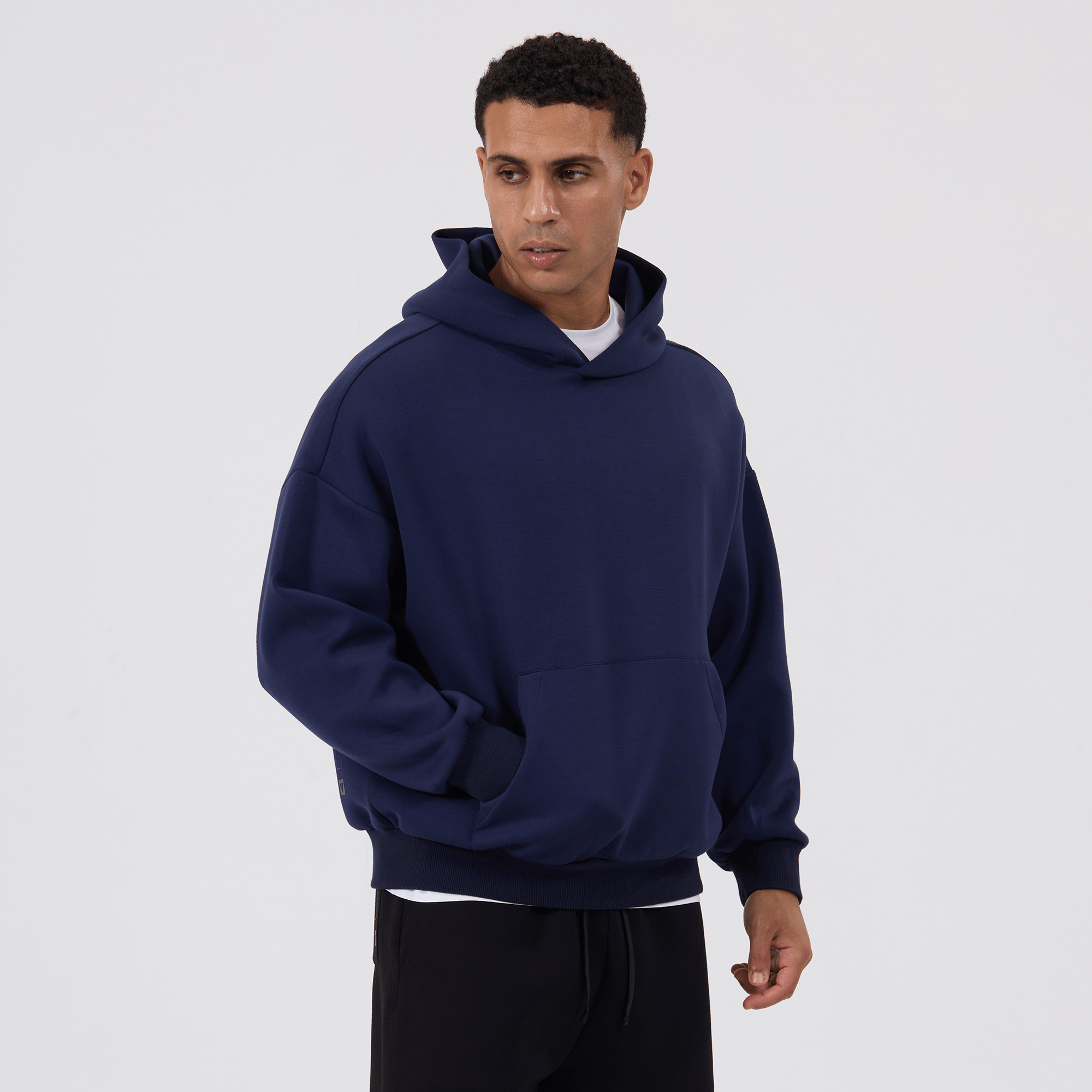 The Luxe Signature Hoodie redefines casual comfort with its unisex sizing and eco-friendly materials, making it a perfect choice for anyone looking to elevate their casual wear. Constructed from a sustainable blend of 50% recycled polyester, 43% viscose, and 7% spandex, this hoodie is designed for durability and comfort with a touch of stretch. It features an oversized drop shoulder silhouette that provides a relaxed, contemporary fit suitable for diverse body types. The classic kangaroo pocket adds practicality and warmth, while the ribbed body band and sleeve cuffs ensure a snug fit that retains its shape. Ideal for layering or wearing on its own, the Luxe Signature Hoodie combines effortless style with conscious manufacturing, offering a versatile and cozy addition to your wardrobe.