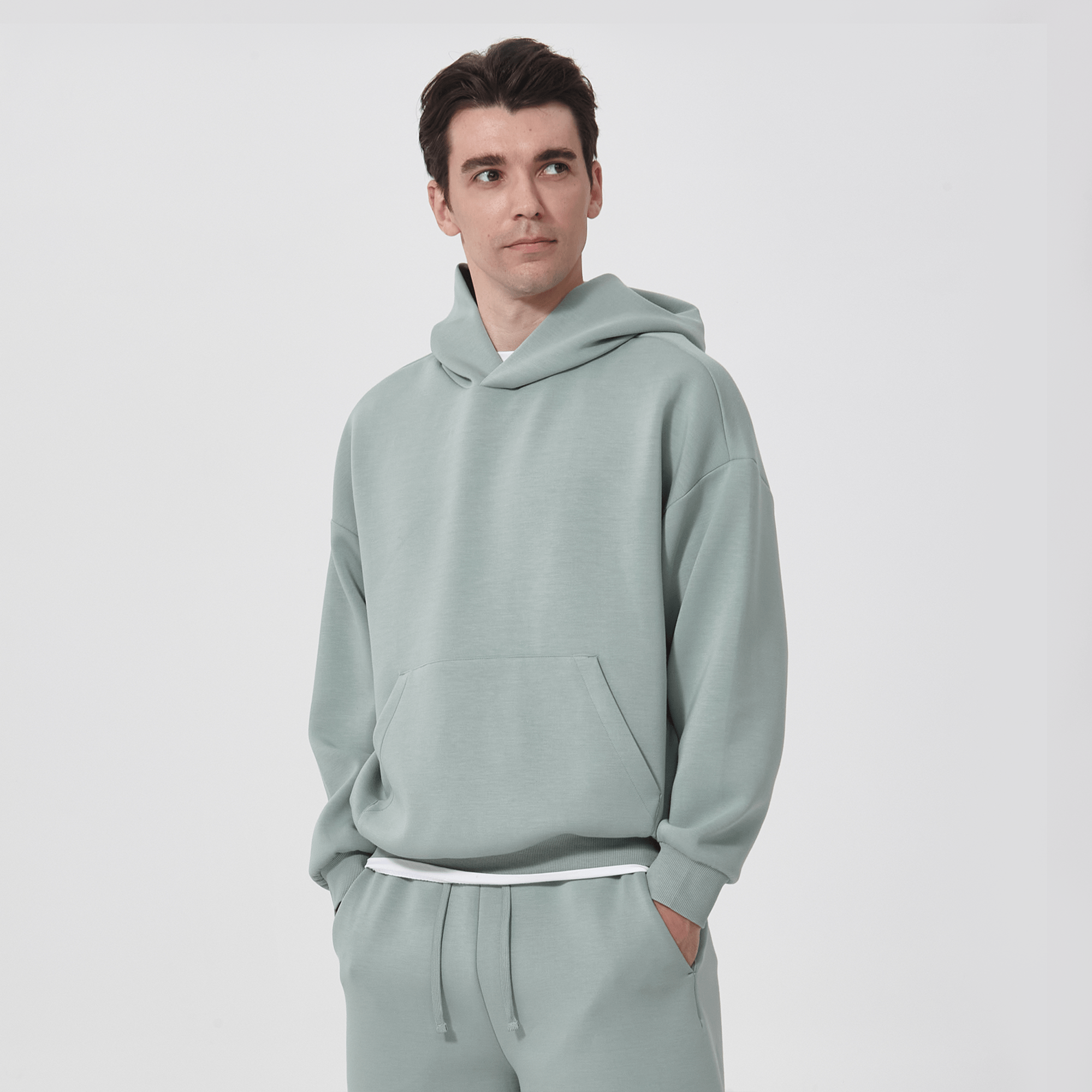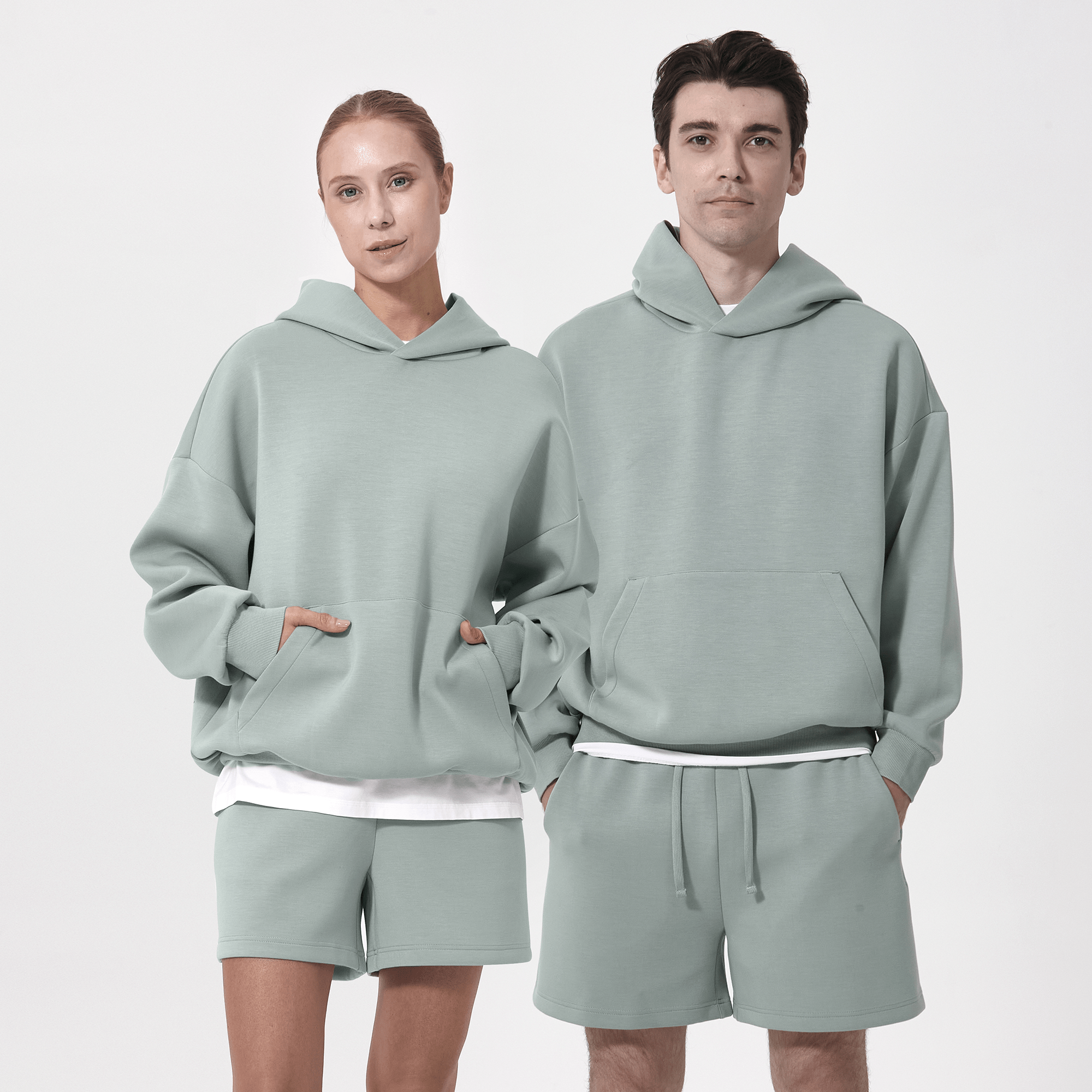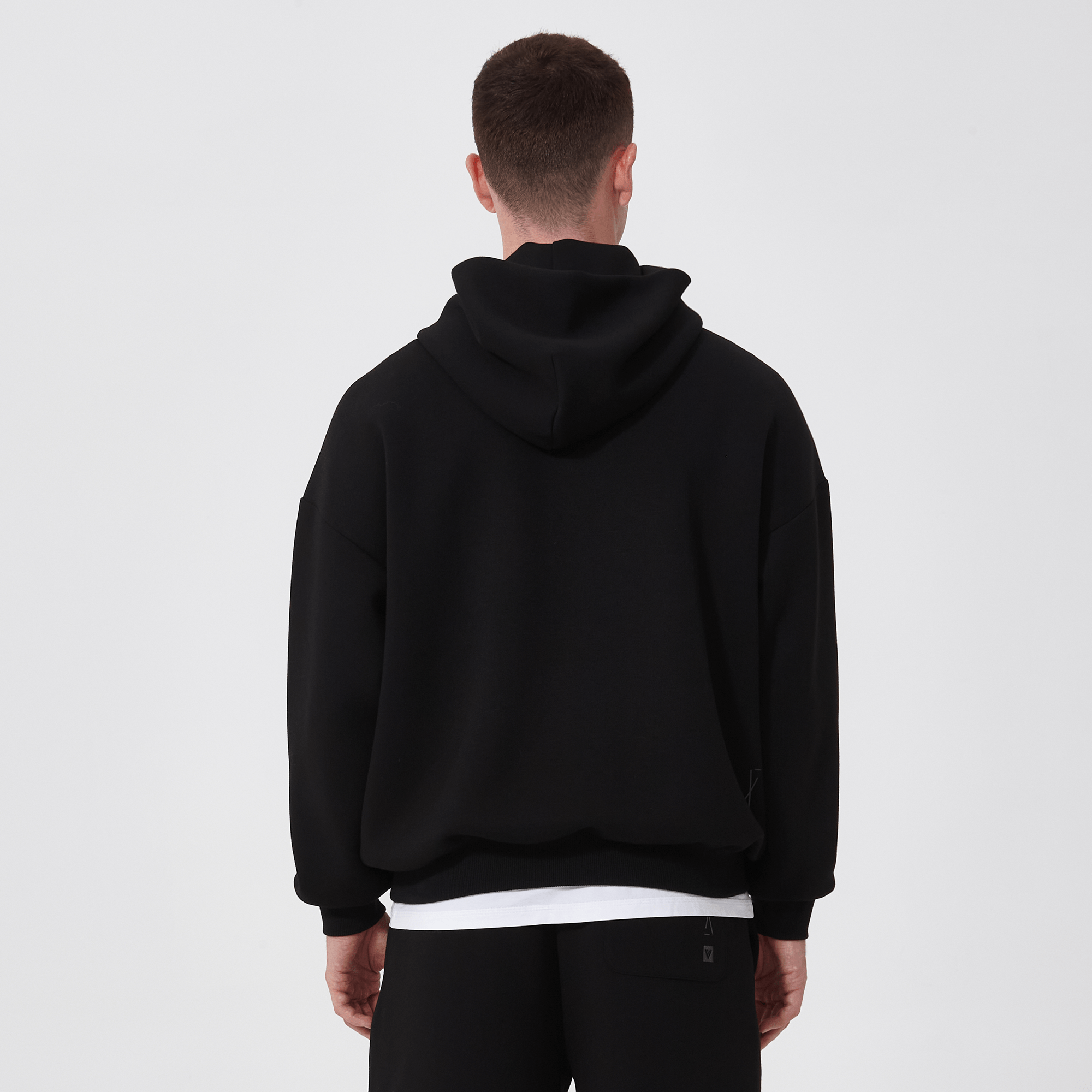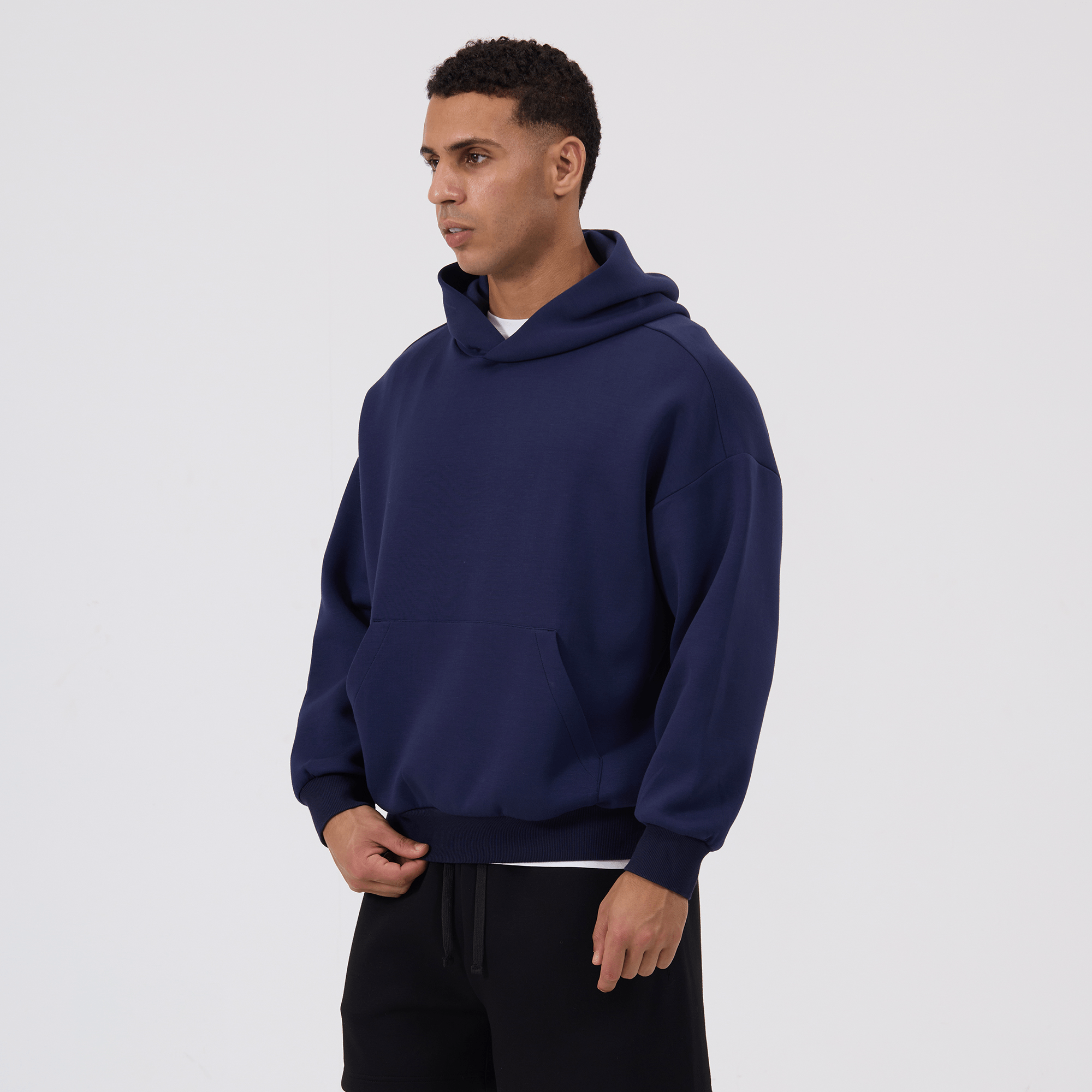 The Luxe Signature Hoodie redefines casual comfort with its unisex sizing and eco-friendly materials, making it a perfect choice for anyone looking to elevate their casual wear. Constructed from a sustainable blend of 50% recycled polyester, 43% viscose, and 7% spandex, this hoodie is designed for durability and comfort with a touch of stretch. It features an oversized drop shoulder silhouette that provides a relaxed, contemporary fit suitable for diverse body types. The classic kangaroo pocket adds practicality and warmth, while the ribbed body band and sleeve cuffs ensure a snug fit that retains its shape. Ideal for layering or wearing on its own, the Luxe Signature Hoodie combines effortless style with conscious manufacturing, offering a versatile and cozy addition to your wardrobe.