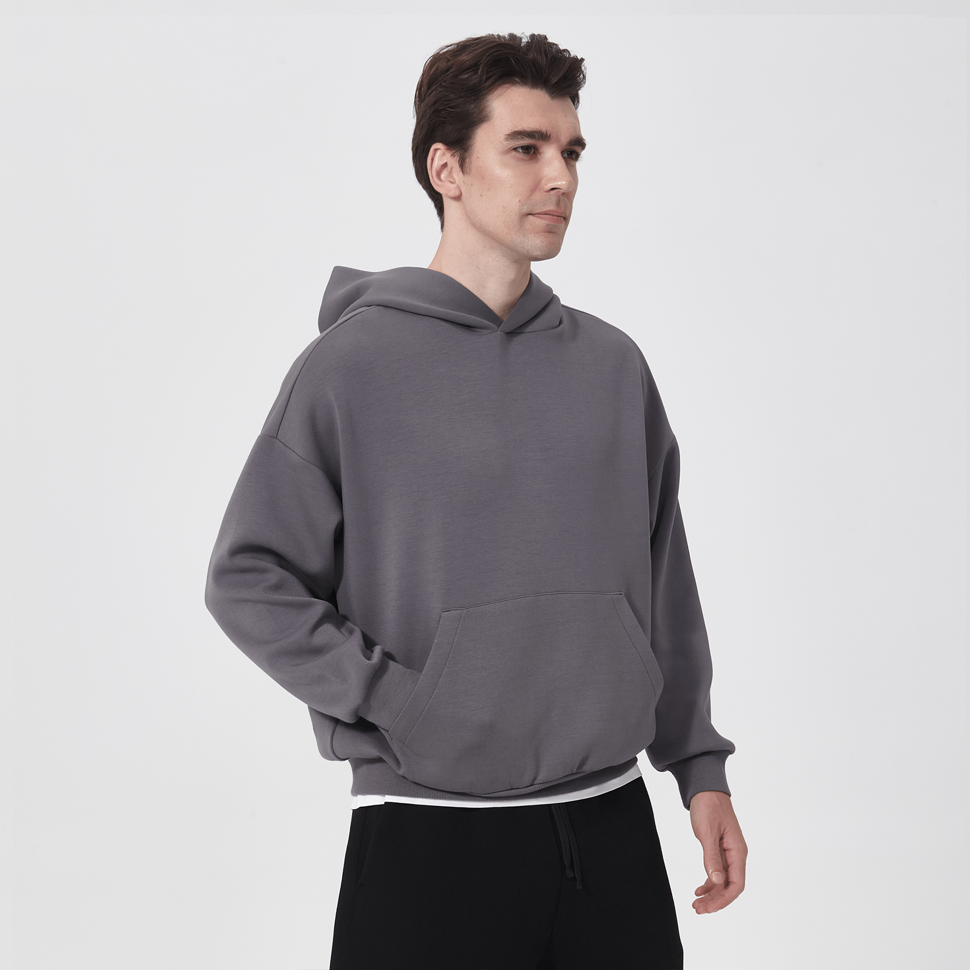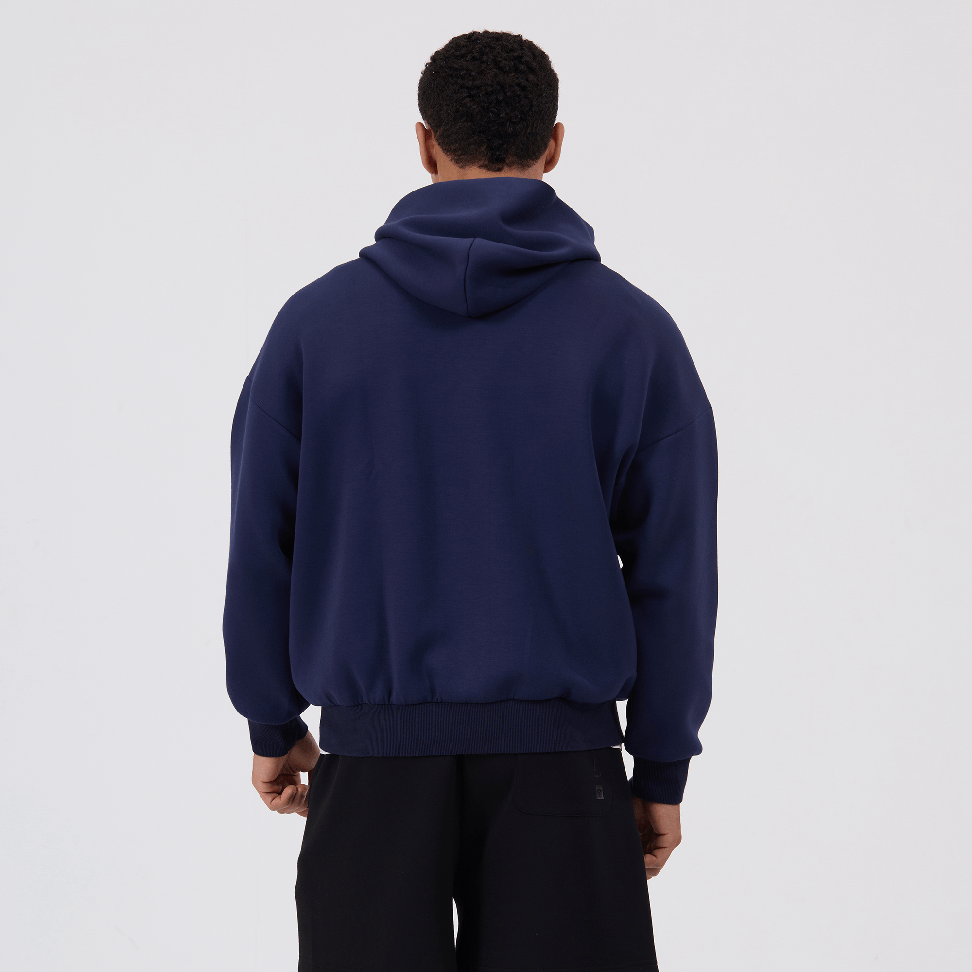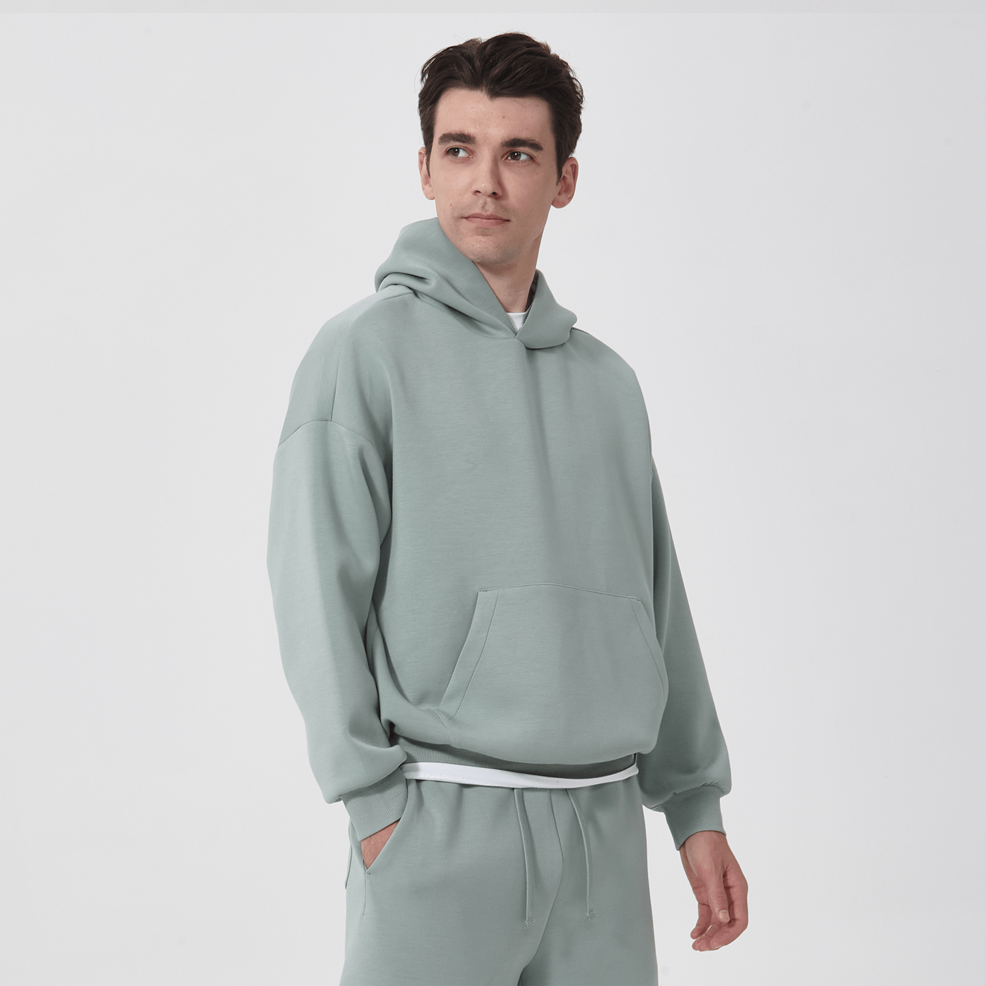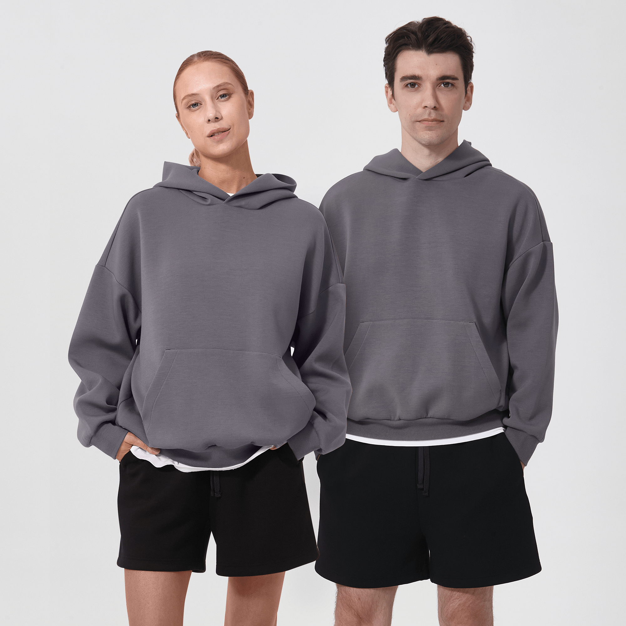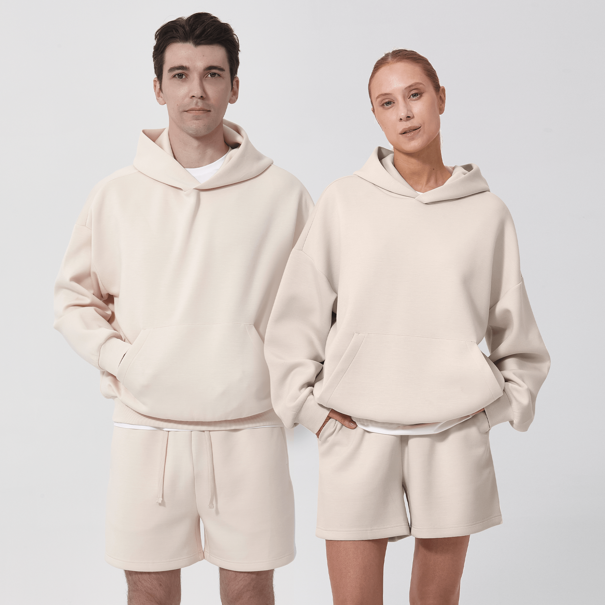 The Luxe Signature Hoodie redefines casual comfort with its unisex sizing and eco-friendly materials, making it a perfect choice for anyone looking to elevate their casual wear. Constructed from a sustainable blend of 50% recycled polyester, 43% viscose, and 7% spandex, this hoodie is designed for durability and comfort with a touch of stretch. It features an oversized drop shoulder silhouette that provides a relaxed, contemporary fit suitable for diverse body types. The classic kangaroo pocket adds practicality and warmth, while the ribbed body band and sleeve cuffs ensure a snug fit that retains its shape. Ideal for layering or wearing on its own, the Luxe Signature Hoodie combines effortless style with conscious manufacturing, offering a versatile and cozy addition to your wardrobe.