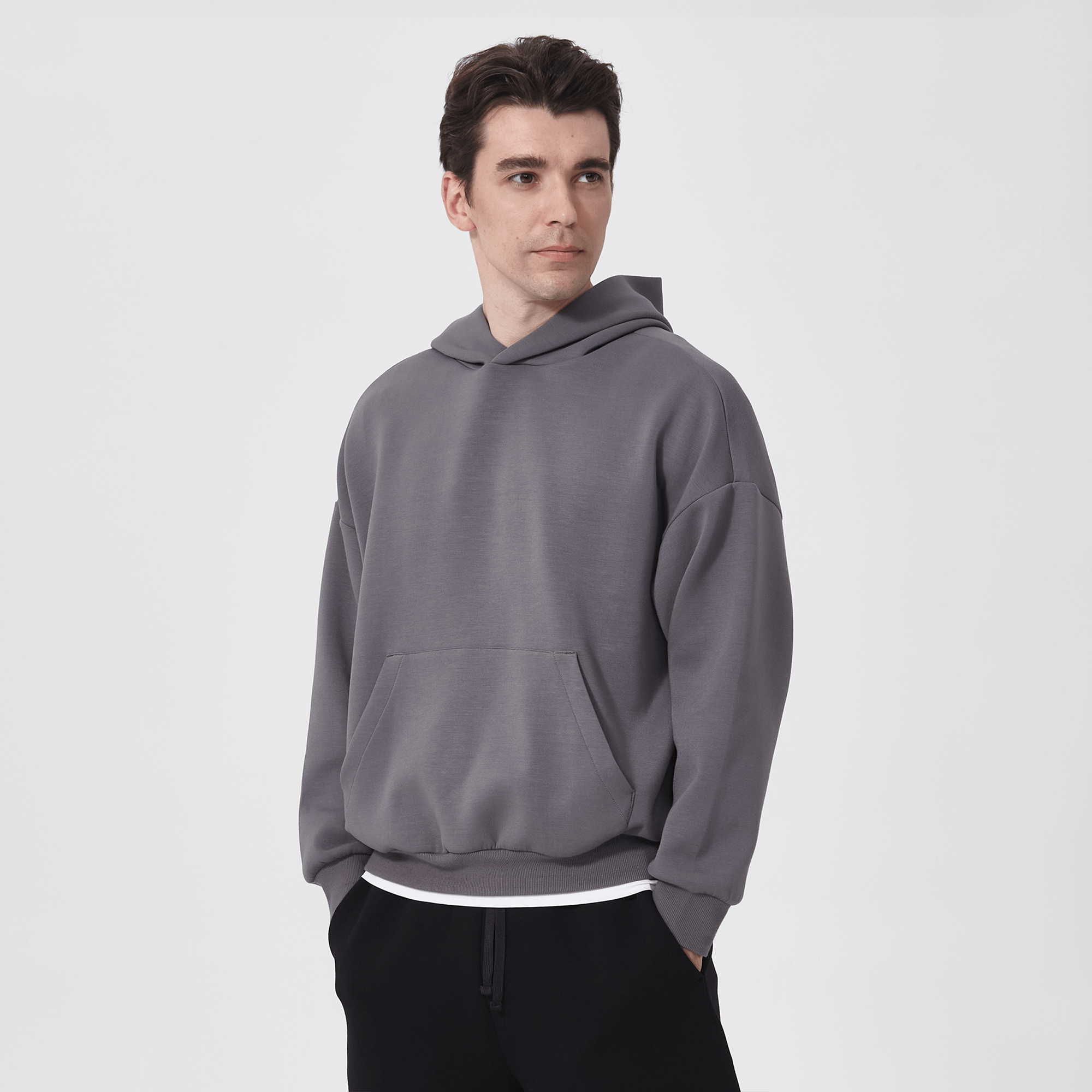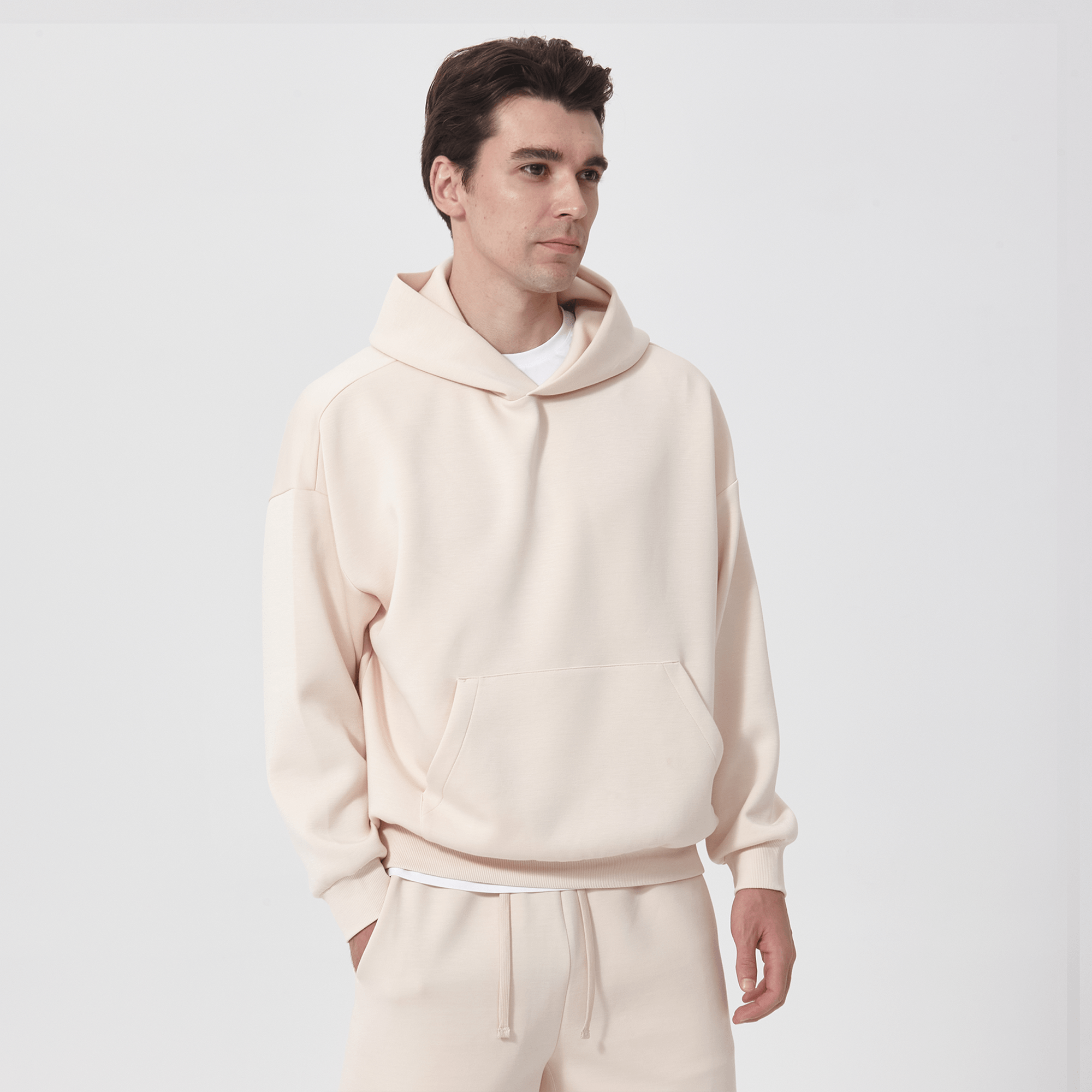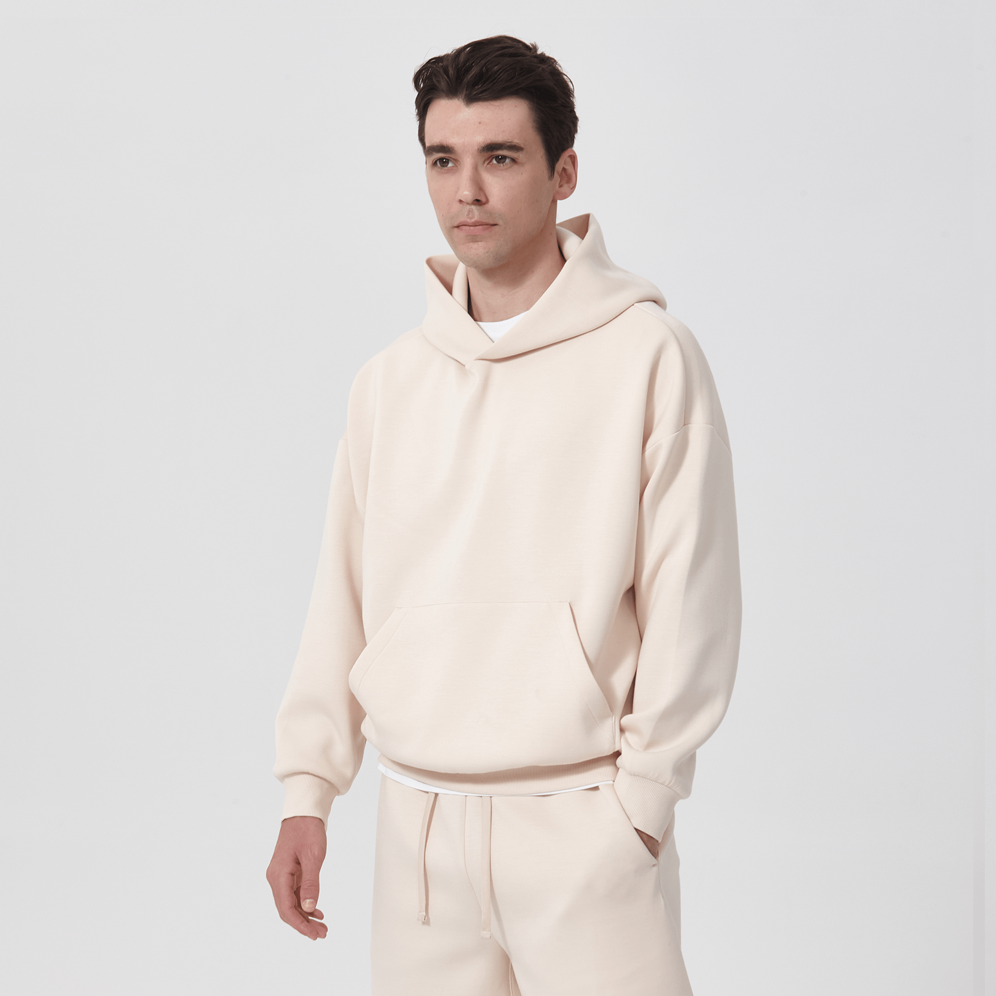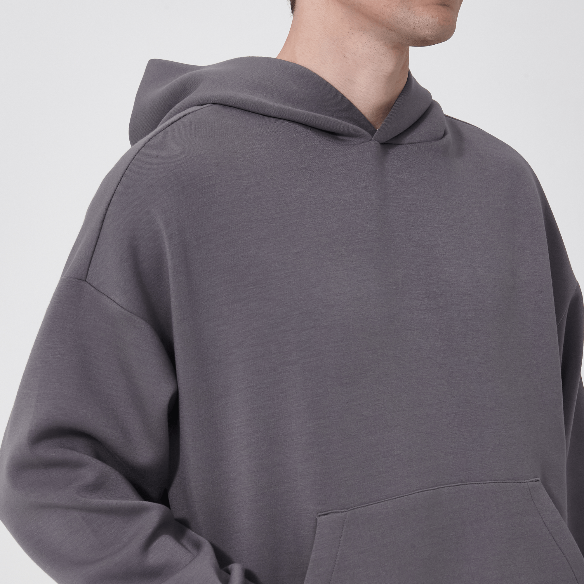 The Luxe Signature Hoodie redefines casual comfort with its unisex sizing and eco-friendly materials, making it a perfect choice for anyone looking to elevate their casual wear. Constructed from a sustainable blend of 50% recycled polyester, 43% viscose, and 7% spandex, this hoodie is designed for durability and comfort with a touch of stretch. It features an oversized drop shoulder silhouette that provides a relaxed, contemporary fit suitable for diverse body types. The classic kangaroo pocket adds practicality and warmth, while the ribbed body band and sleeve cuffs ensure a snug fit that retains its shape. Ideal for layering or wearing on its own, the Luxe Signature Hoodie combines effortless style with conscious manufacturing, offering a versatile and cozy addition to your wardrobe.