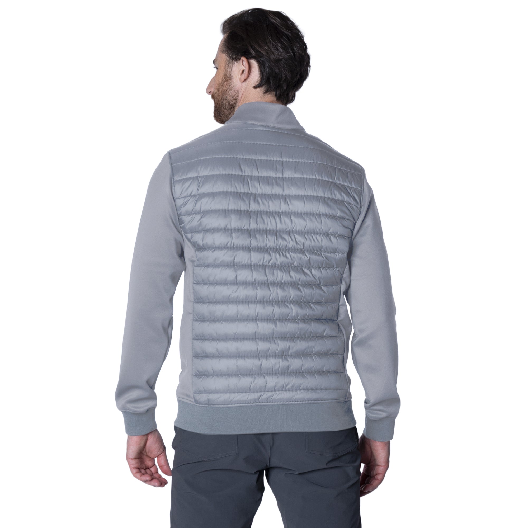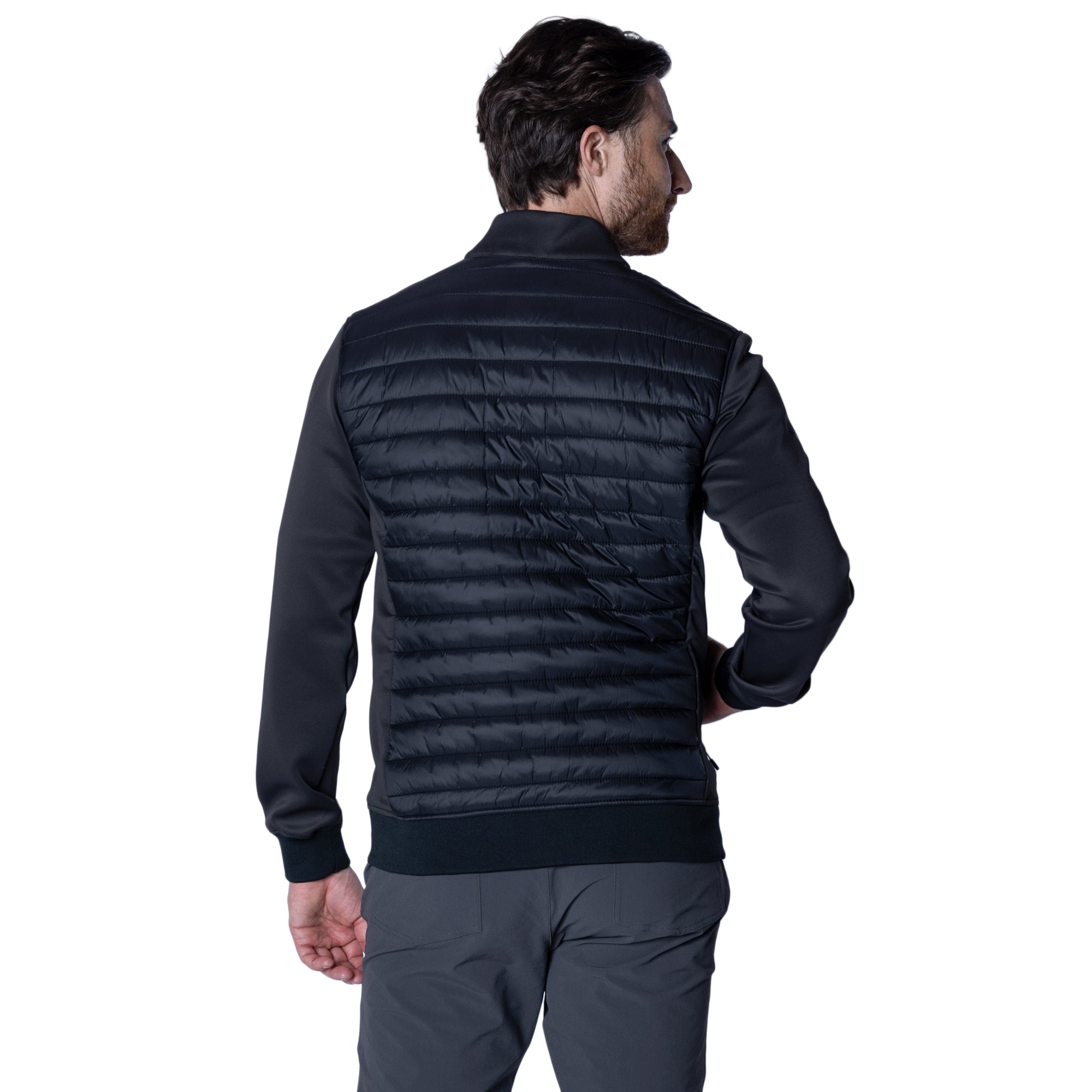 The Men's Micro Jacket is meticulously designed to offer style, comfort, and protection in cooler climates. This lightweight, quilted jacket is crafted from 100% nylon with a 100% polyester fill, providing excellent insulation while remaining light and easy to move in. Featuring a water-repellent finish, it stands up to unpredictable weather, ensuring you stay dry. The diagonal quilting pattern not only adds a modern aesthetic but also enhances the jacket's structure for improved warmth. Contrast knit fabric sleeves and side panels offer a dynamic look and increased mobility, making this jacket as functional as it is fashionable. Additionally, zippered side pockets provide secure storage for essentials, while the ribbed bottom hem and cuffs ensure a snug fit that keeps the cold out. Whether you're navigating the city or embarking on an outdoor adventure, the Micro Jacket is an ideal choice for staying warm and stylish.