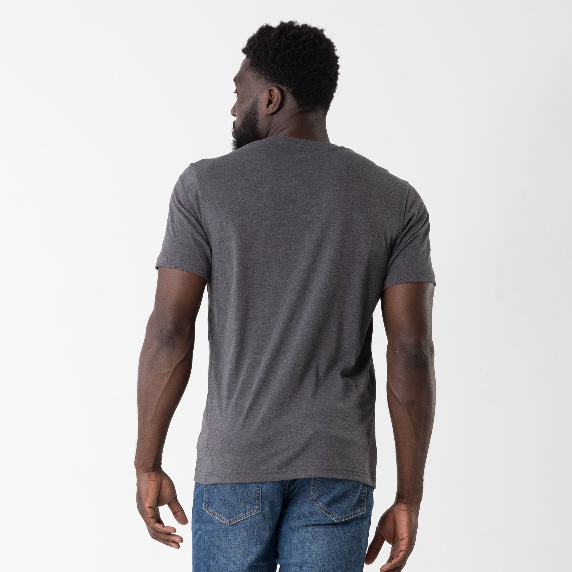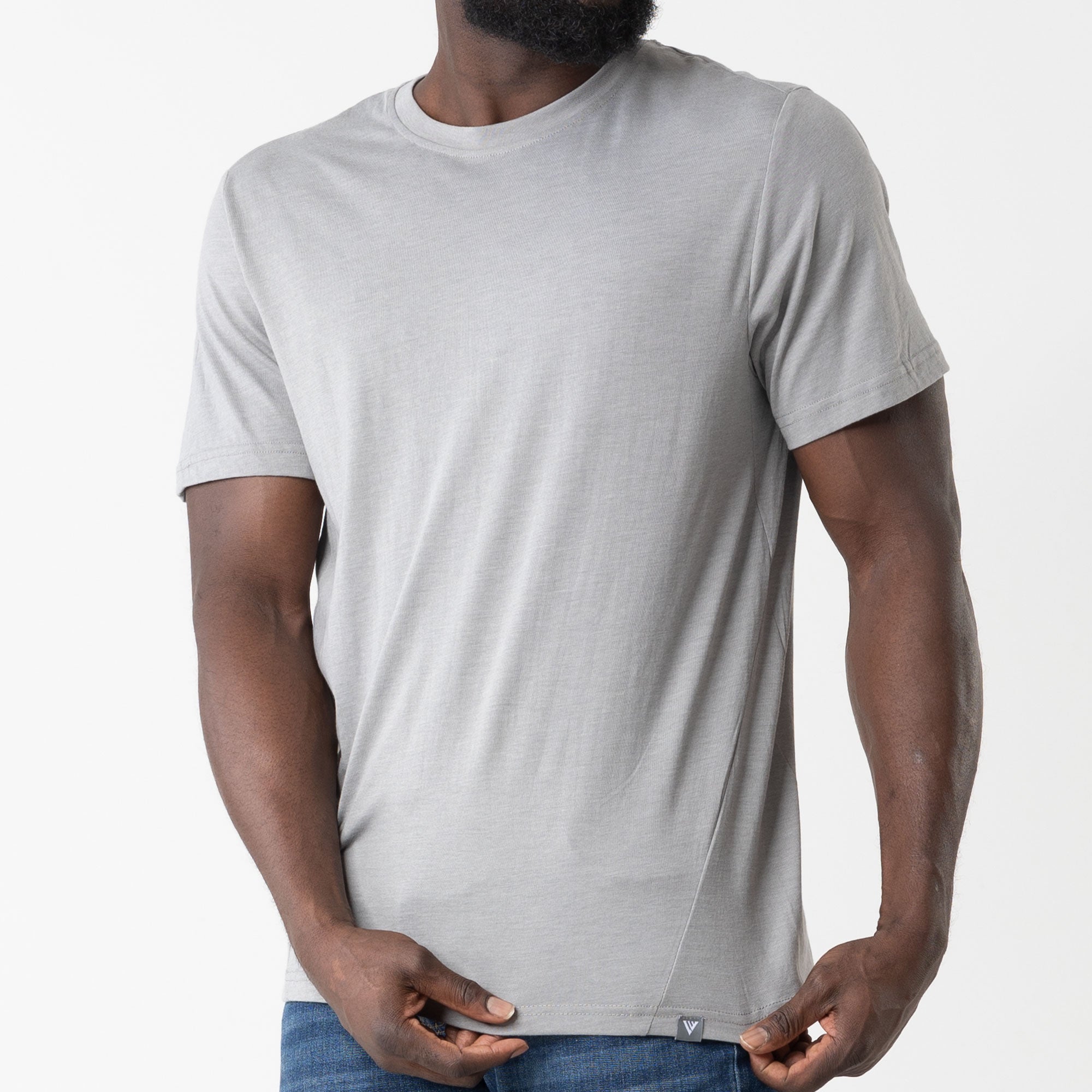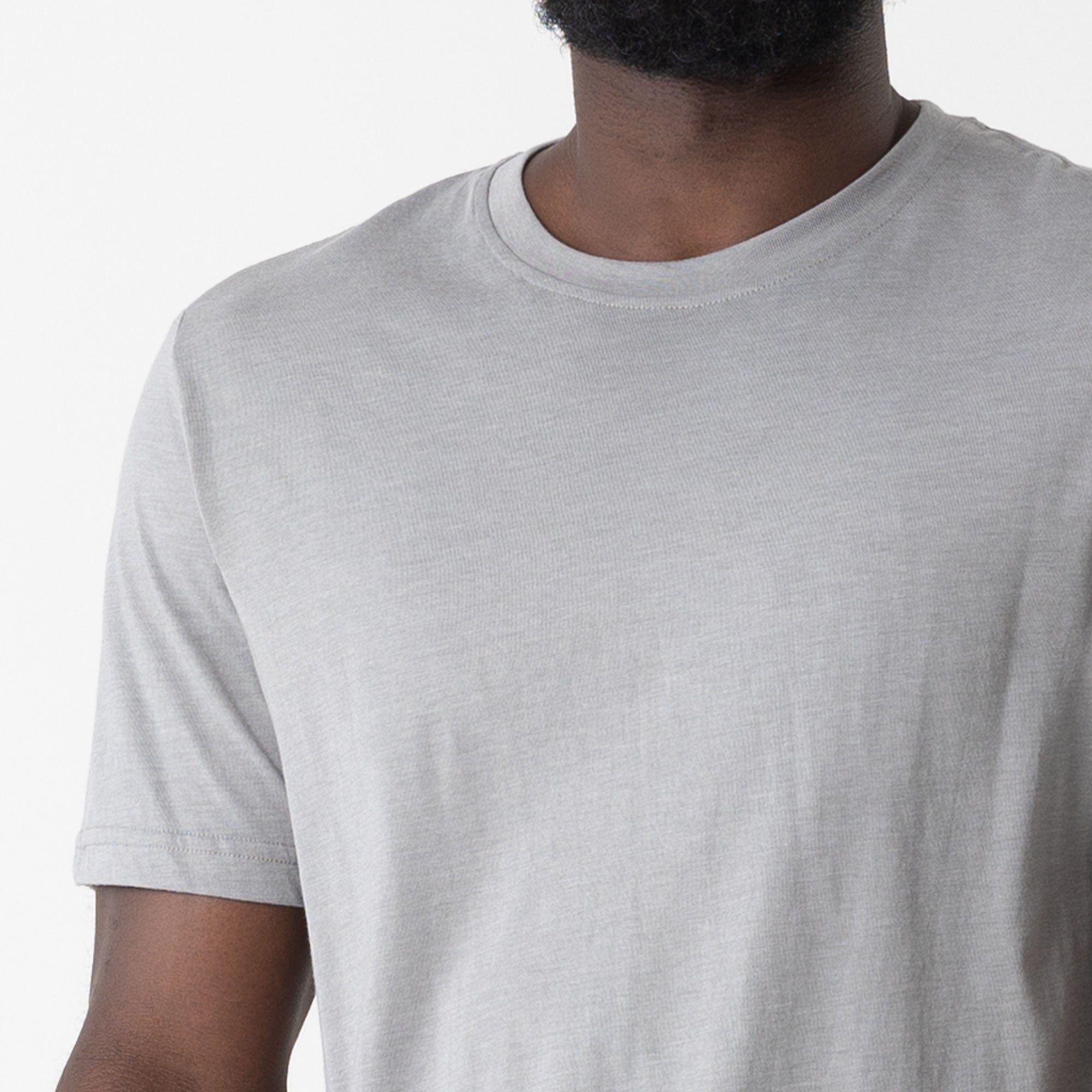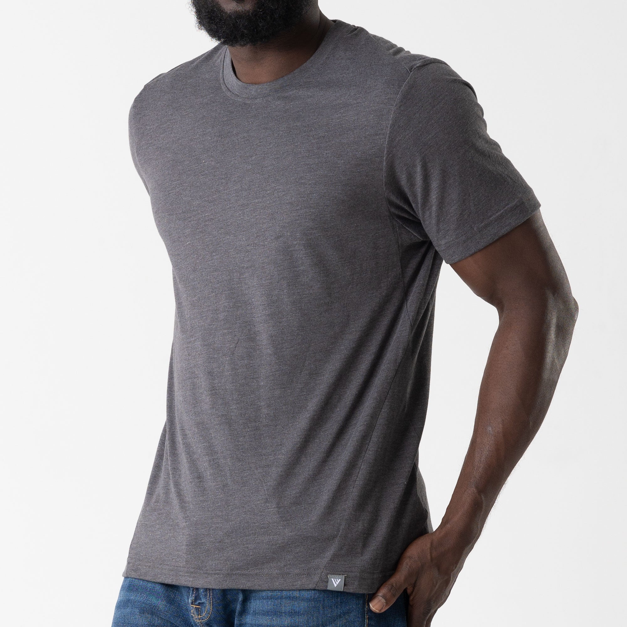 The Thrive t-shirt is a standout piece in any casual or active wardrobe. This t-shirt is constructed from a tri-blend of 50% polyester, 25% cotton, and 25% rayon, combining the durability of polyester, the comfort of cotton, and the luxurious feel of rayon. This unique fabric composition ensures a soft texture, excellent moisture management, and a slight stretch for freedom of movement. Featuring roll forward shoulder seams, the Thrive T-Shirt offers an ergonomic fit that enhances comfort during physical activity, reducing friction and increasing mobility. Additionally, the cut and sew panels not only add a modern aesthetic touch but also contribute to the shirt's overall structural integrity. Ideal for a workout session or as part of your everyday attire, the Thrive T-Shirt delivers on both performance and style.