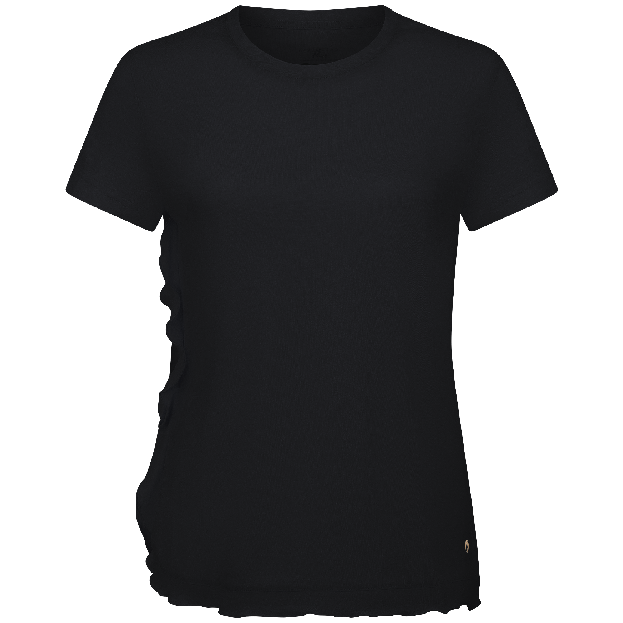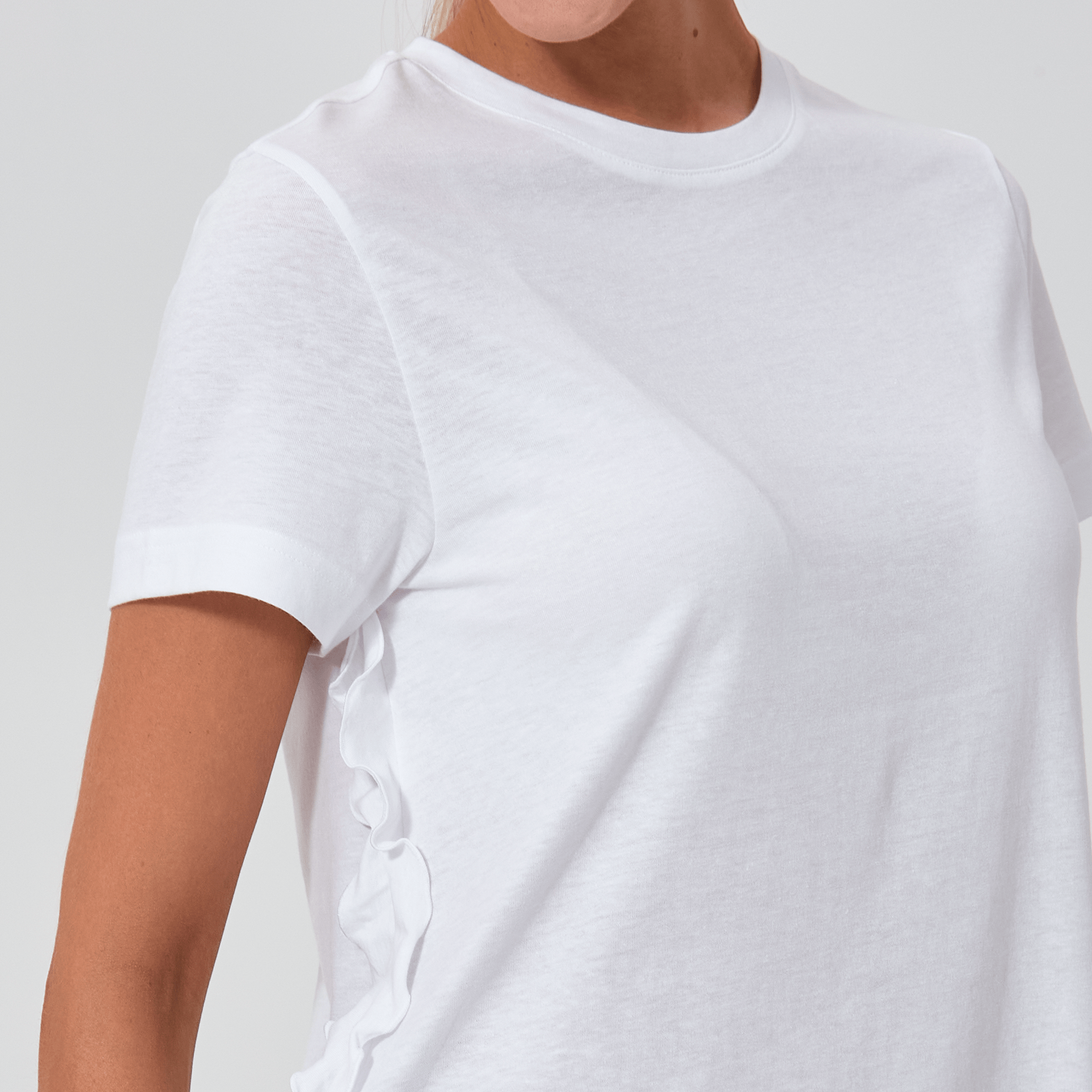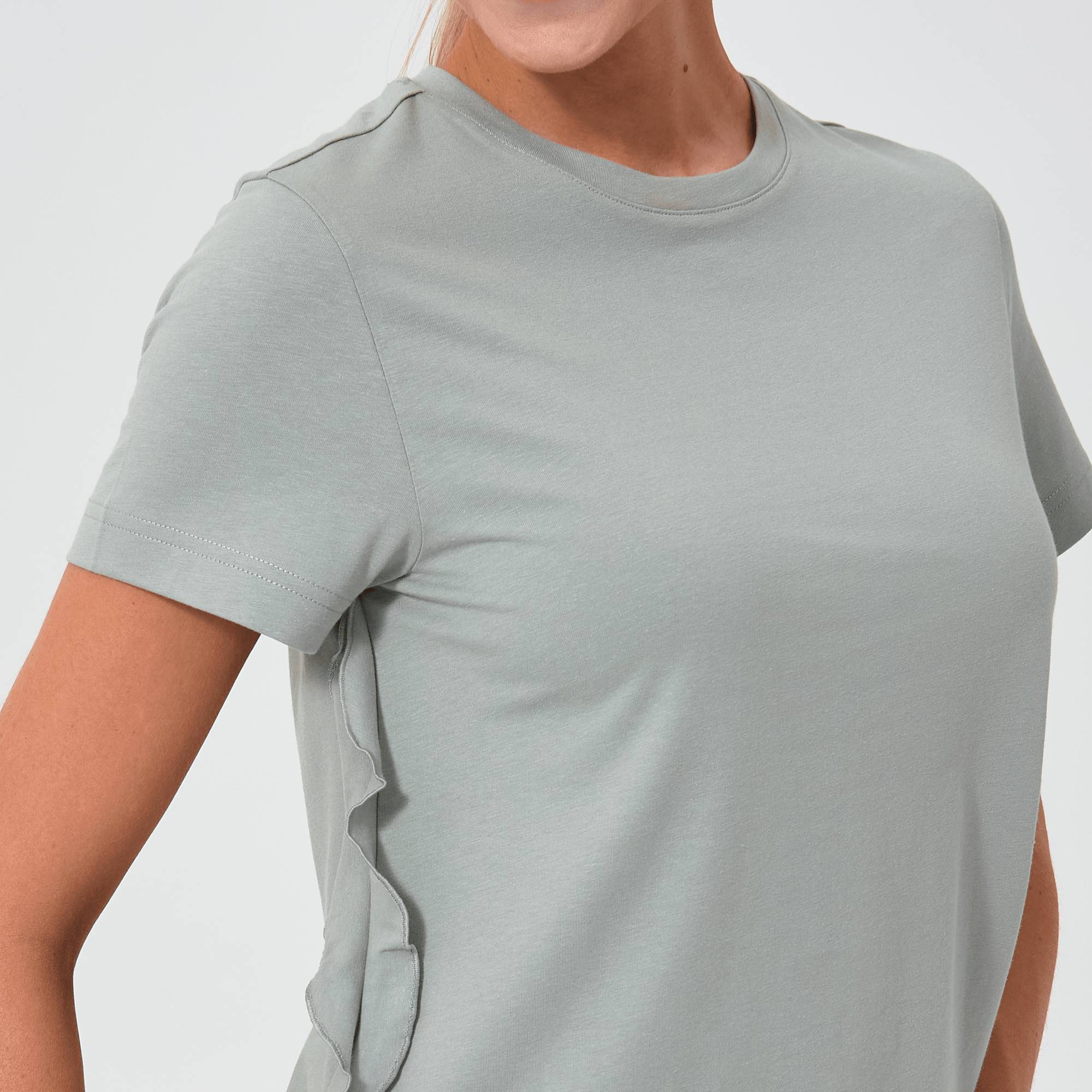 The Verve Airflow t-shirt is a delightful addition to any casual wardrobe. Designed with a flowing A-line silhouette, this top is crafted from a soft mix of 60% cotton and 40% polyester, ensuring breathability and ease of wear. A charming flounced detail runs along the side seam to the body hem, adding a playful and graceful touch to the garment. Whether you're running errands or enjoying a weekend brunch, the Airflow t-shirt is perfect for those who love a relaxed yet stylish look.