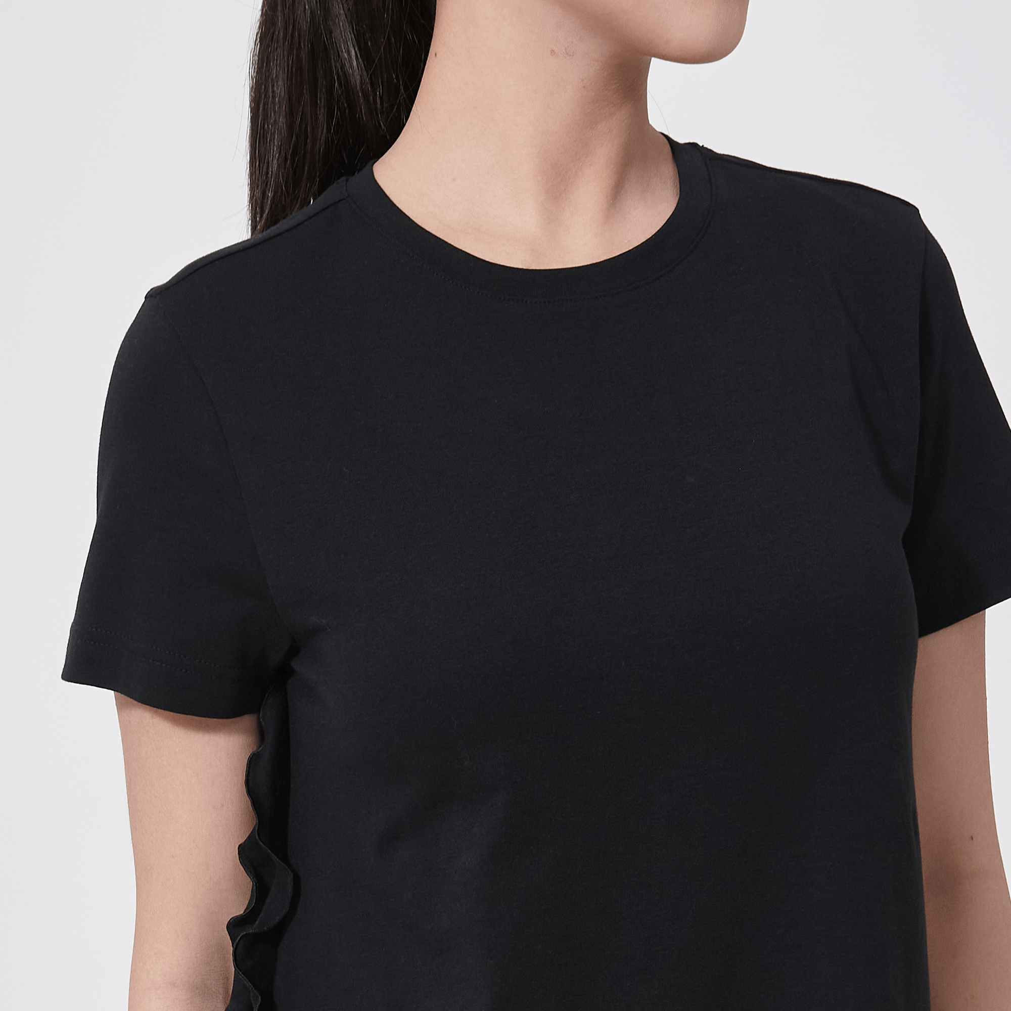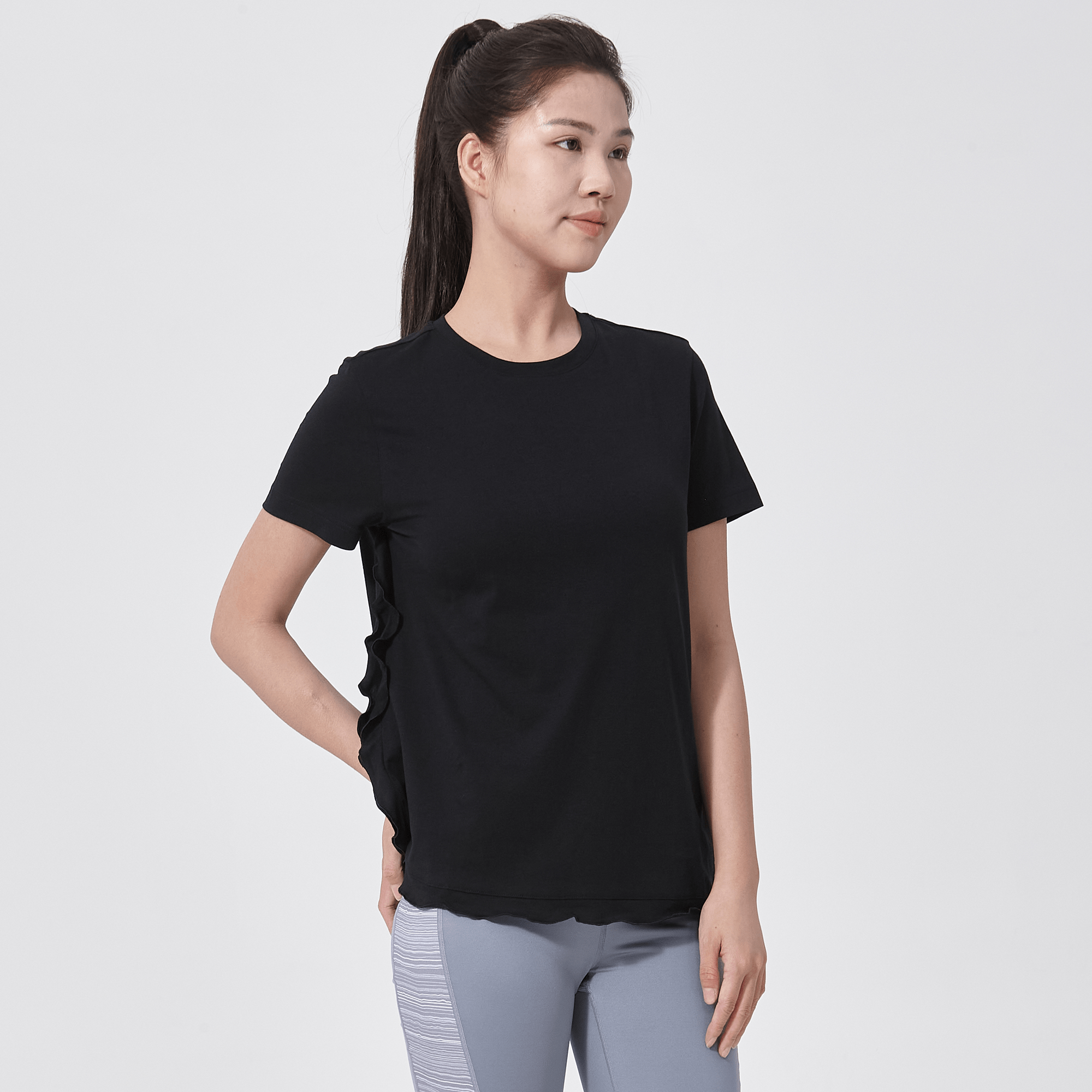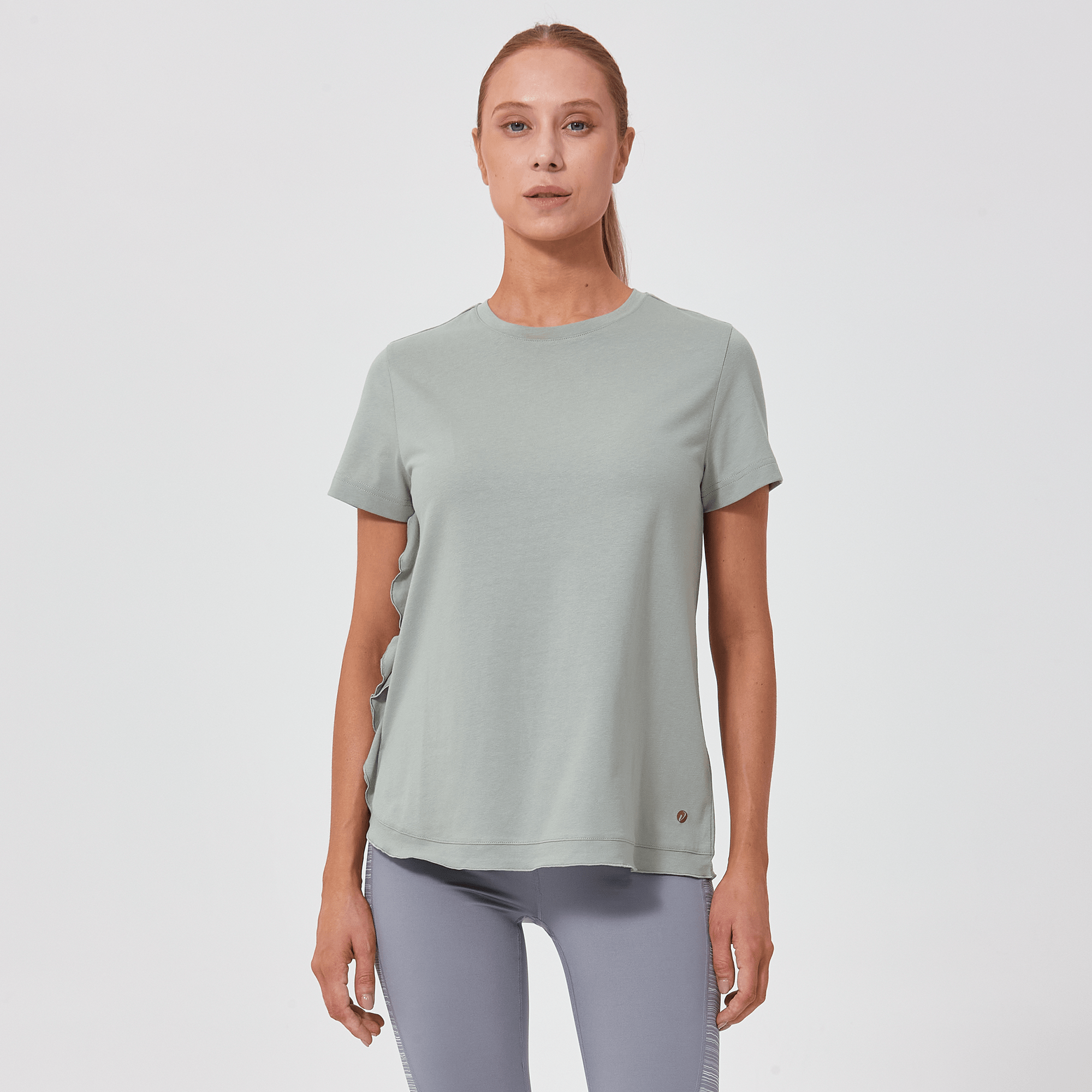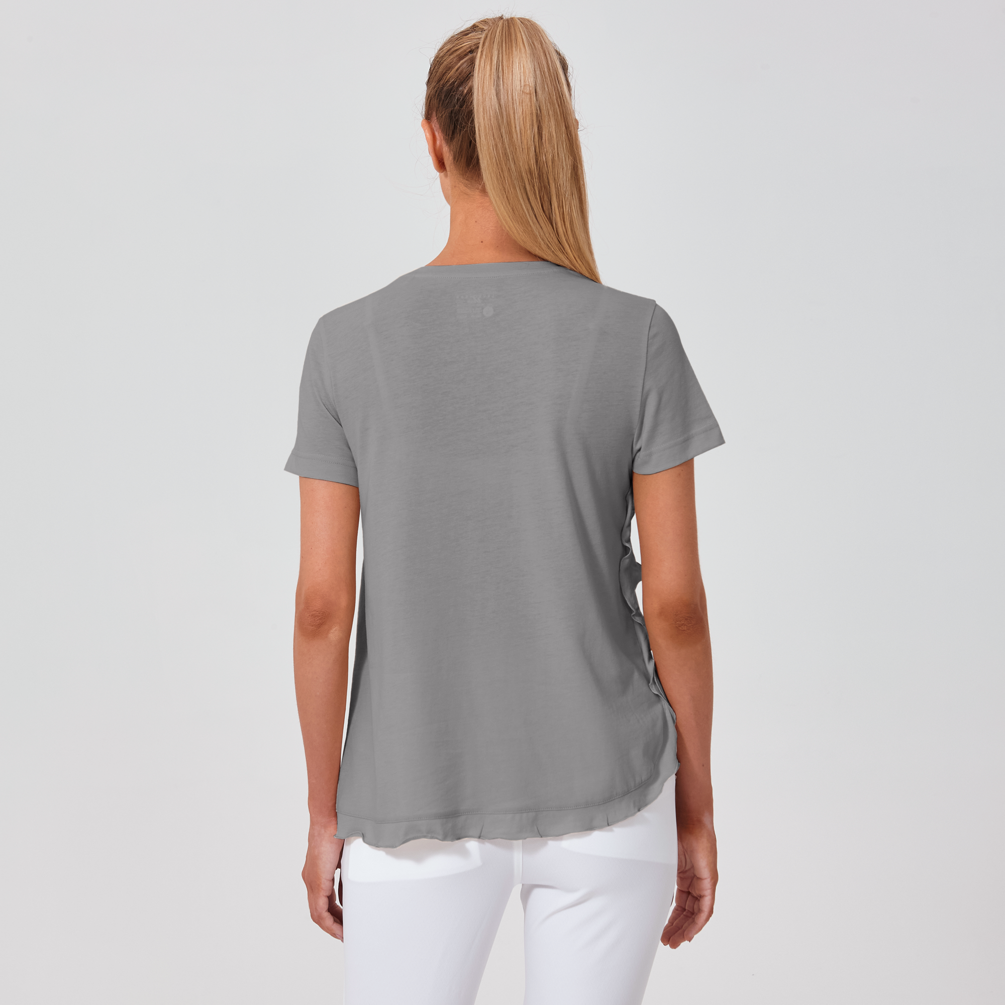 The Verve Airflow t-shirt is a delightful addition to any casual wardrobe. Designed with a flowing A-line silhouette, this top is crafted from a soft mix of 60% cotton and 40% polyester, ensuring breathability and ease of wear. A charming flounced detail runs along the side seam to the body hem, adding a playful and graceful touch to the garment. Whether you're running errands or enjoying a weekend brunch, the Airflow t-shirt is perfect for those who love a relaxed yet stylish look.