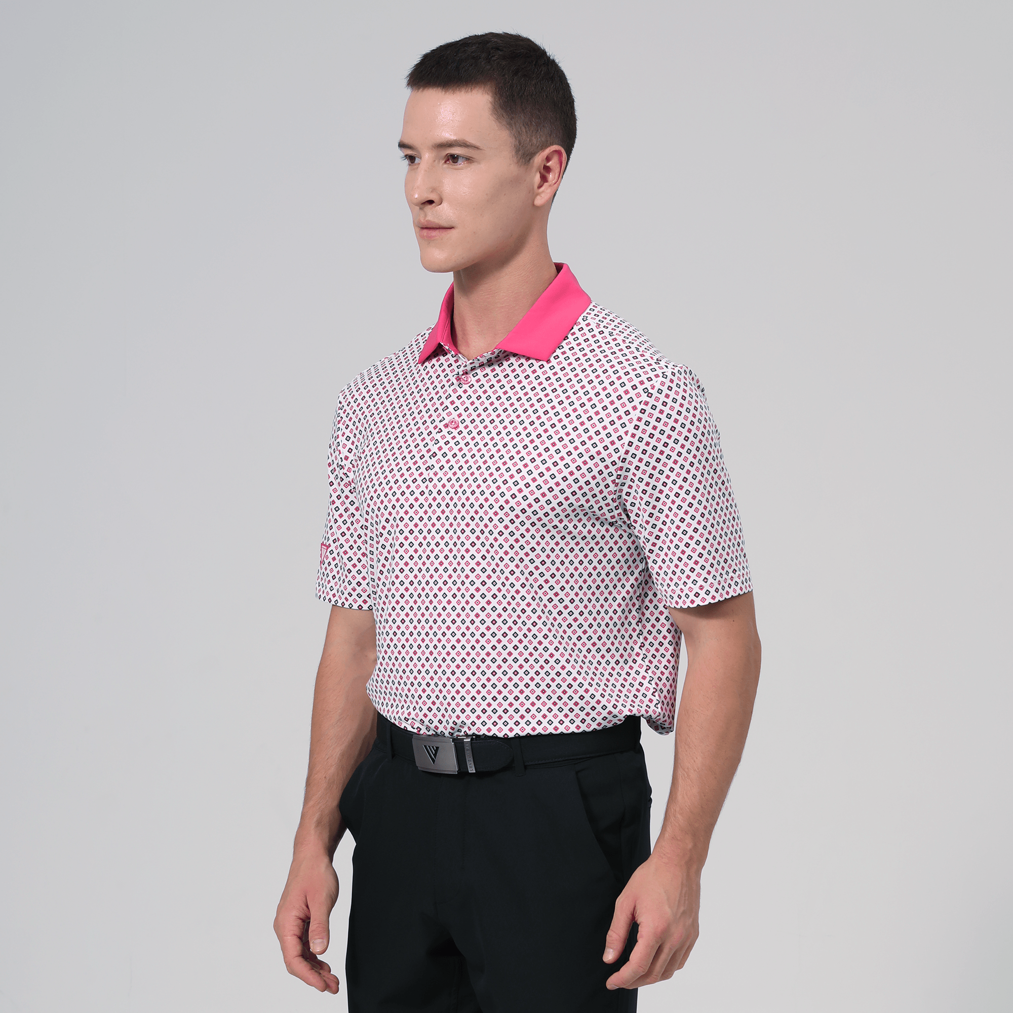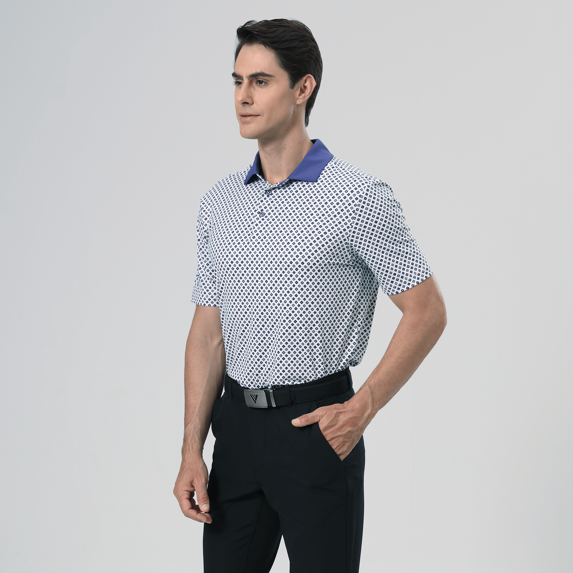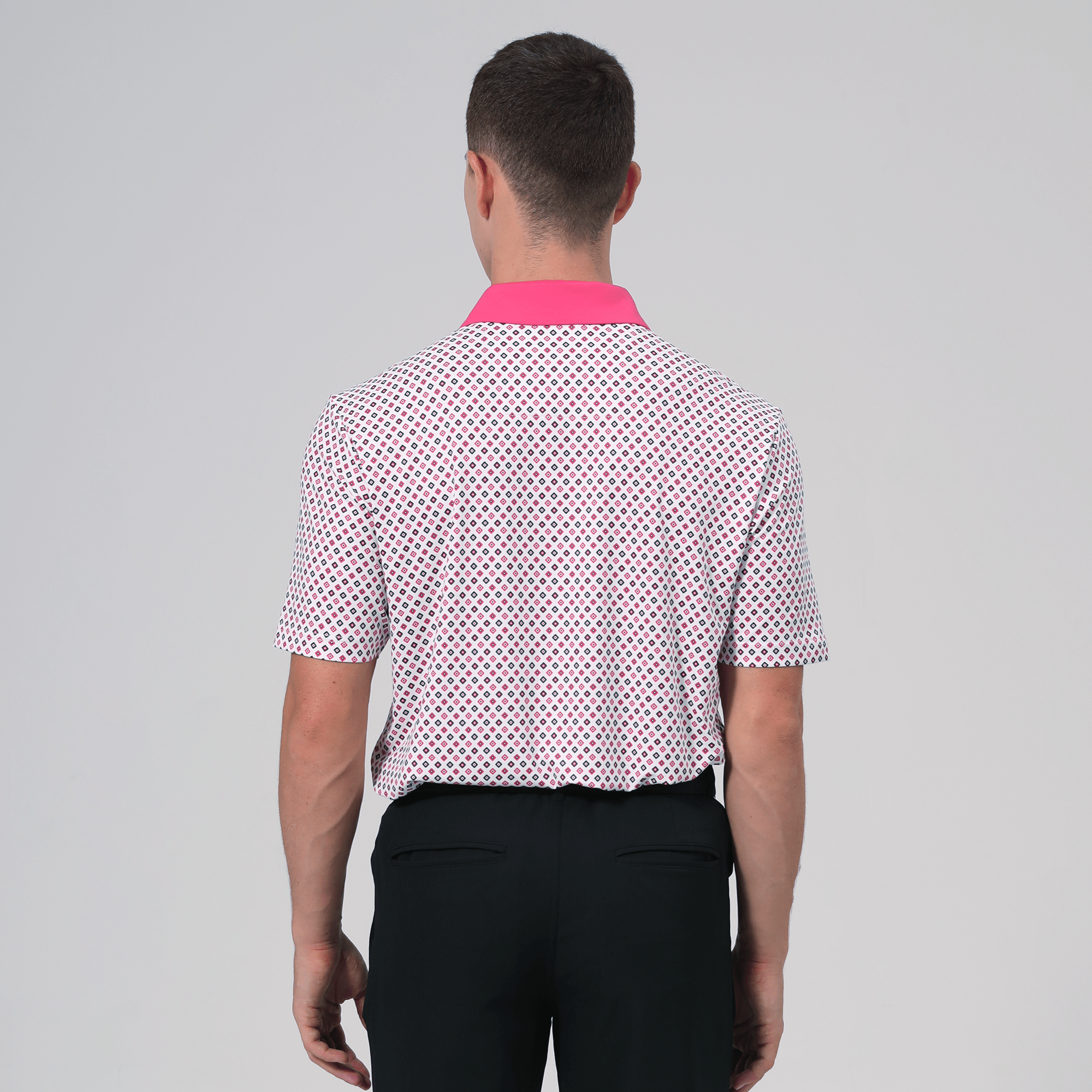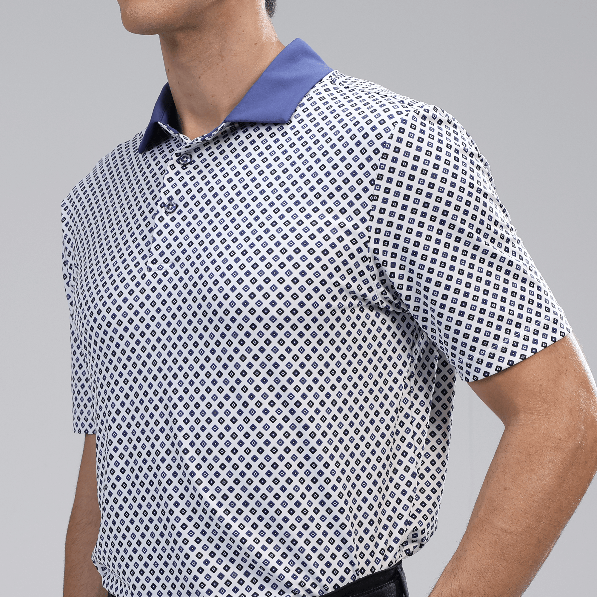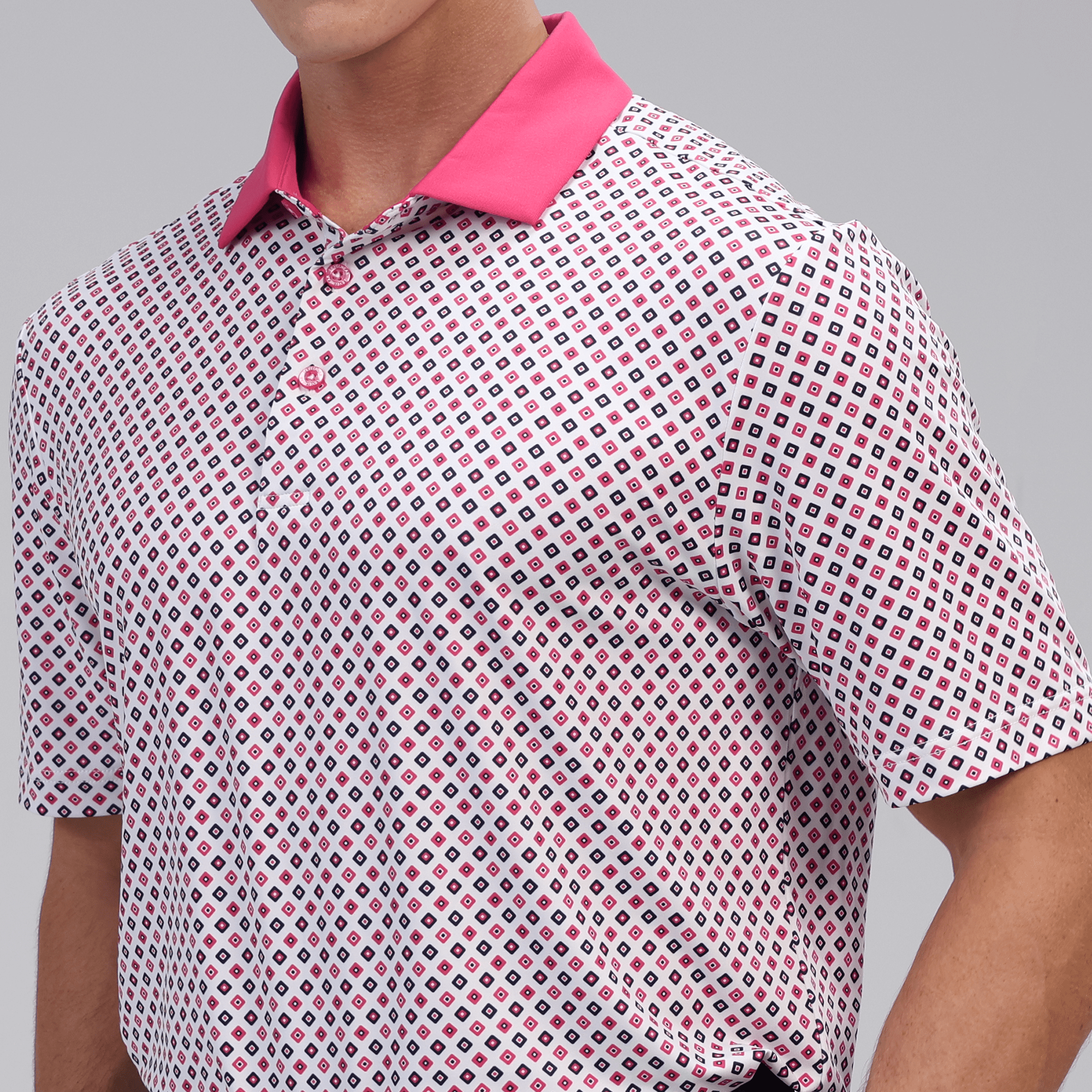Le polo Diamonite allie style et performance, ce qui en fait un choix incontournable pour les golfeurs. Composé d'un mélange de 93 % de polyester et de 7 % d'élasthanne, il offre une excellente évacuation de l'humidité pour vous garder au frais et au sec sur le parcours. Son indice UPF 50+ assure une protection contre les rayons UV nocifs, idéal pour les longues journées en extérieur. Son col contrasté en tissu avec baleine intégrée lui confère un look élégant et soigné. Les coutures avancées aux épaules améliorent la mobilité, permettant une liberté de mouvement totale pendant le swing, tandis que l'ourlet asymétrique avec fentes latérales offre confort et souplesse. Son imprimé intégral apporte une touche dynamique, faisant du polo Diamonite un atout élégant et fonctionnel pour toute garde-robe de golfeur.
