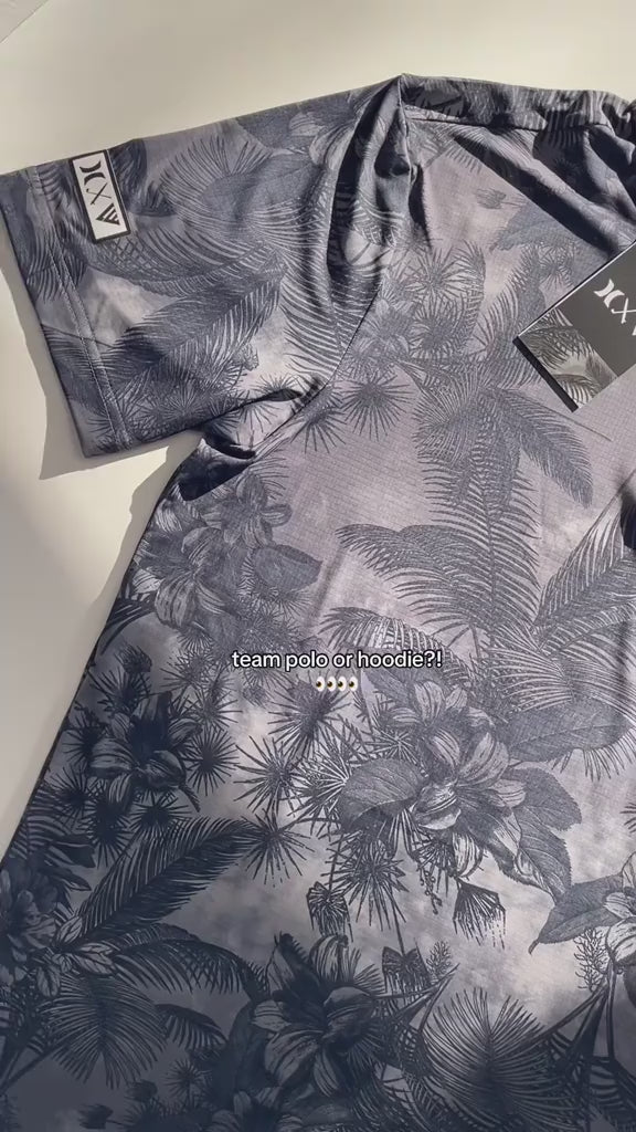 Un polo polyvalent au motif saisissant, décliné dans de subtiles nuances de noir et de gris. Confectionné en jacquard recyclé extensible, respirant et antibactérien, il dégage une allure décontractée et insulaire, idéale aussi bien sur le green qu'en bord de mer ou en soirée. * De par la nature du tissu, chaque pièce est unique et le placement du motif peut légèrement varier.