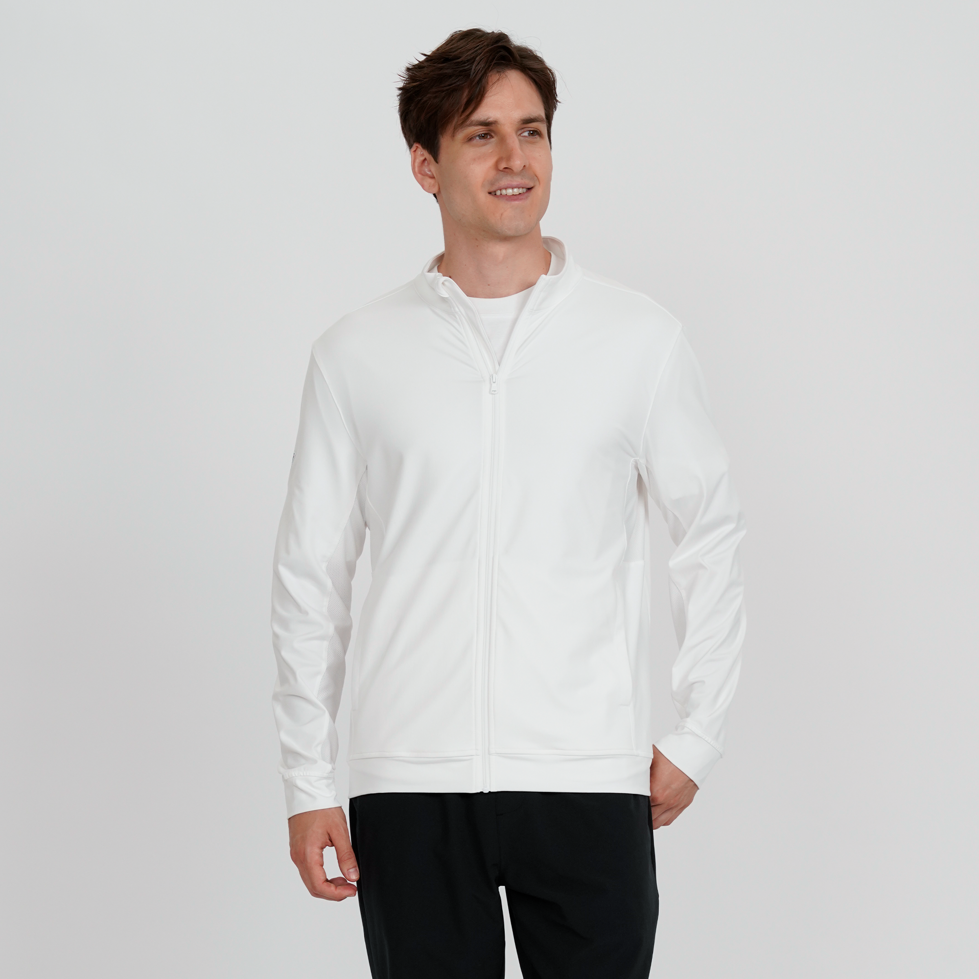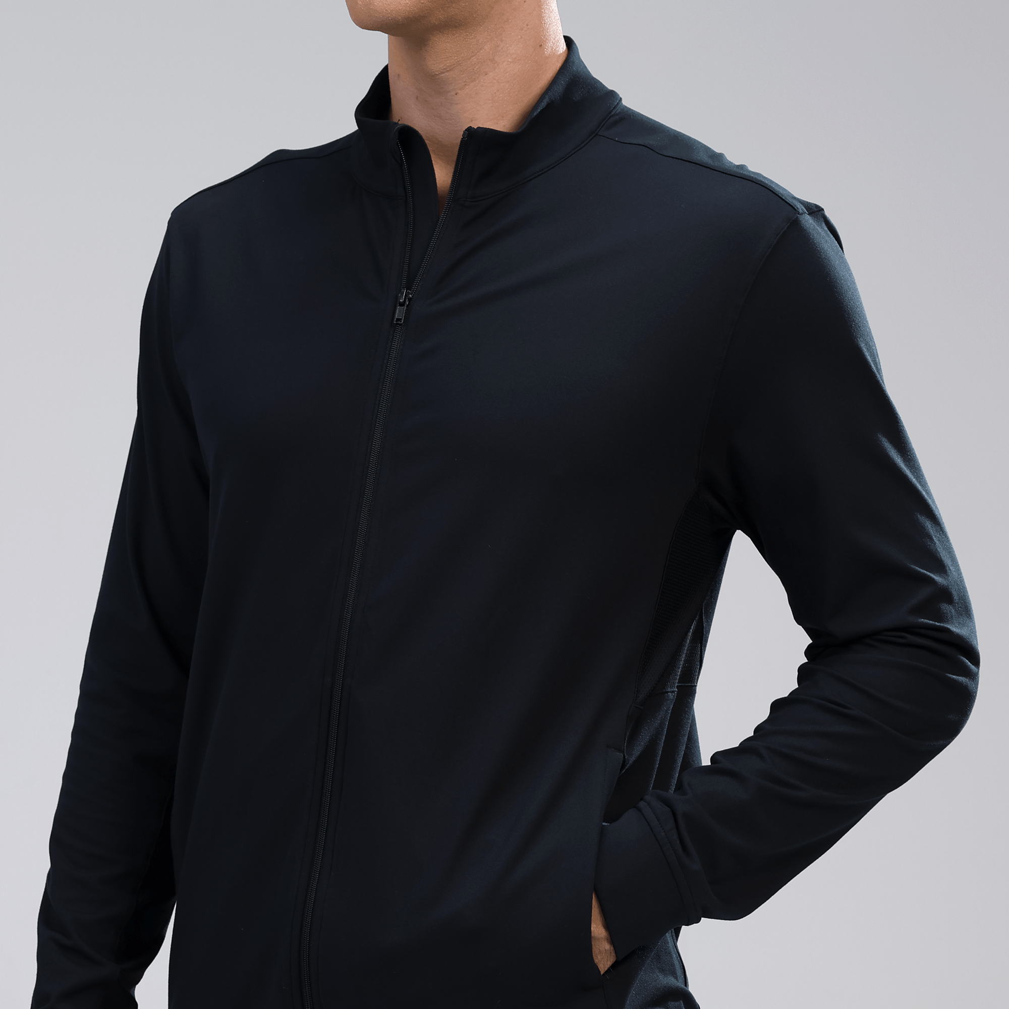 - CONTRAST MESH PANELS AT UNDERARM AND UNDER SLEEVE PANELS