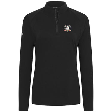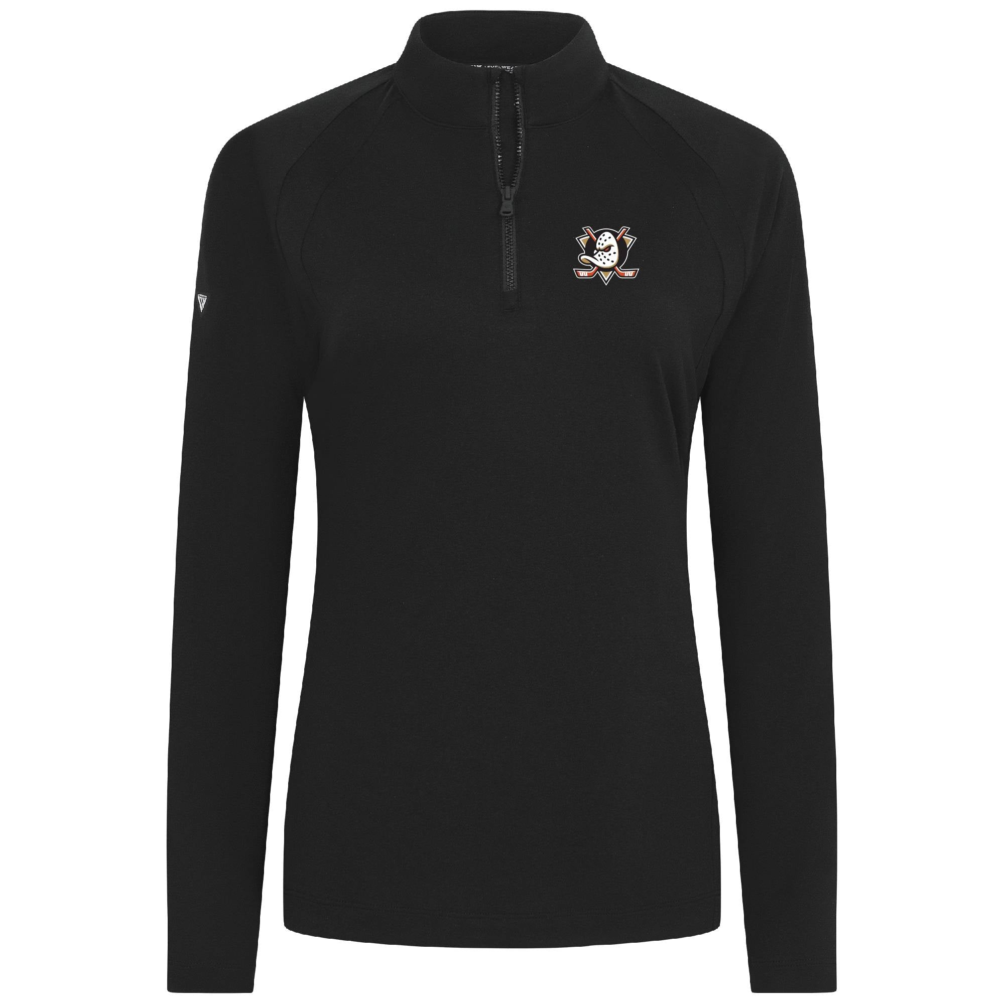 The women's Flex midlayer combines technical functionality with contemporary design, ideal for the active woman on the go. This midlayer is engineered with moisture-wicking technology to keep you dry and comfortable during vigorous activities, whether you're hitting the gym or exploring the outdoors. It features a quarter-zip closure with a contrast stand-up collar that allows for easy temperature regulation and adds a modern touch. The stylized front yoke and back yoke enhance the garment's structure, while mesh venting under the back yoke ensures optimal breathability and cooling. Finished with a high-low hem detail, this piece provides additional coverage and a flattering silhouette.