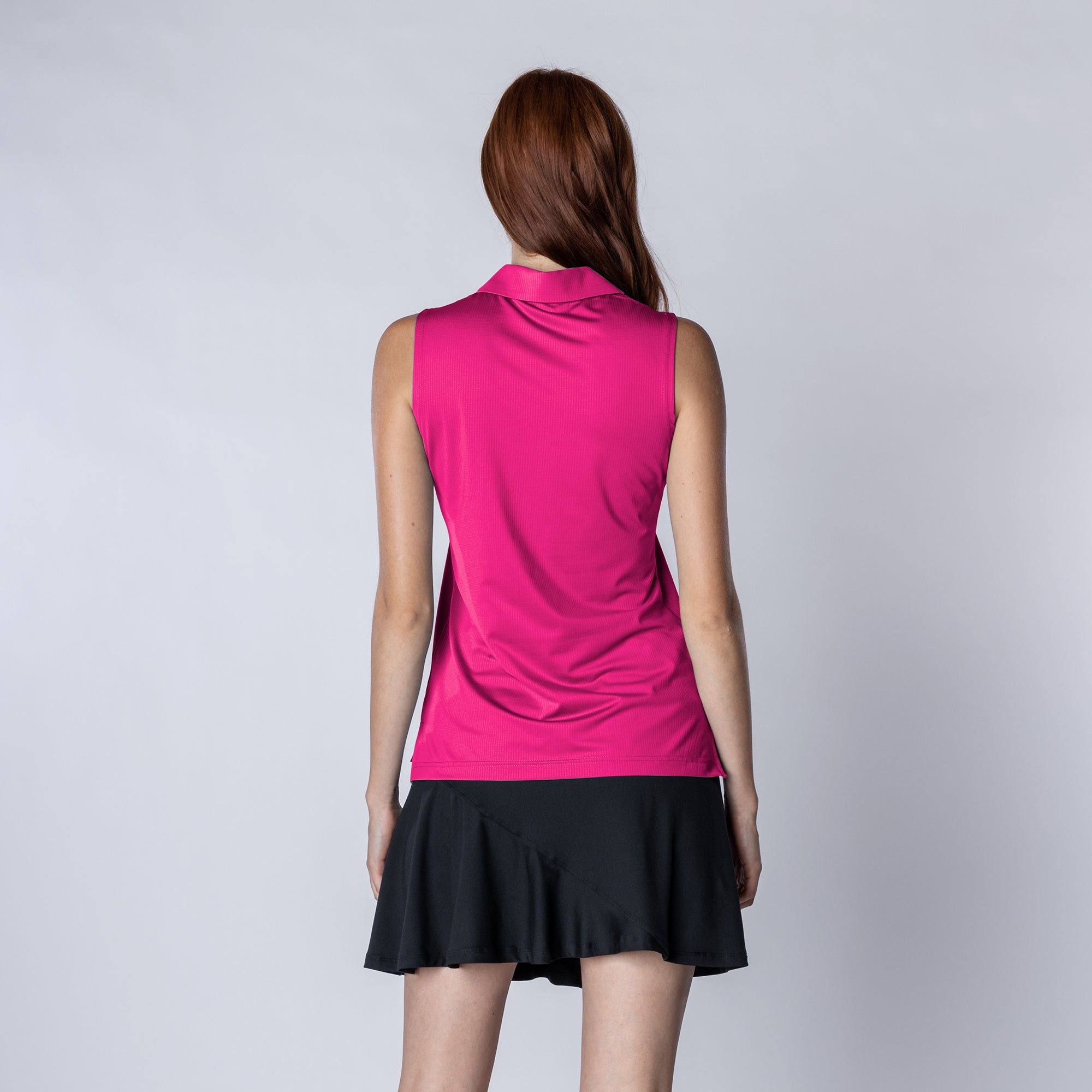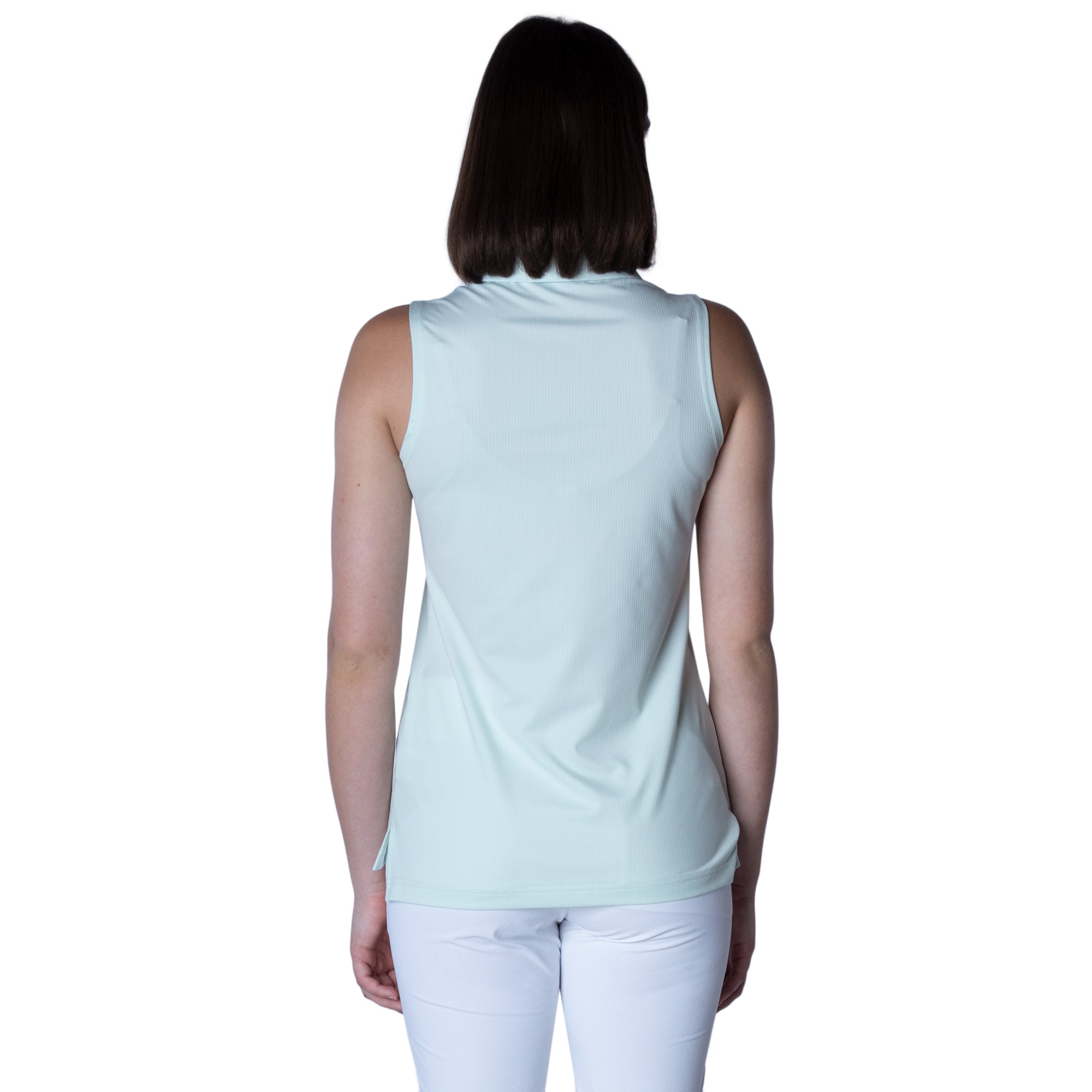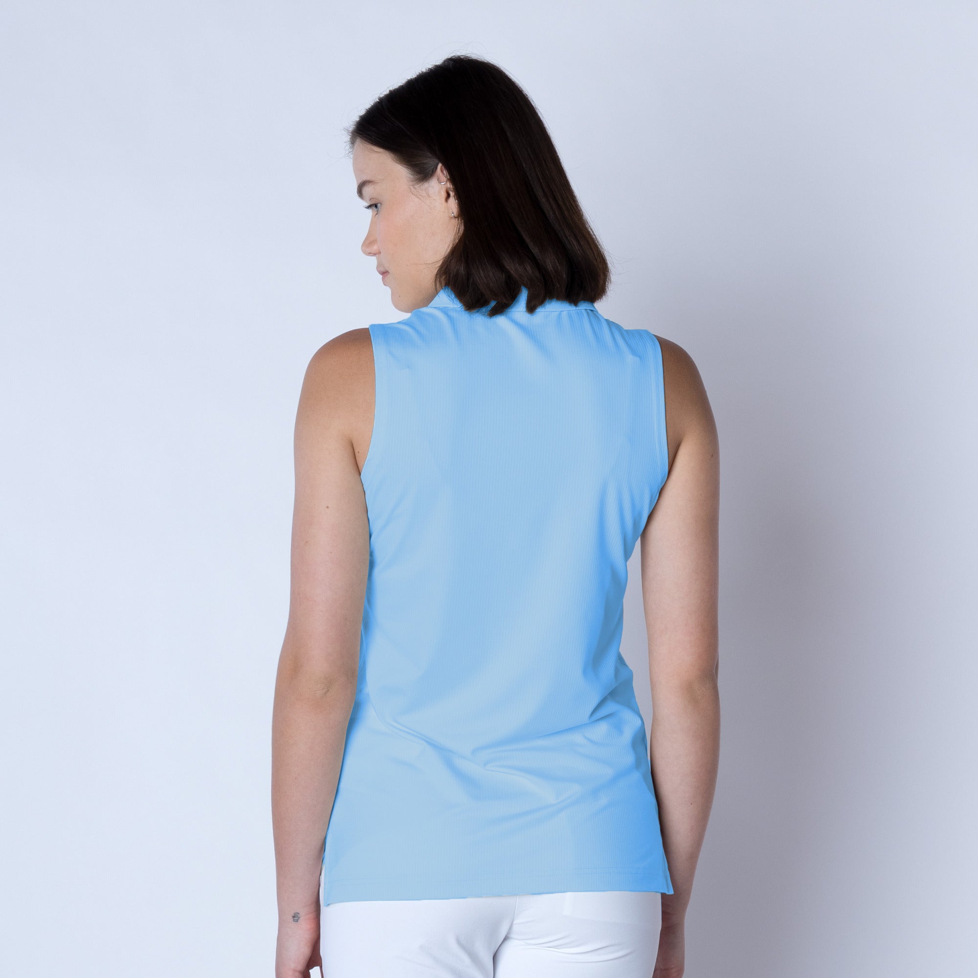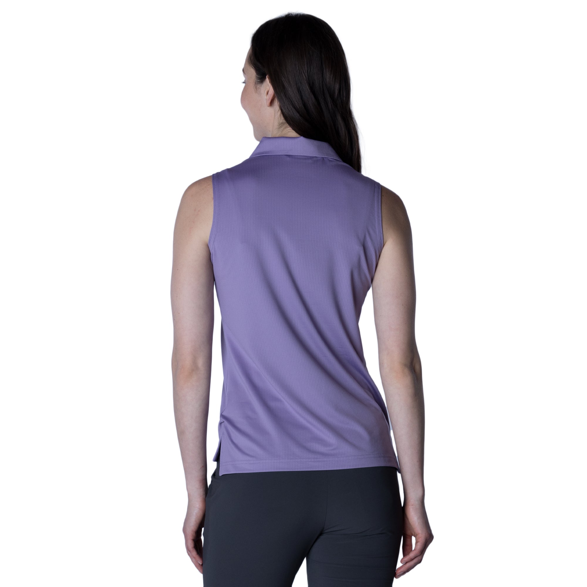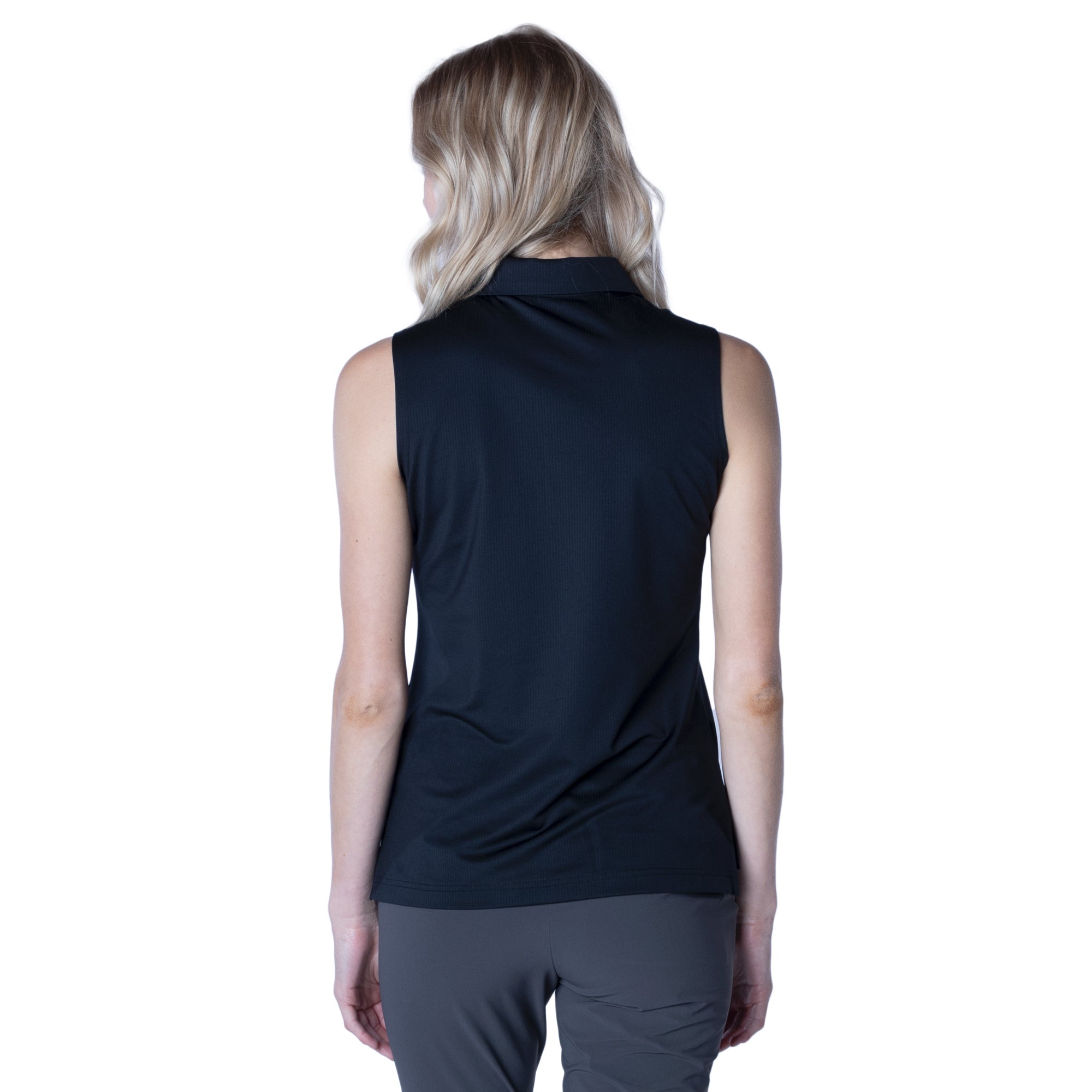 The women's Aries polo is made from a flexible blend of 92% polyester and 8% spandex, this sleeveless polo enhances movement while providing a comfortable fit. It is equipped with moisture-wicking technology that efficiently absorbs sweat, ensuring you remain dry and comfortable as you play. An anti-microbial finish prevents odor buildup, keeping you fresh from the first tee to the last hole. The self-fabric collar and three-button placket uphold a classic golf look, complemented by a modern high-low hem and side slits for added elegance and ease of movement. Perfect for a day on the greens, the Aries Polo combines performance-driven features with contemporary design to ensure you look and feel your best throughout the game.