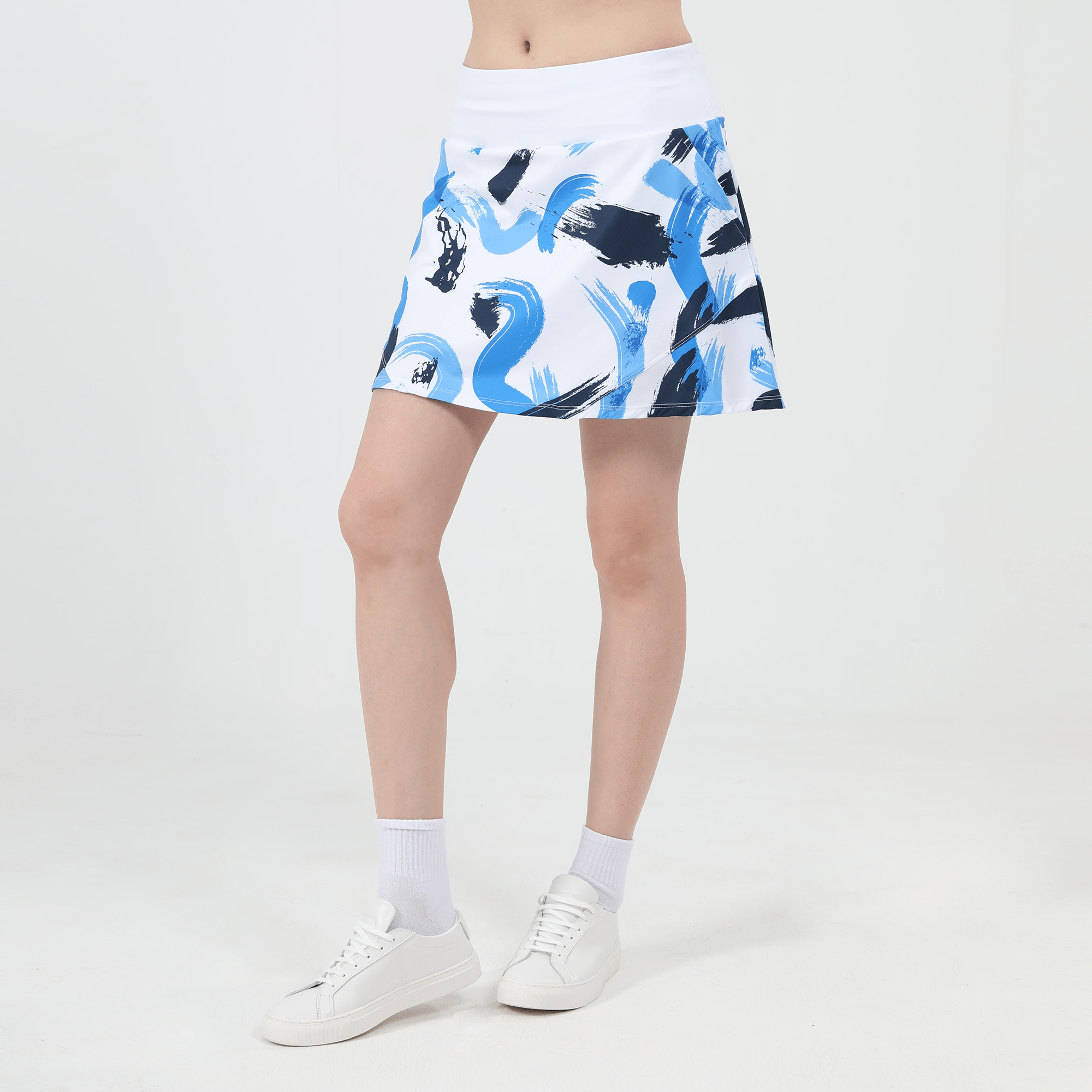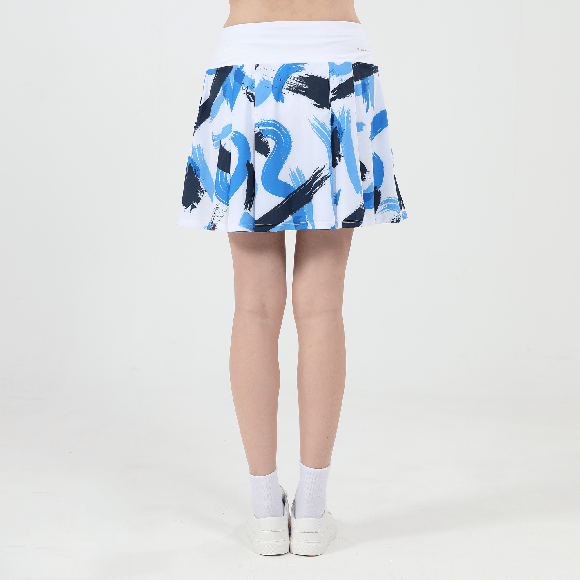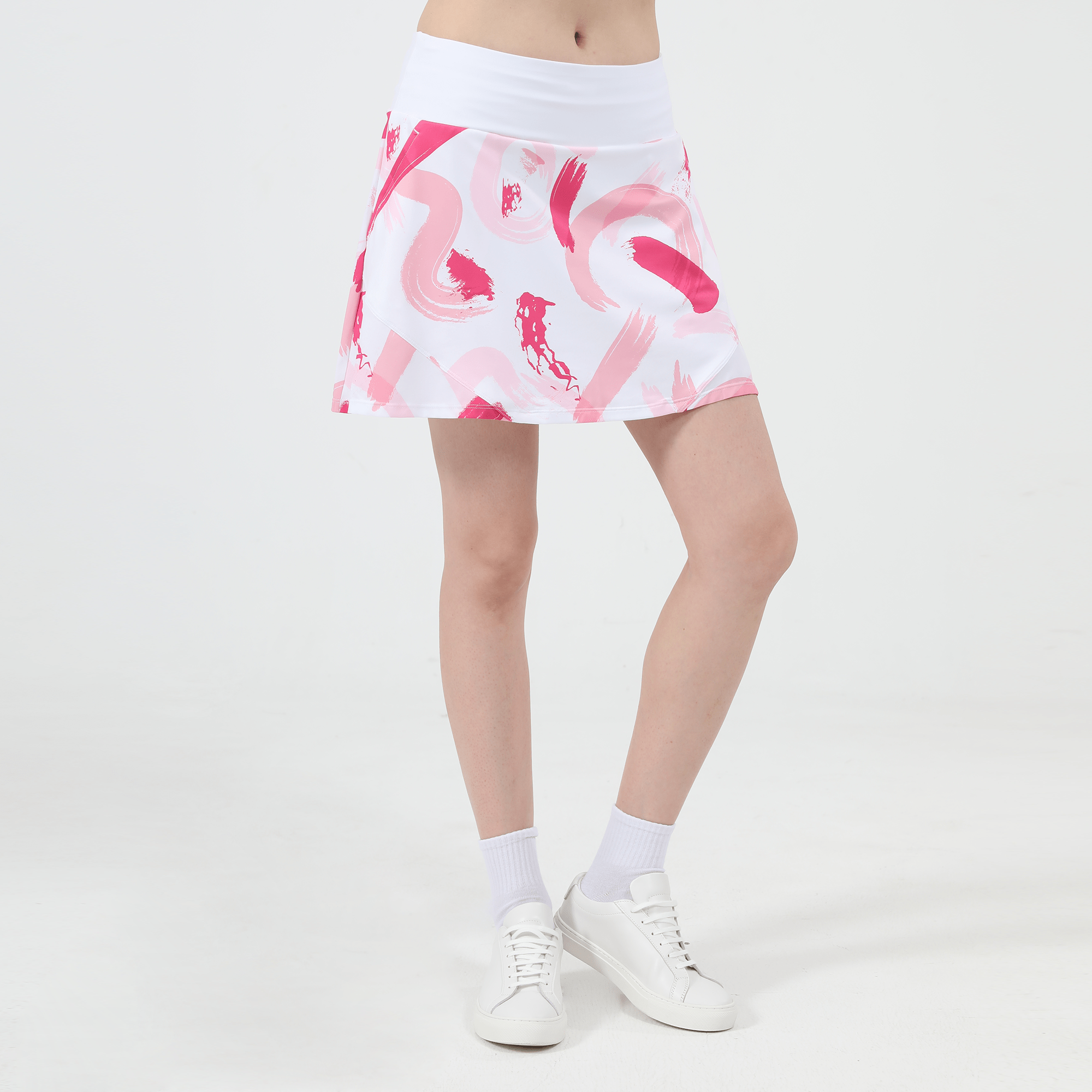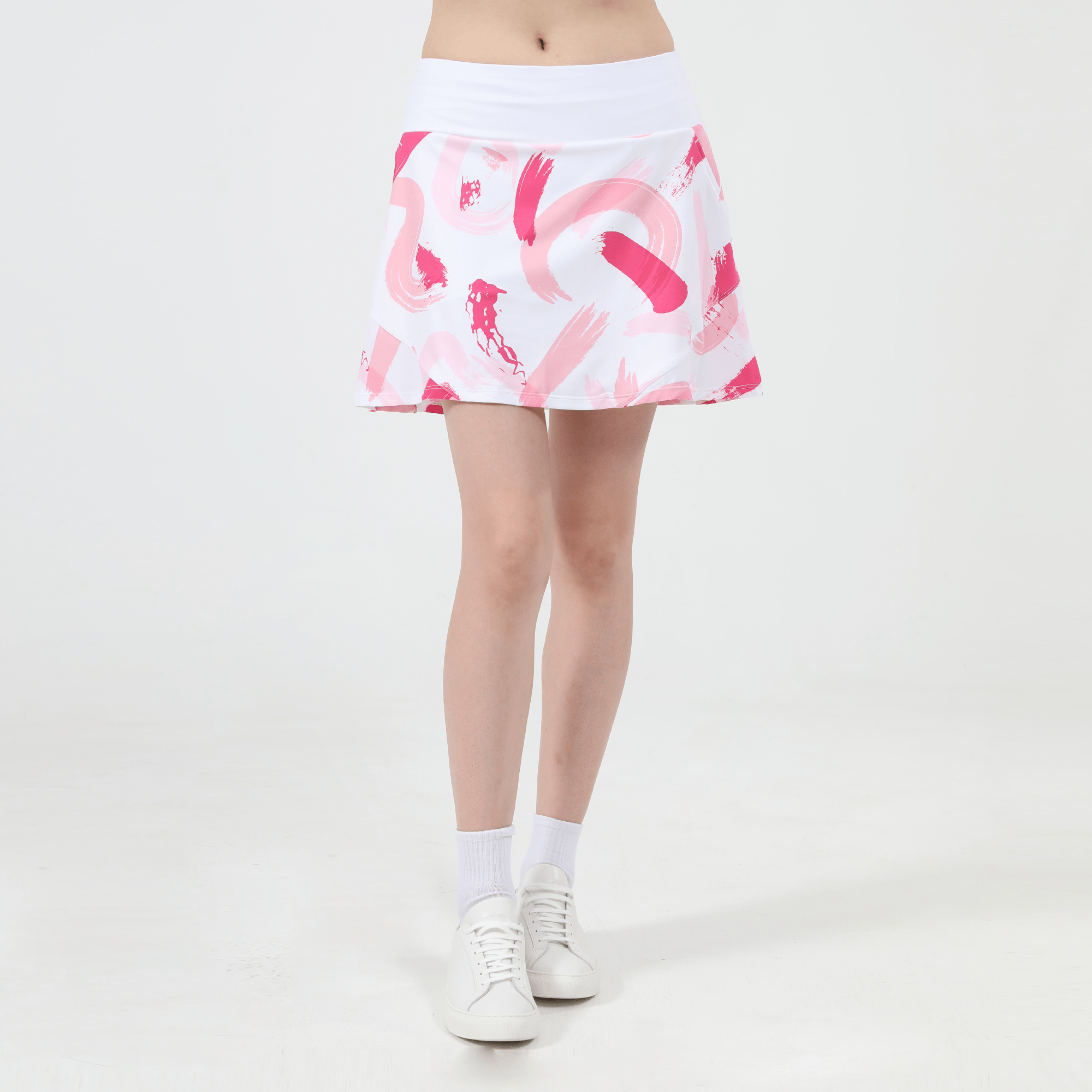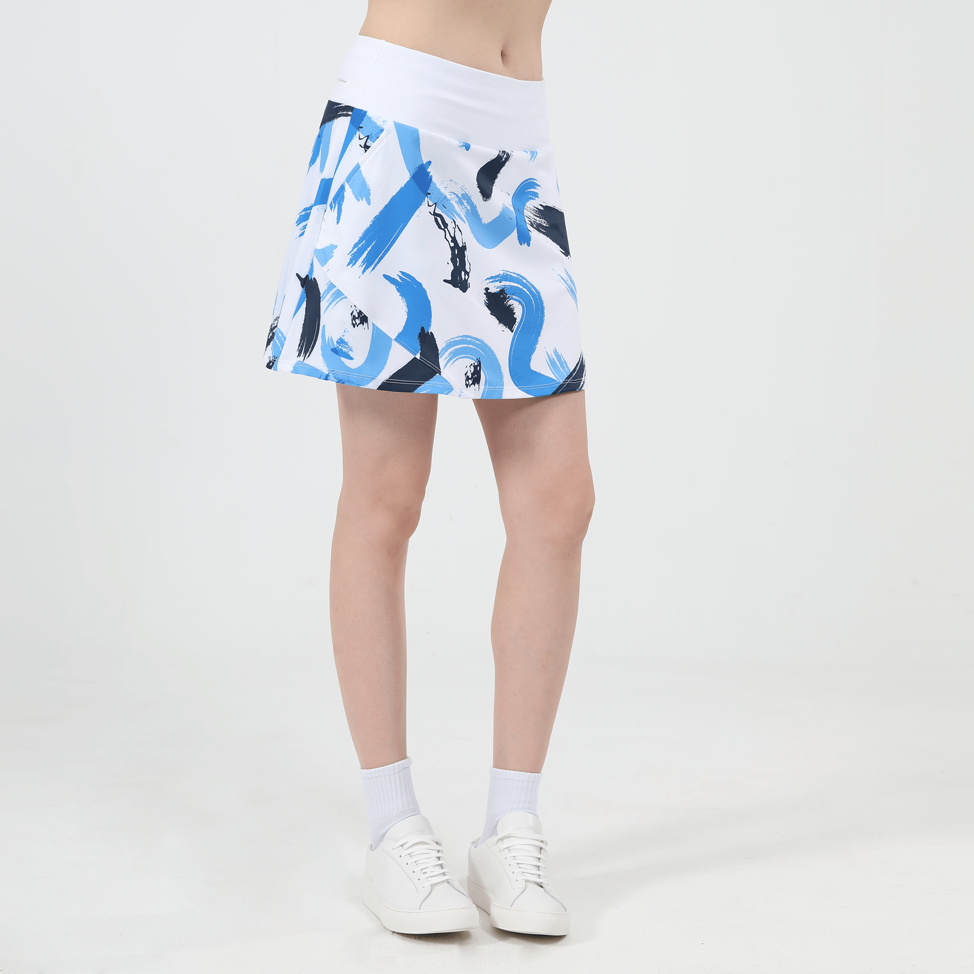 The women's Brush Skort combines visual appeal with practical design, perfectly suited for active pursuits like golf. Made from a blend of 92% polyester and 8% spandex, this skort offers flexibility and a flattering fit. The contrast extra wide waistband ensures a secure fit, while front slash pockets provide convenient storage for essentials. A pleated back enhances mobility, and hidden shorts with an elasticated waistband offer added coverage. Featuring an all-over brush stroke print and a smart 16" length at the front, which adjusts slightly by size, this skort is a versatile and essential addition to your wardrobe, blending seamlessly into athletic settings.