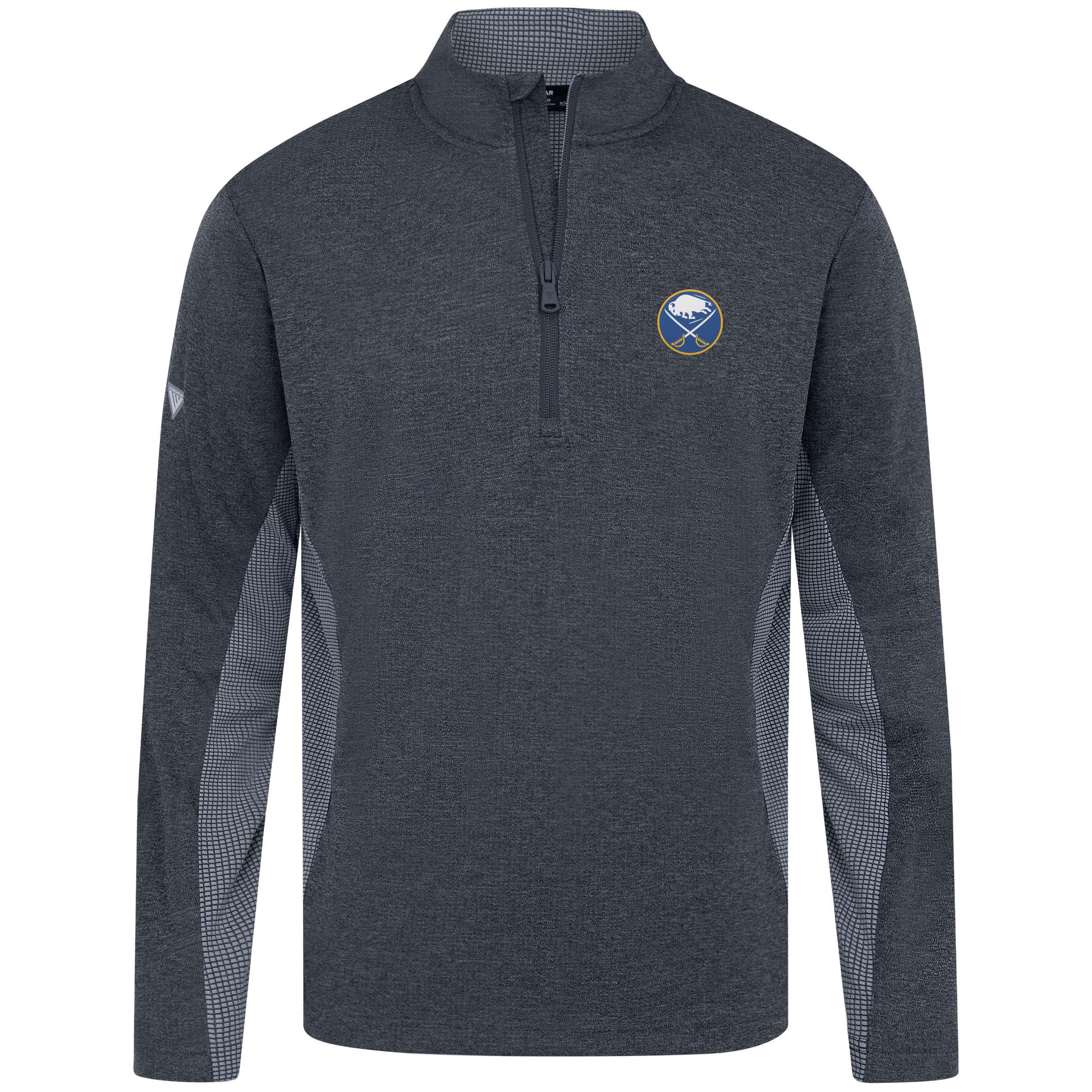 - Quarter-zip with stand-up collar