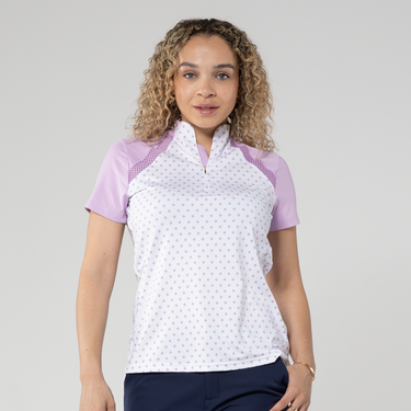 Elevate your style and performance with the Charm Short Sleeve Women's Polo. It combines moisture-wicking, anti-static, and UPF 50+ sun protection. The stylized side seam and high-low hem detail add flair to your look, keeping you fresh and chic on the go.