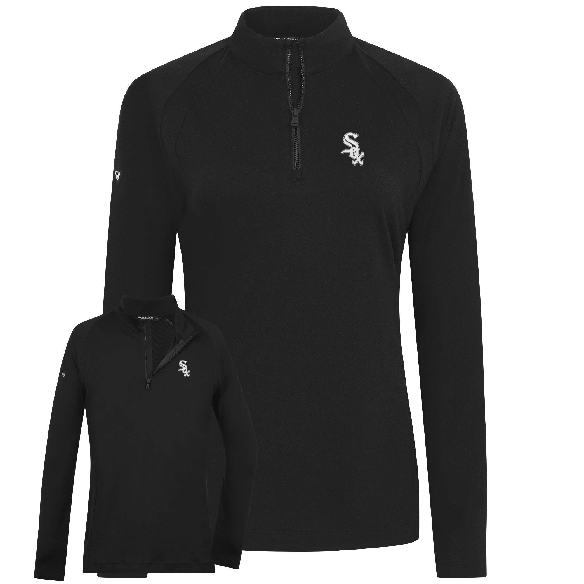 The women's Flex midlayer combines technical functionality with contemporary design, ideal for the active woman on the go. This midlayer is engineered with moisture-wicking technology to keep you dry and comfortable during vigorous activities, whether you're hitting the gym or exploring the outdoors. It features a quarter-zip closure with a contrast stand-up collar that allows for easy temperature regulation and adds a modern touch. The stylized front yoke and back yoke enhance the garment's structure, while mesh venting under the back yoke ensures optimal breathability and cooling. Finished with a high-low hem detail, this piece provides additional coverage and a flattering silhouette.