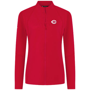 The women's Mesa midlayer is an excellent addition to any golfer's wardrobe, made to enhance performance on the course with thoughtful design and advanced fabric technology. This midlayer is made from 91% recycled polyester and 9% spandex, which not only offers a sustainable choice but also provides ample stretch for unrestricted movement. Featuring moisture-wicking properties, it efficiently manages sweat to keep you dry and comfortable throughout your game. The anti-static and anti-pilling treatments ensure the garment remains smooth and neat, even after multiple wears. Designed with a full front zip and stand-up collar for adjustable coverage, the Mesa also includes stylized wrap over side panels for a distinctive look. Zippered front pockets with mesh pocket bags add practical storage for small essentials, making this midlayer both functional and stylish for any golf enthusiast.