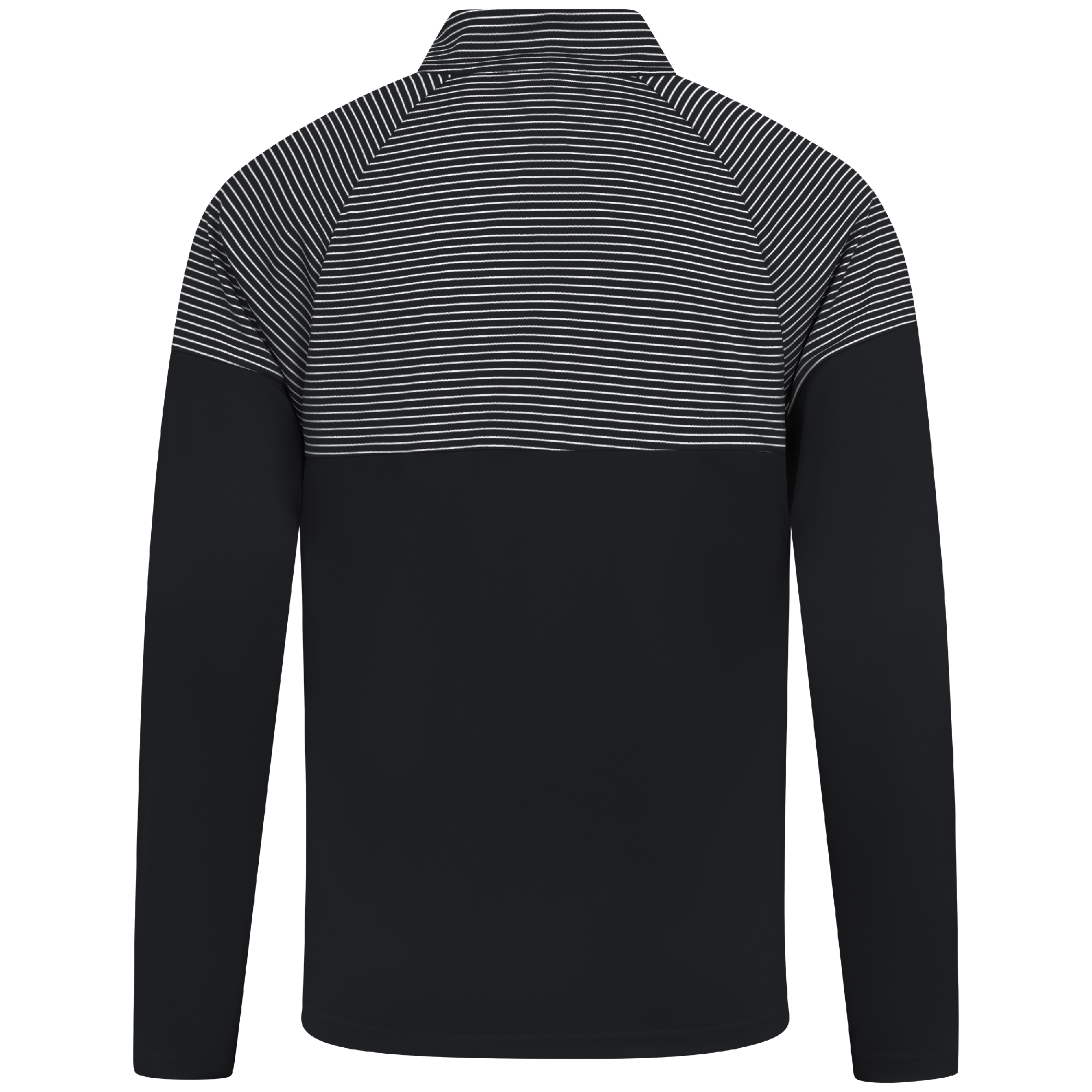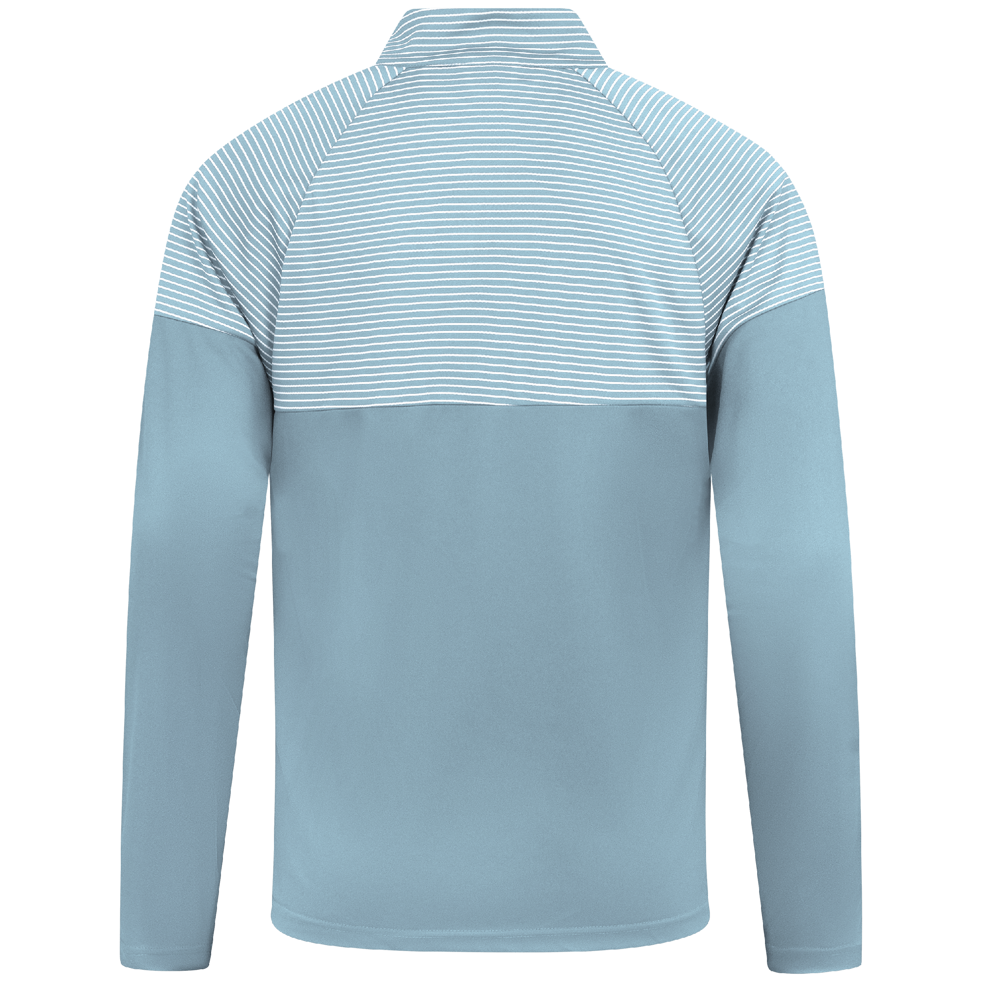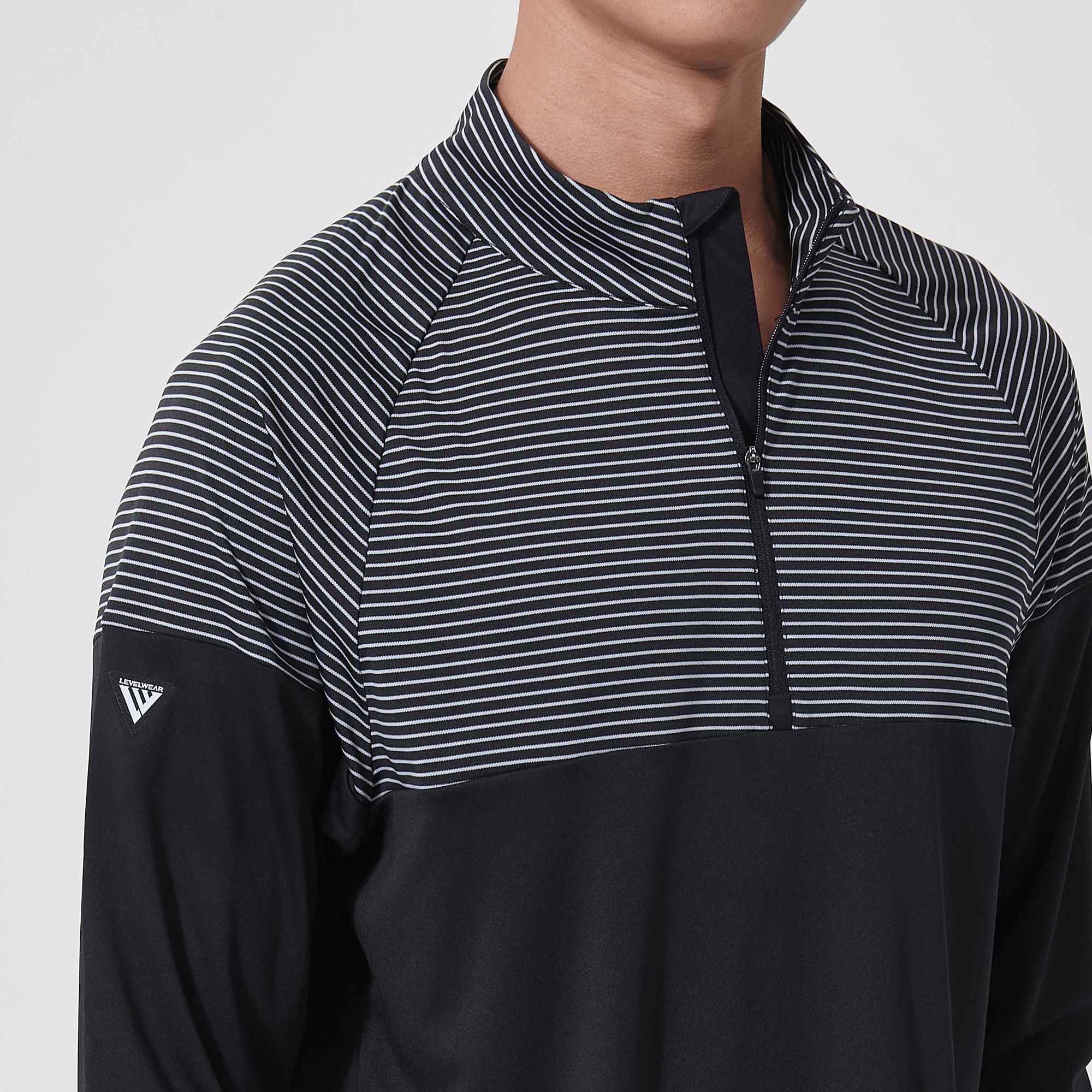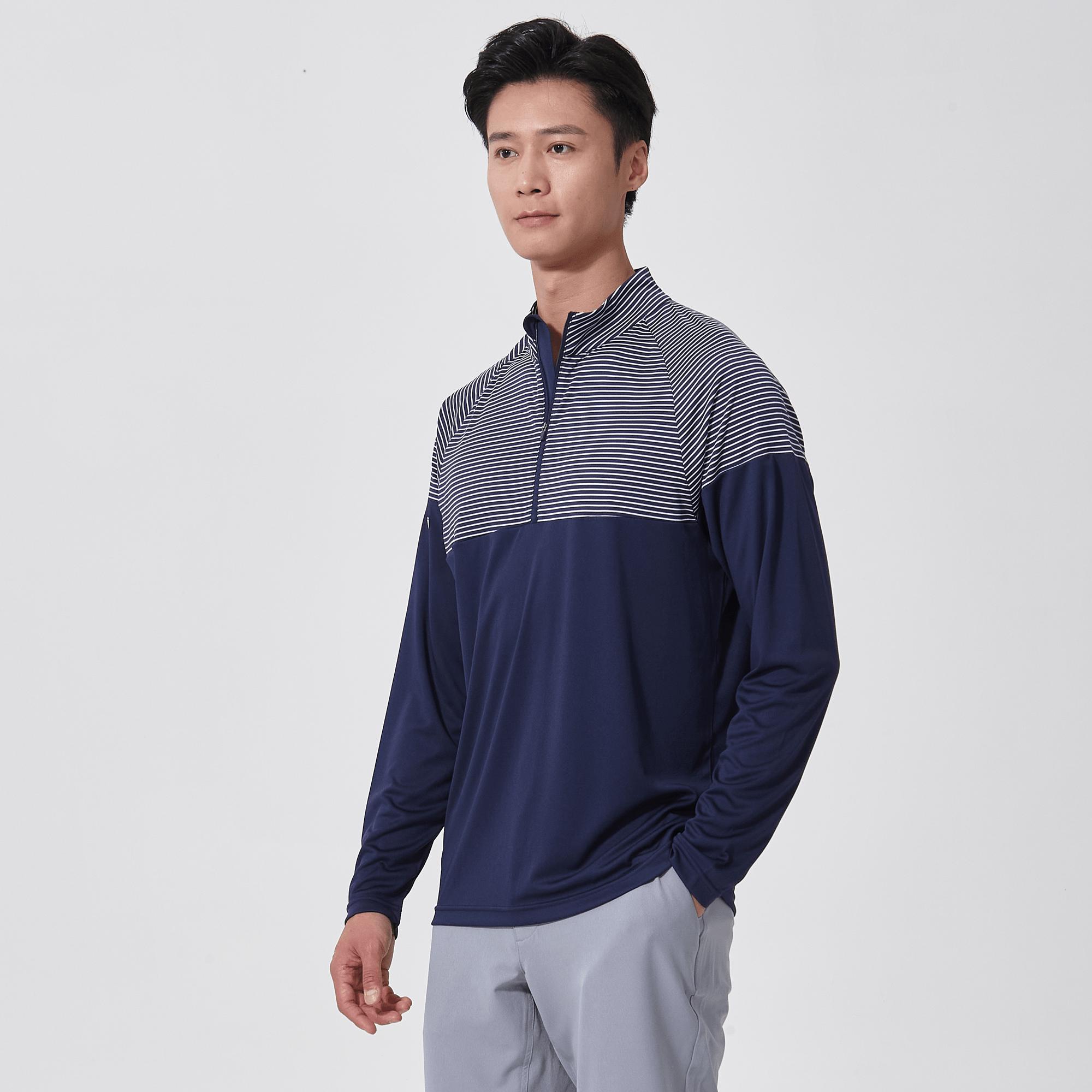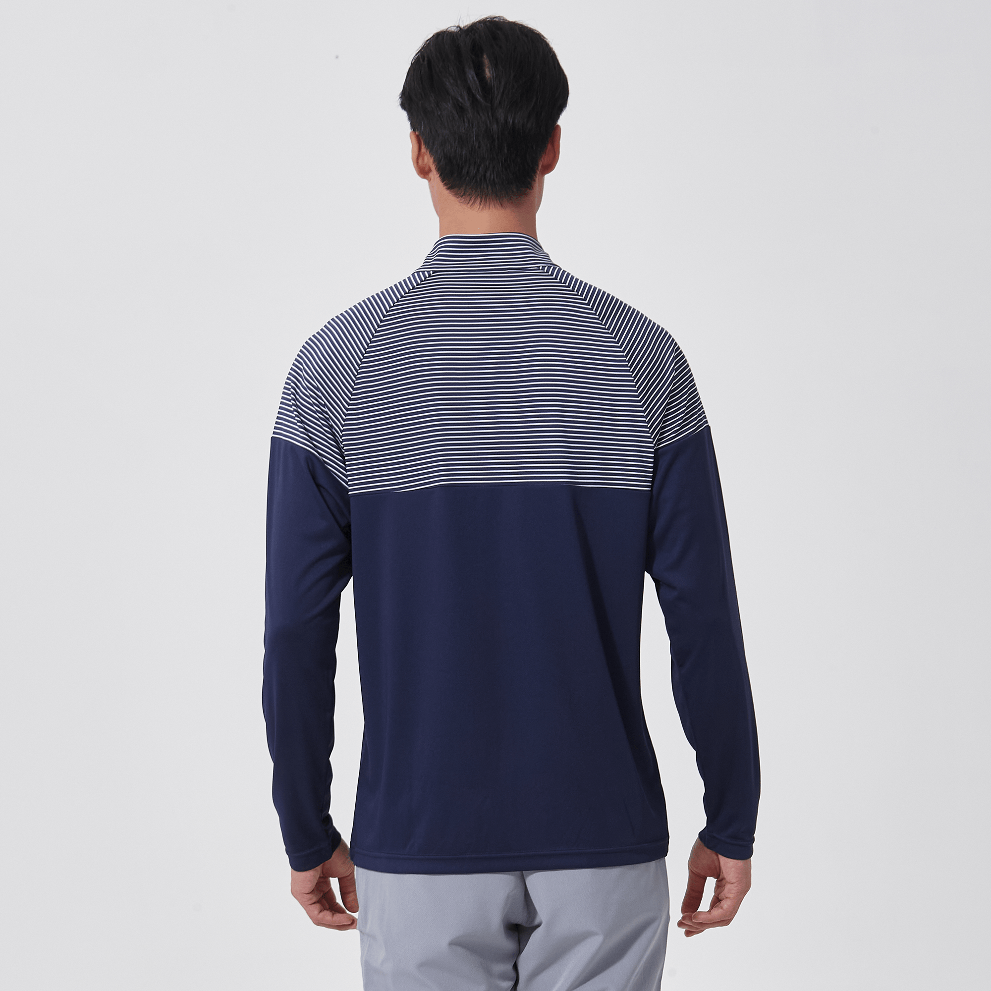 Designed for the golf course the Classic Stripes midlayer is a versatile addition to any wardrobe. This midlayer is constructed from 100% polyester, ensuring durability and ease of maintenance. It features moisture-wicking technology to keep you dry and comfortable during physical activity, while its anti-static properties help reduce fabric cling and discomfort. The quarter-zip design with a stand-up collar allows for easy adjustment to changing weather conditions, enhancing both warmth and airflow as needed. Raglan sleeves promote an unrestricted range of motion, ideal for perfecting your golf swing or engaging in other sports. The contrast upper body with a stripe pattern adds a visually appealing, sporty element, making this midlayer a stylish yet functional choice for any setting.
