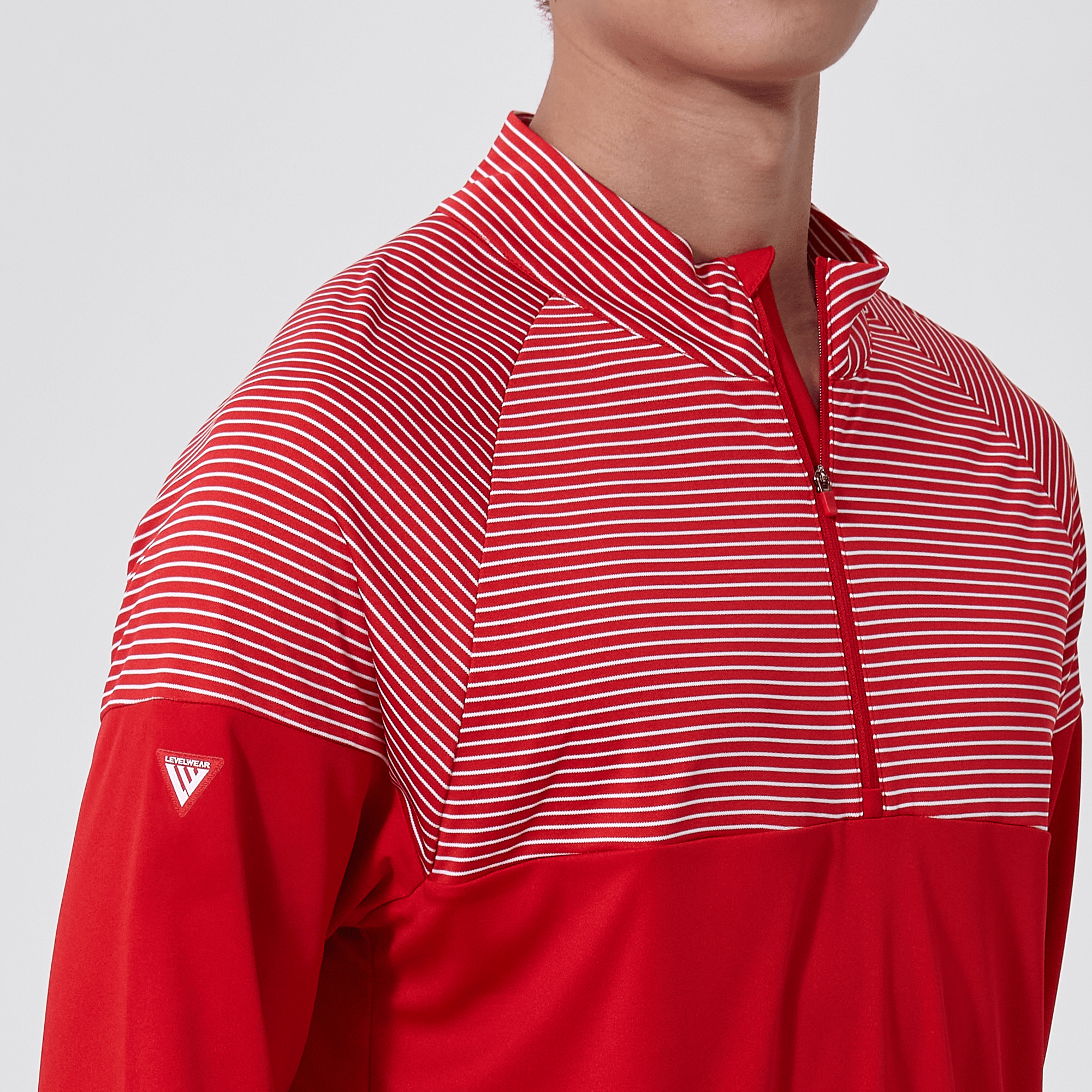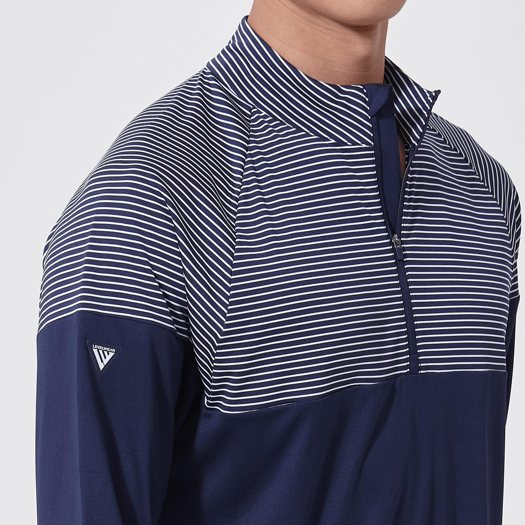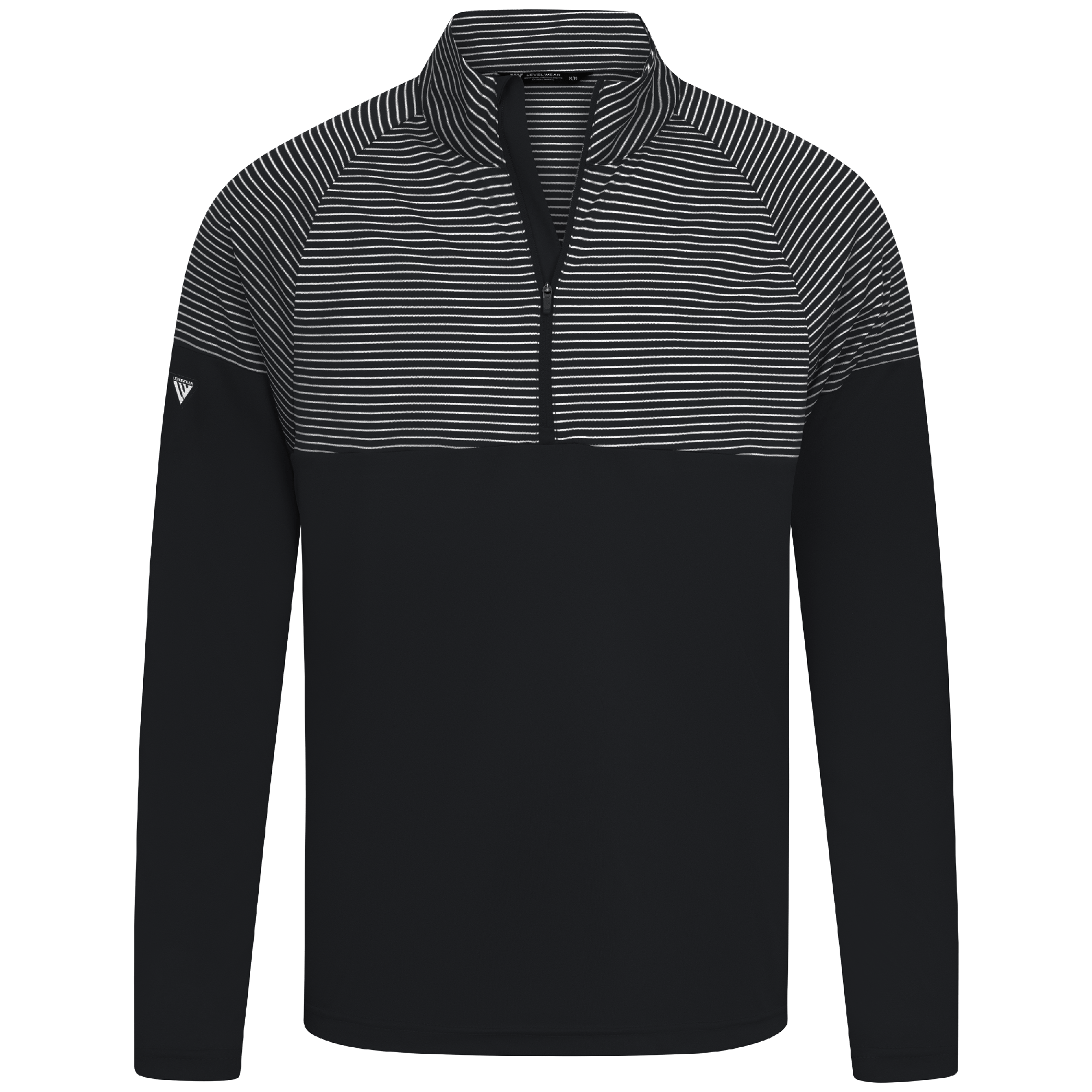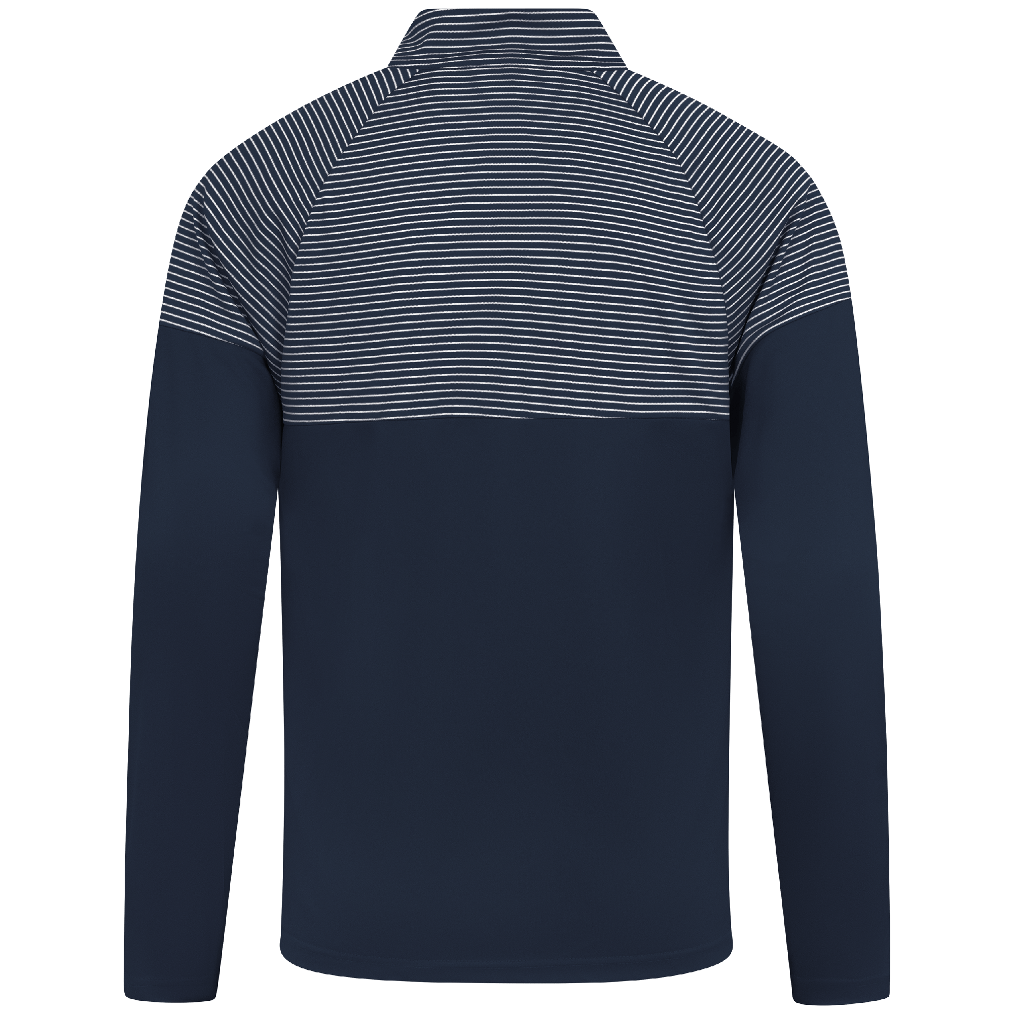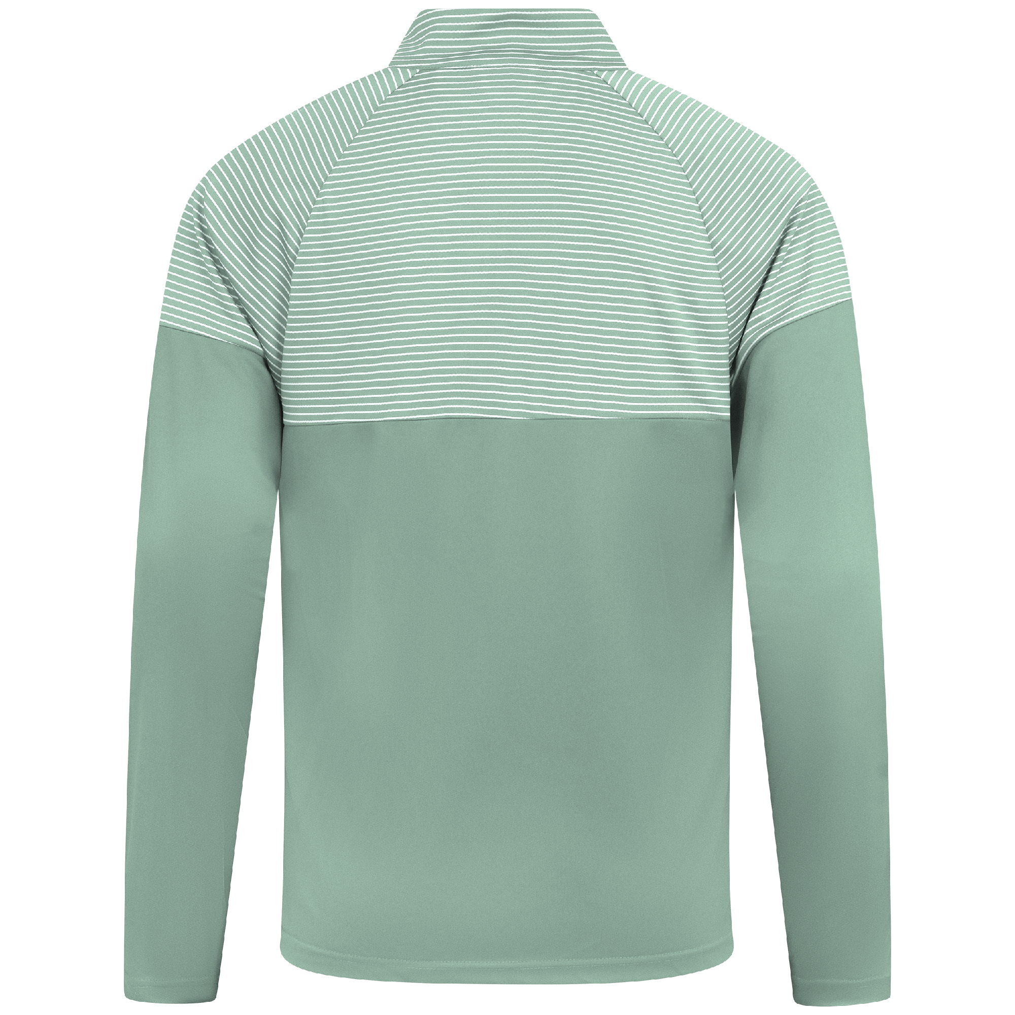 Designed for the golf course the Classic Stripes midlayer is a versatile addition to any wardrobe. This midlayer is constructed from 100% polyester, ensuring durability and ease of maintenance. It features moisture-wicking technology to keep you dry and comfortable during physical activity, while its anti-static properties help reduce fabric cling and discomfort. The quarter-zip design with a stand-up collar allows for easy adjustment to changing weather conditions, enhancing both warmth and airflow as needed. Raglan sleeves promote an unrestricted range of motion, ideal for perfecting your golf swing or engaging in other sports. The contrast upper body with a stripe pattern adds a visually appealing, sporty element, making this midlayer a stylish yet functional choice for any setting.