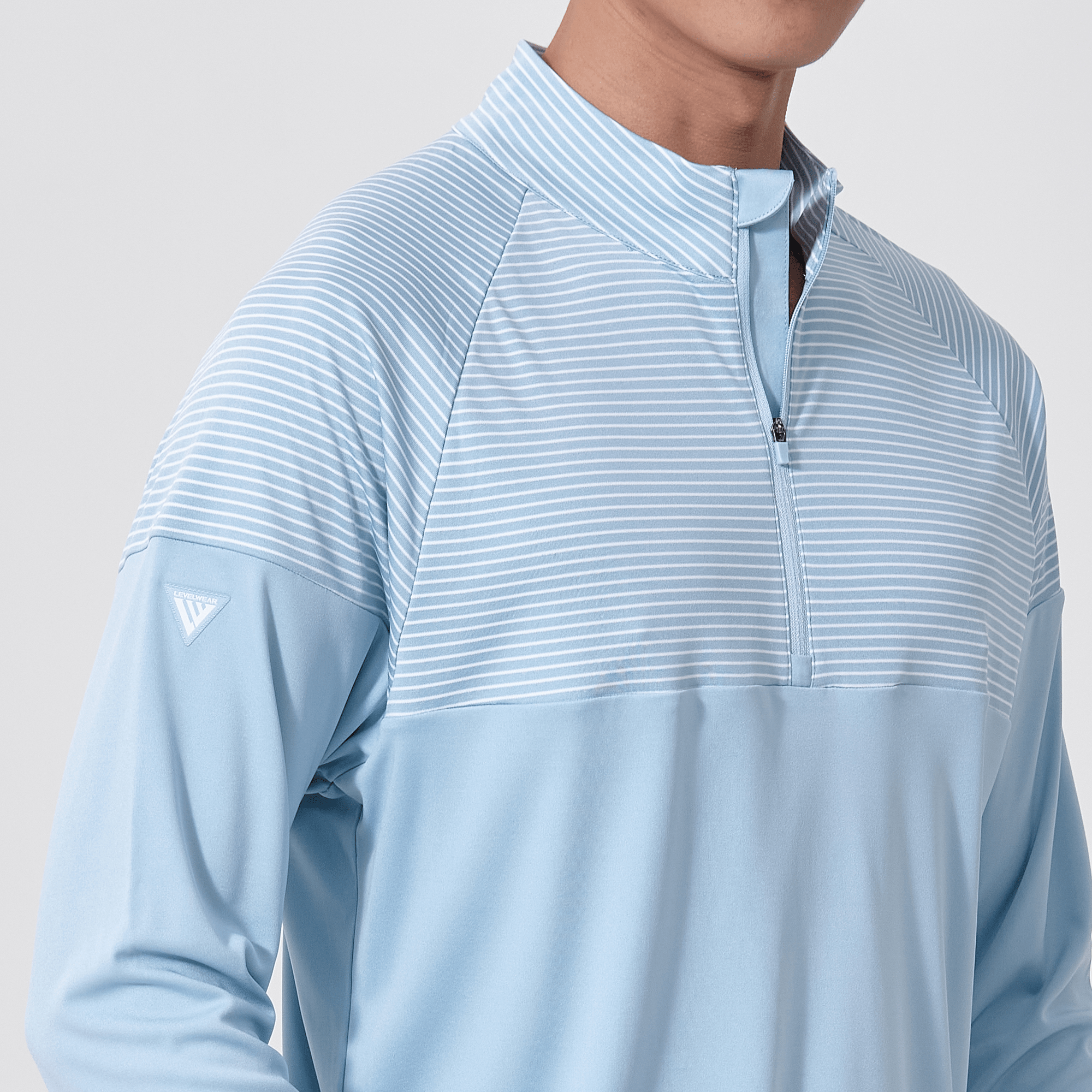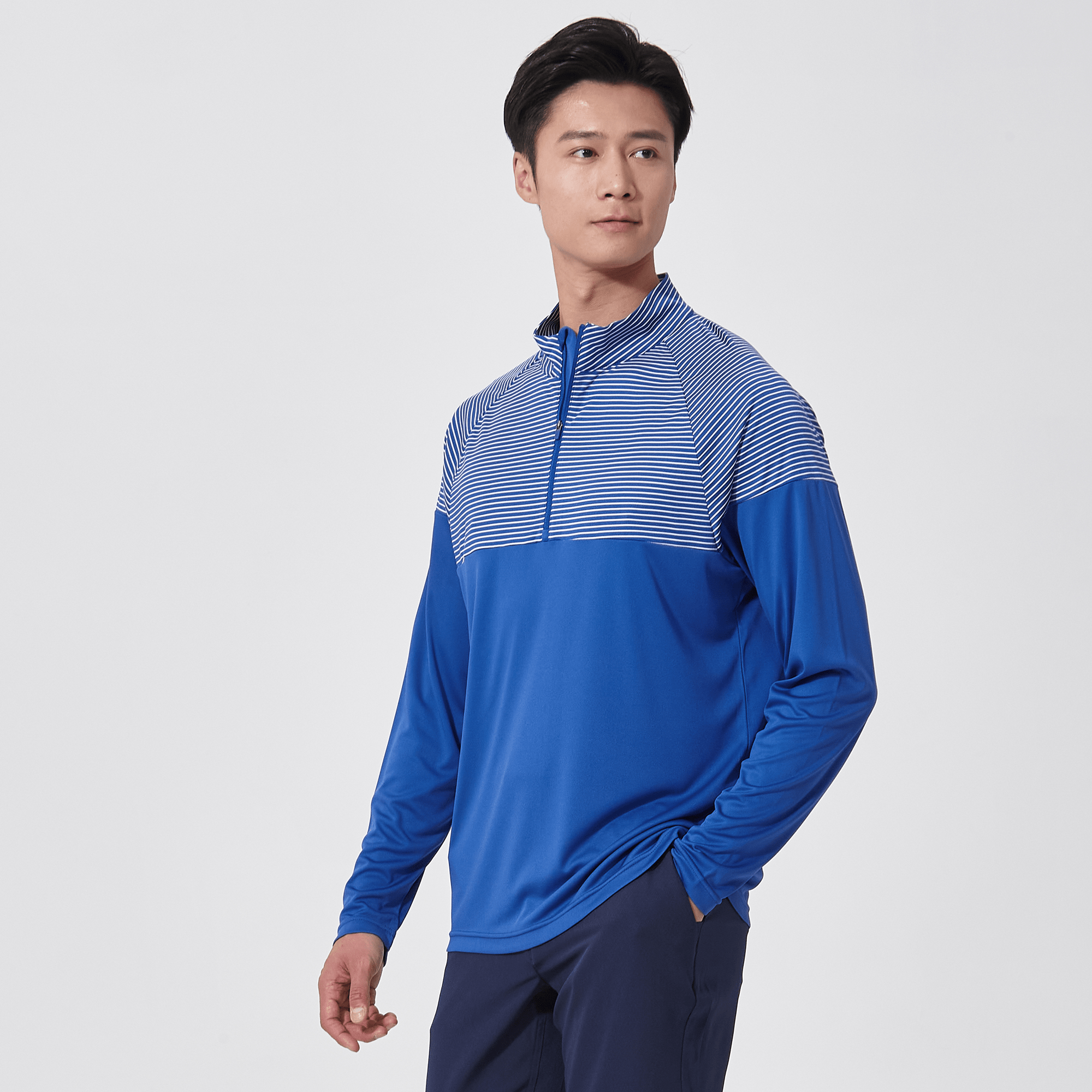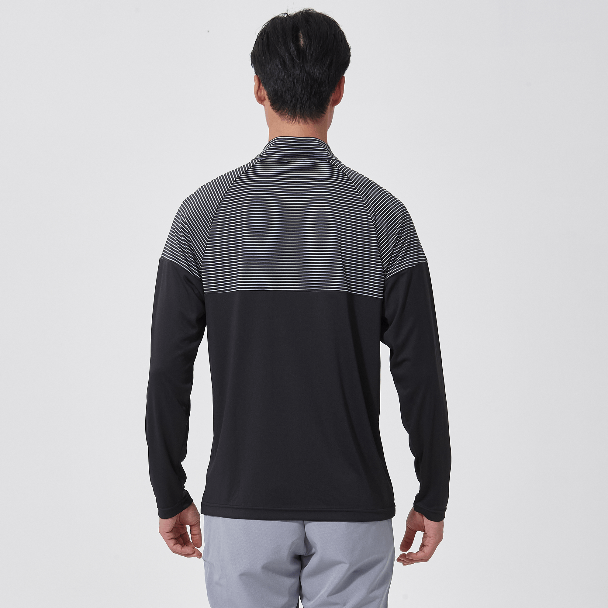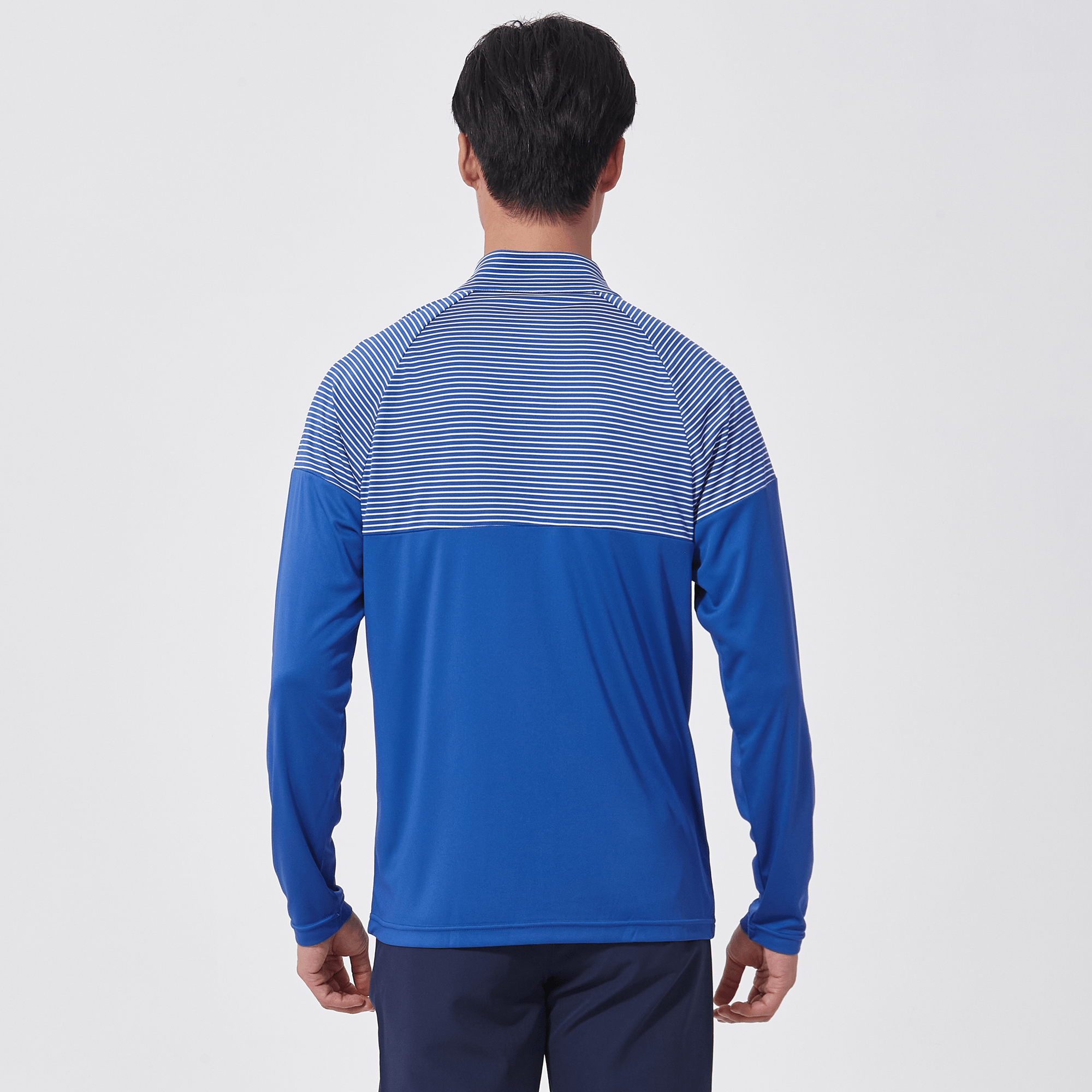 Designed for the golf course the Classic Stripes midlayer is a versatile addition to any wardrobe. This midlayer is constructed from 100% polyester, ensuring durability and ease of maintenance. It features moisture-wicking technology to keep you dry and comfortable during physical activity, while its anti-static properties help reduce fabric cling and discomfort. The quarter-zip design with a stand-up collar allows for easy adjustment to changing weather conditions, enhancing both warmth and airflow as needed. Raglan sleeves promote an unrestricted range of motion, ideal for perfecting your golf swing or engaging in other sports. The contrast upper body with a stripe pattern adds a visually appealing, sporty element, making this midlayer a stylish yet functional choice for any setting.