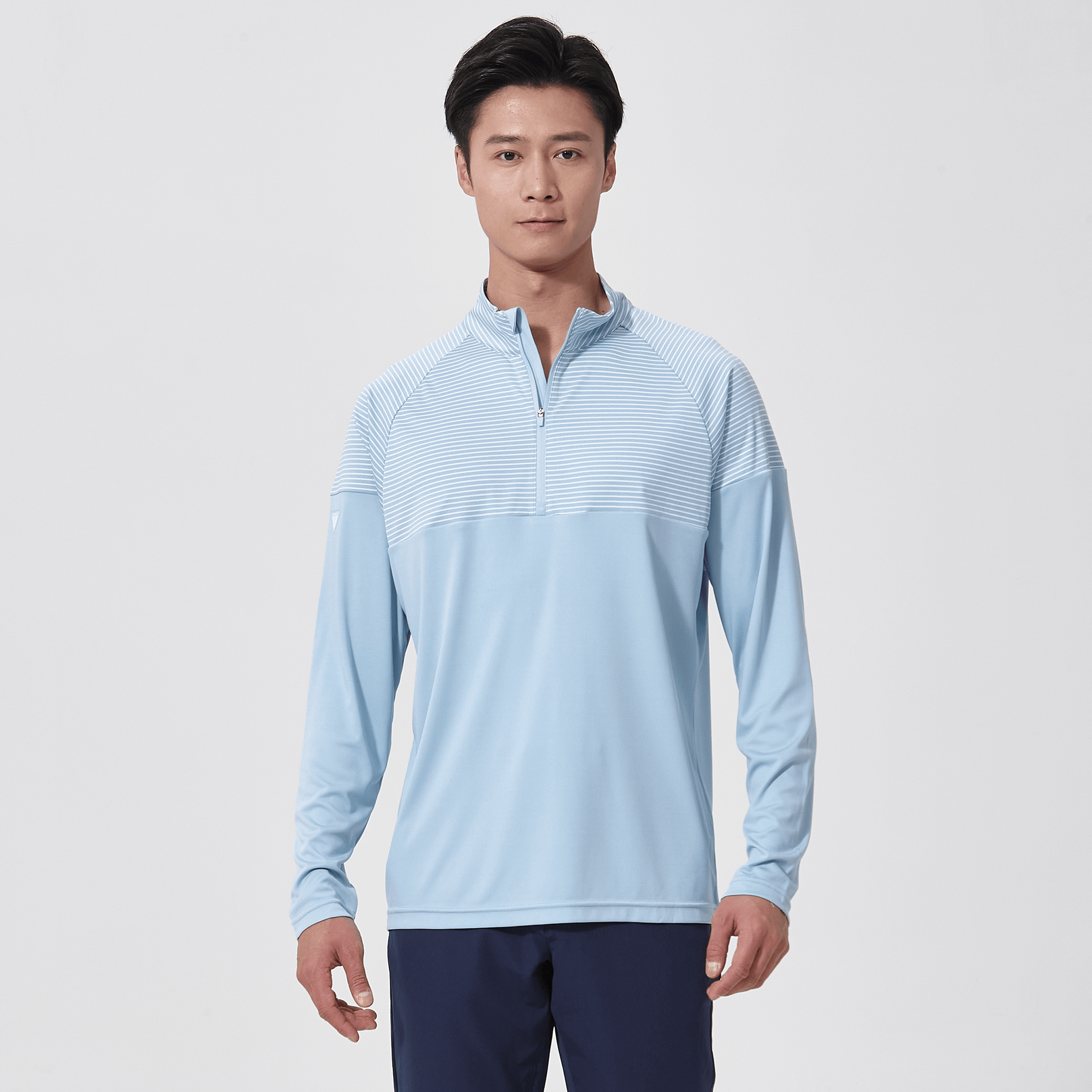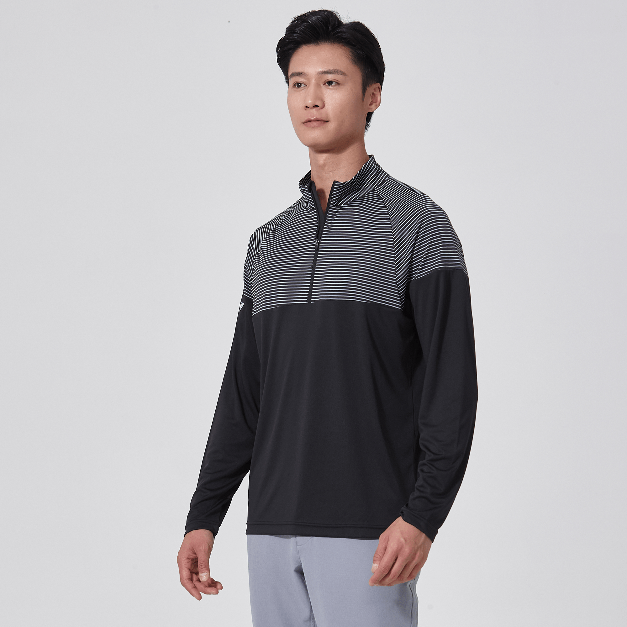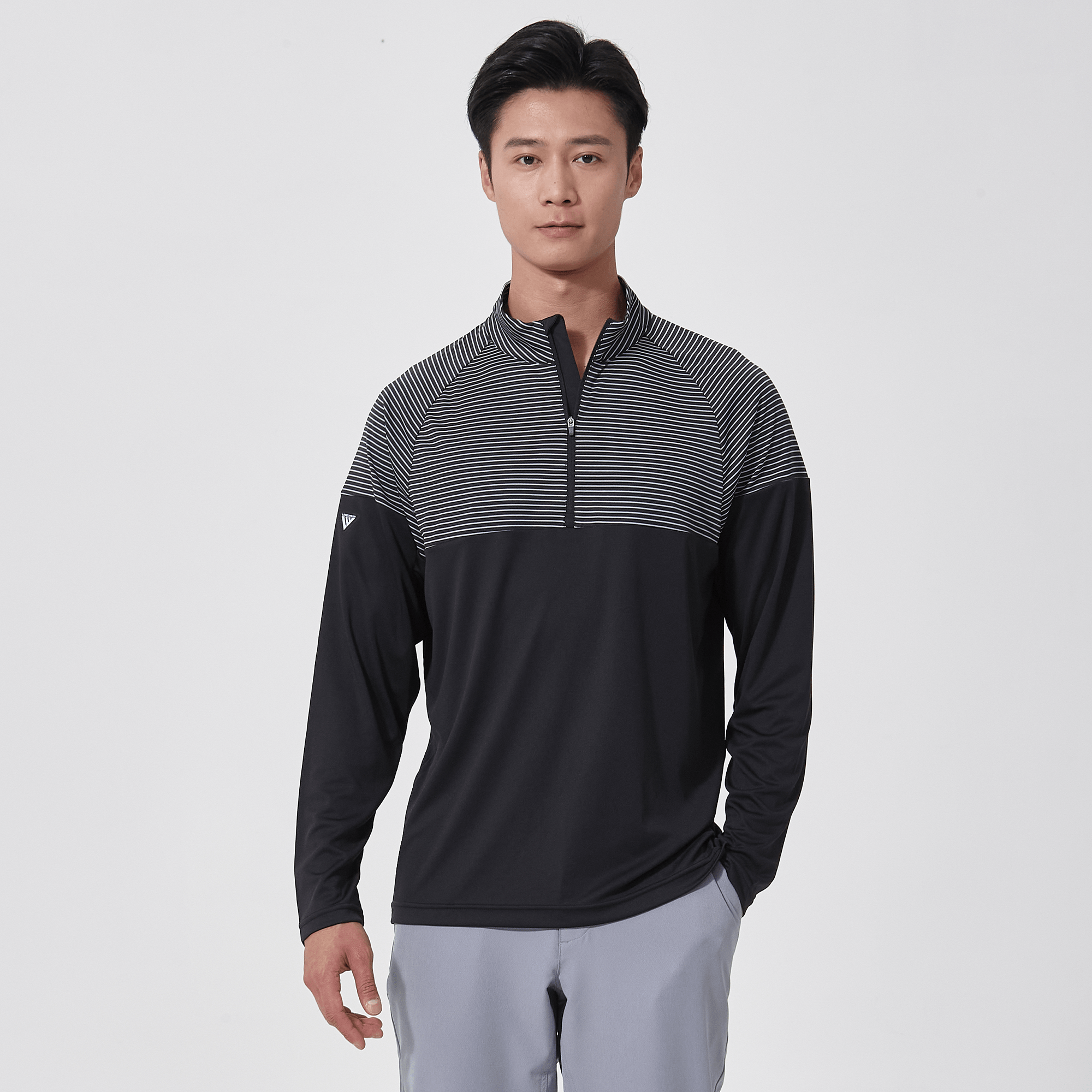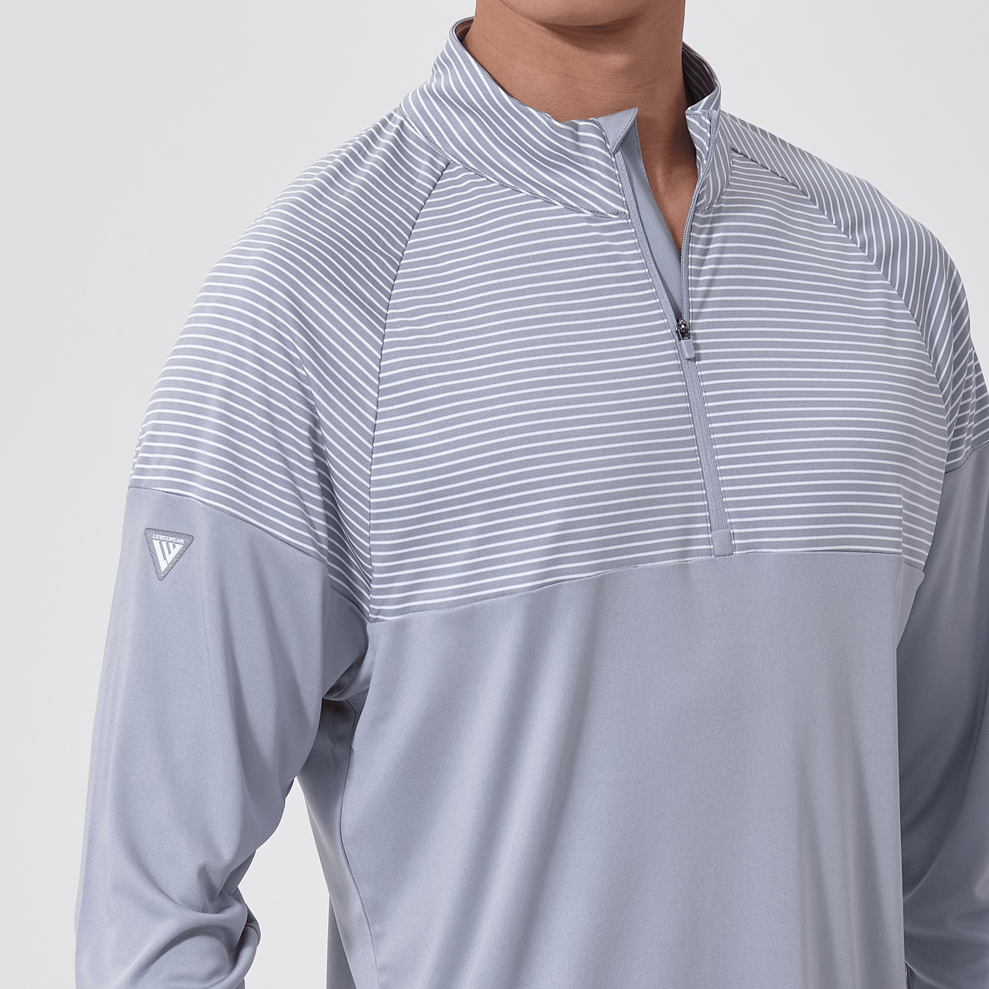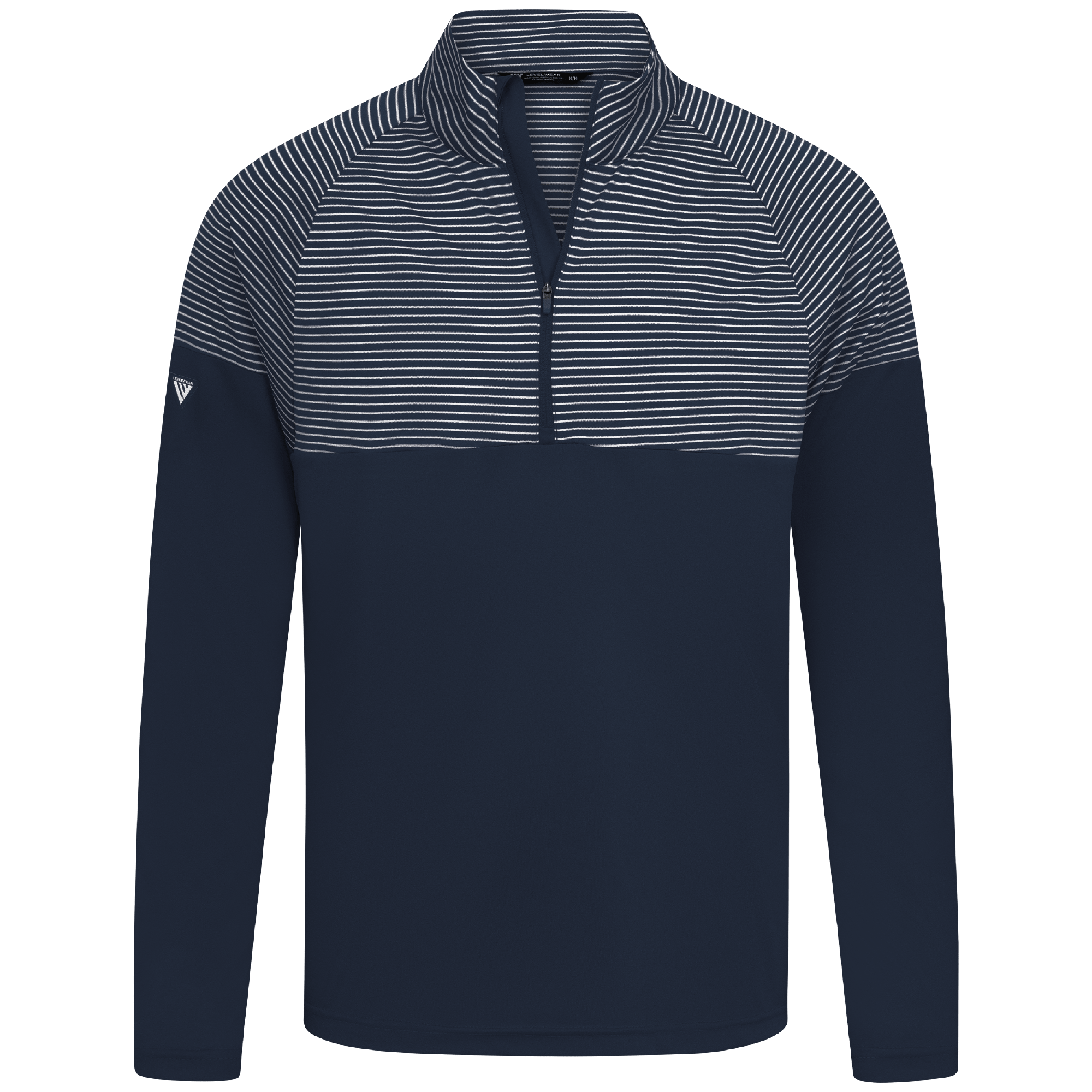 Designed for the golf course the Classic Stripes midlayer is a versatile addition to any wardrobe. This midlayer is constructed from 100% polyester, ensuring durability and ease of maintenance. It features moisture-wicking technology to keep you dry and comfortable during physical activity, while its anti-static properties help reduce fabric cling and discomfort. The quarter-zip design with a stand-up collar allows for easy adjustment to changing weather conditions, enhancing both warmth and airflow as needed. Raglan sleeves promote an unrestricted range of motion, ideal for perfecting your golf swing or engaging in other sports. The contrast upper body with a stripe pattern adds a visually appealing, sporty element, making this midlayer a stylish yet functional choice for any setting.