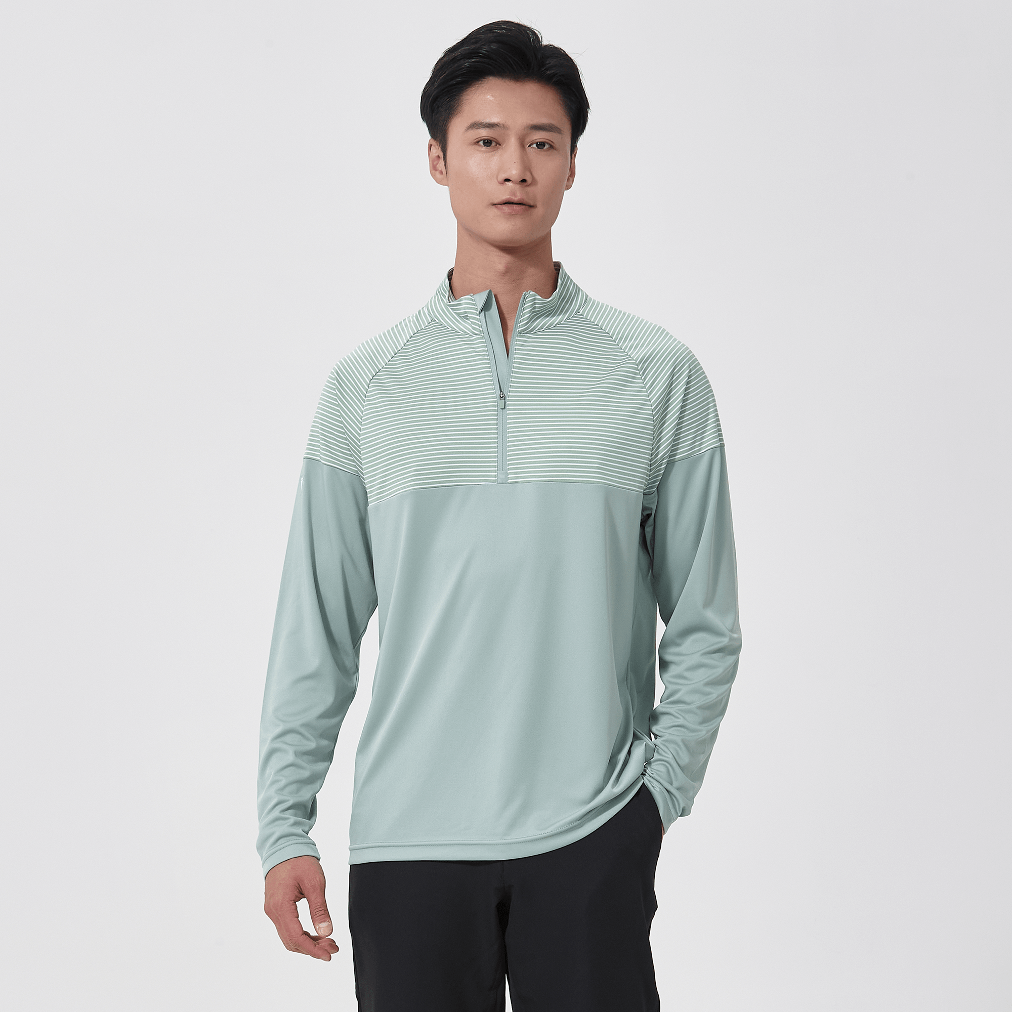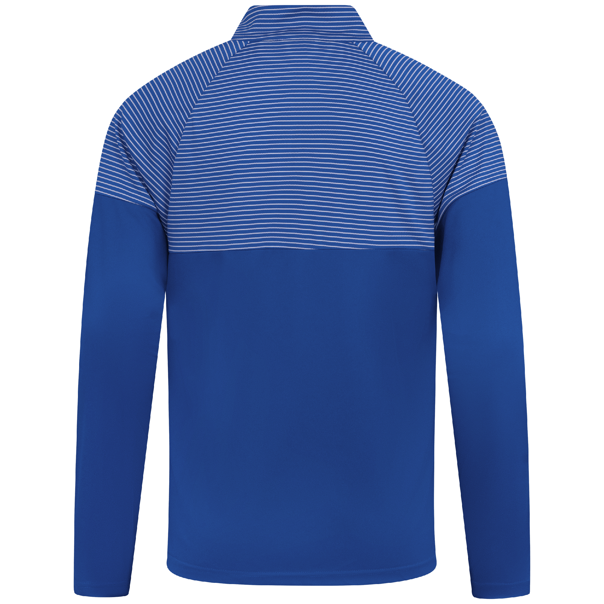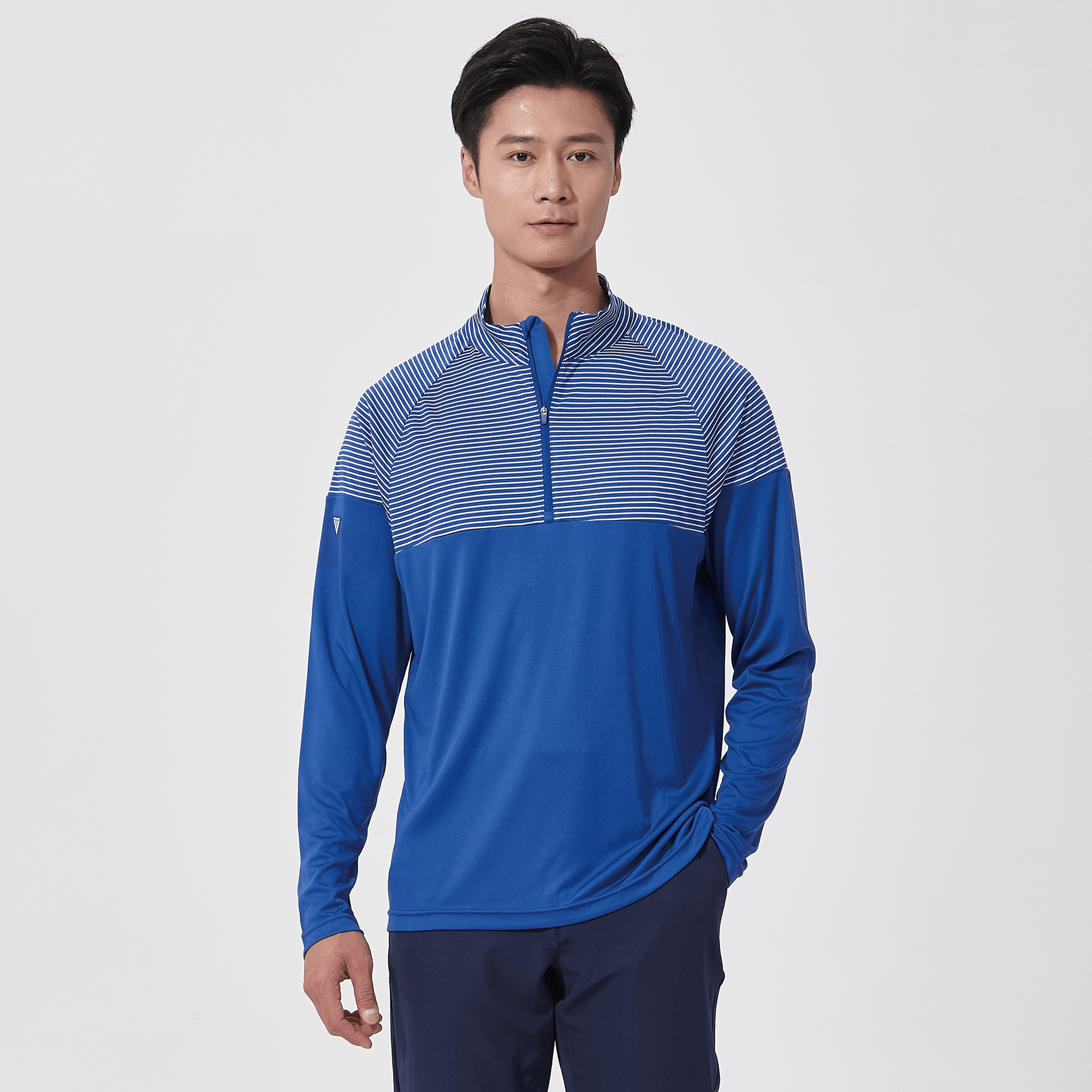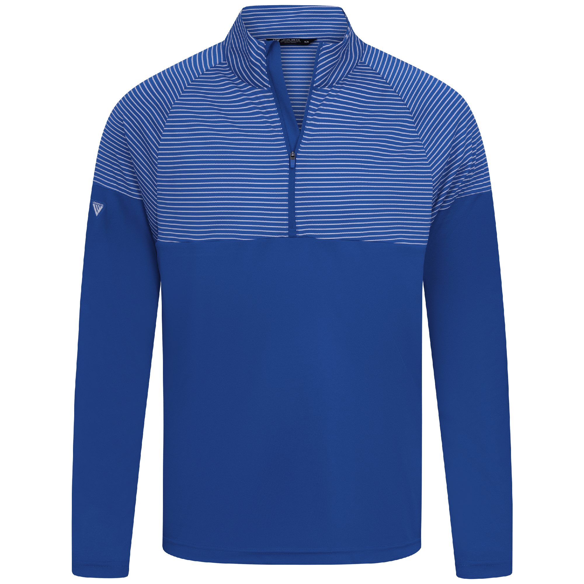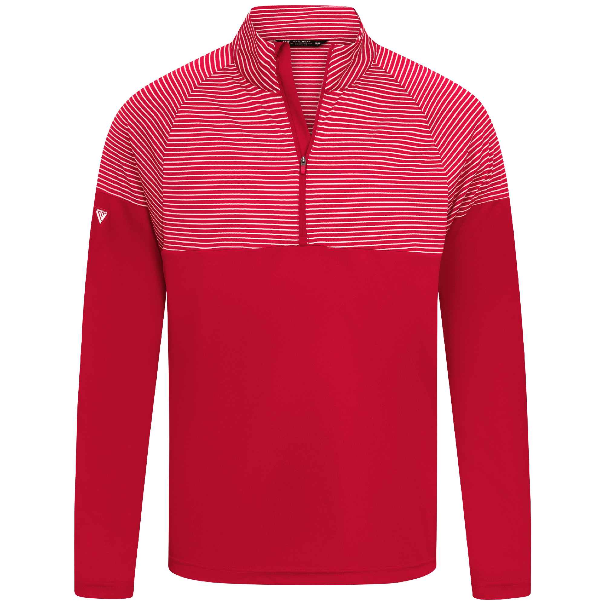 Designed for the golf course the Classic Stripes midlayer is a versatile addition to any wardrobe. This midlayer is constructed from 100% polyester, ensuring durability and ease of maintenance. It features moisture-wicking technology to keep you dry and comfortable during physical activity, while its anti-static properties help reduce fabric cling and discomfort. The quarter-zip design with a stand-up collar allows for easy adjustment to changing weather conditions, enhancing both warmth and airflow as needed. Raglan sleeves promote an unrestricted range of motion, ideal for perfecting your golf swing or engaging in other sports. The contrast upper body with a stripe pattern adds a visually appealing, sporty element, making this midlayer a stylish yet functional choice for any setting.