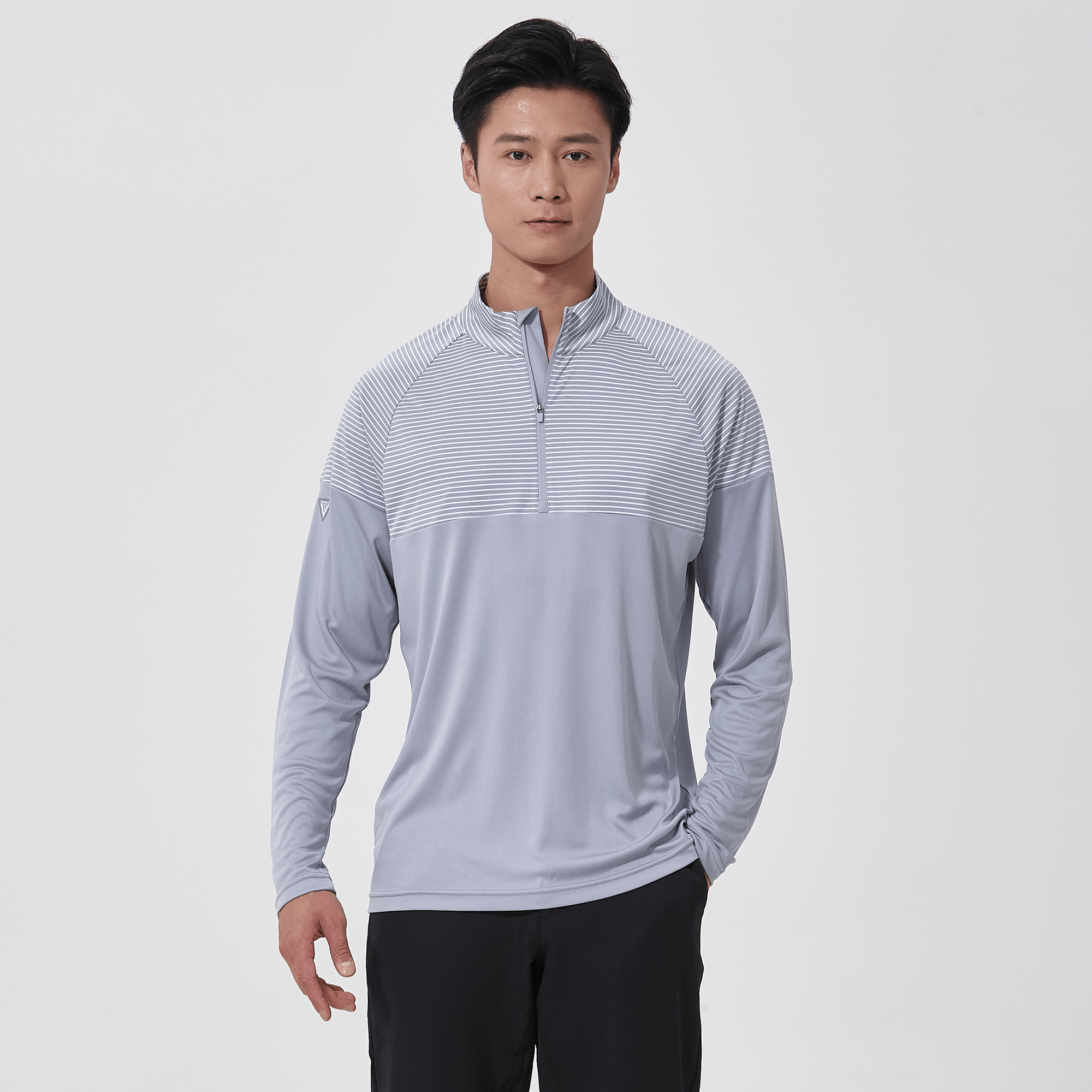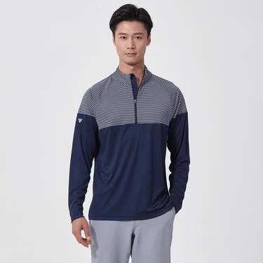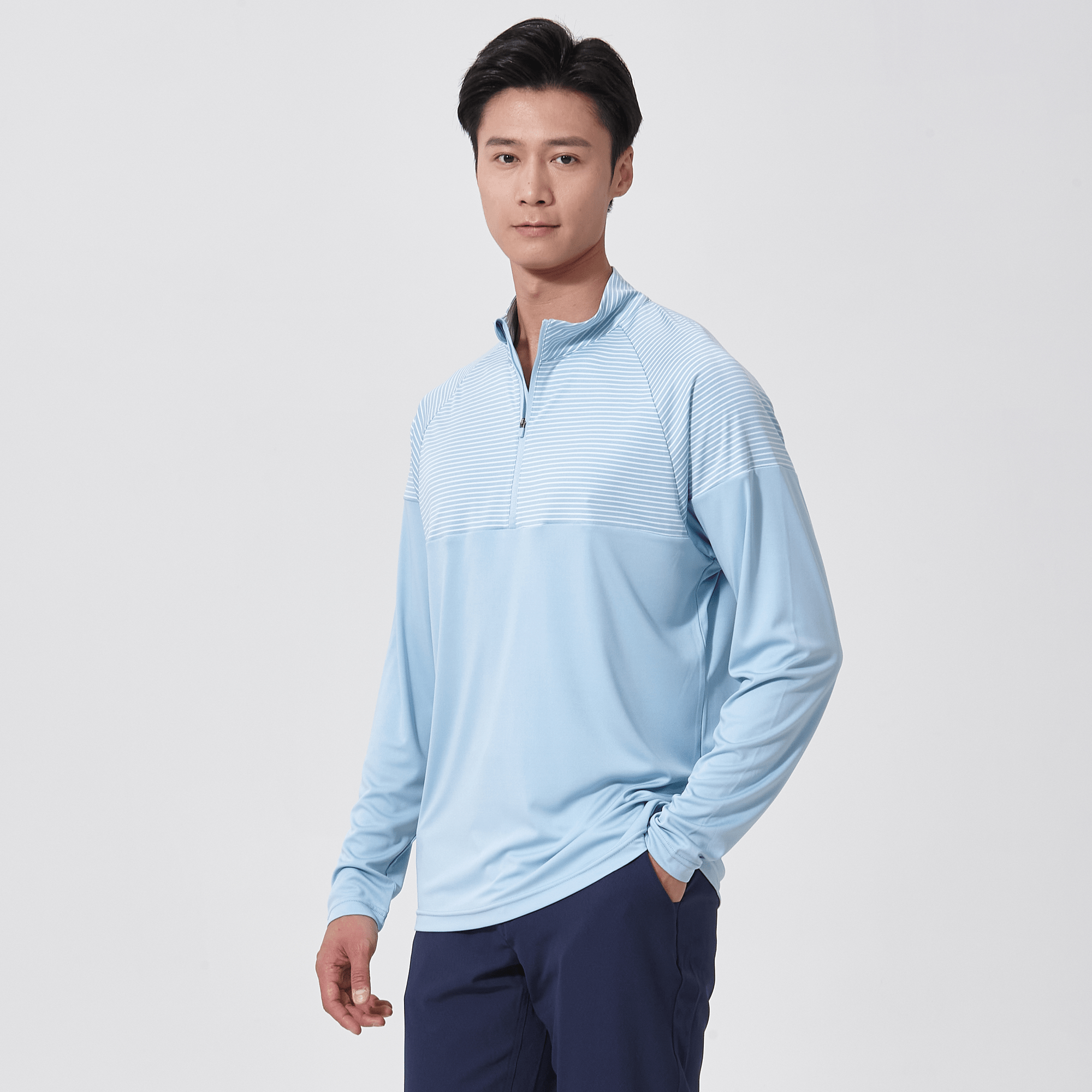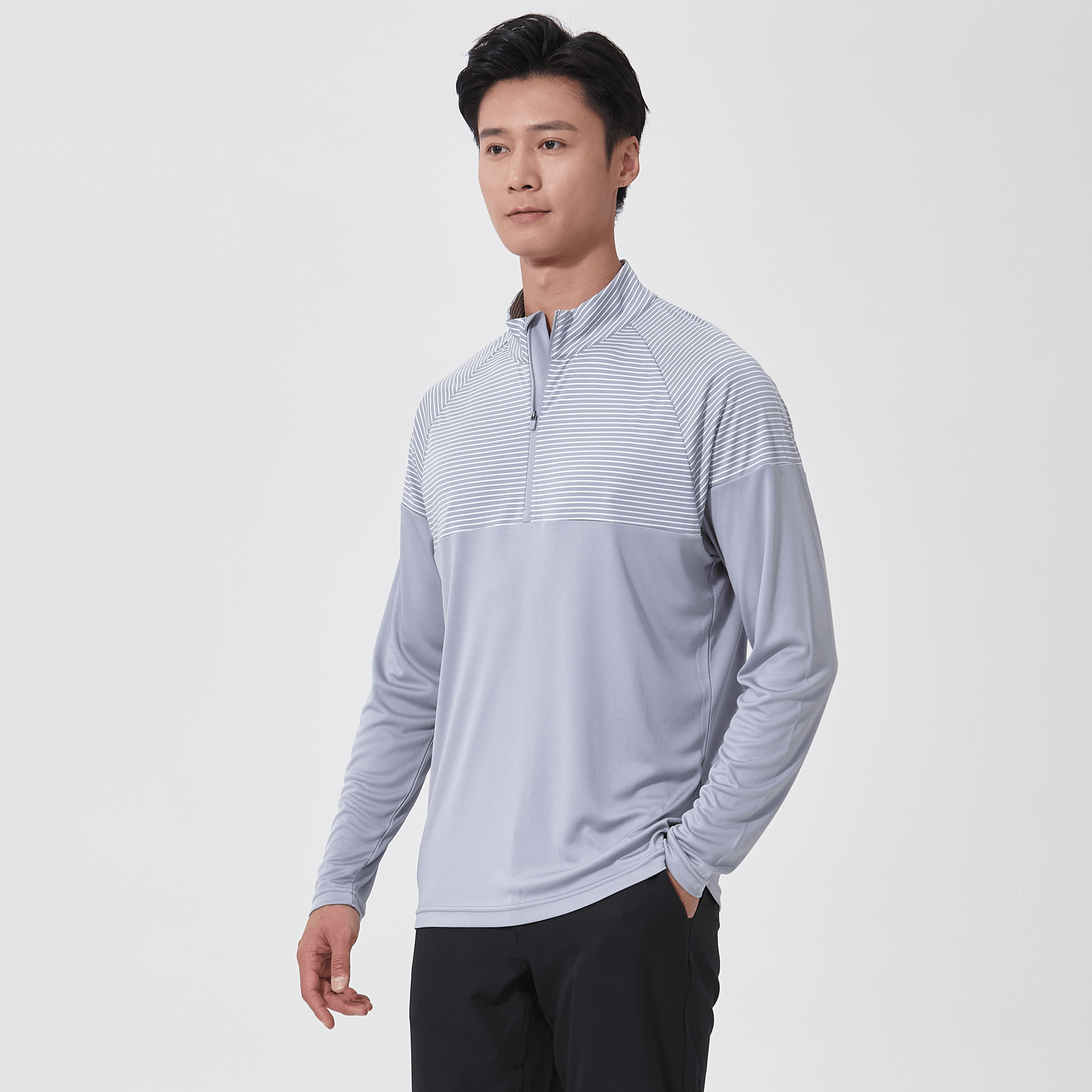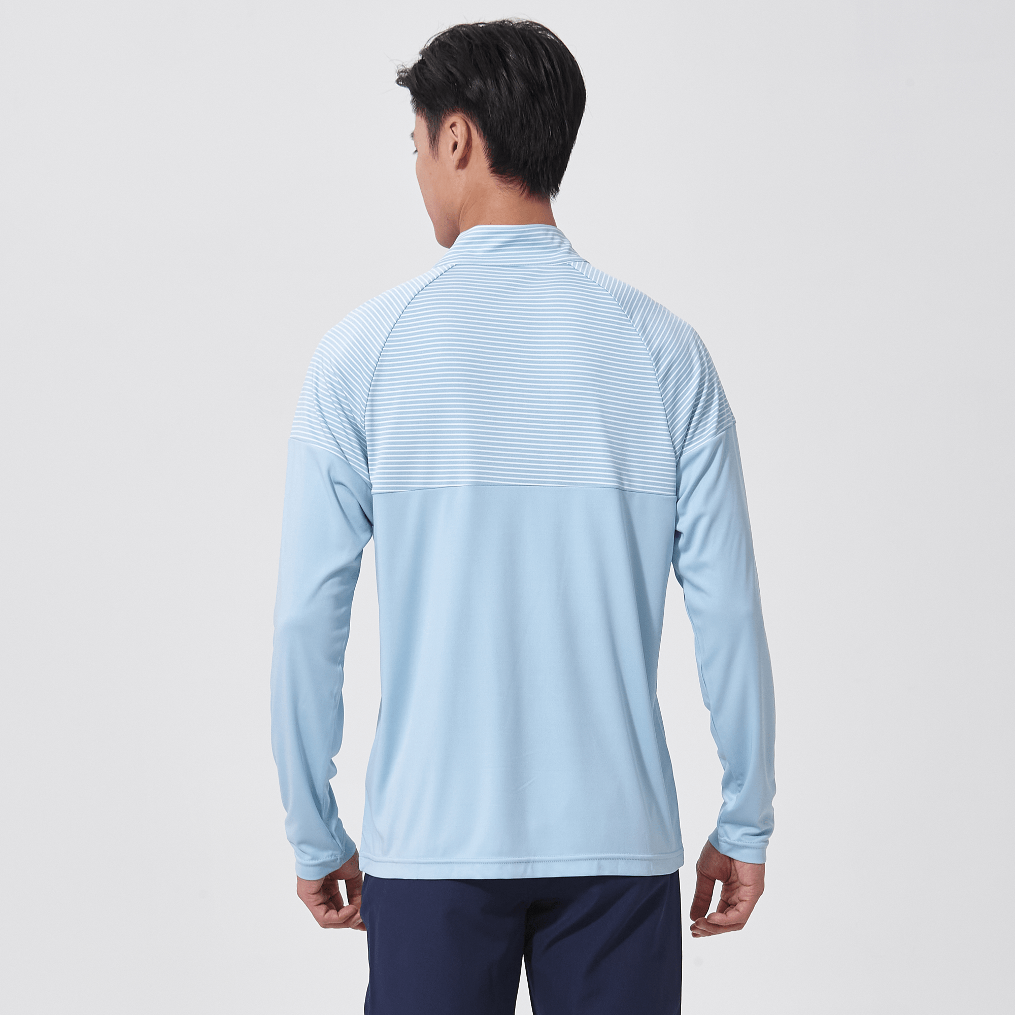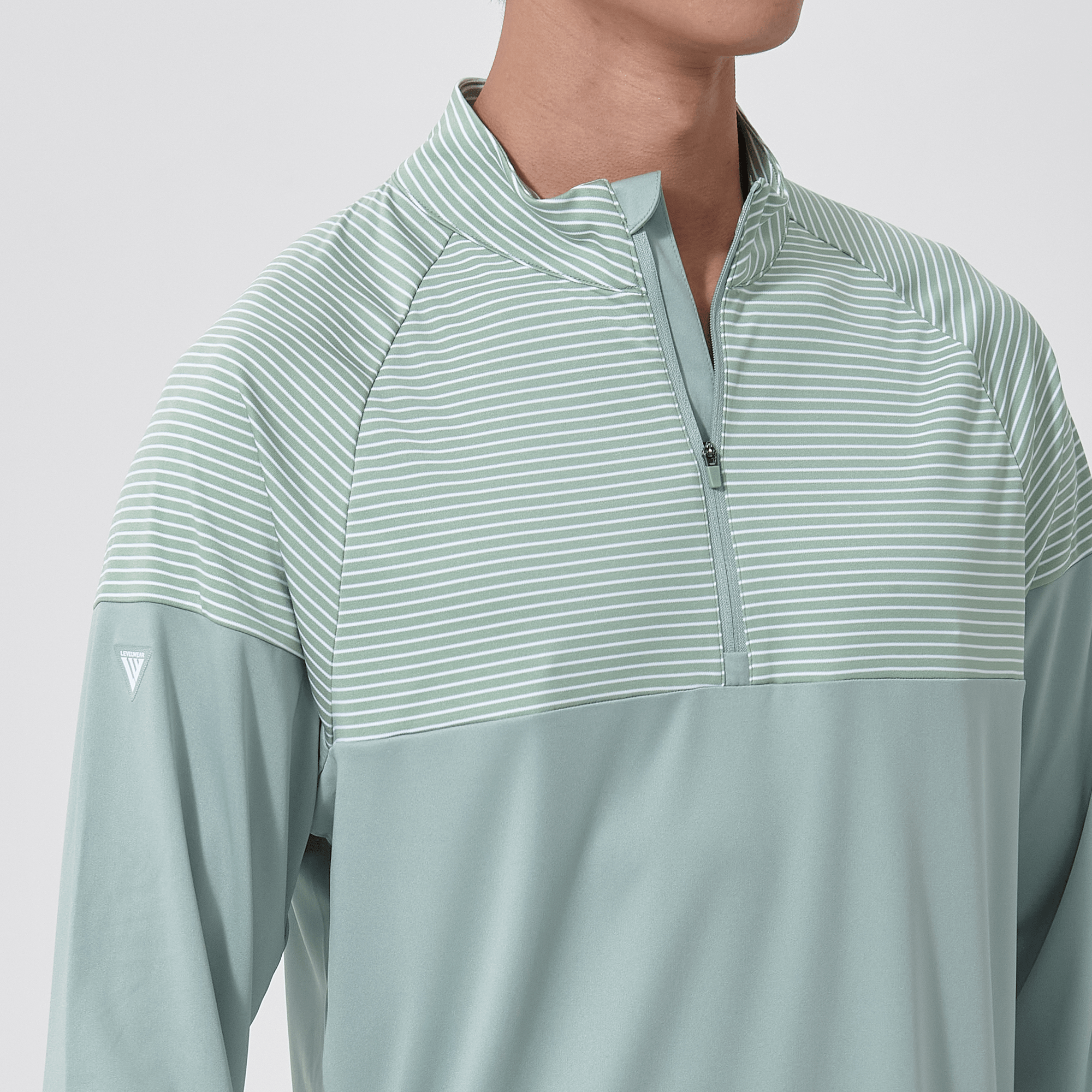 Designed for the golf course the Classic Stripes midlayer is a versatile addition to any wardrobe. This midlayer is constructed from 100% polyester, ensuring durability and ease of maintenance. It features moisture-wicking technology to keep you dry and comfortable during physical activity, while its anti-static properties help reduce fabric cling and discomfort. The quarter-zip design with a stand-up collar allows for easy adjustment to changing weather conditions, enhancing both warmth and airflow as needed. Raglan sleeves promote an unrestricted range of motion, ideal for perfecting your golf swing or engaging in other sports. The contrast upper body with a stripe pattern adds a visually appealing, sporty element, making this midlayer a stylish yet functional choice for any setting.