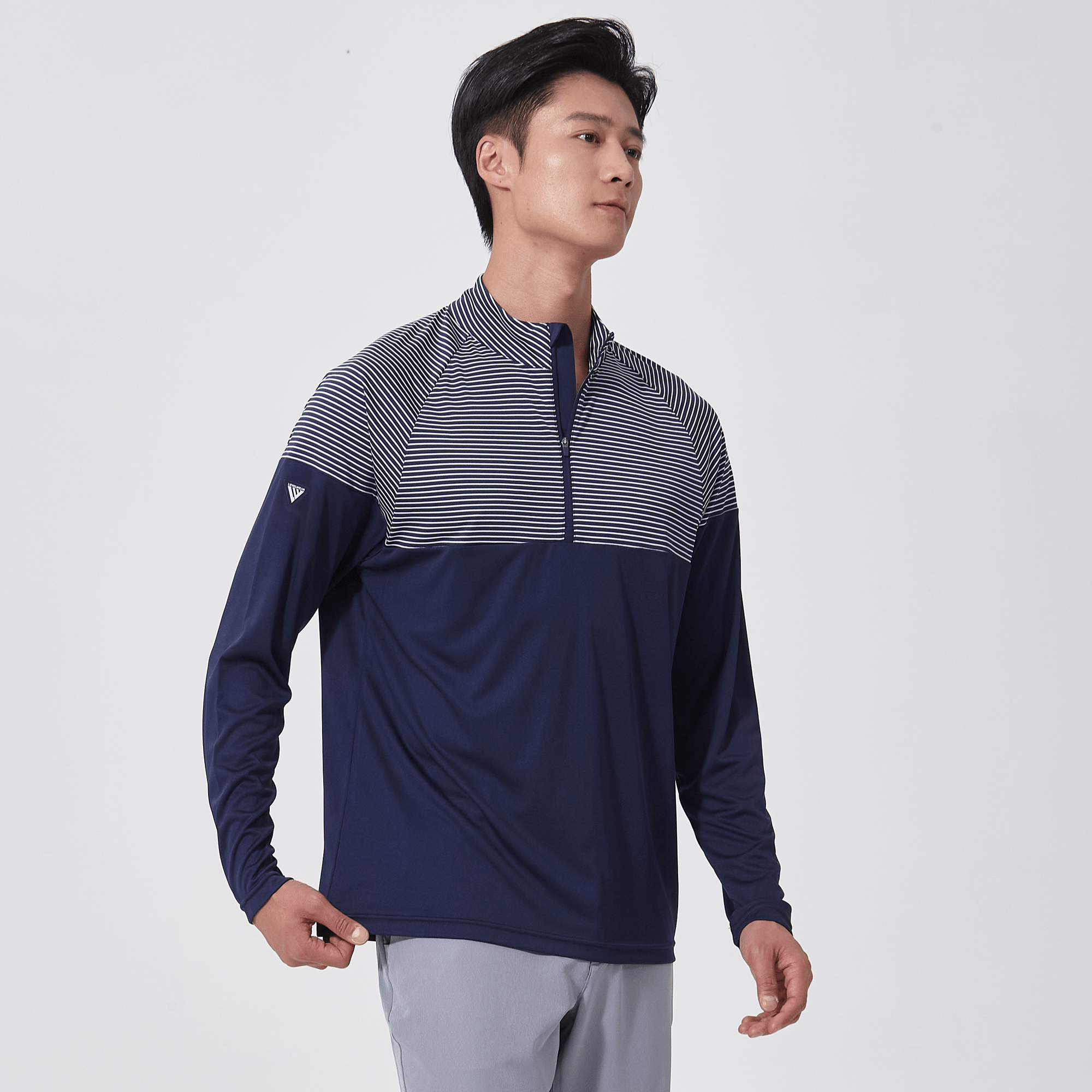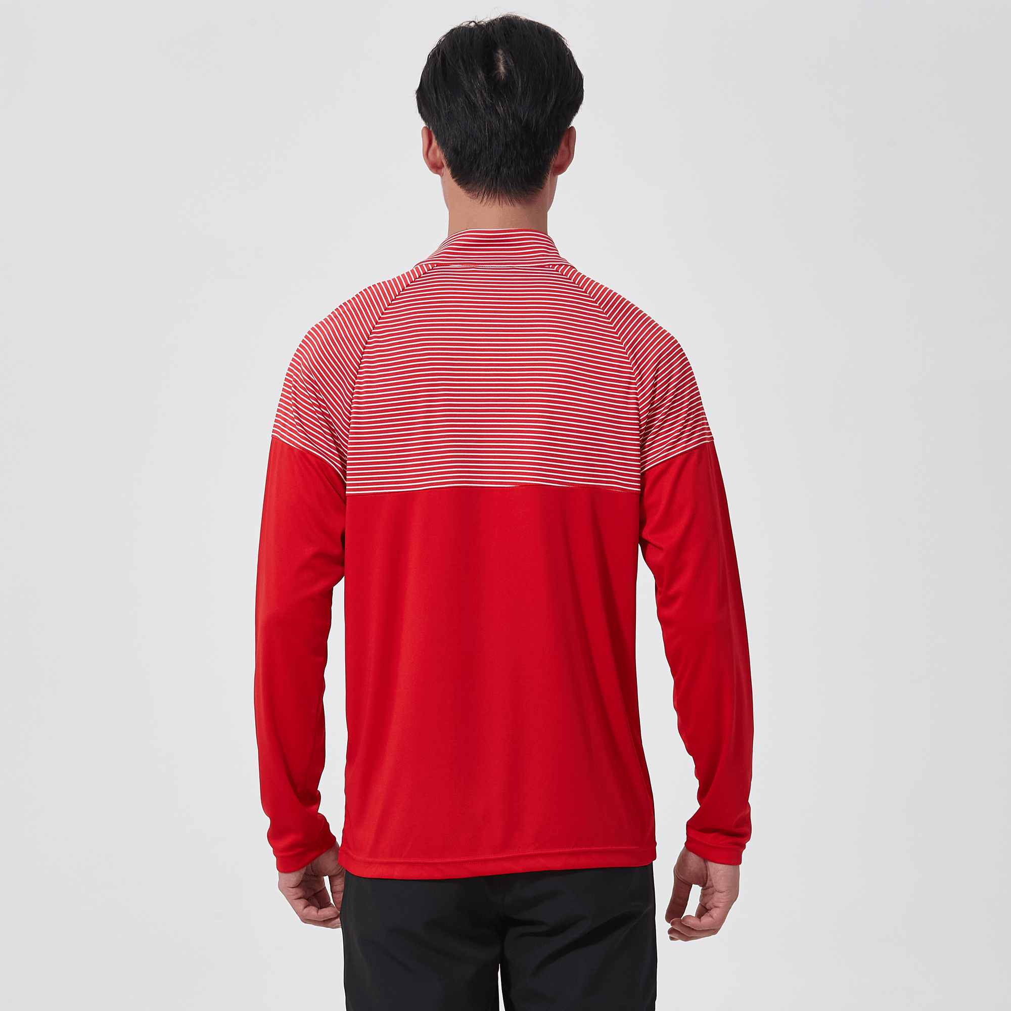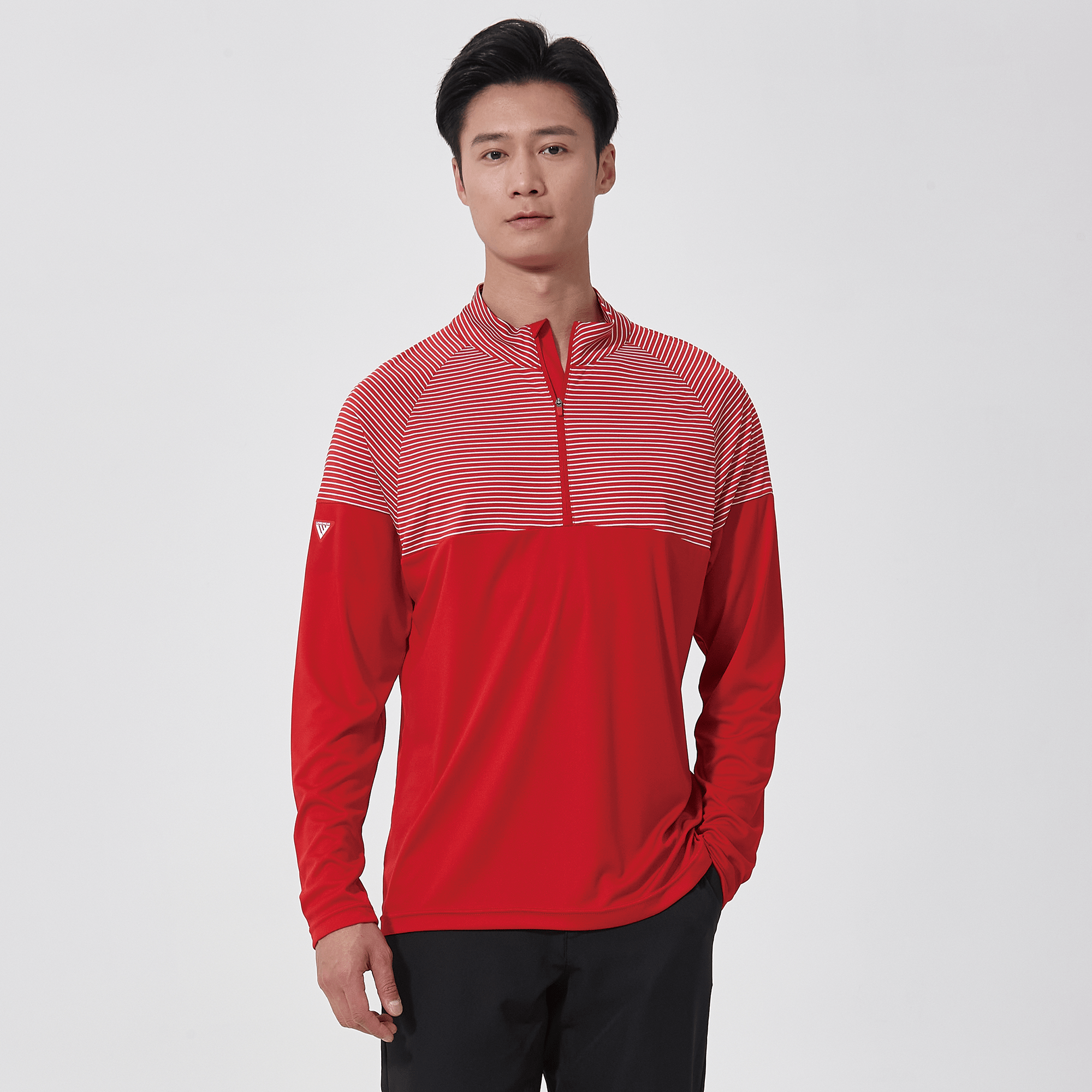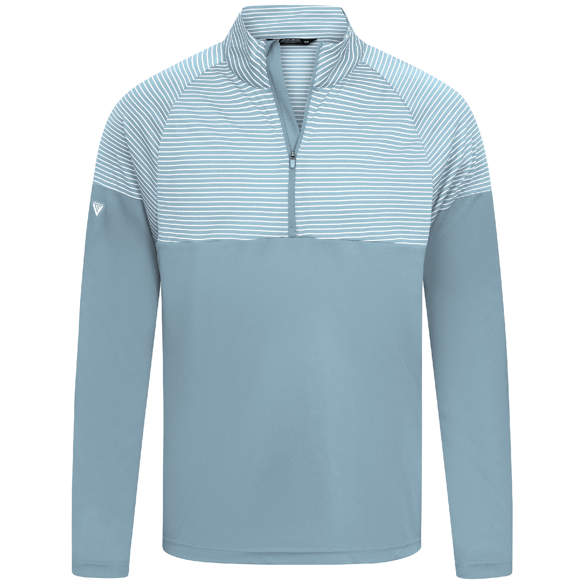 Designed for the golf course the Classic Stripes midlayer is a versatile addition to any wardrobe. This midlayer is constructed from 100% polyester, ensuring durability and ease of maintenance. It features moisture-wicking technology to keep you dry and comfortable during physical activity, while its anti-static properties help reduce fabric cling and discomfort. The quarter-zip design with a stand-up collar allows for easy adjustment to changing weather conditions, enhancing both warmth and airflow as needed. Raglan sleeves promote an unrestricted range of motion, ideal for perfecting your golf swing or engaging in other sports. The contrast upper body with a stripe pattern adds a visually appealing, sporty element, making this midlayer a stylish yet functional choice for any setting.