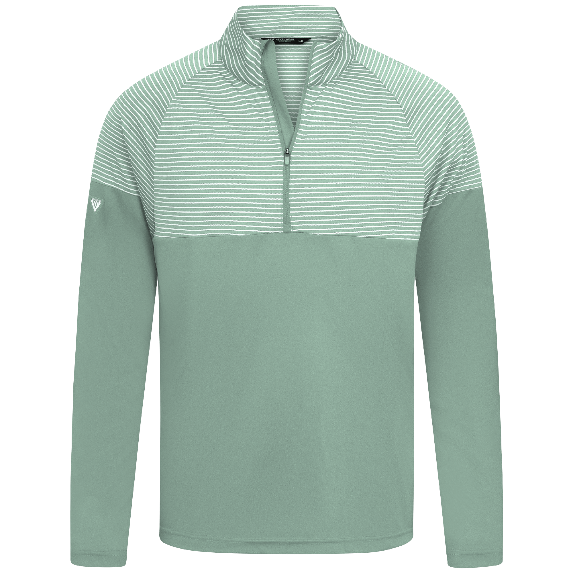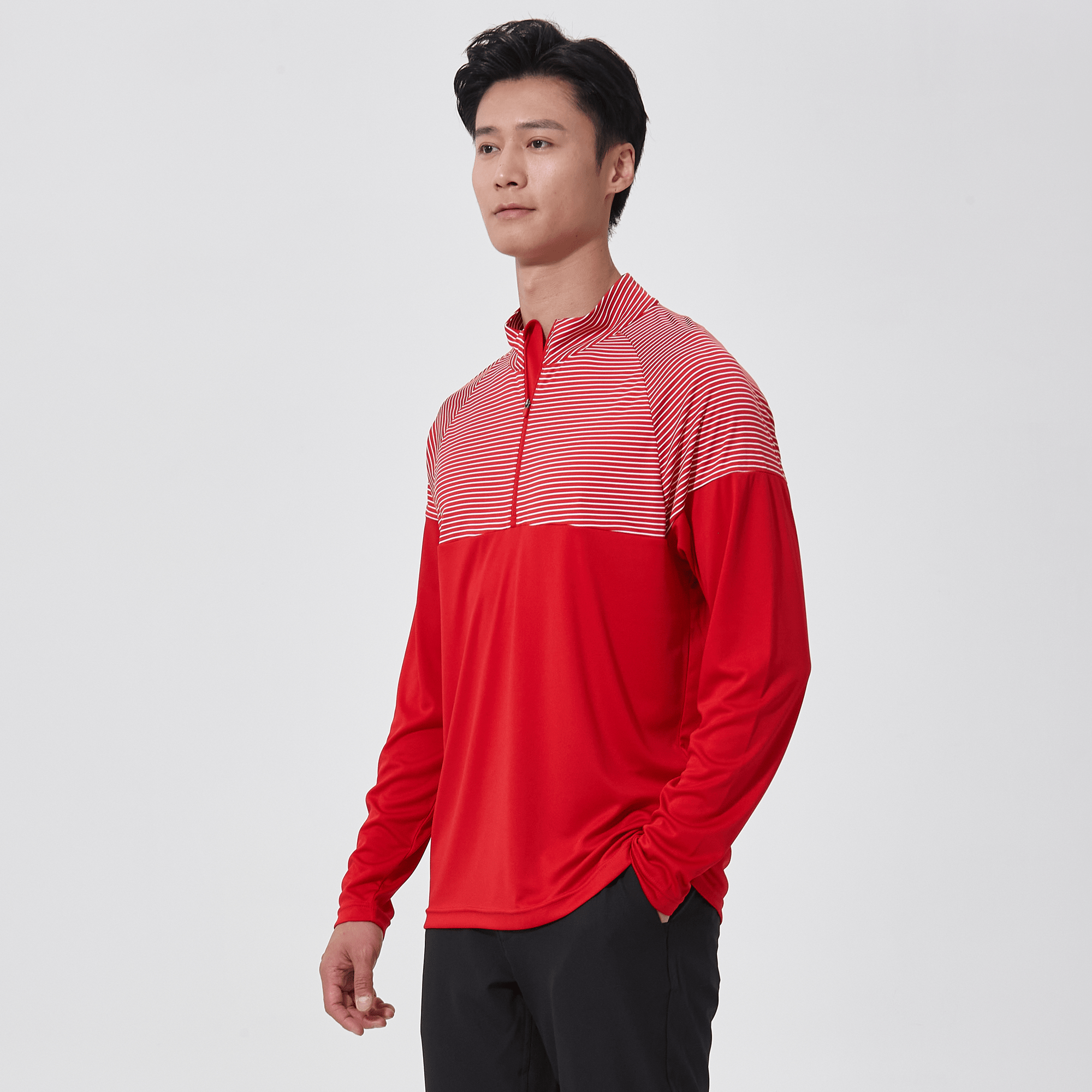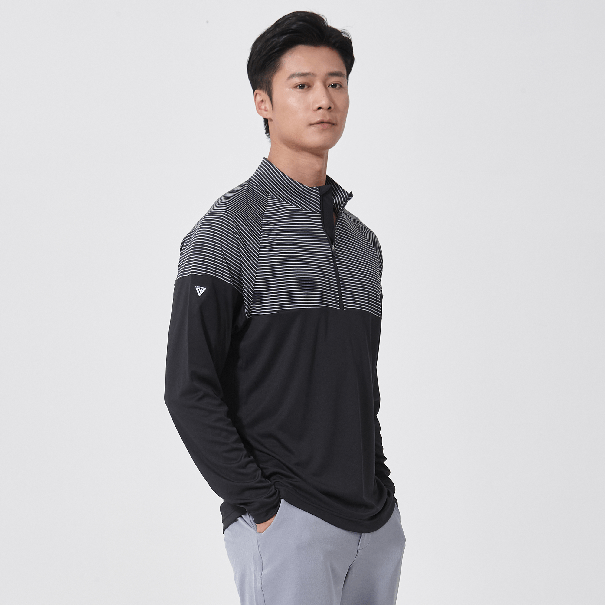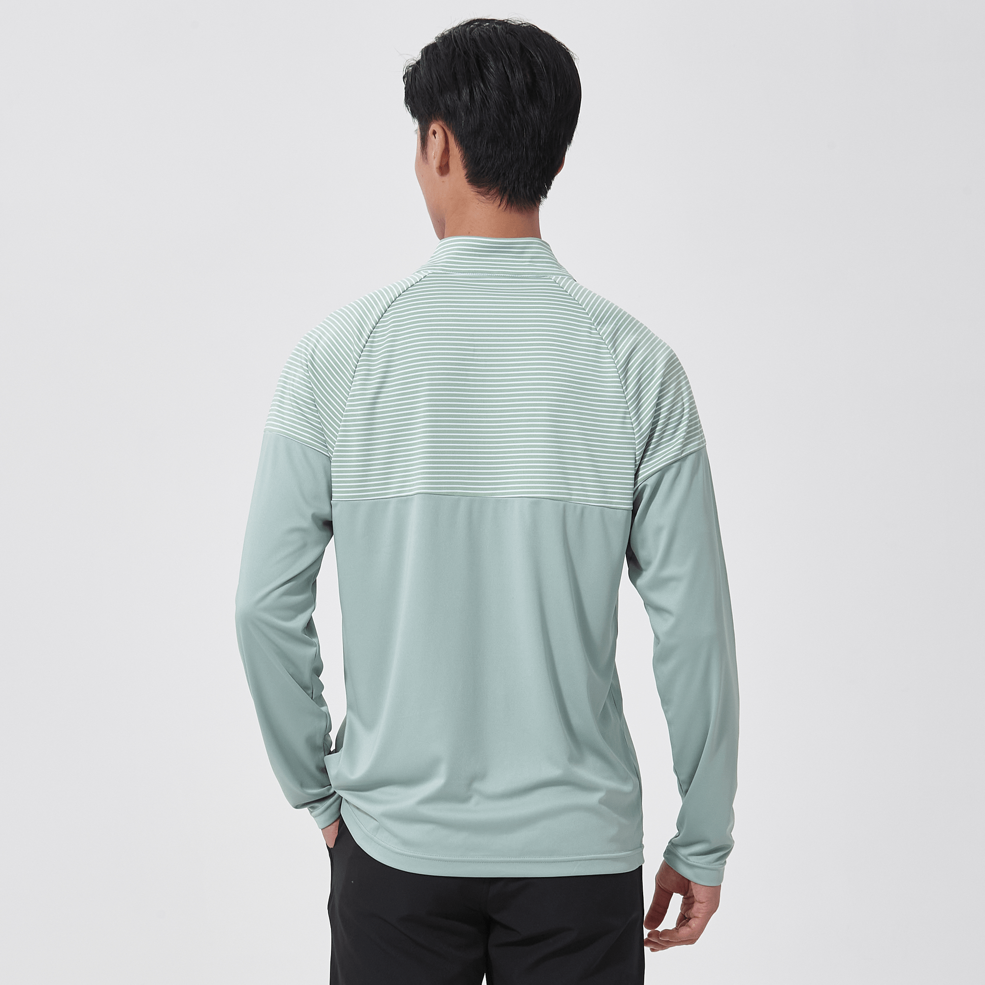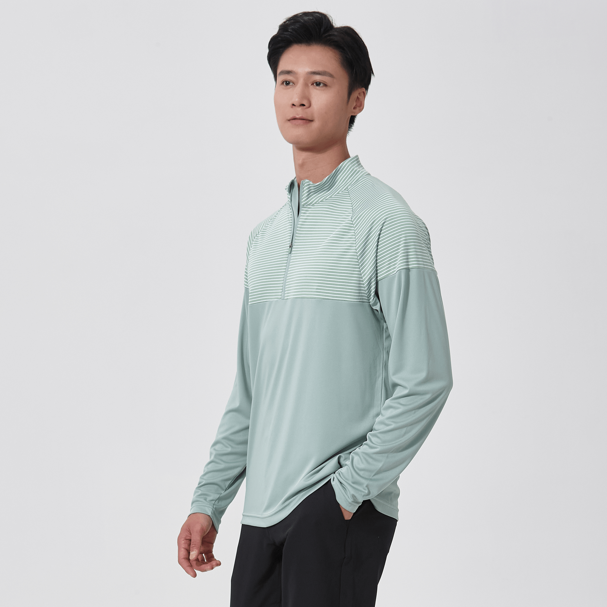 Designed for the golf course the Classic Stripes midlayer is a versatile addition to any wardrobe. This midlayer is constructed from 100% polyester, ensuring durability and ease of maintenance. It features moisture-wicking technology to keep you dry and comfortable during physical activity, while its anti-static properties help reduce fabric cling and discomfort. The quarter-zip design with a stand-up collar allows for easy adjustment to changing weather conditions, enhancing both warmth and airflow as needed. Raglan sleeves promote an unrestricted range of motion, ideal for perfecting your golf swing or engaging in other sports. The contrast upper body with a stripe pattern adds a visually appealing, sporty element, making this midlayer a stylish yet functional choice for any setting.