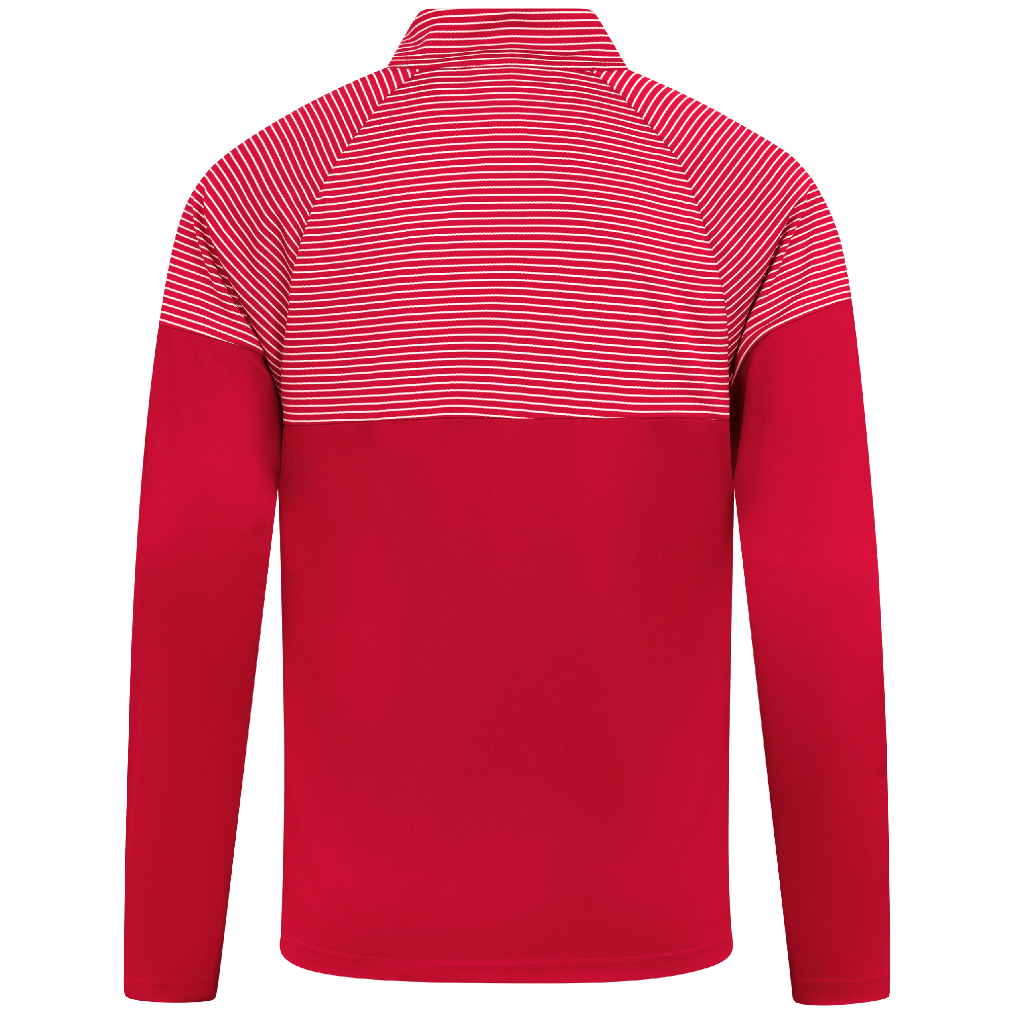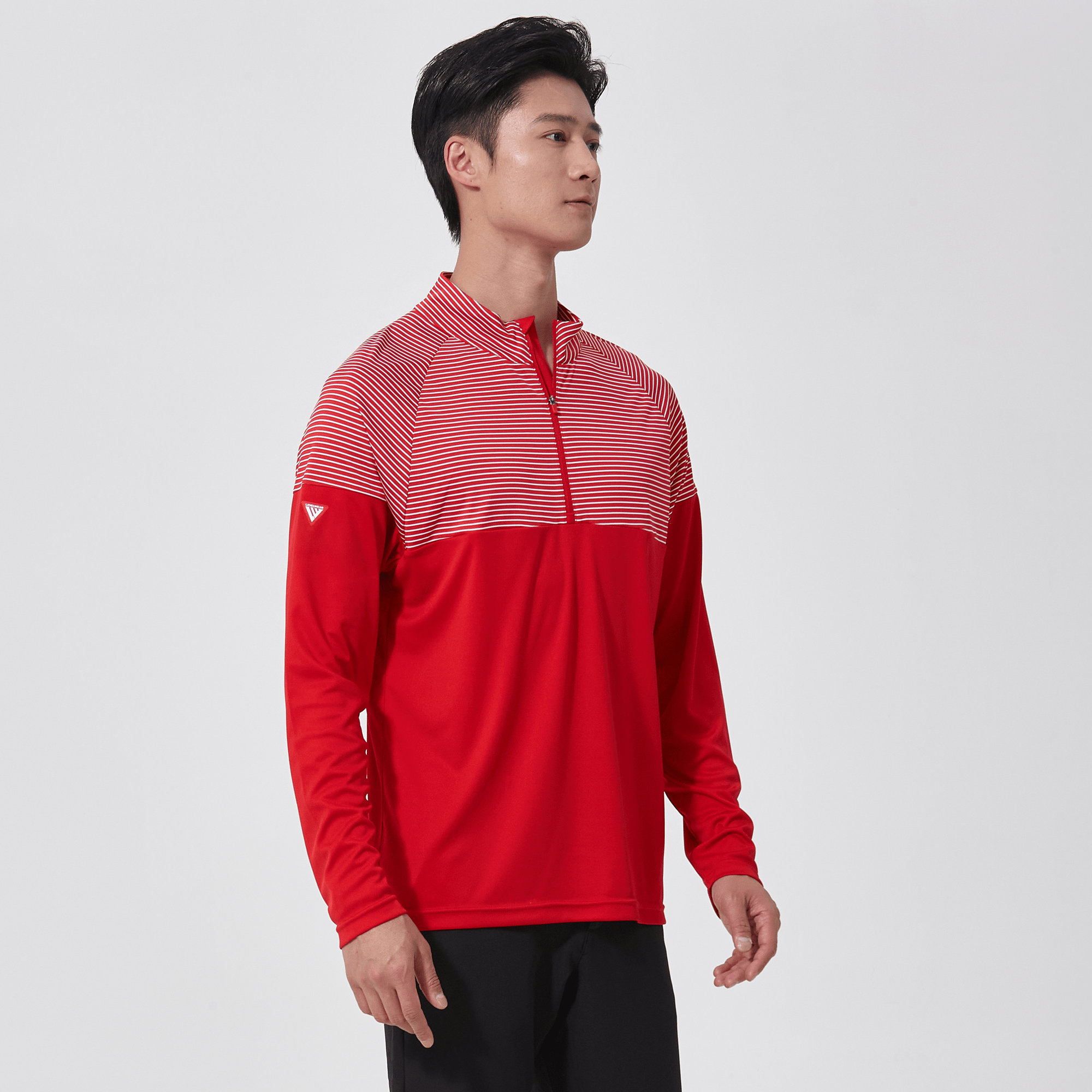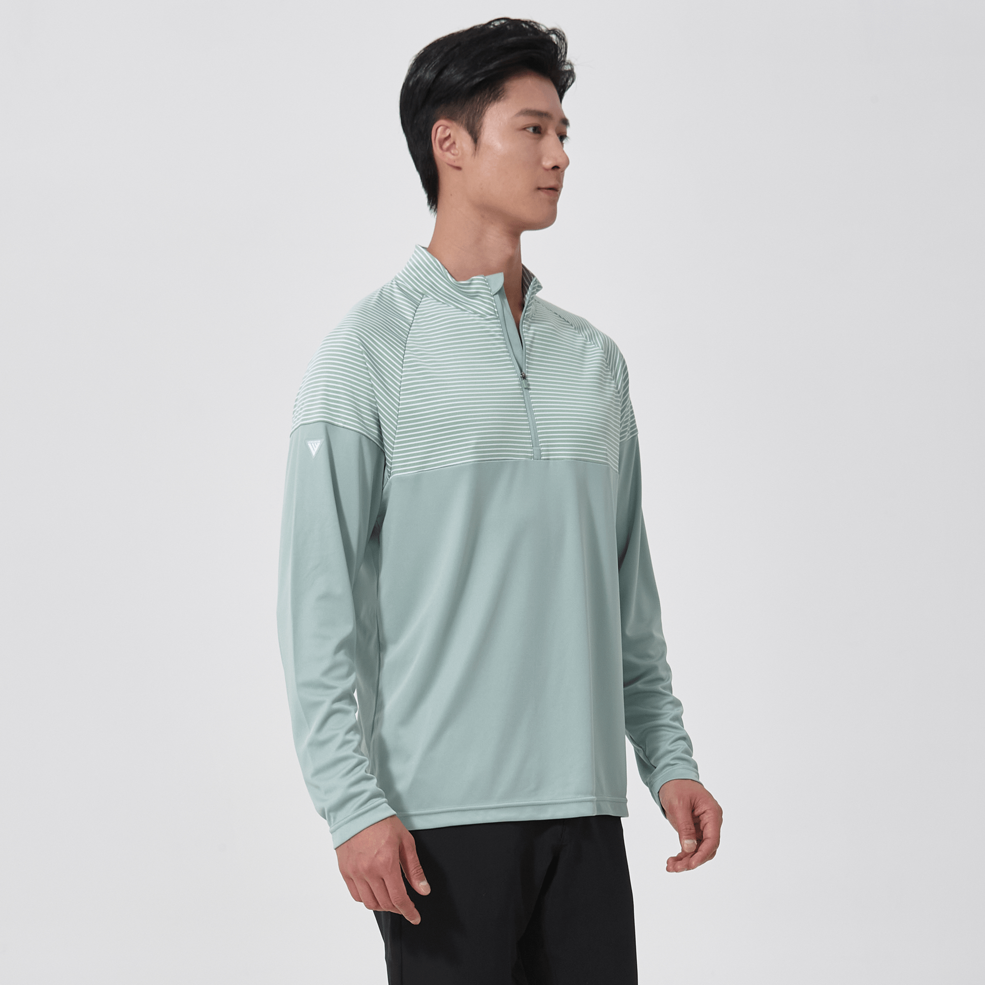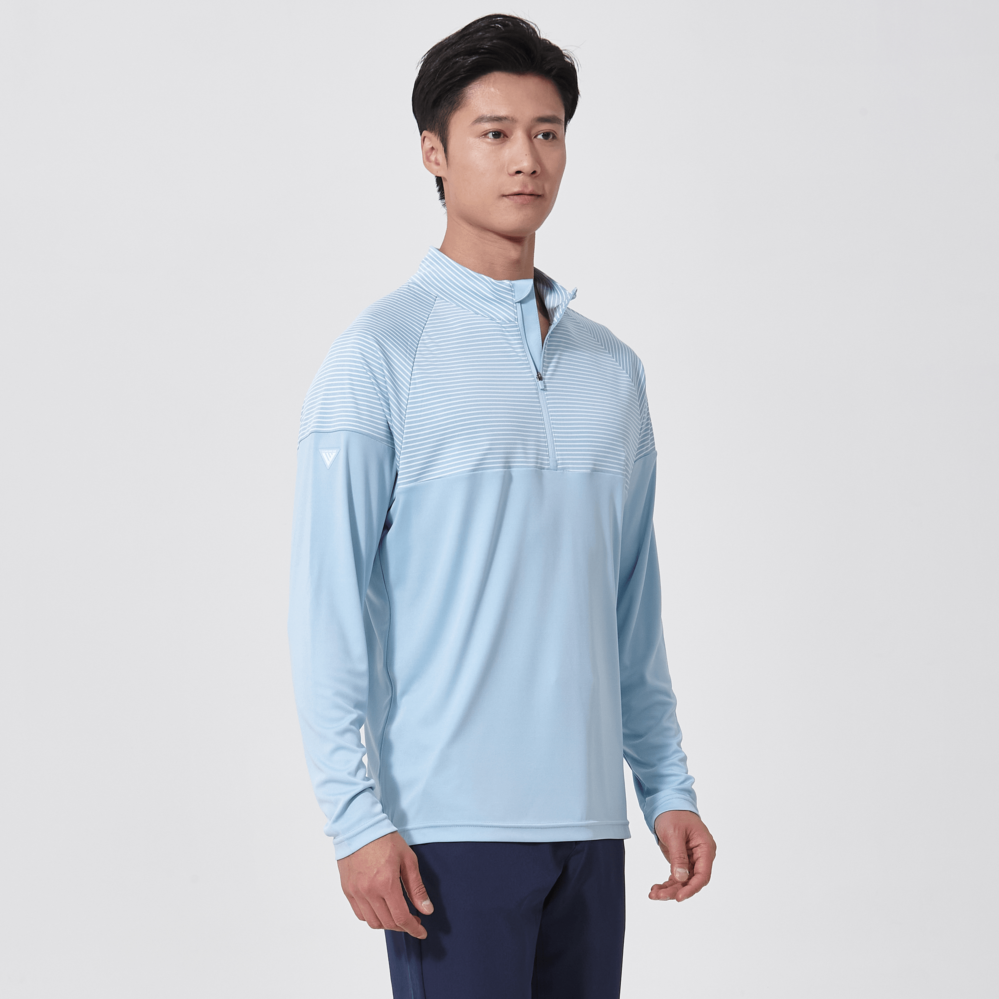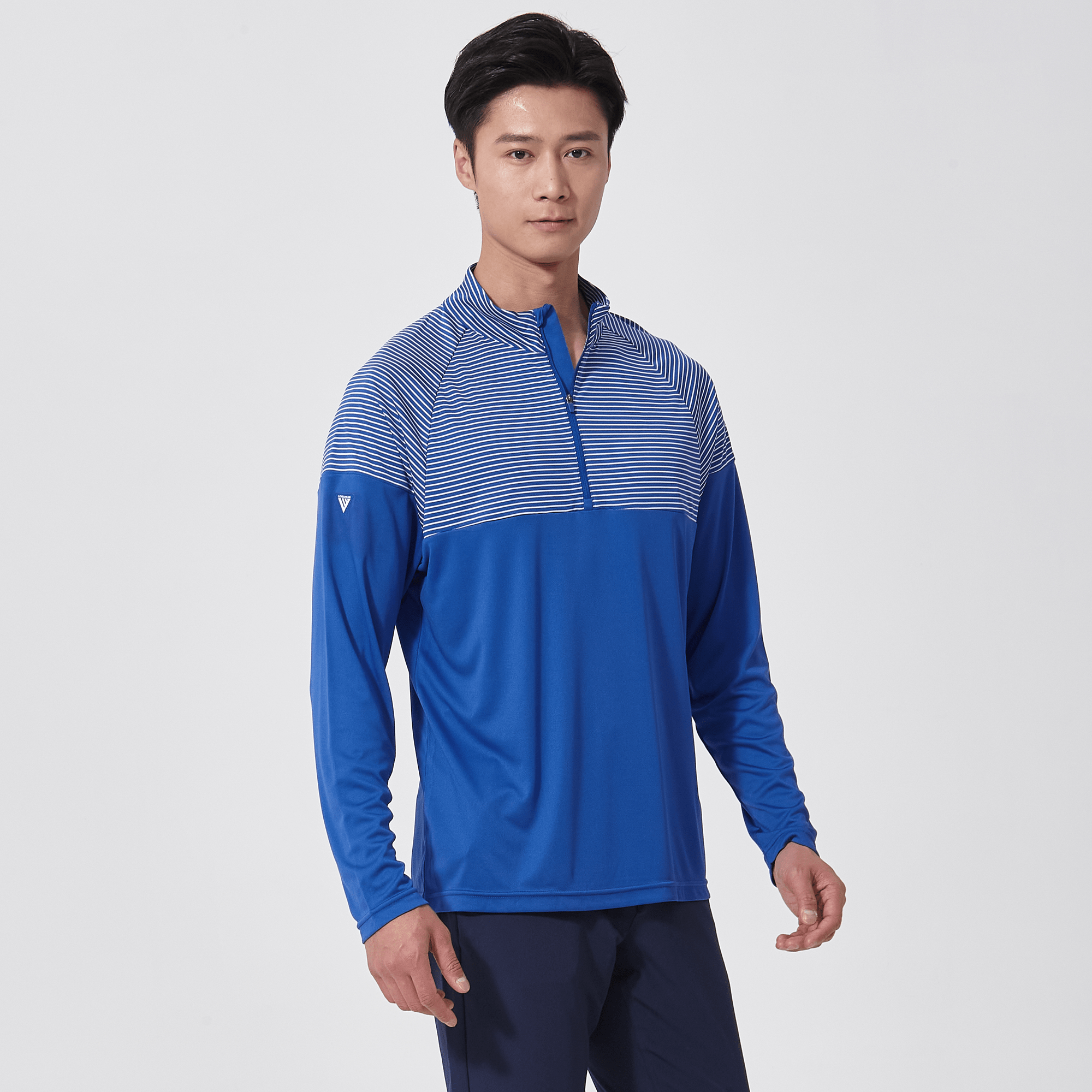Designed for the golf course the Classic Stripes midlayer is a versatile addition to any wardrobe. This midlayer is constructed from 100% polyester, ensuring durability and ease of maintenance. It features moisture-wicking technology to keep you dry and comfortable during physical activity, while its anti-static properties help reduce fabric cling and discomfort. The quarter-zip design with a stand-up collar allows for easy adjustment to changing weather conditions, enhancing both warmth and airflow as needed. Raglan sleeves promote an unrestricted range of motion, ideal for perfecting your golf swing or engaging in other sports. The contrast upper body with a stripe pattern adds a visually appealing, sporty element, making this midlayer a stylish yet functional choice for any setting.