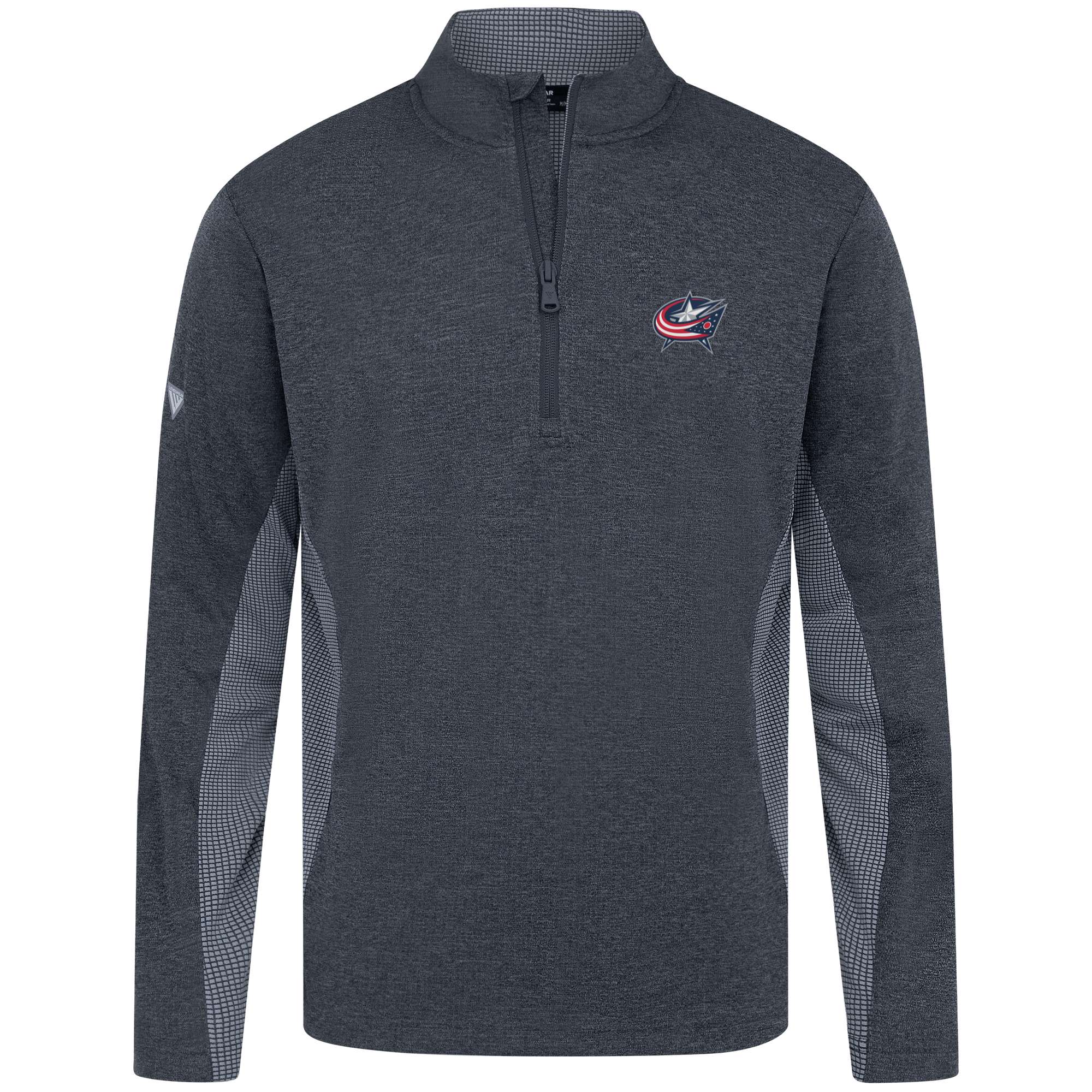 - Quarter-zip with stand-up collar