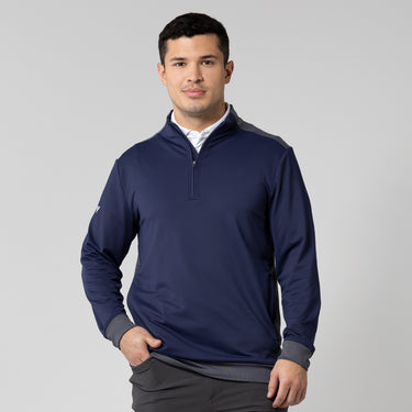 The men's Crosswind is a high-performance quarter zip midlayer that combines style with functionality, perfect for both athletic pursuits and casual wear. Crafted from Cationic French Terry, this midlayer offers a unique texture along with a comfortable fit, made from a blend of 92% polyester and 8% spandex for ample stretch and mobility. Its moisture-wicking technology efficiently pulls sweat away from the skin, keeping you dry and comfortable during rigorous activities. The design features a contrasting back panel that adds a modern aesthetic, while the zippered pockets provide secure storage for your essentials. Whether you're out for a morning jog, hitting the golf course, or needing an extra layer for a cool day, the Crosswind midlayer delivers both warmth and sophisticated style.