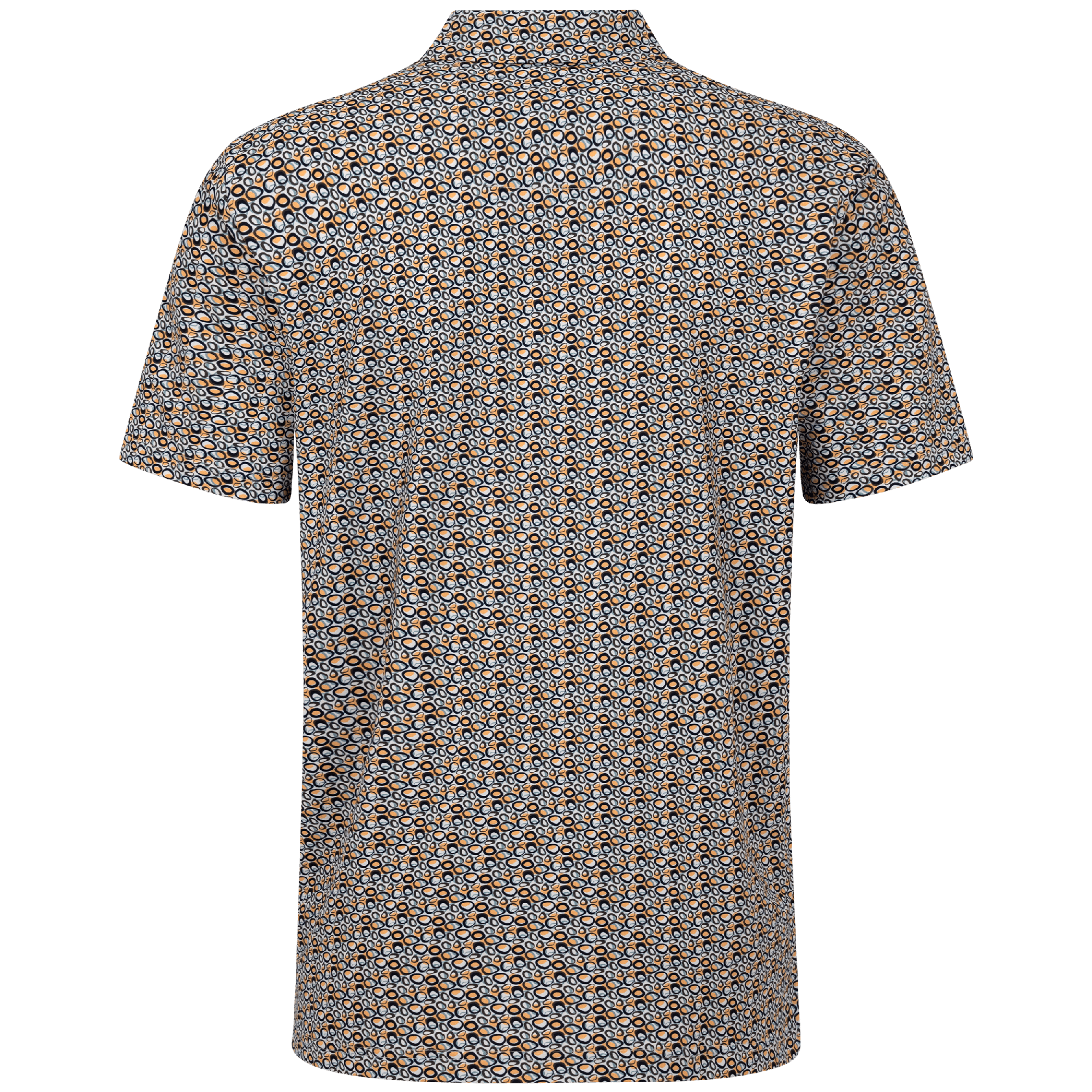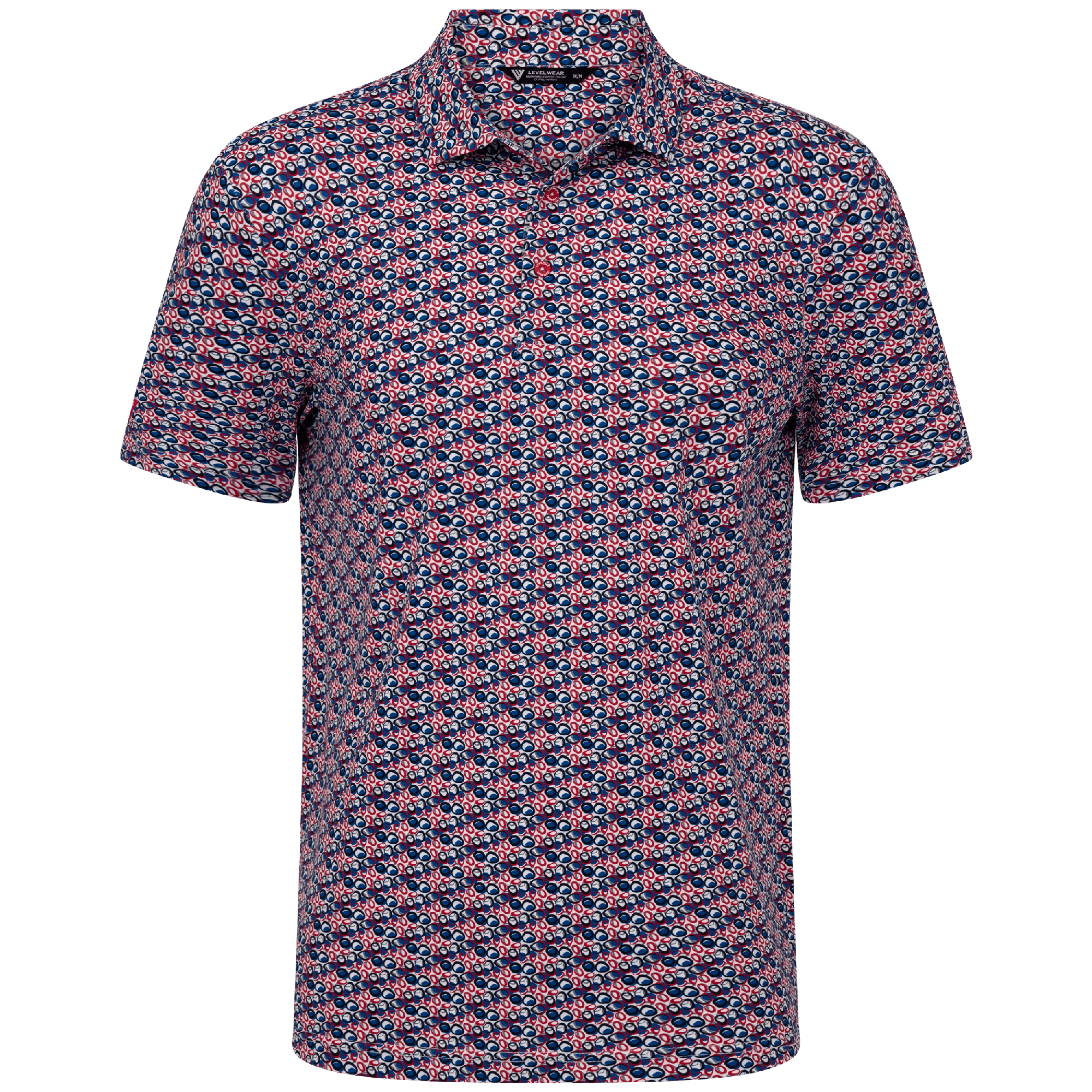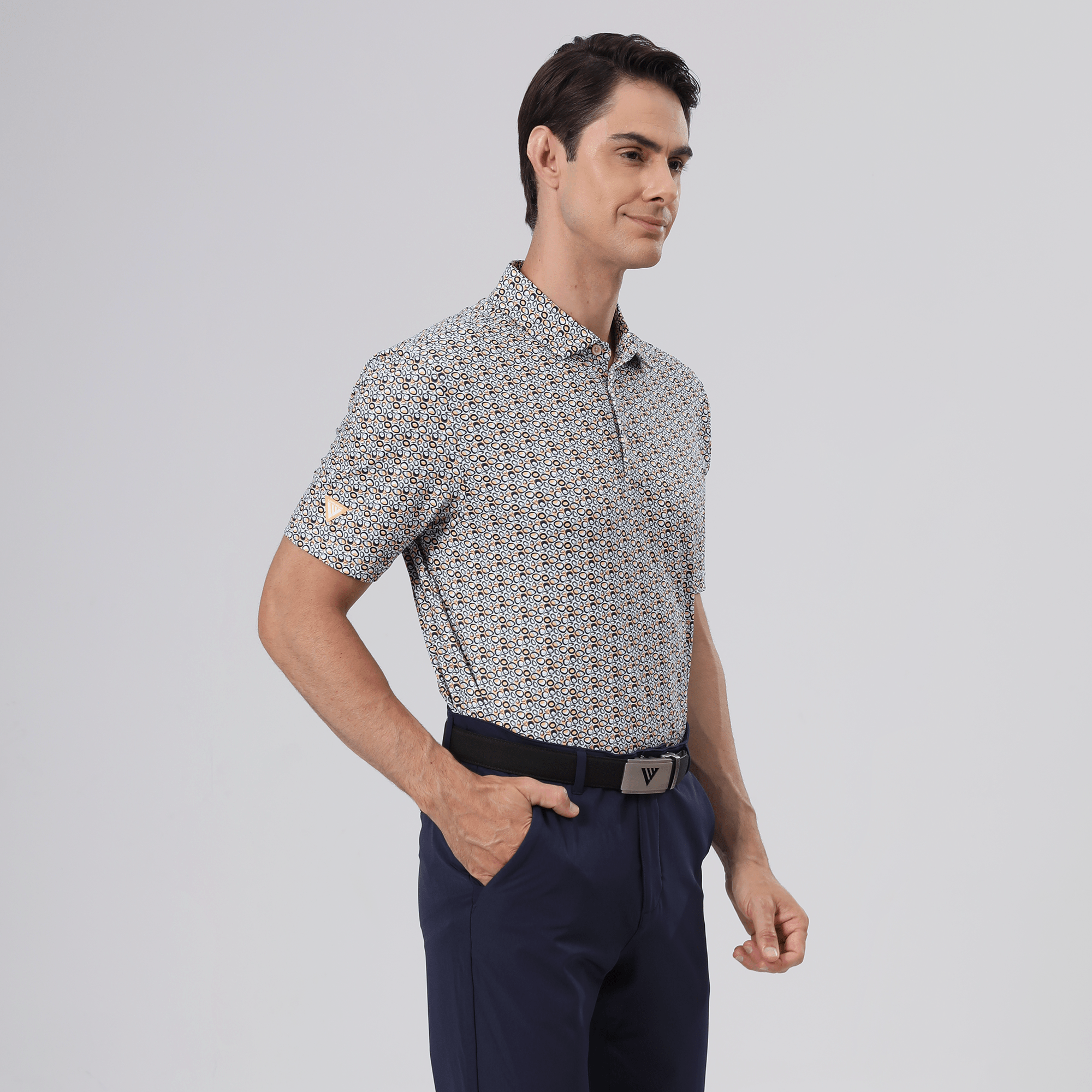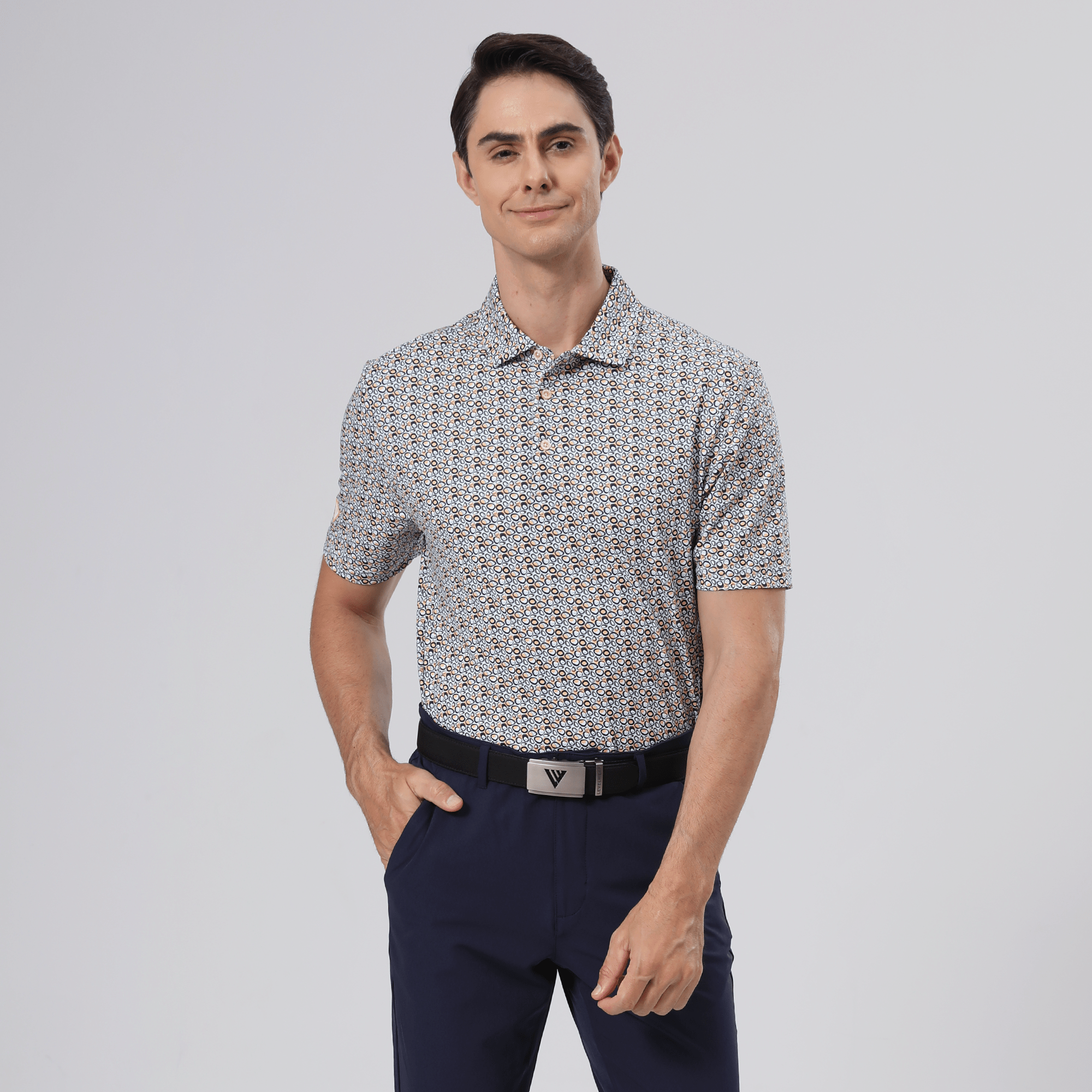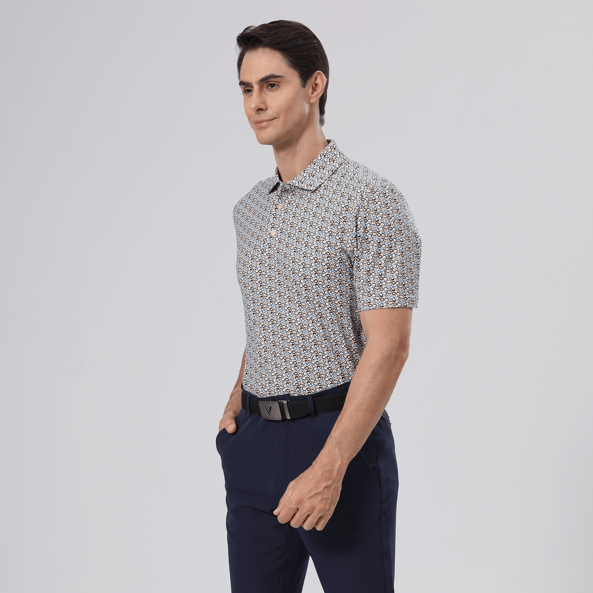 Make a striking impression on the golf course with the men's Dazzle polo, where functionality meets bold design. Crafted from a blend of 93% polyester and 7% spandex, this polo is tailored for those who demand high performance and style. It features UPF 50+ protection to shield you from the sun's harsh rays and incorporates moisture-wicking technology to ensure you remain dry and comfortable throughout your game. The self-fabric collar with a built-in collar stay keeps the polo looking sharp, while the high-low hem detail with side slits allows for greater freedom of movement during your swing. The vibrant all-over print ensures you stand out in style, making the Dazzle polo a perfect choice for golfers looking to elevate their wardrobe on the greens.