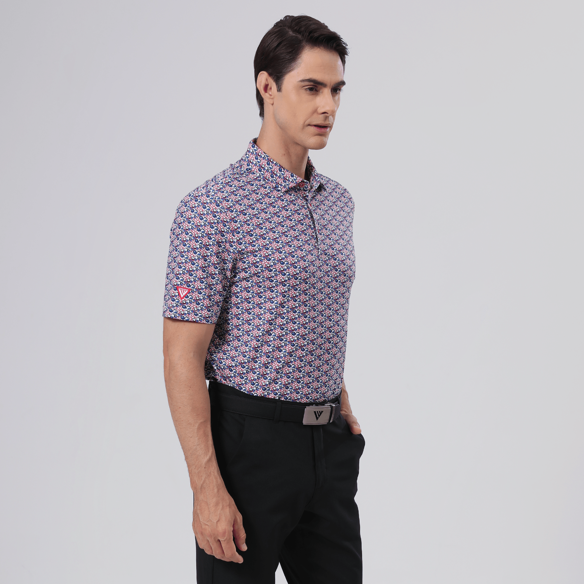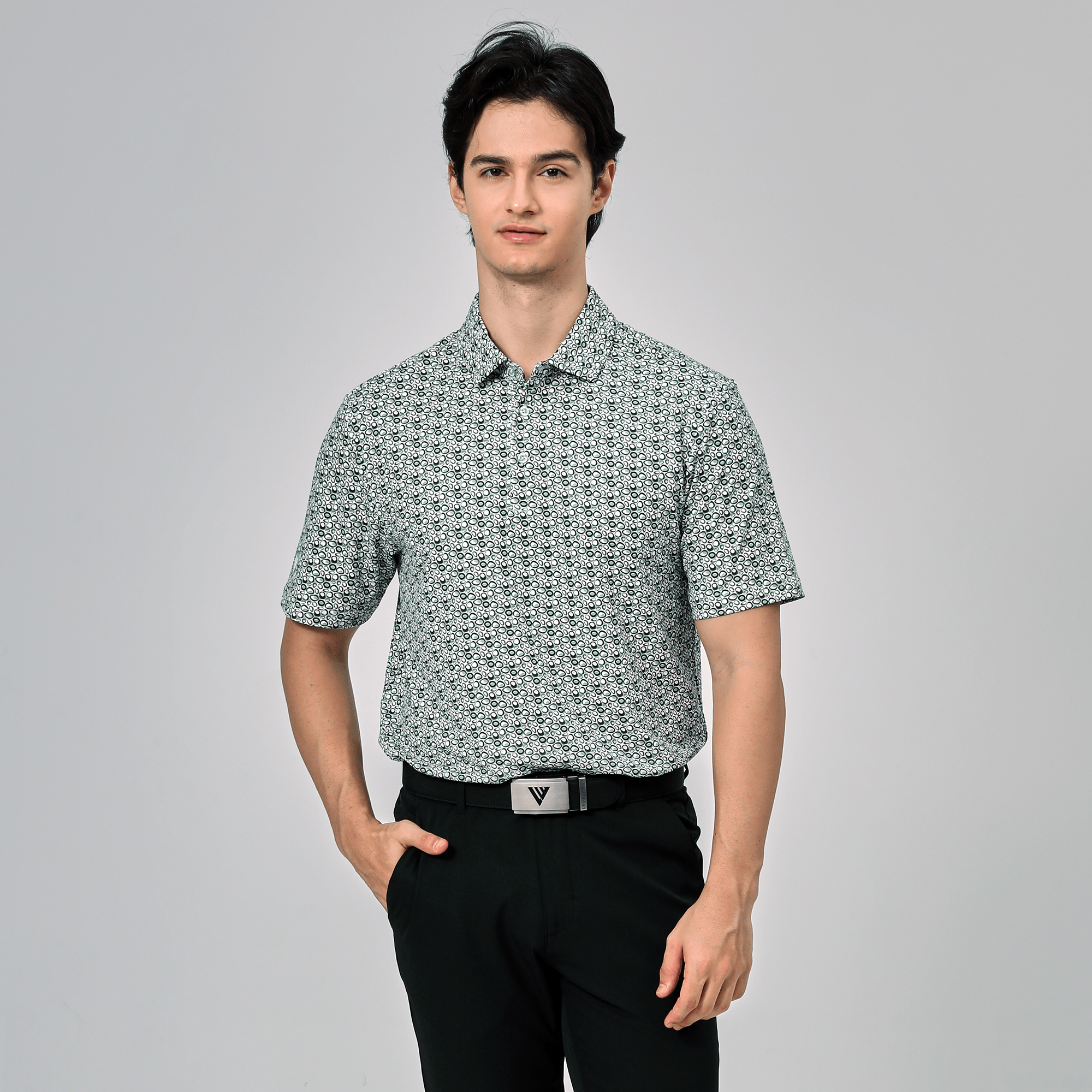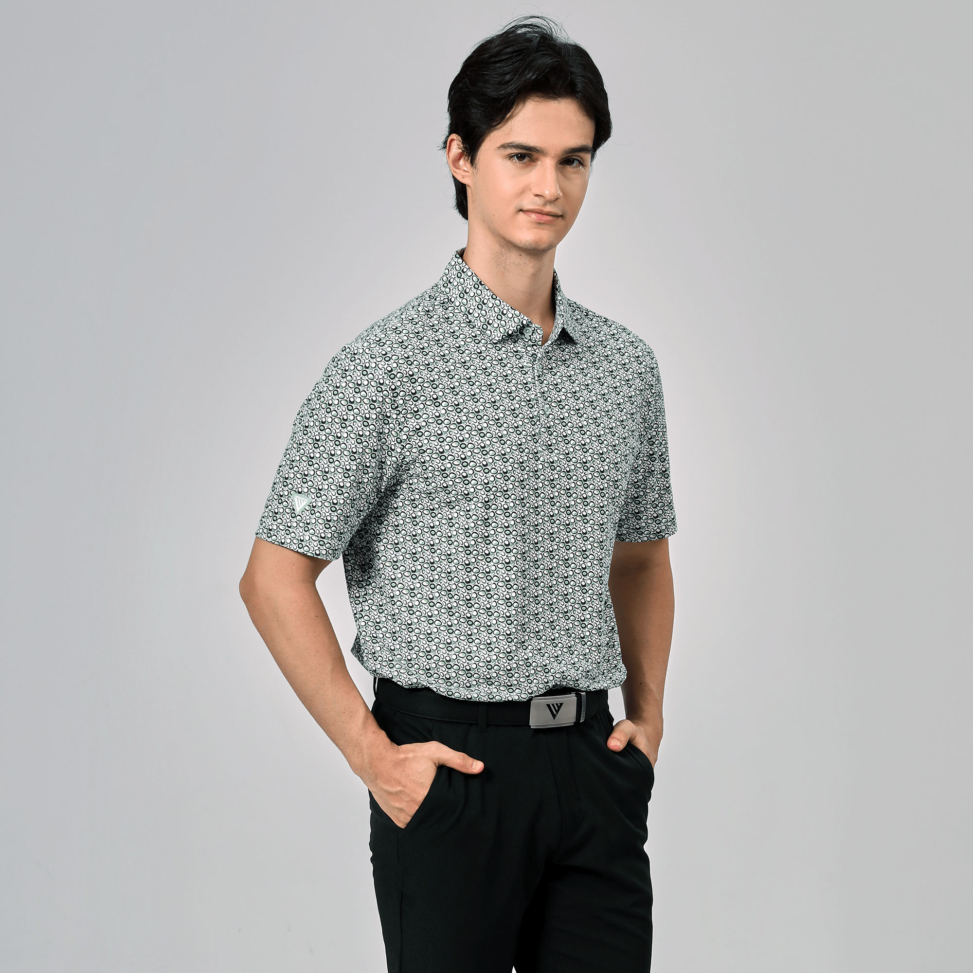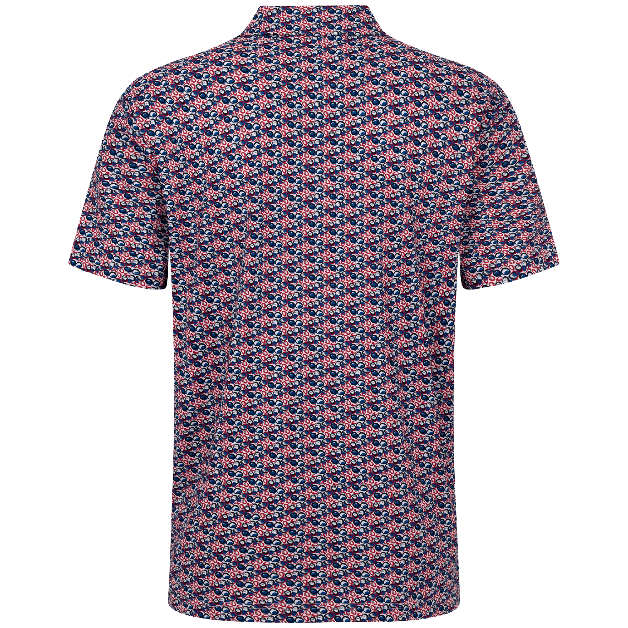 Make a striking impression on the golf course with the men's Dazzle polo, where functionality meets bold design. Crafted from a blend of 93% polyester and 7% spandex, this polo is tailored for those who demand high performance and style. It features UPF 50+ protection to shield you from the sun's harsh rays and incorporates moisture-wicking technology to ensure you remain dry and comfortable throughout your game. The self-fabric collar with a built-in collar stay keeps the polo looking sharp, while the high-low hem detail with side slits allows for greater freedom of movement during your swing. The vibrant all-over print ensures you stand out in style, making the Dazzle polo a perfect choice for golfers looking to elevate their wardrobe on the greens.