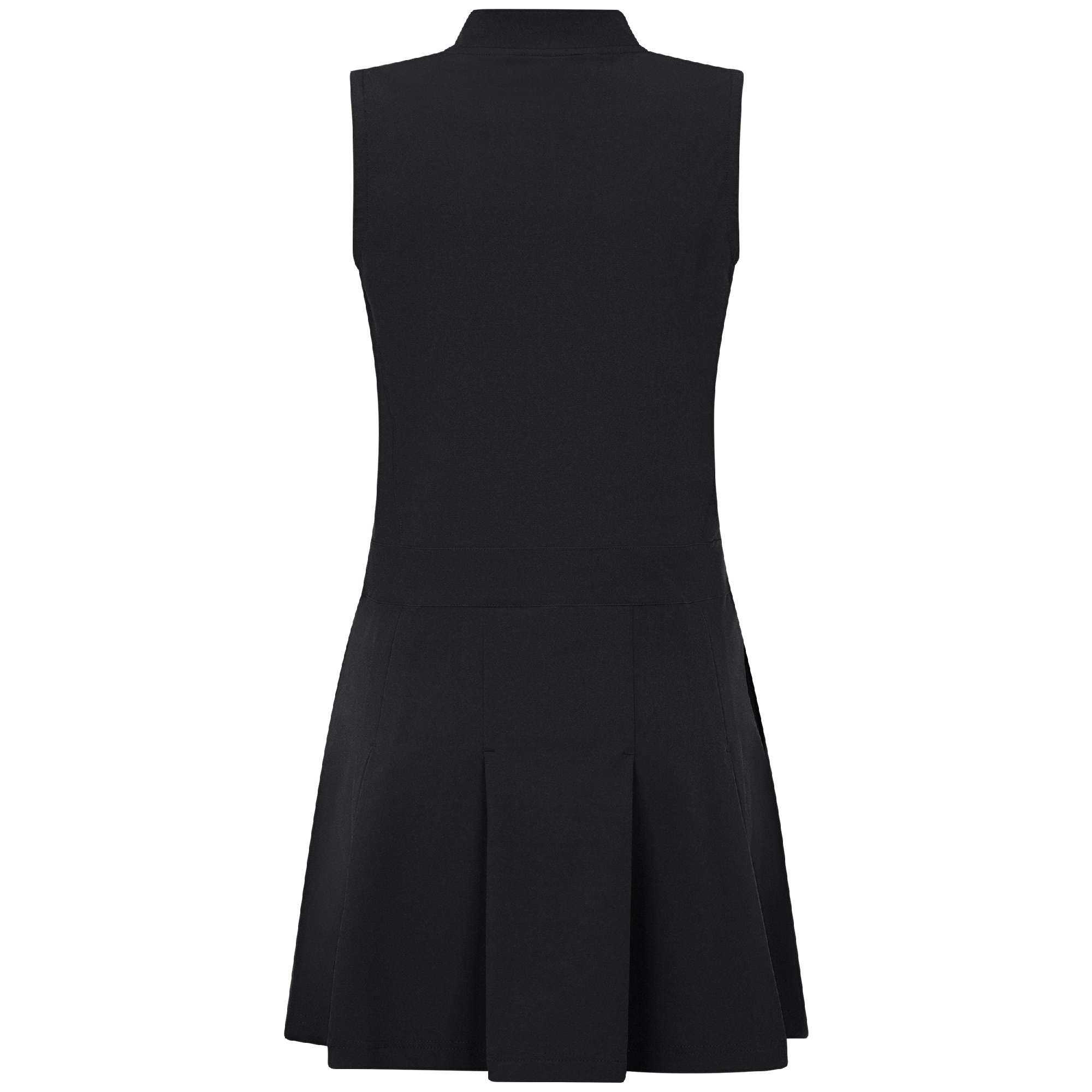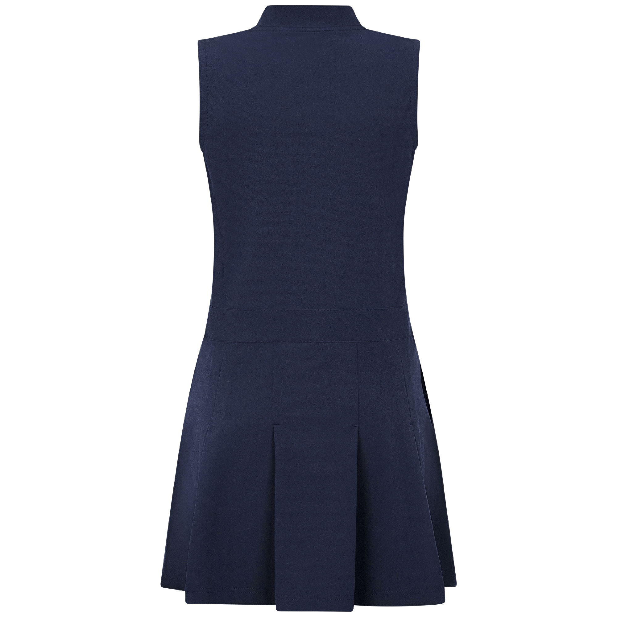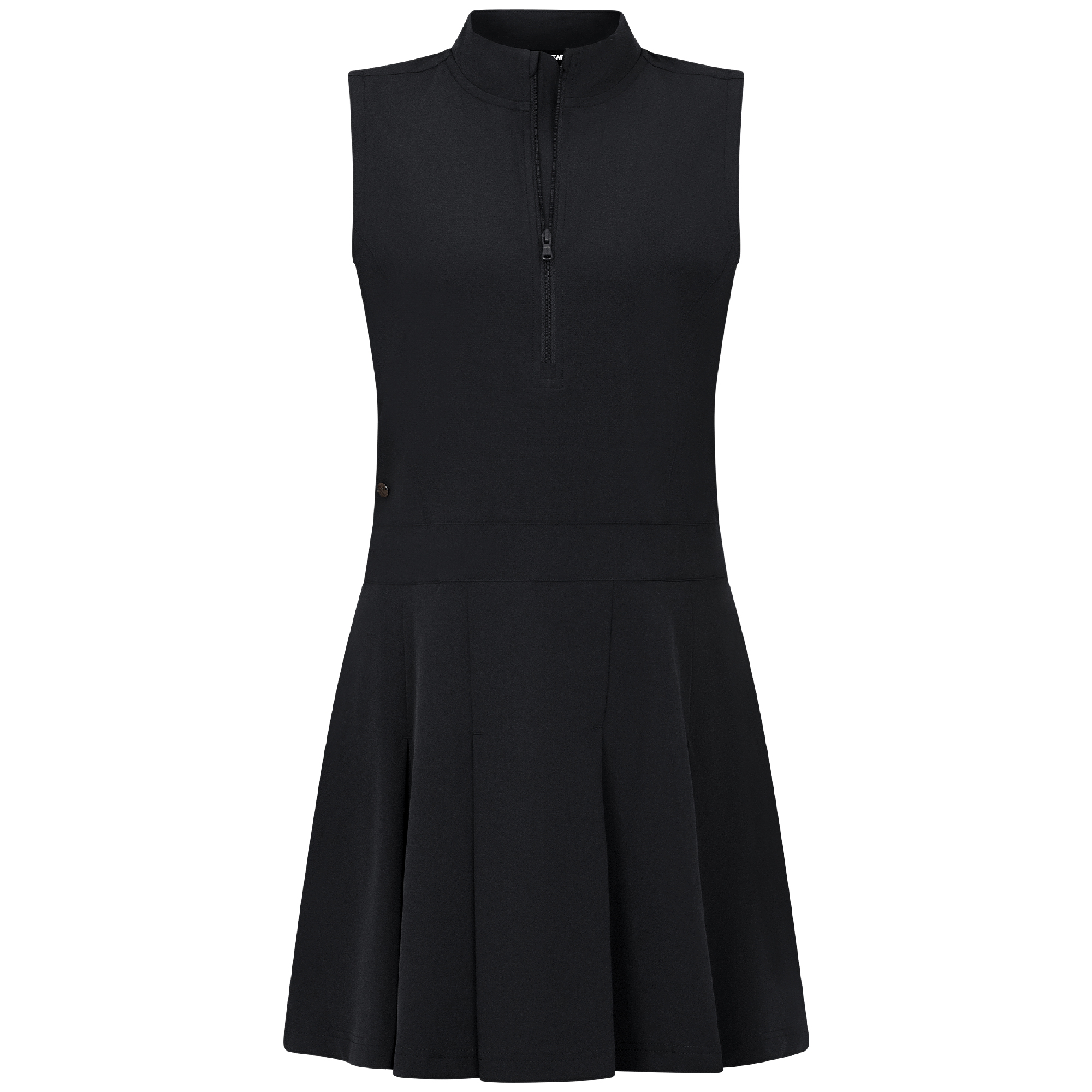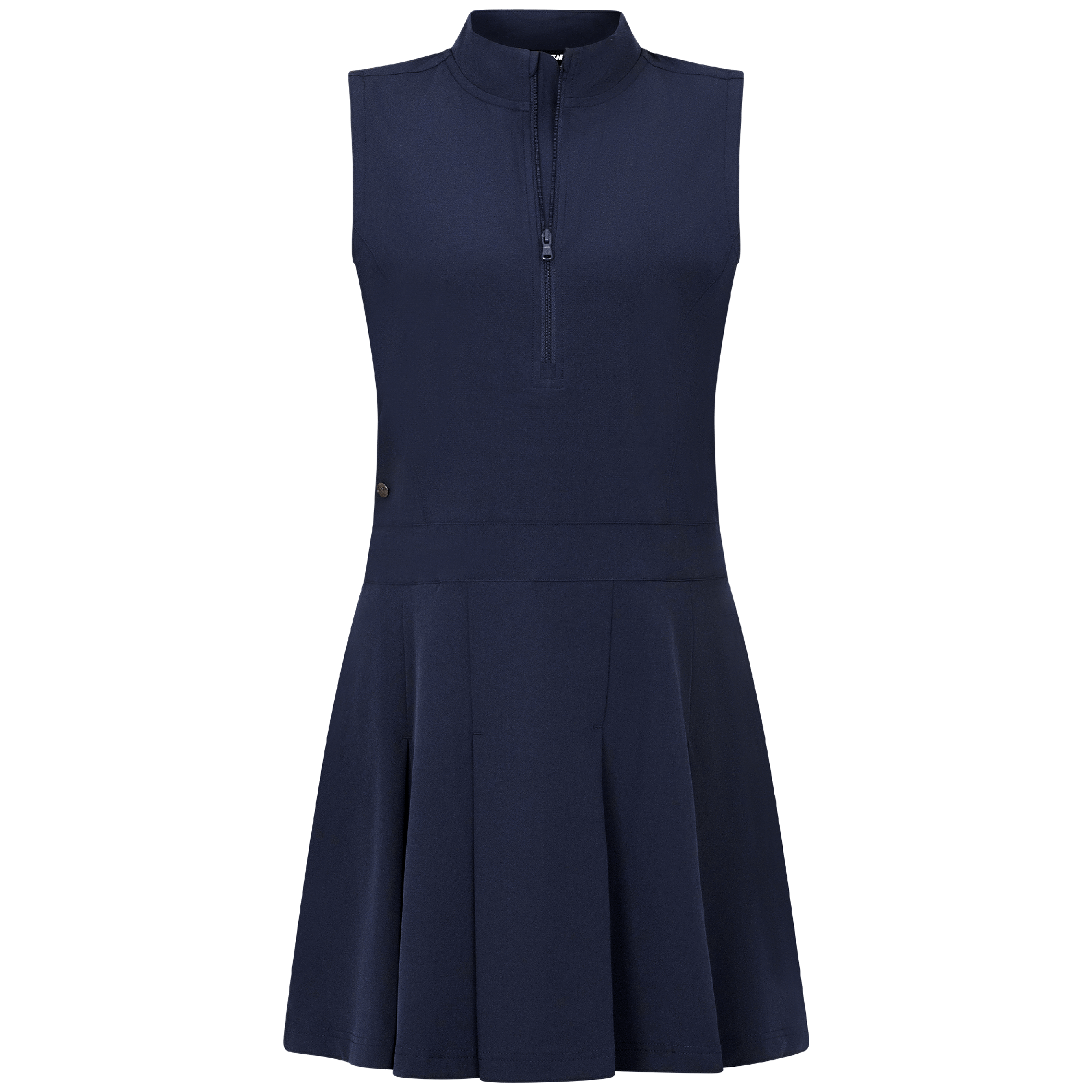 Arrive in style and confidence to the golf course with the women's Deluxe dress, designed to offer both fashion and functionality for the modern golfer. Made from a blend of 92% polyester and 8% spandex, this dress combines flexibility and comfort with moisture-wicking technology to keep you dry and anti-static properties to ensure a smooth, cling-free experience. The quarter-zip with a stand-up collar allows for adjustable coverage, while the side seam pockets provide convenient storage for small essentials. Unique to this design is the box pleat skirt which conceals hidden shorts, offering the elegance of a dress with the practicality and coverage of shorts underneath. Ideal for a sunny day on the greens, the Deluxe dress marries performance and style, making it a perfect addition to your golfing wardrobe.