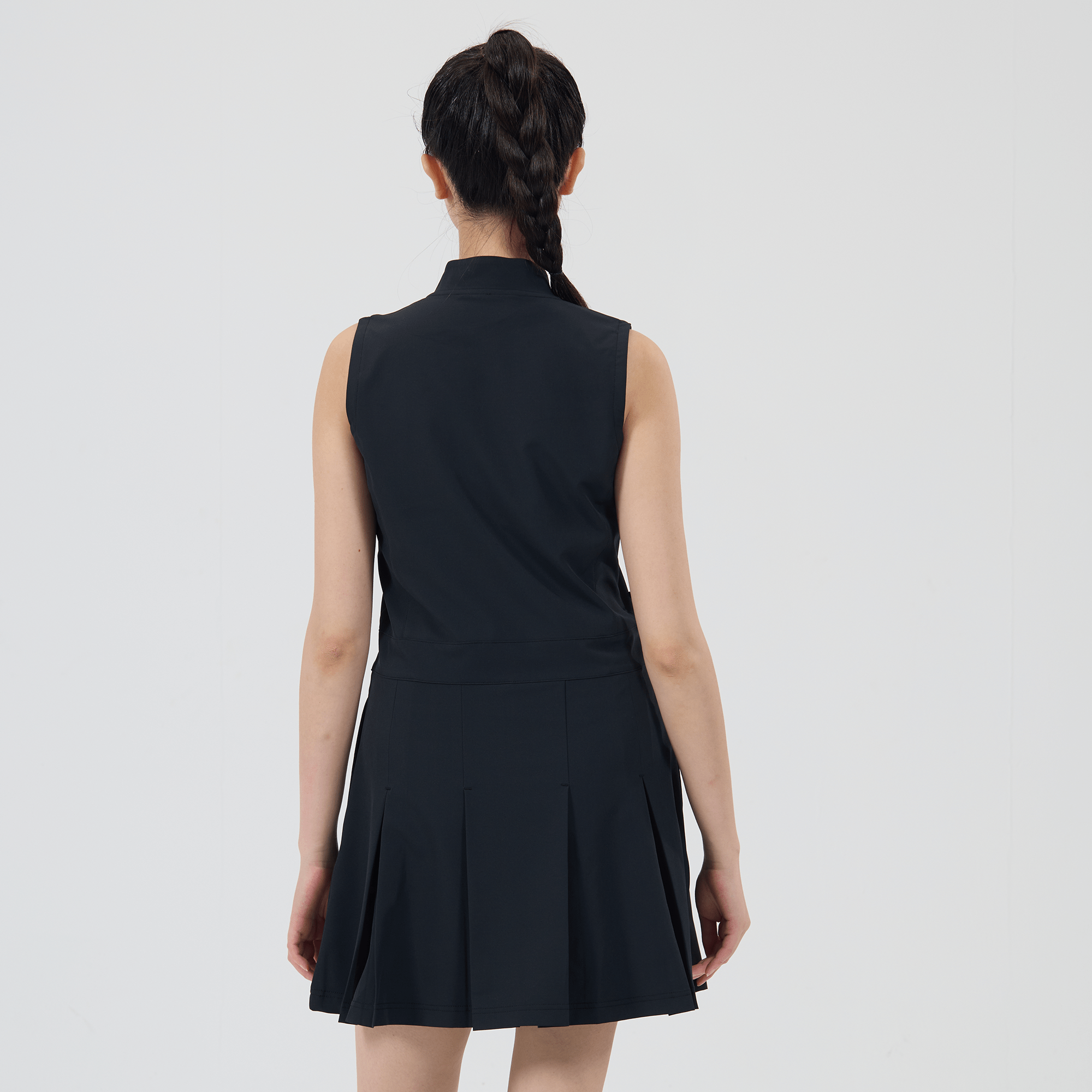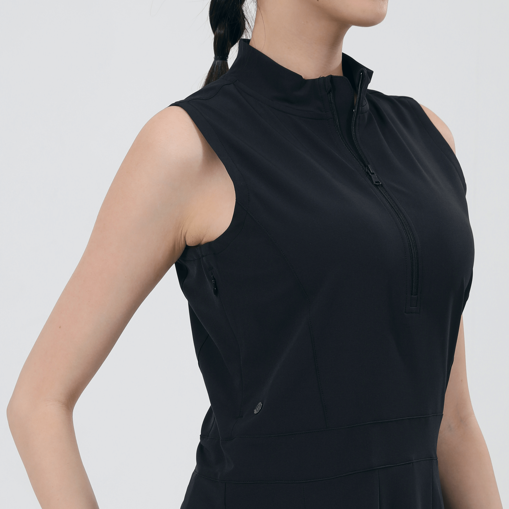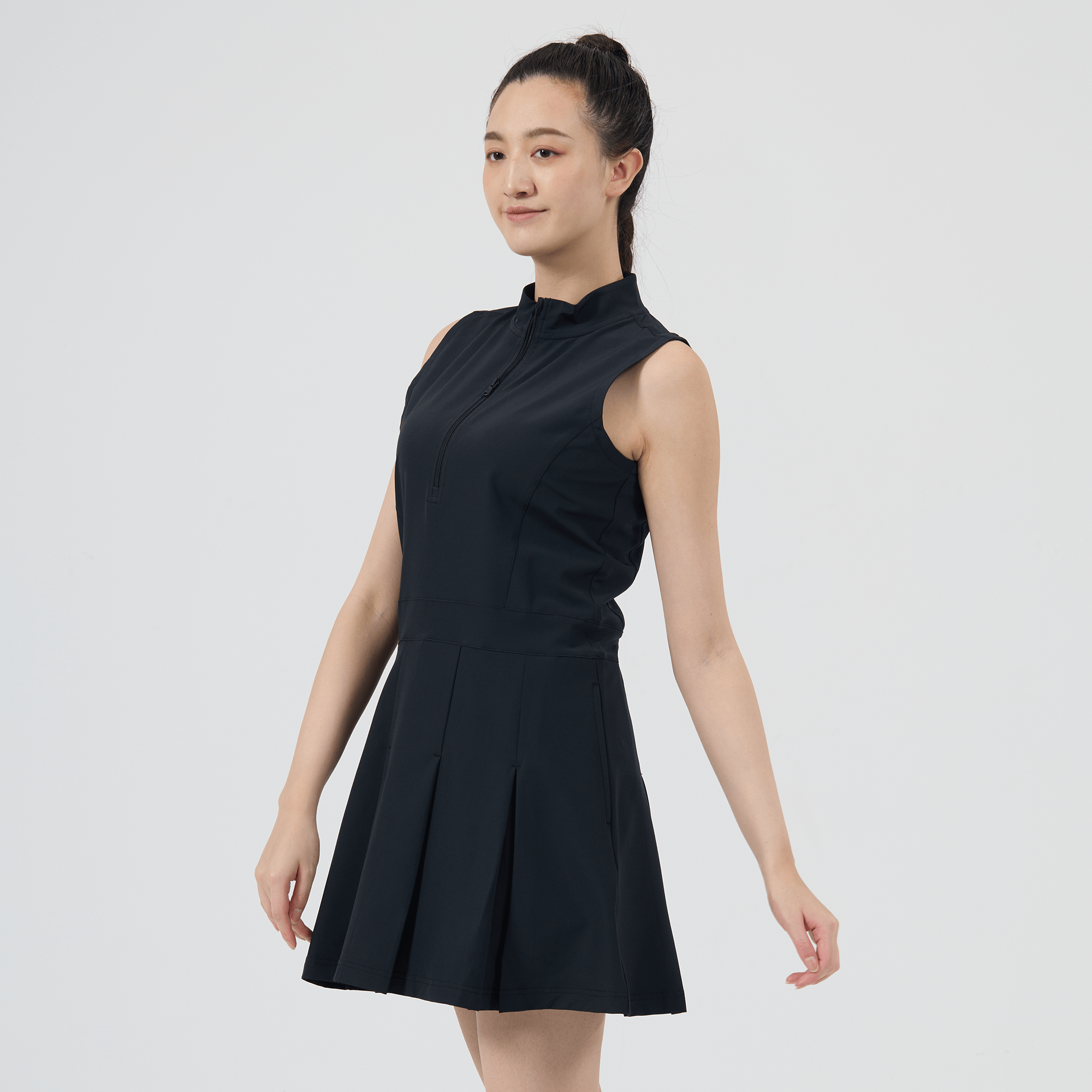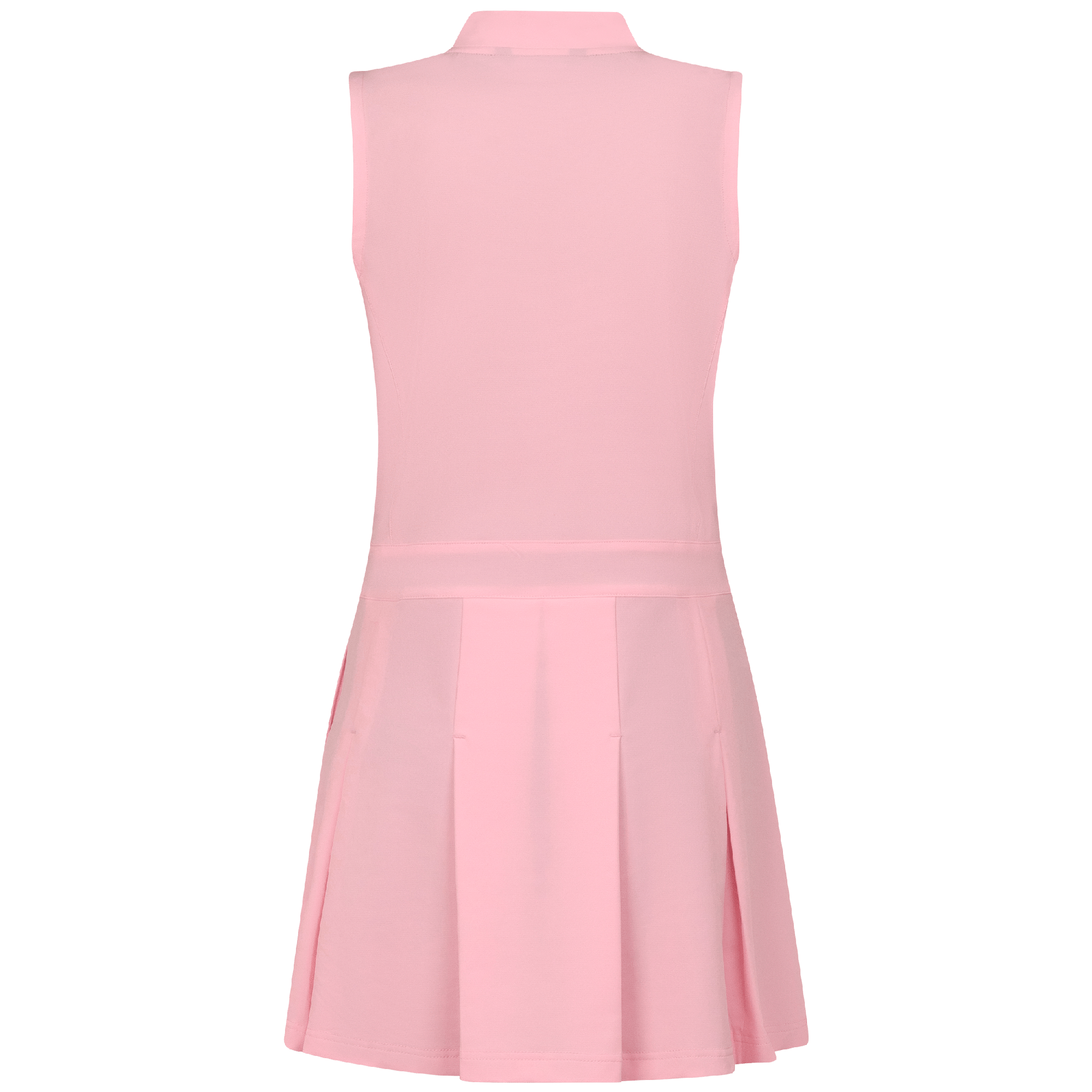 Arrive in style and confidence to the golf course with the women's Deluxe dress, designed to offer both fashion and functionality for the modern golfer. Made from a blend of 92% polyester and 8% spandex, this dress combines flexibility and comfort with moisture-wicking technology to keep you dry and anti-static properties to ensure a smooth, cling-free experience. The quarter-zip with a stand-up collar allows for adjustable coverage, while the side seam pockets provide convenient storage for small essentials. Unique to this design is the box pleat skirt which conceals hidden shorts, offering the elegance of a dress with the practicality and coverage of shorts underneath. Ideal for a sunny day on the greens, the Deluxe dress marries performance and style, making it a perfect addition to your golfing wardrobe.