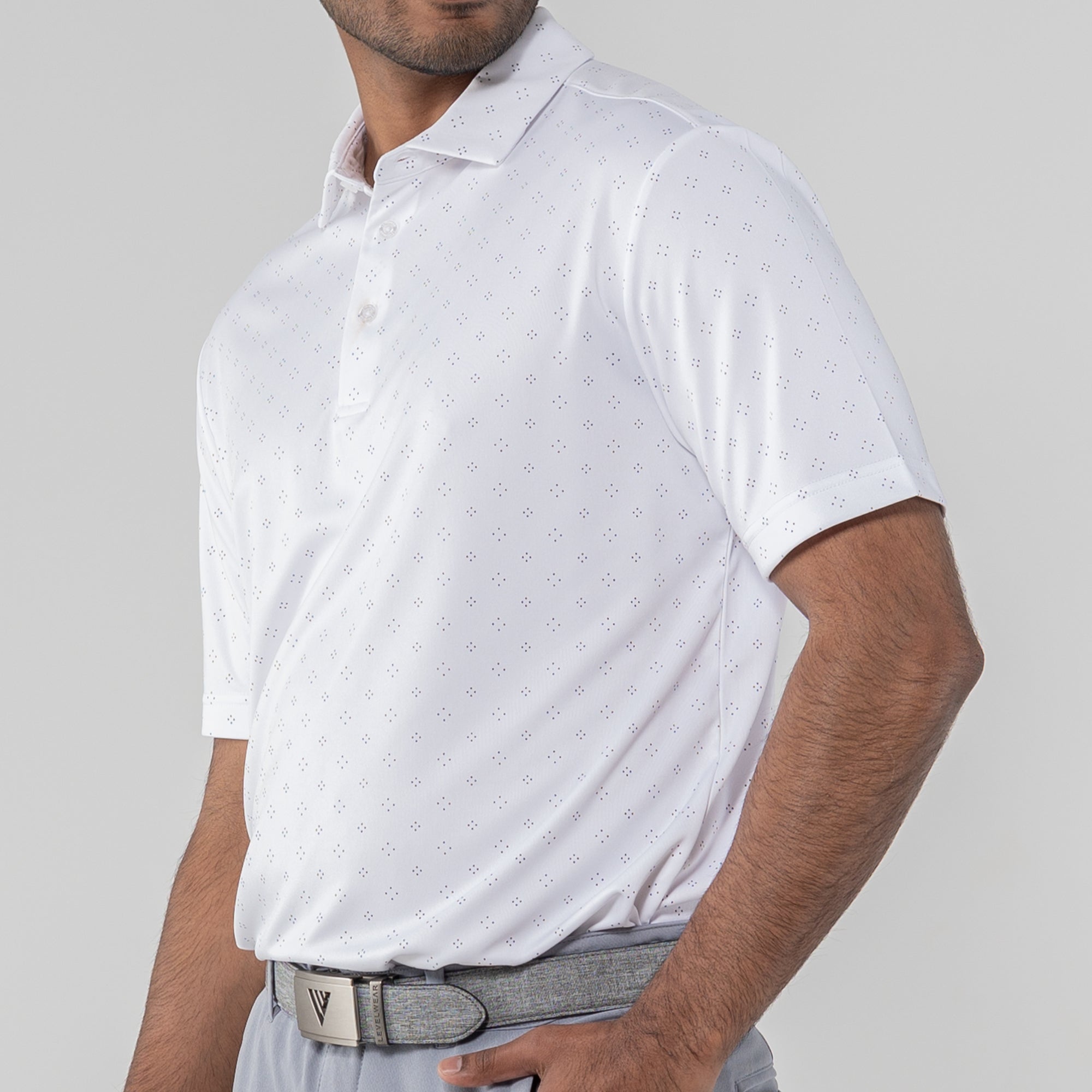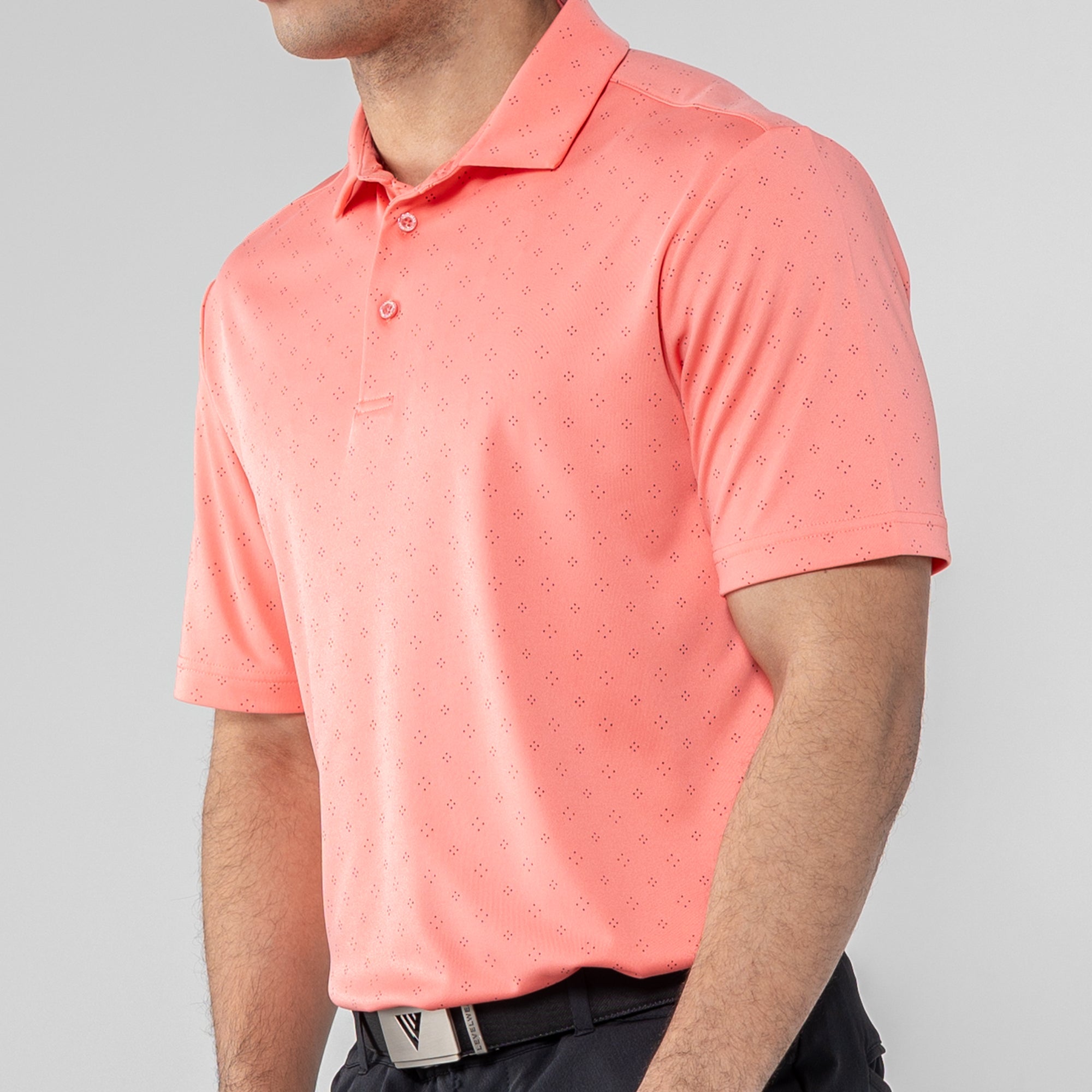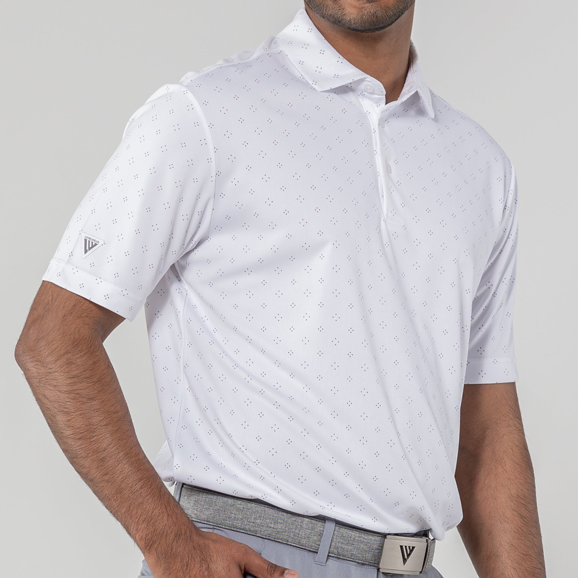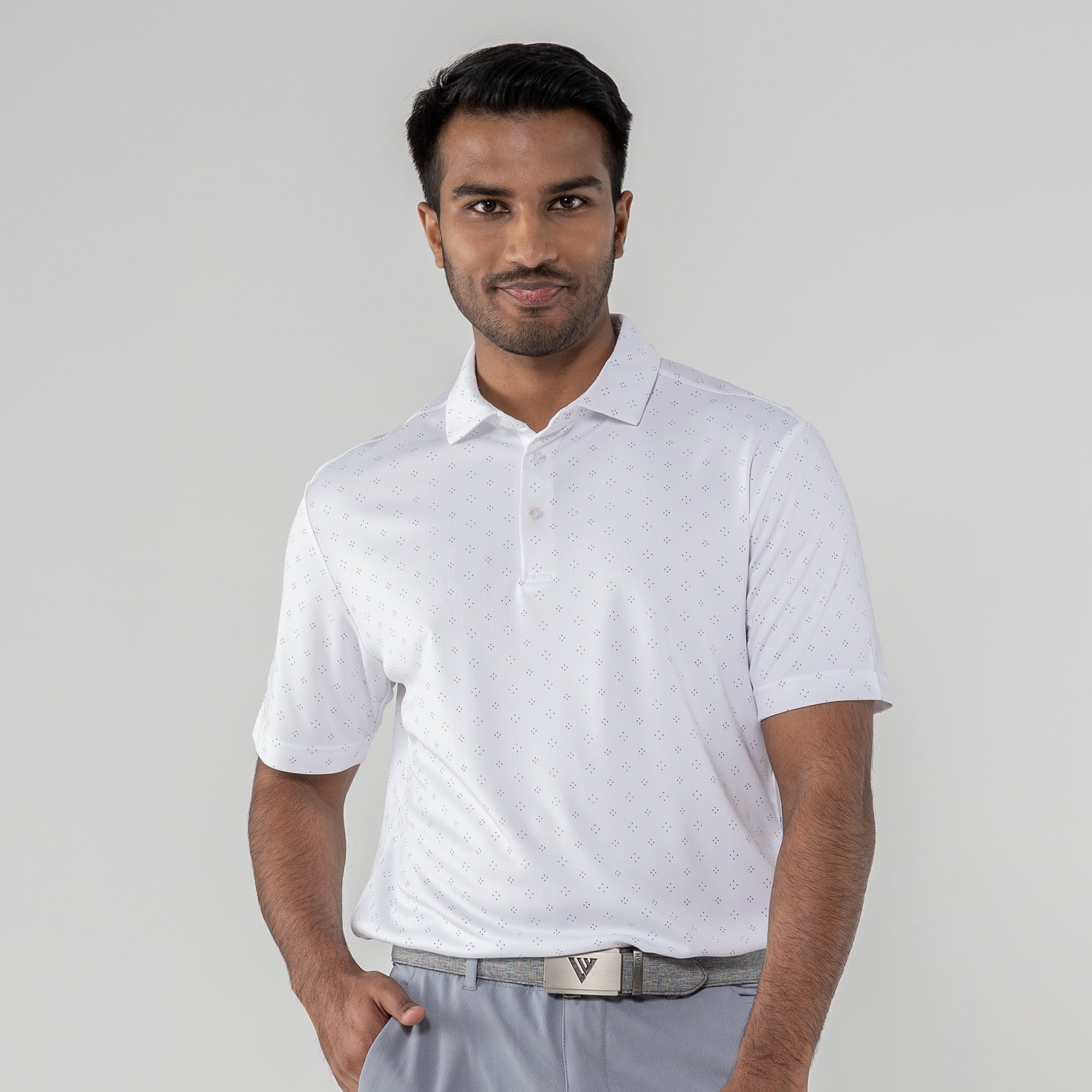 Unleash your athletic potential with the Detect Polo, crafted from 100% polyester for optimal performance. Stay cool and dry with its moisture-wicking technology, perfect for intense workouts or casual activities. The self-fabric collar, enhanced with built-in collar stays, adds a polished touch. The high-low hem detail with side slits not only provides a stylish edge but also offers flexibility in movement. Stand out effortlessly with the all-over stylish dot pattern, making the Detect Polo a versatile and essential addition to your activewear collection.